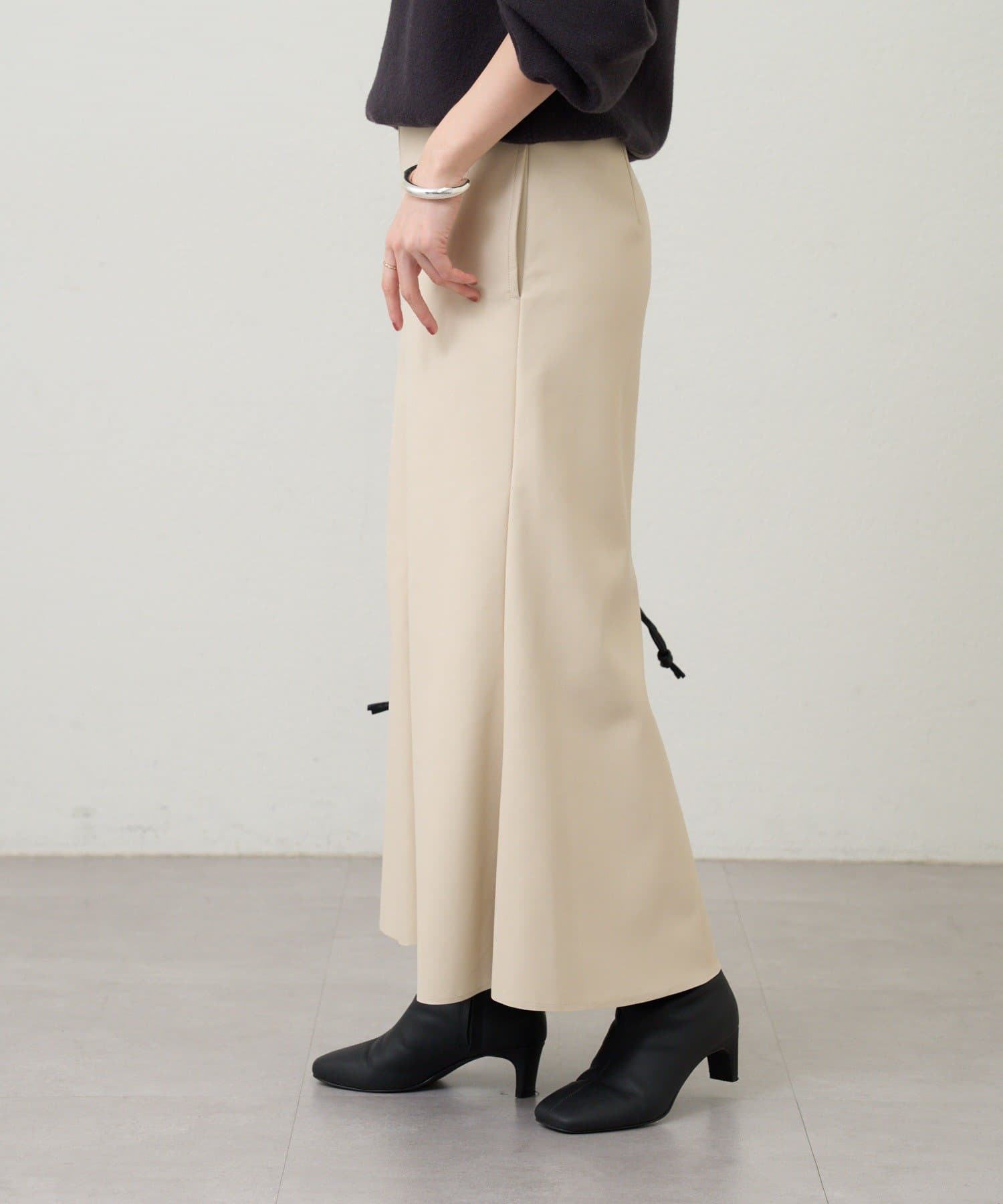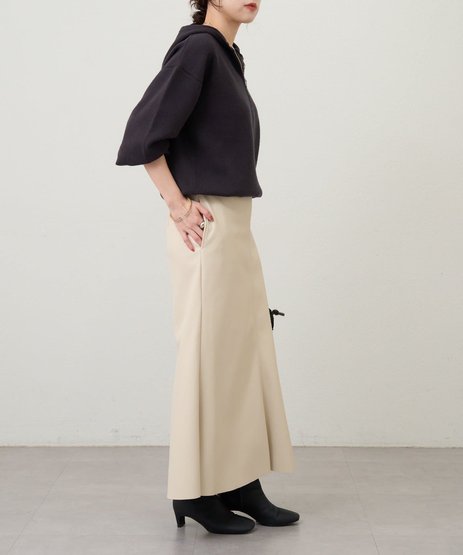 女性らしさを引き立てる上品なフェイクレザーマーメイドスカート。