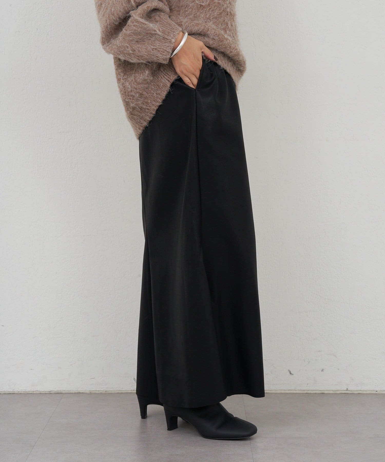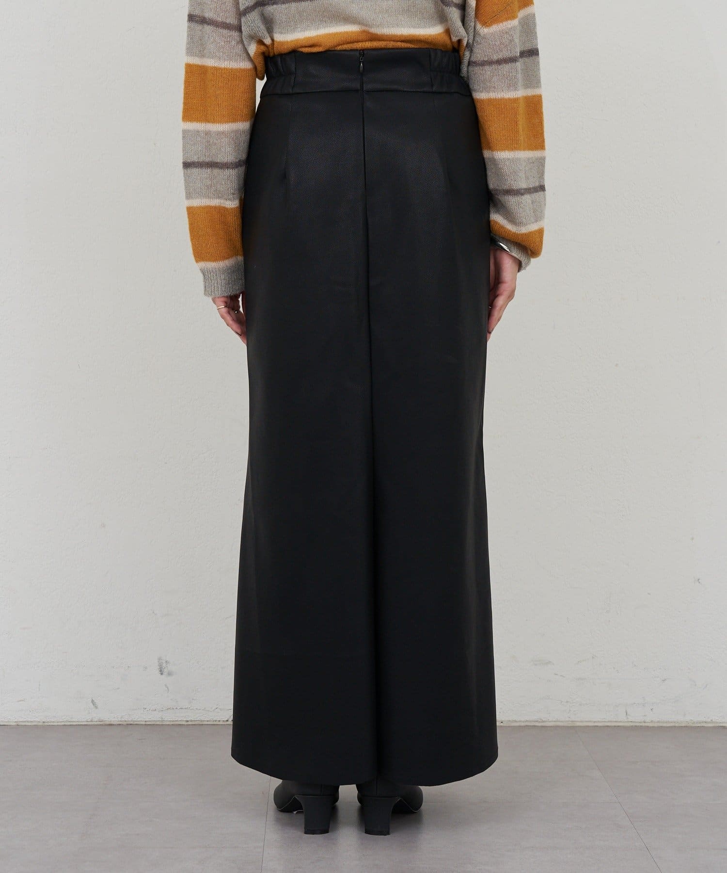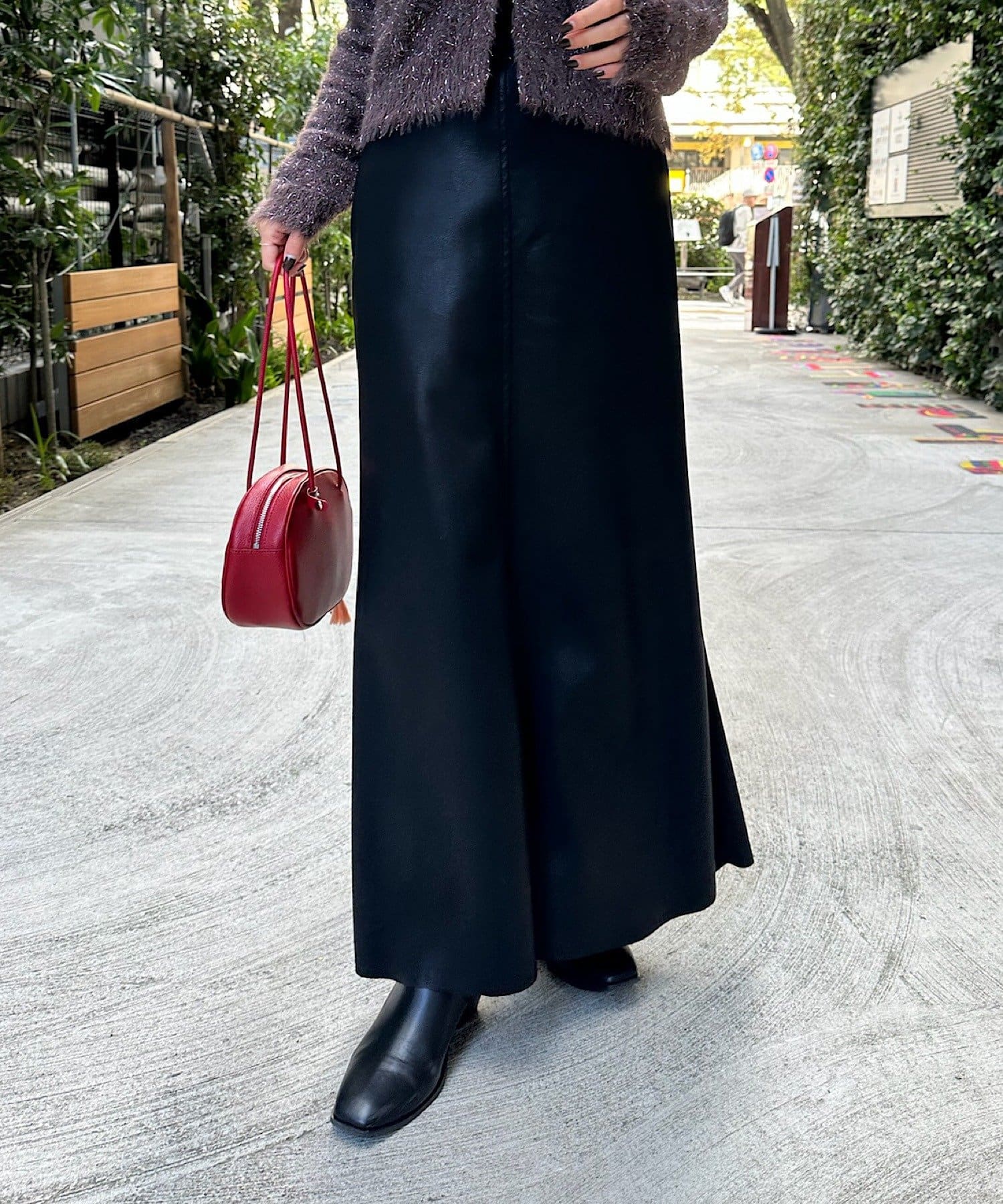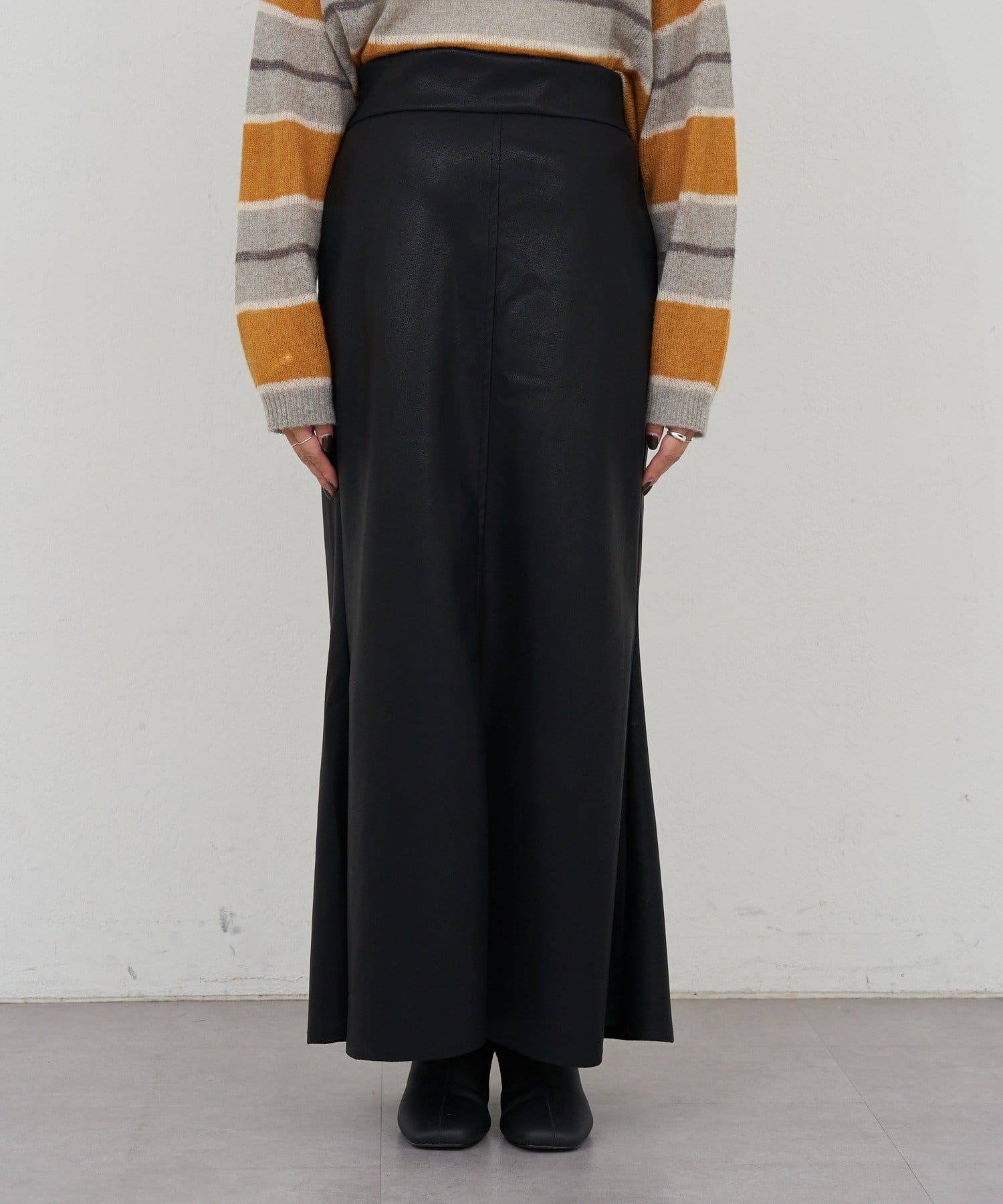 女性らしさを引き立てる上品なフェイクレザーマーメイドスカート。
