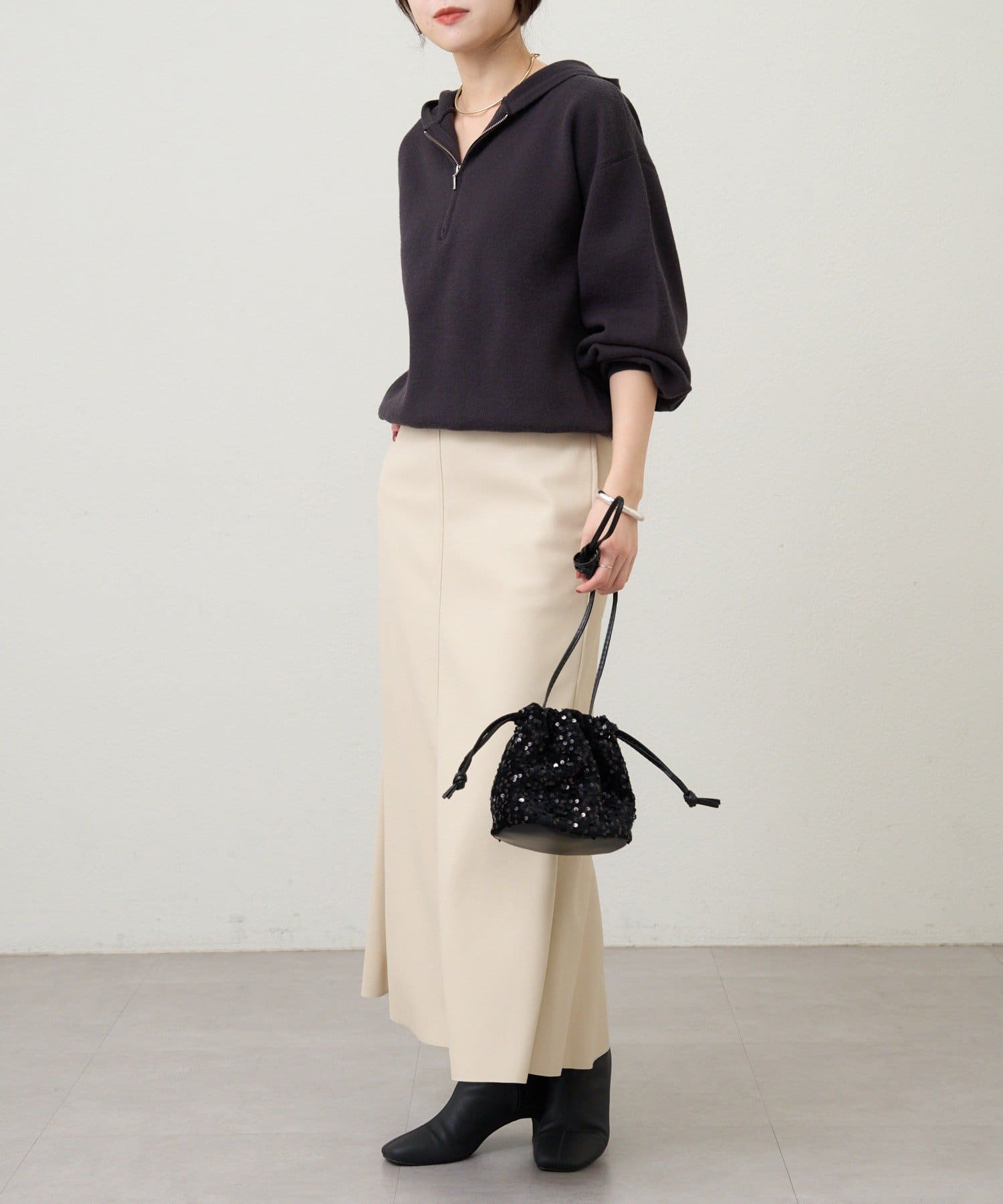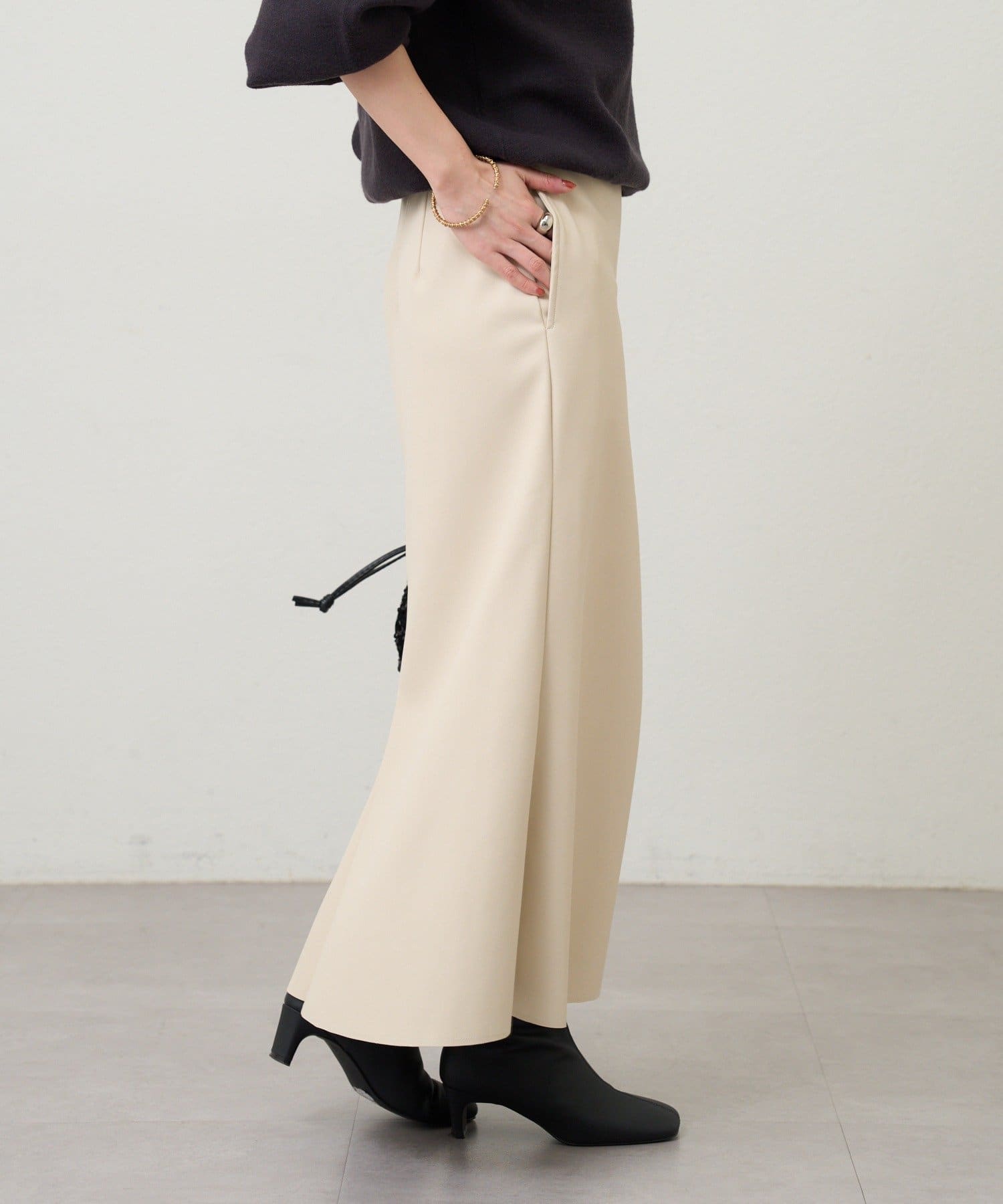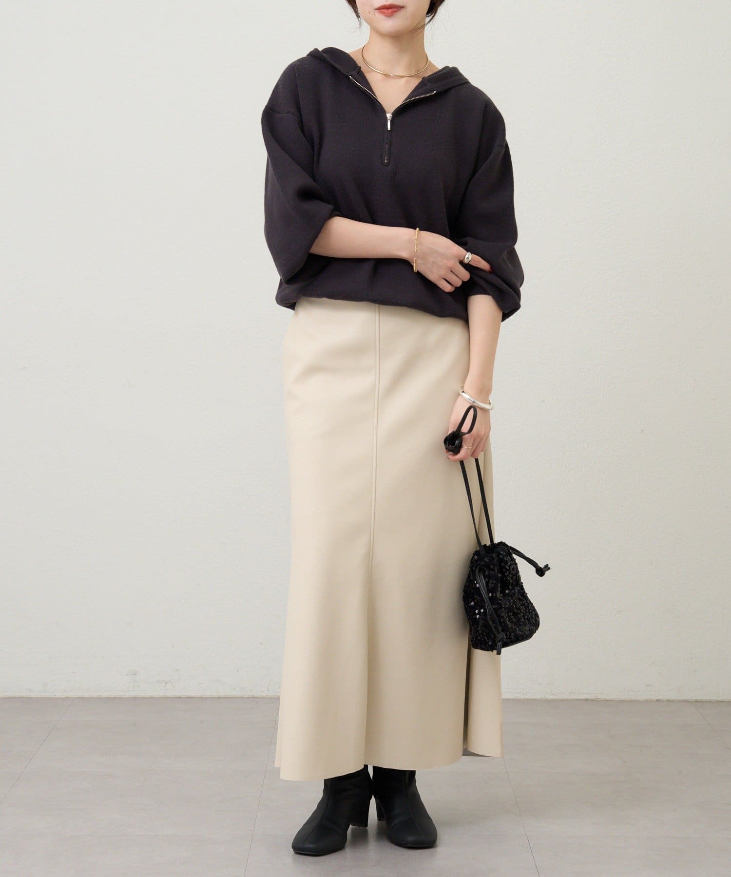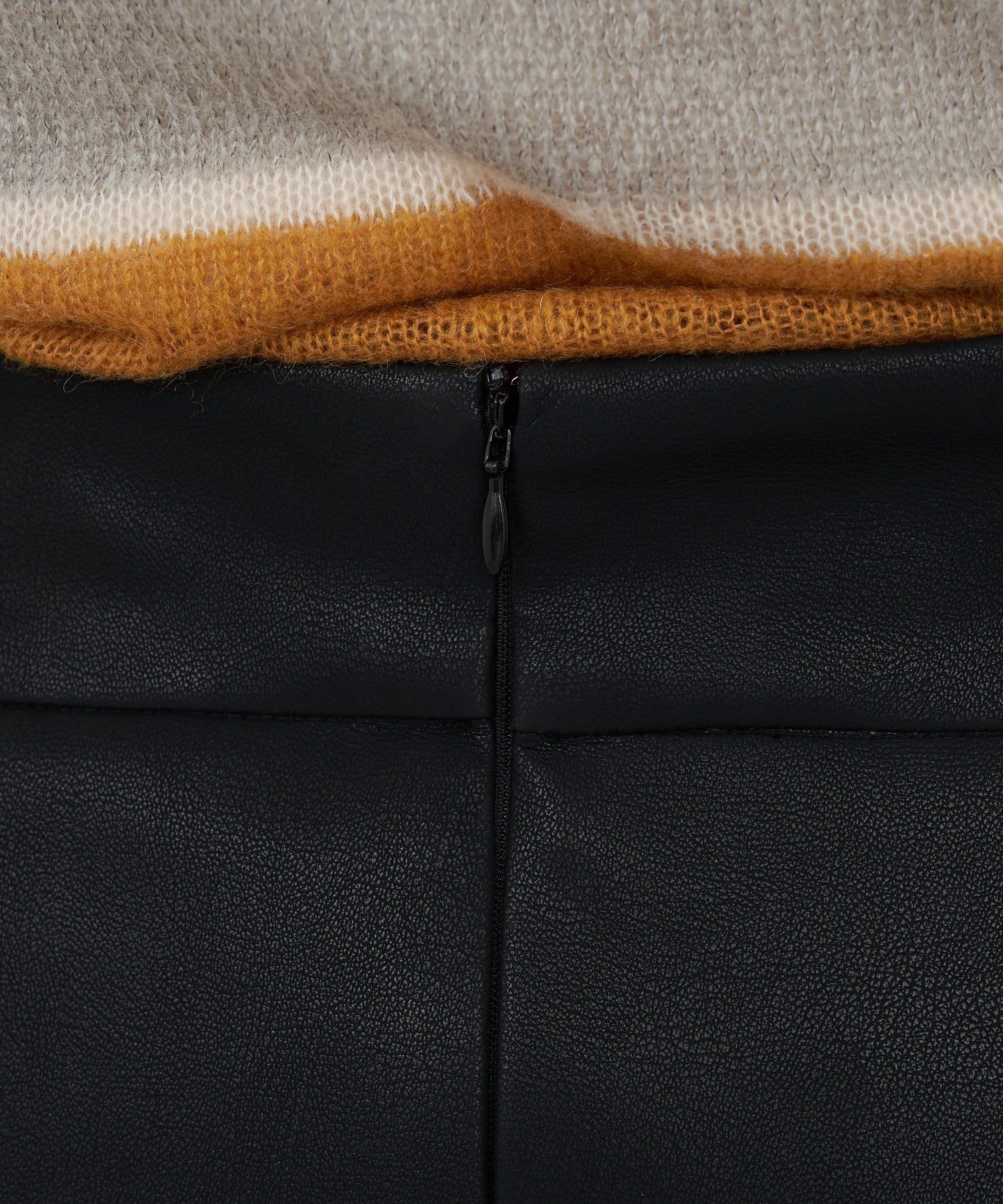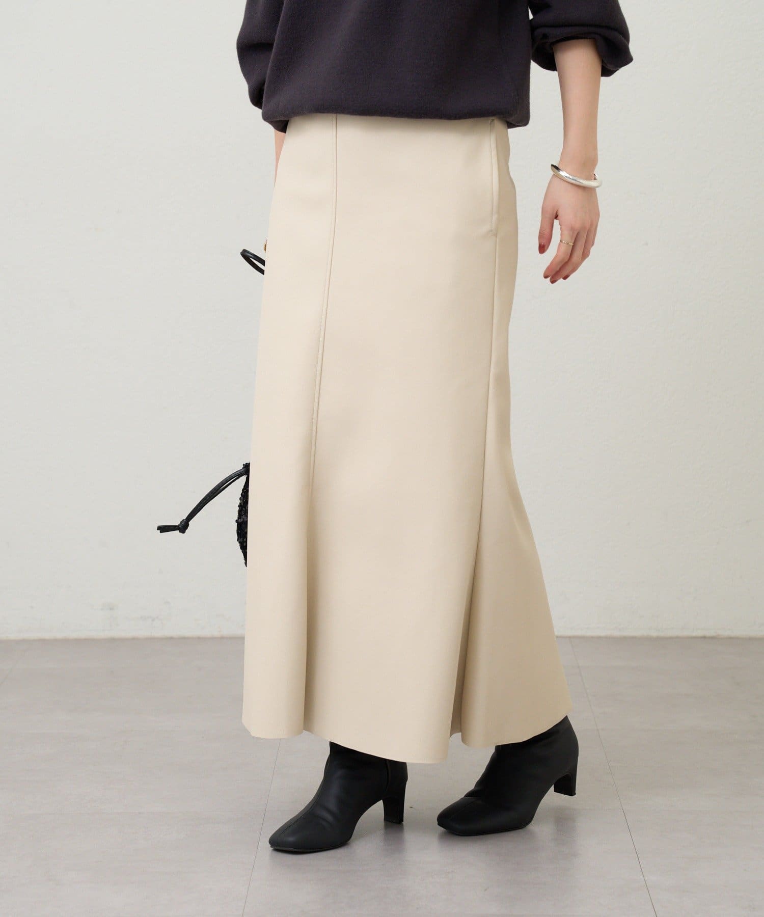 女性らしさを引き立てる上品なフェイクレザーマーメイドスカート。