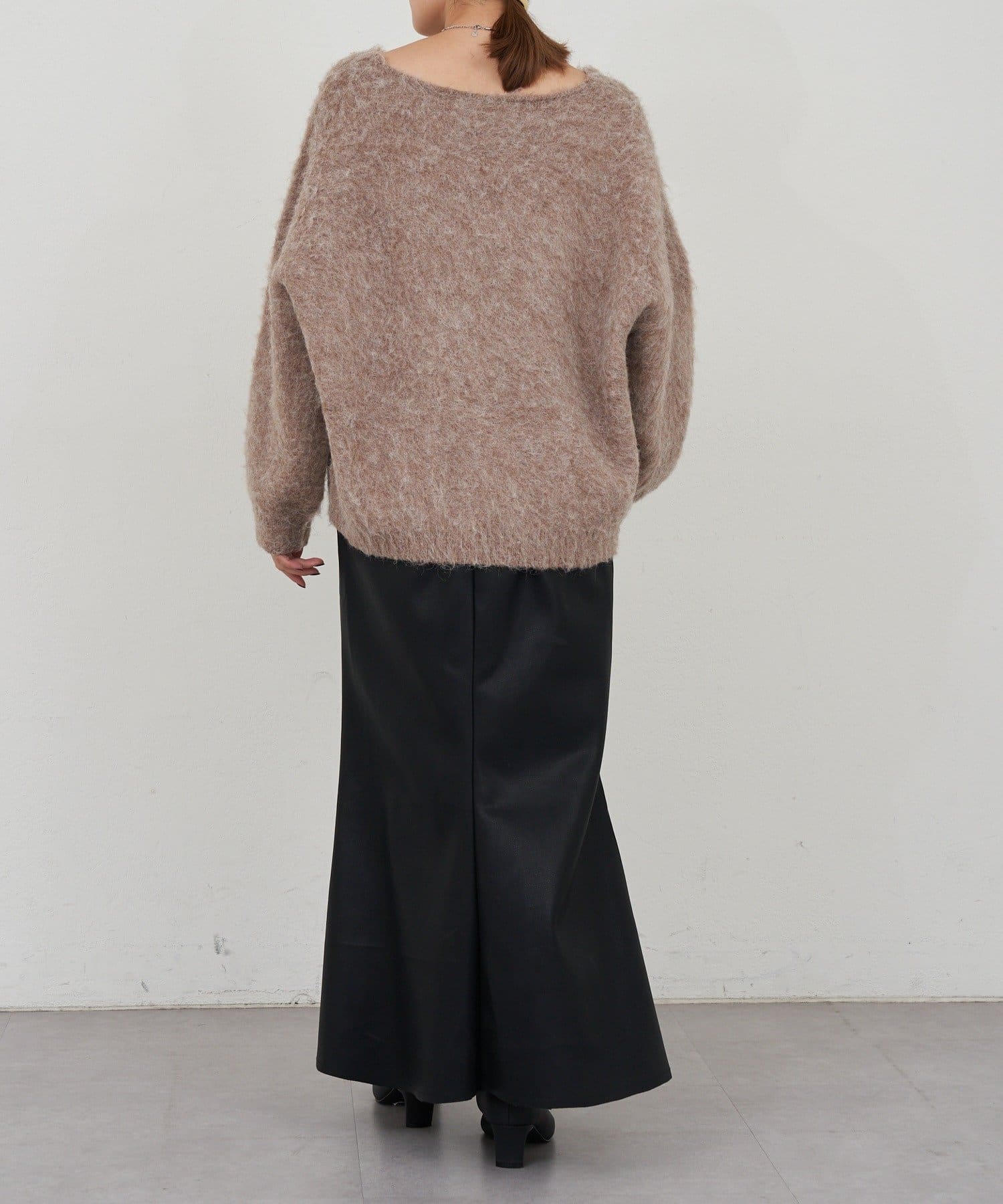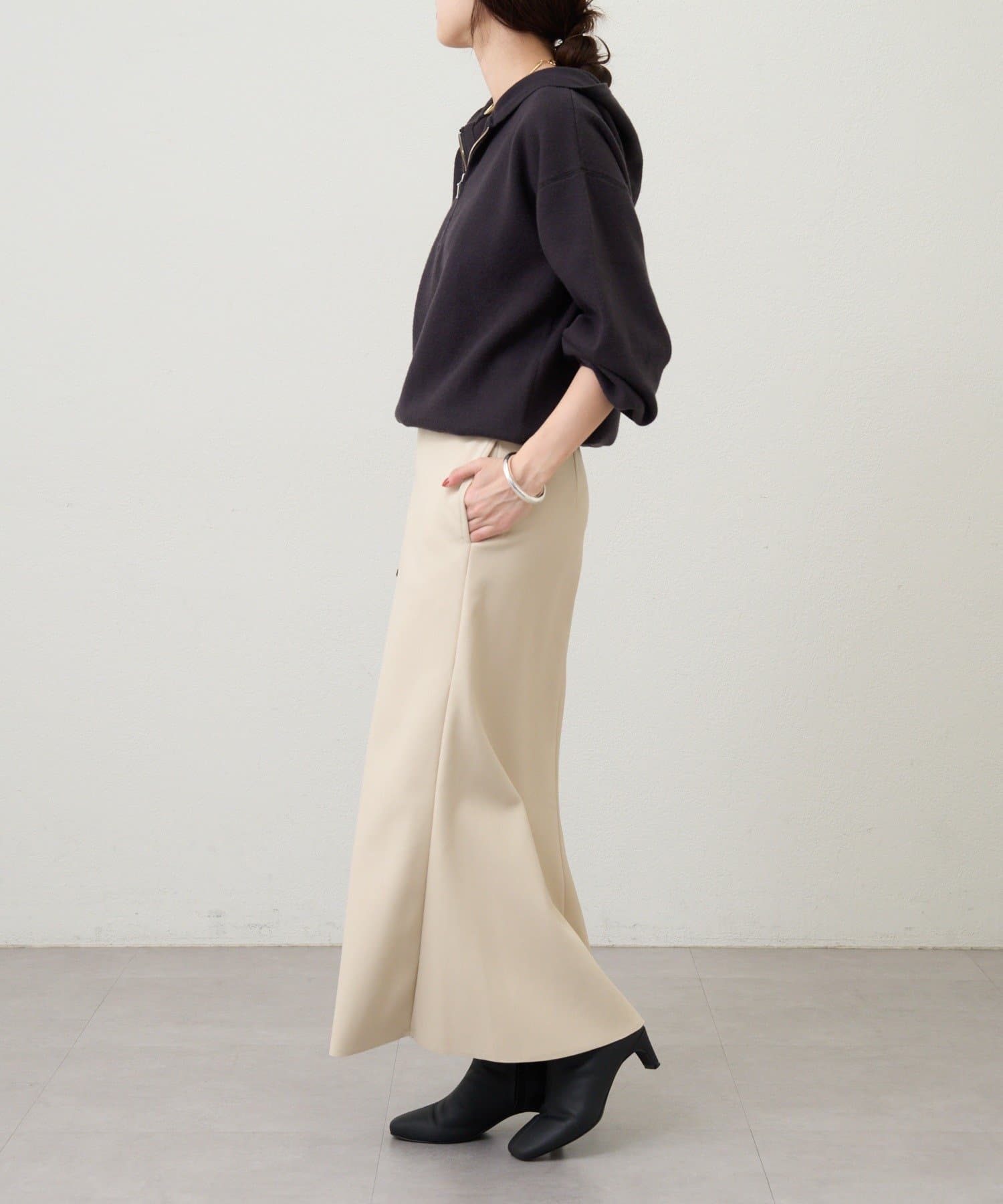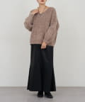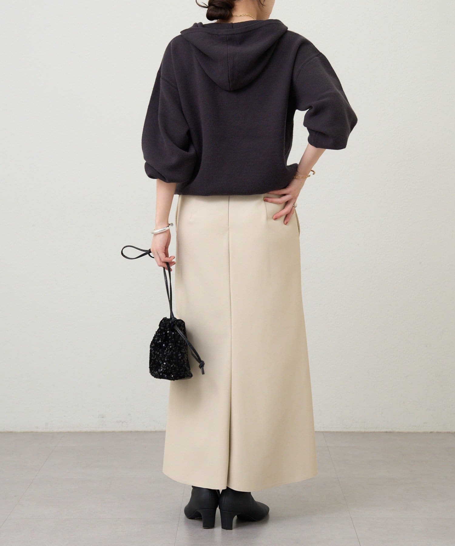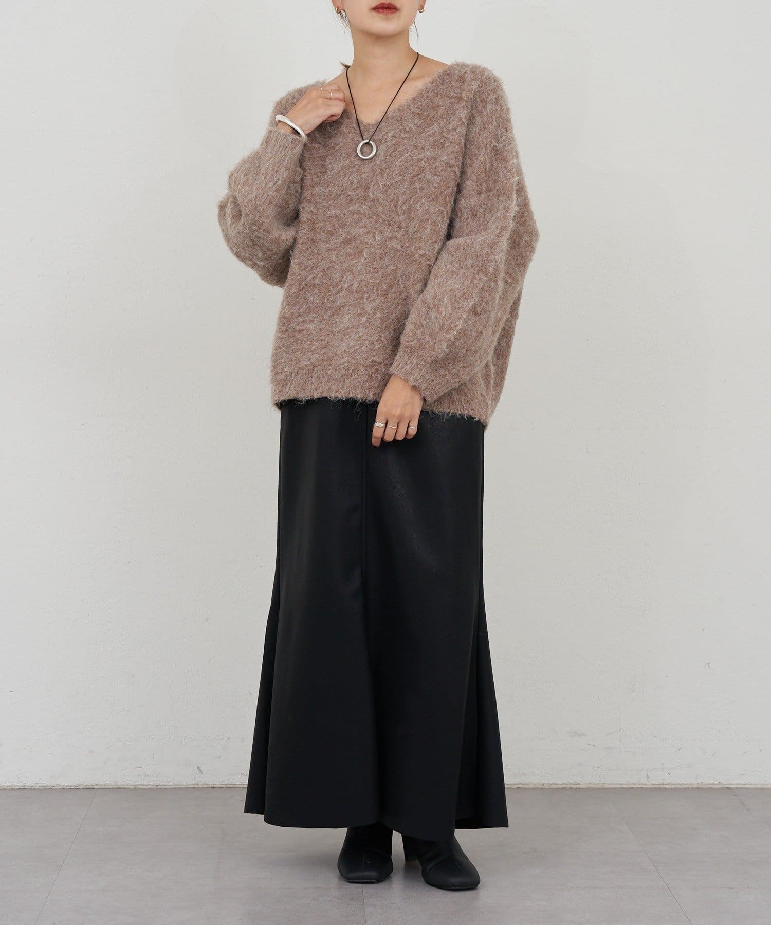 女性らしさを引き立てる上品なフェイクレザーマーメイドスカート。