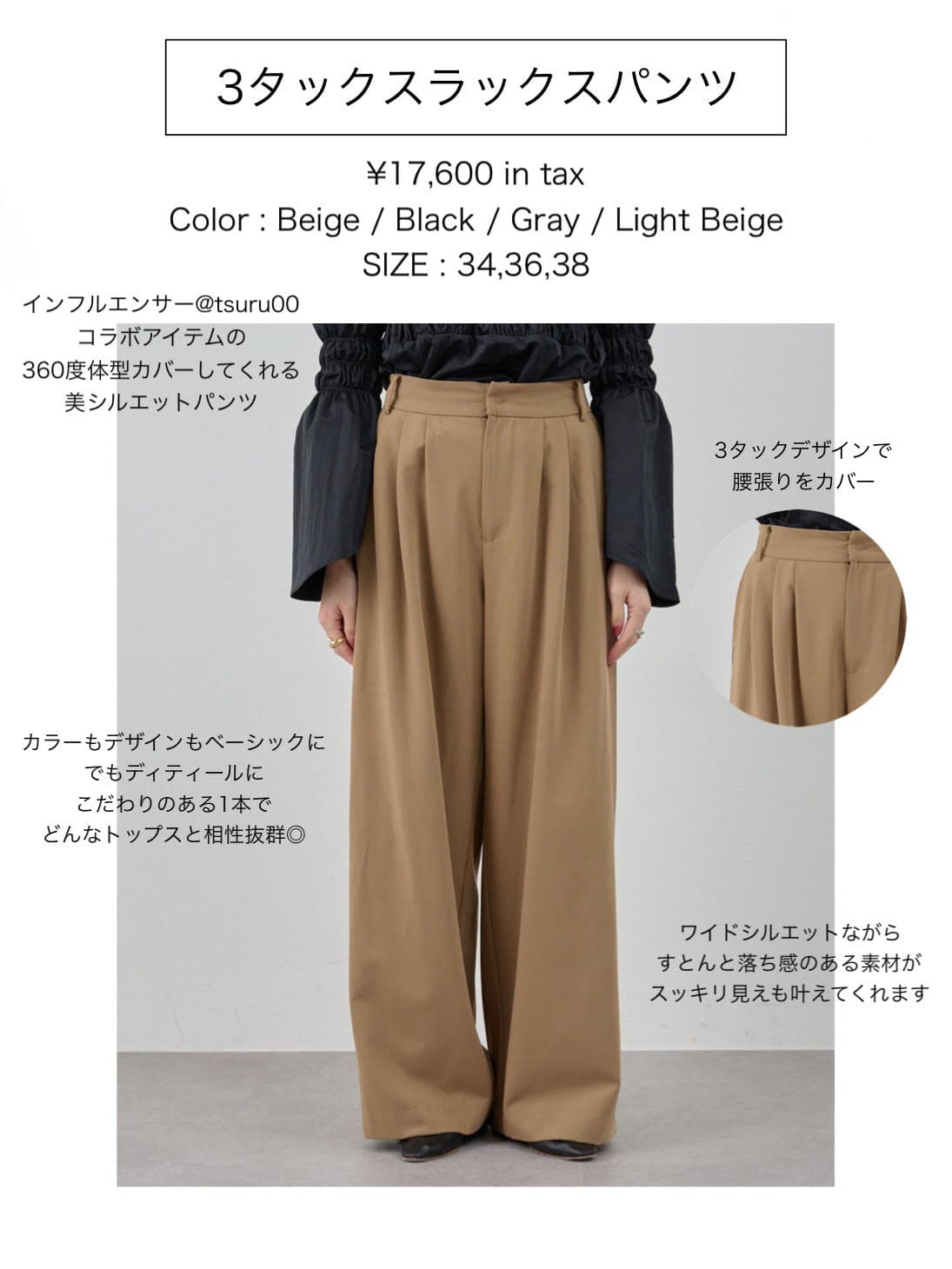 【360度カバーパンツ】【@tsuru00コラボ】【新色/新サイズ登場】3タックスラックスパンツ