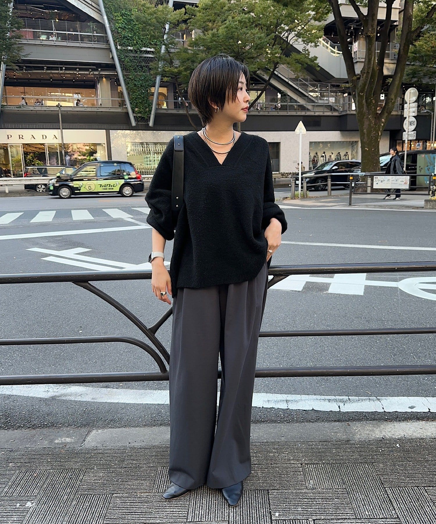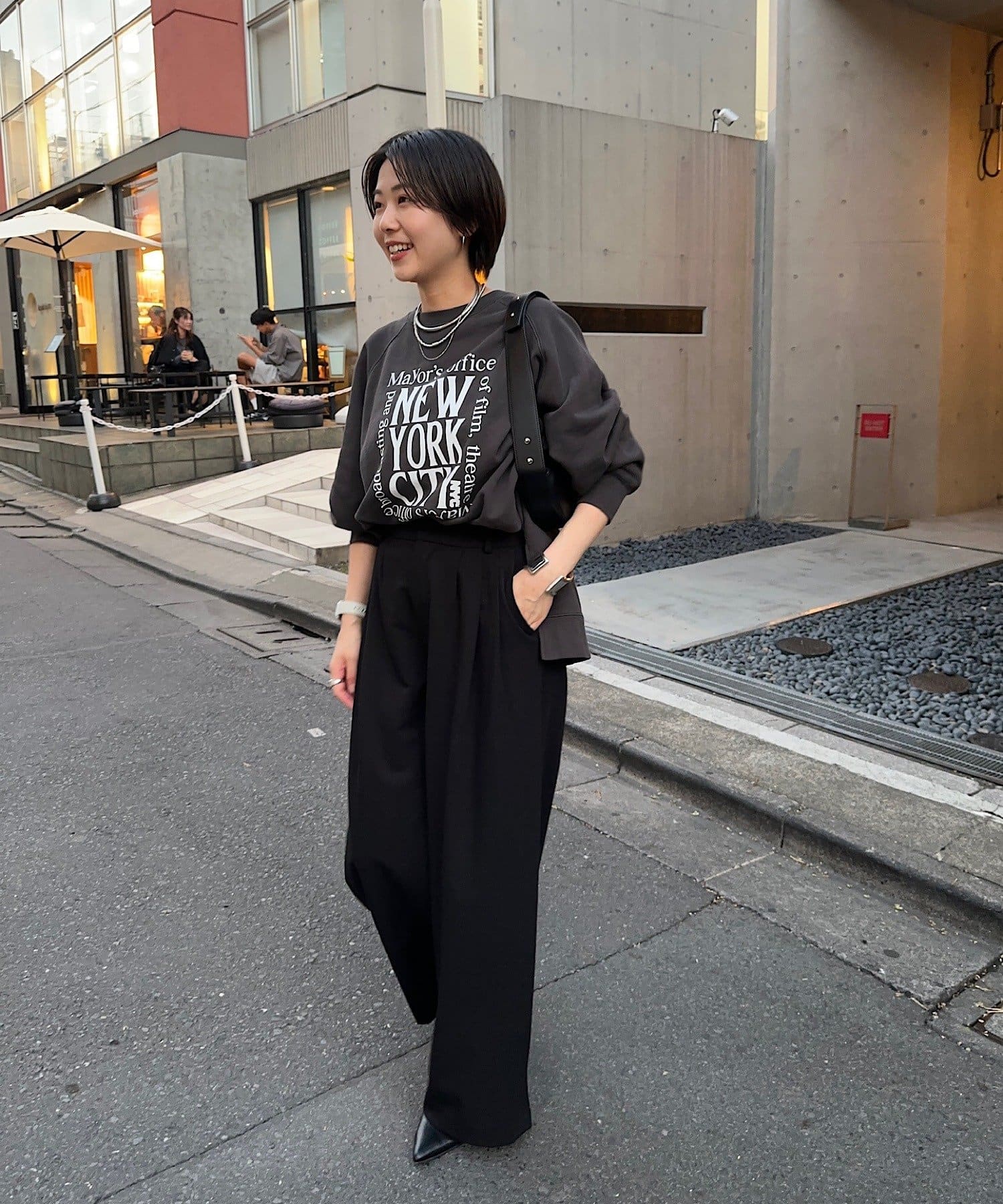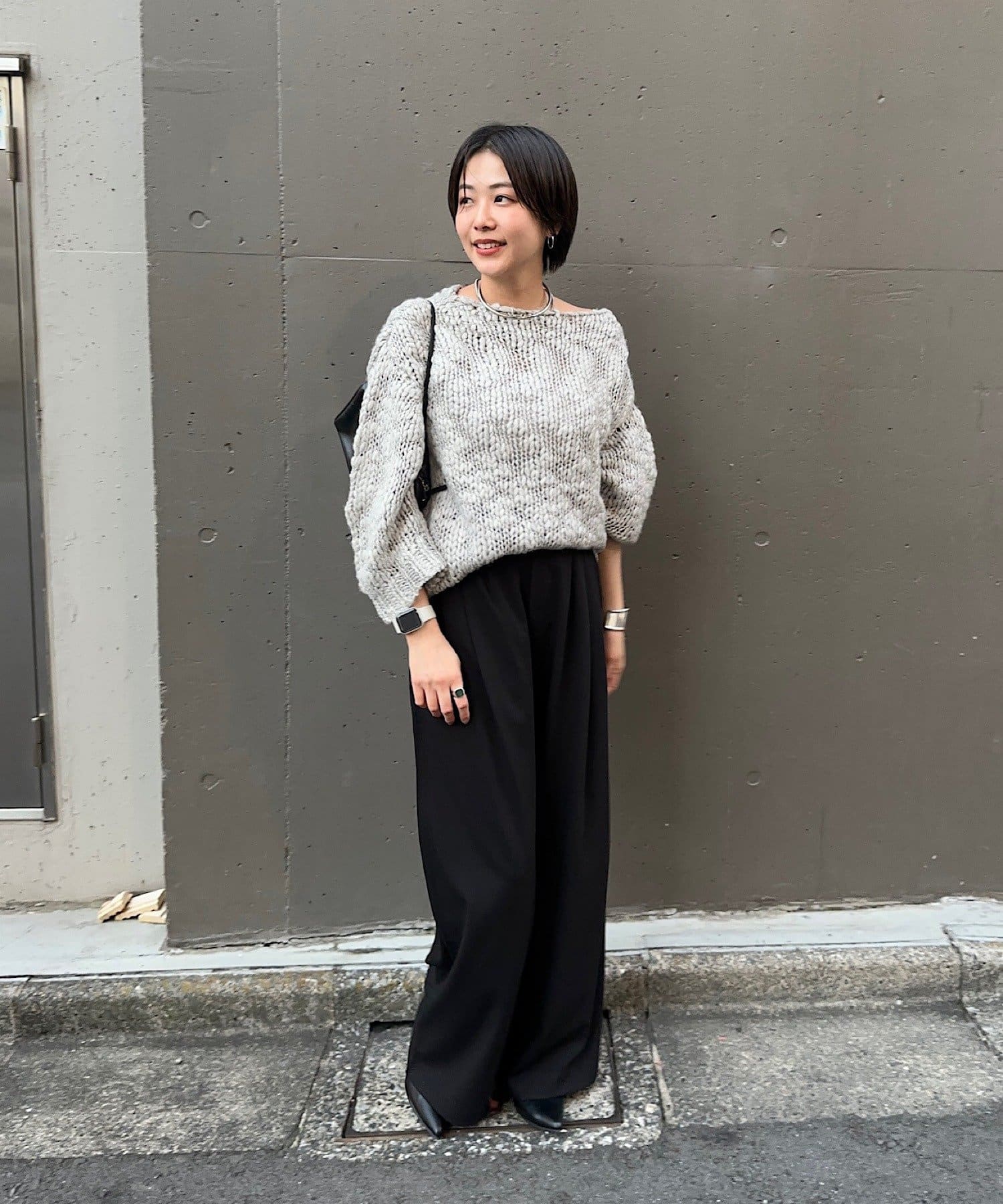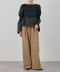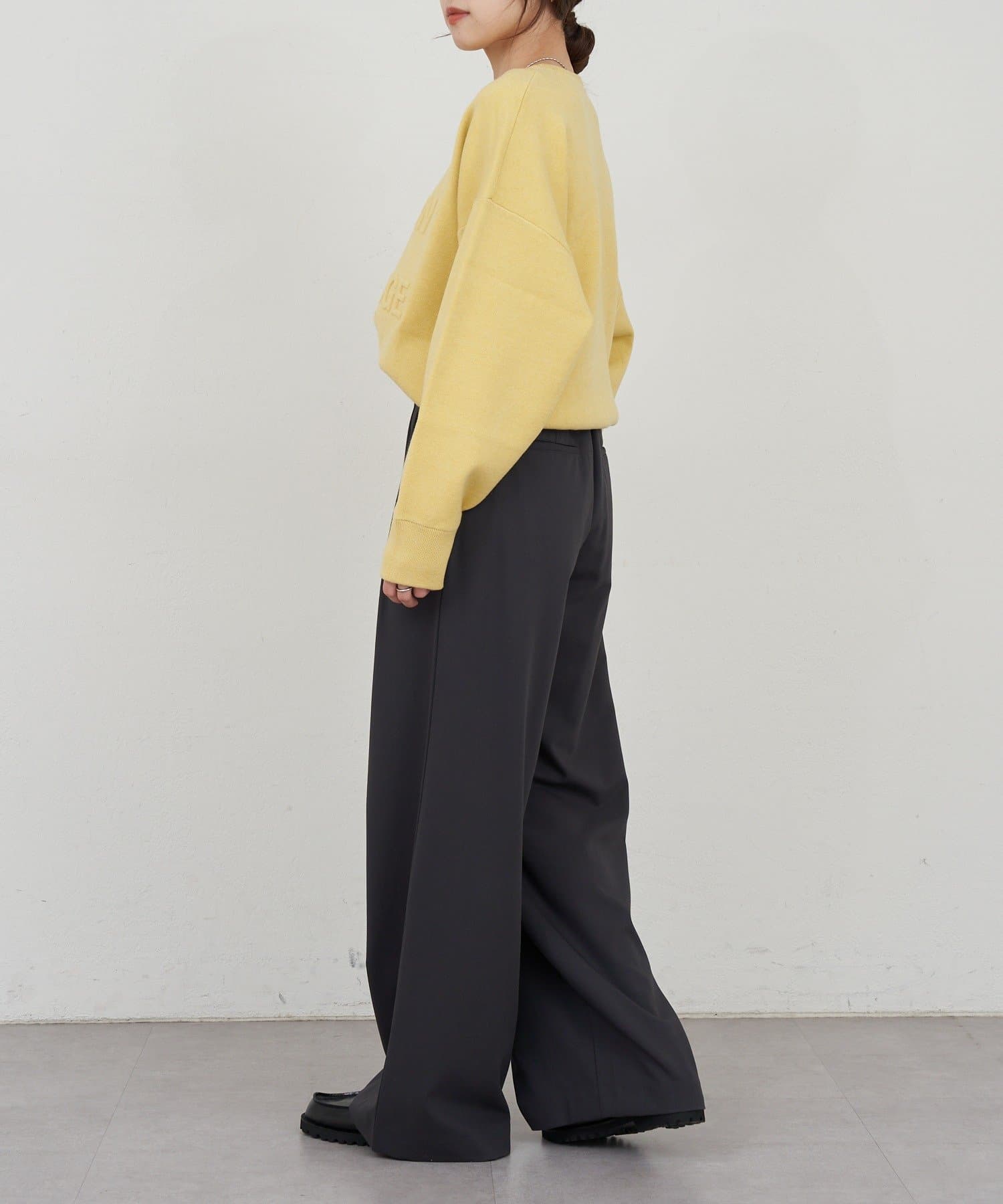 上品な落ち感の素材は腰回りをすっきりと、さらに全体のシルエットを綺麗に見せてくれます。