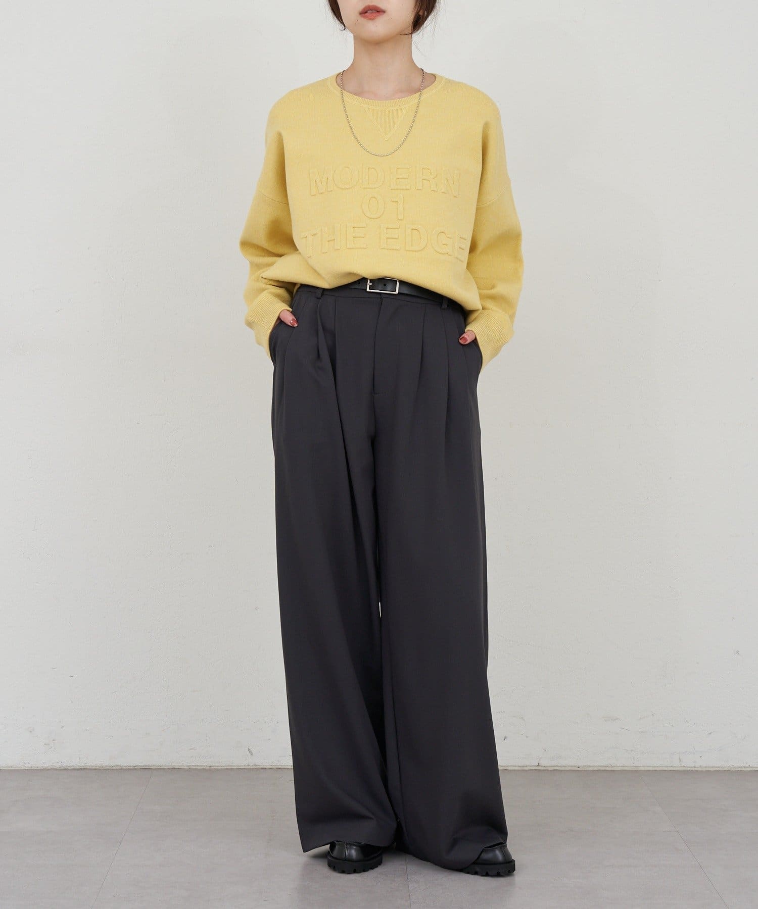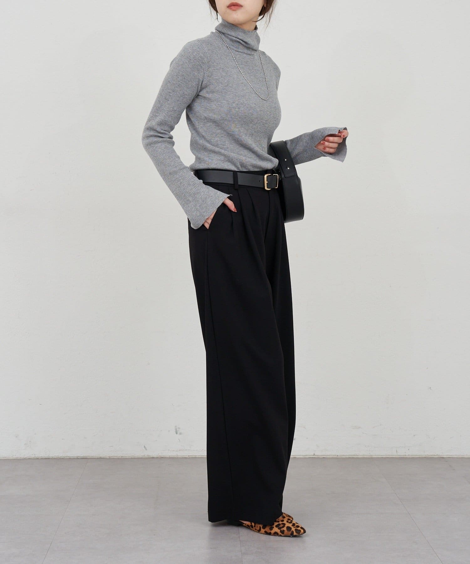 ワイドながらスッキリ見えが叶い、腰回りも気にならないシルエット。