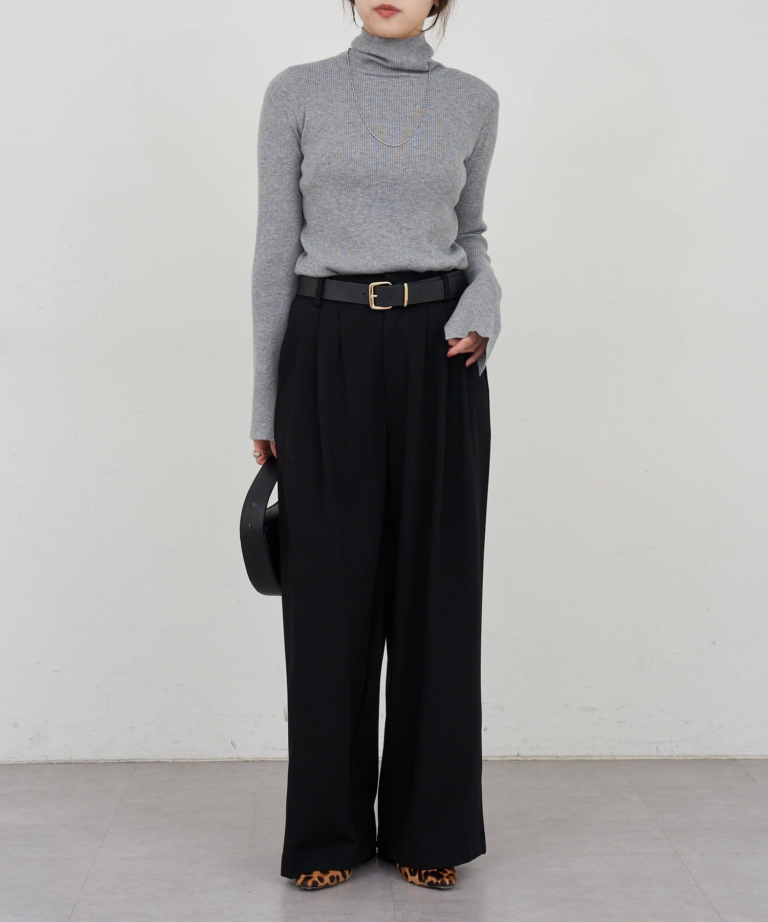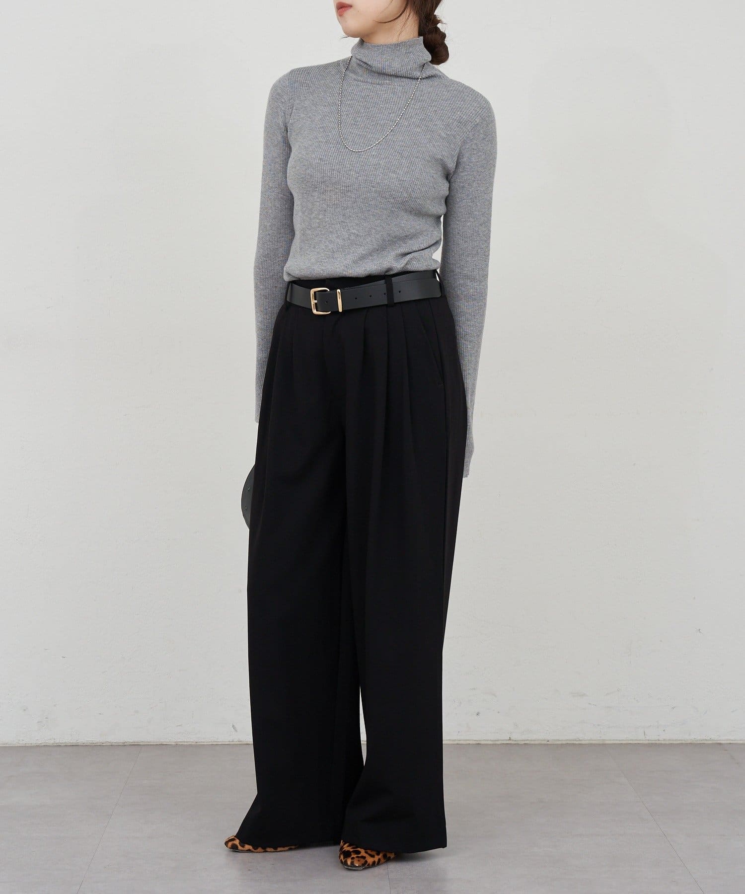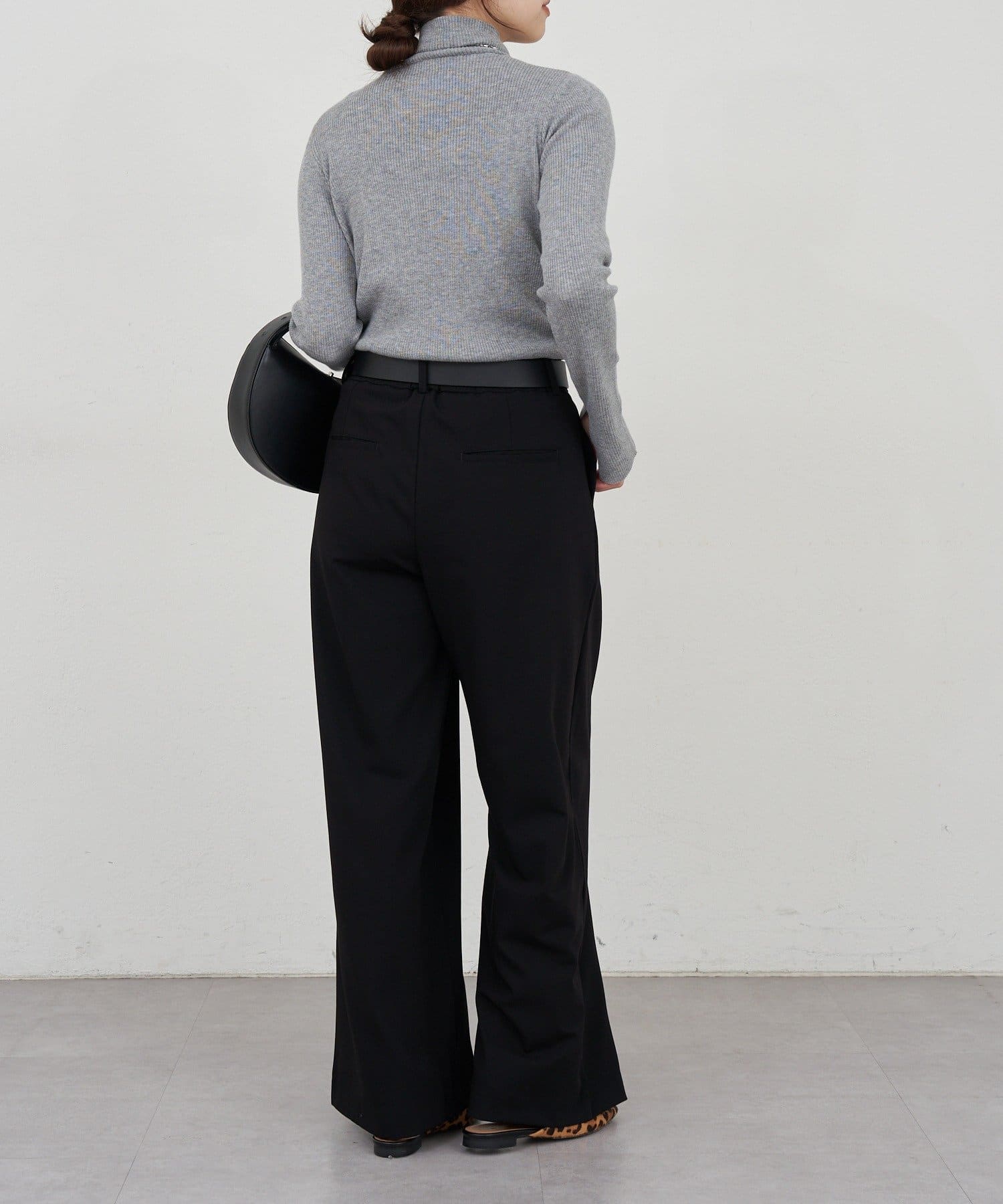 腰回りをしっかりカバー。美脚効果抜群のタックパンツ。
