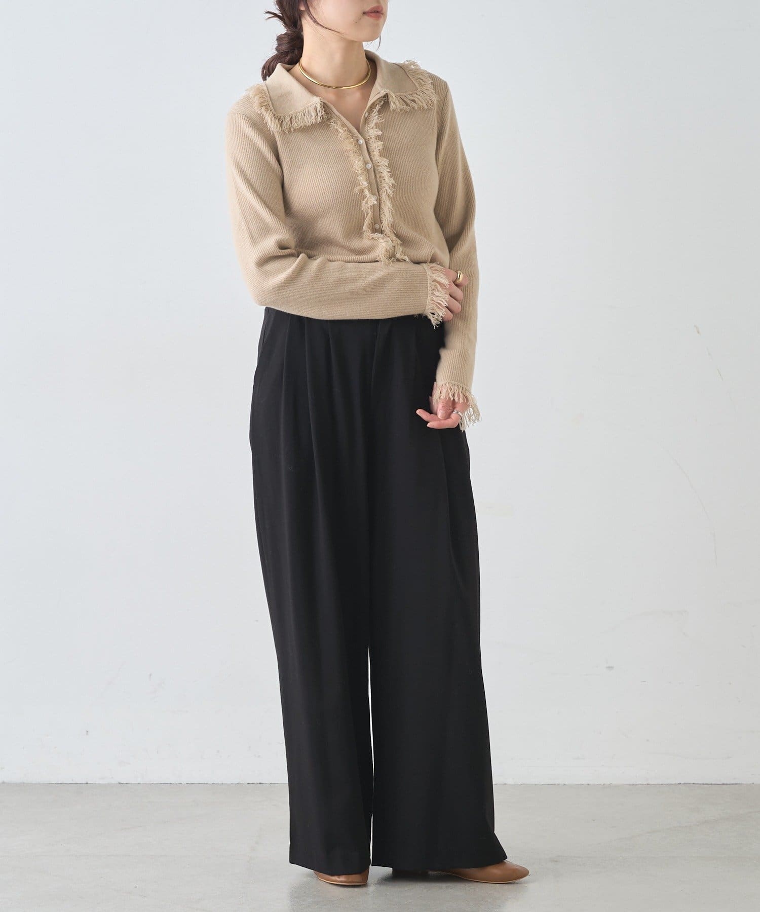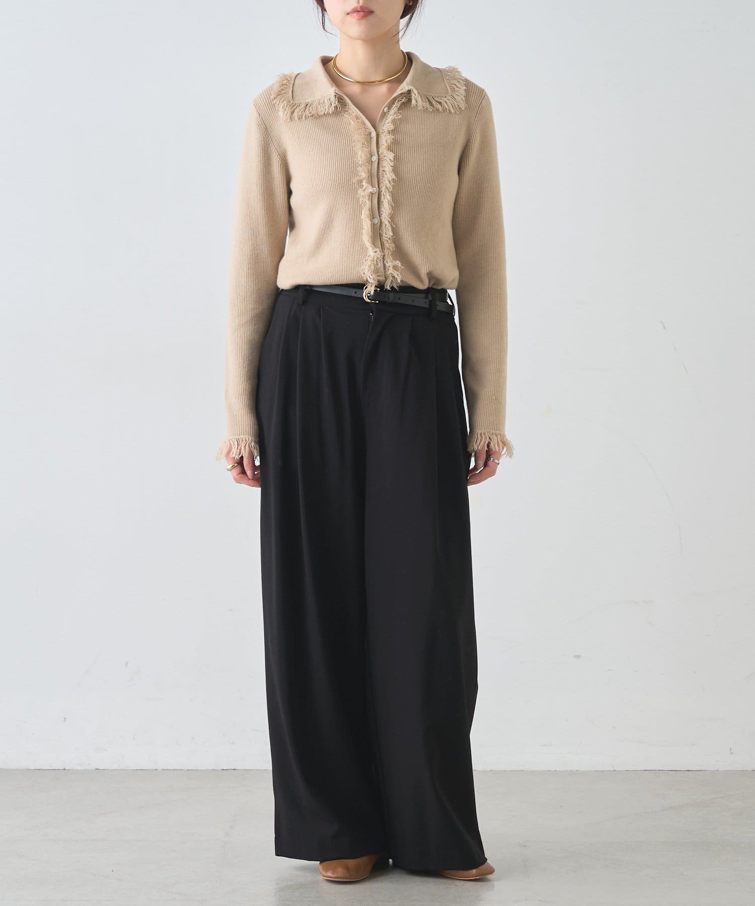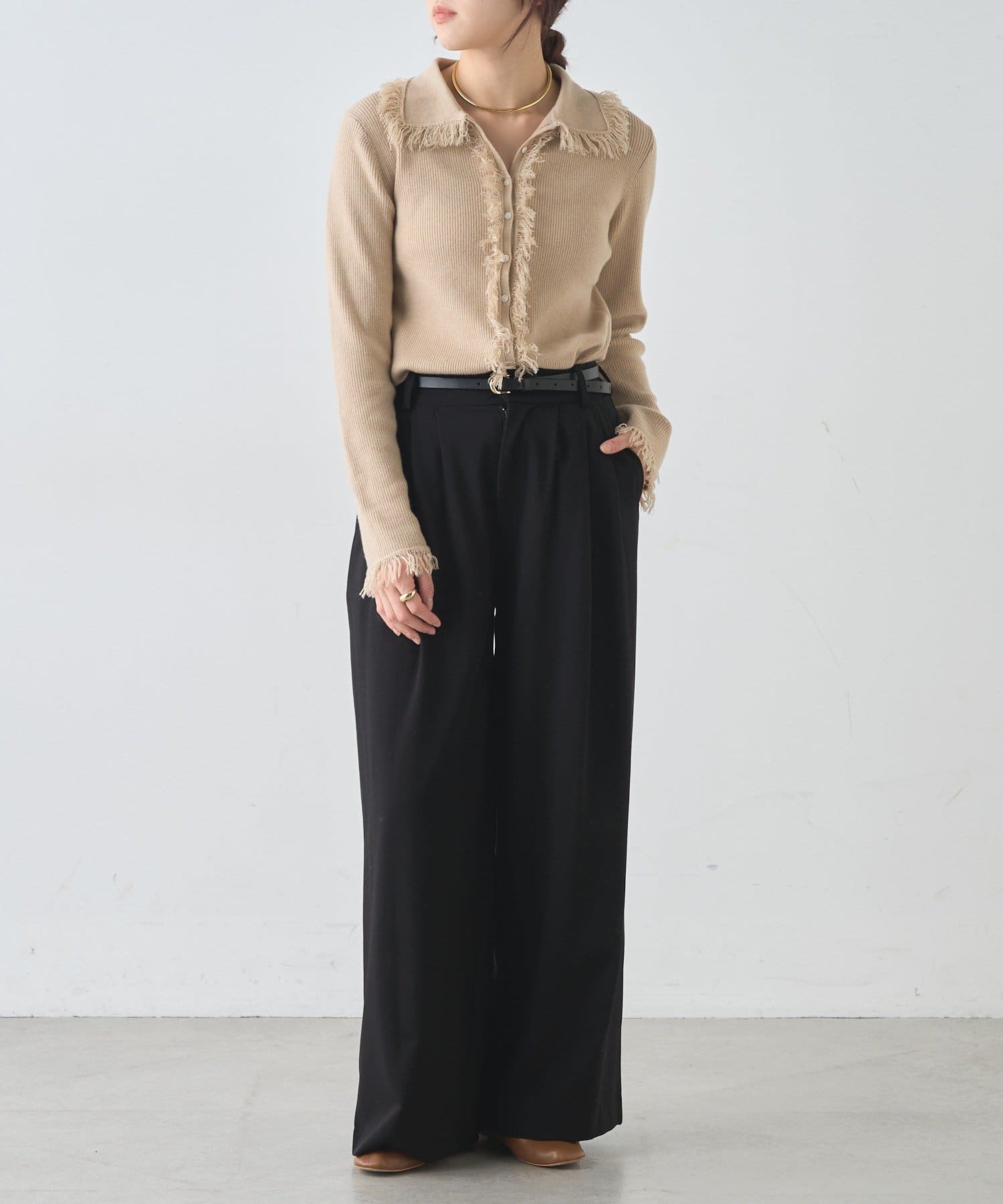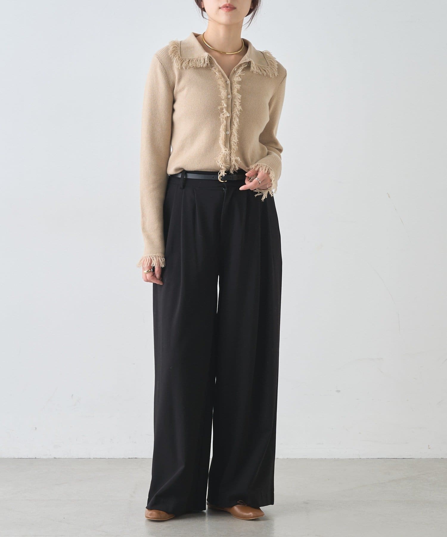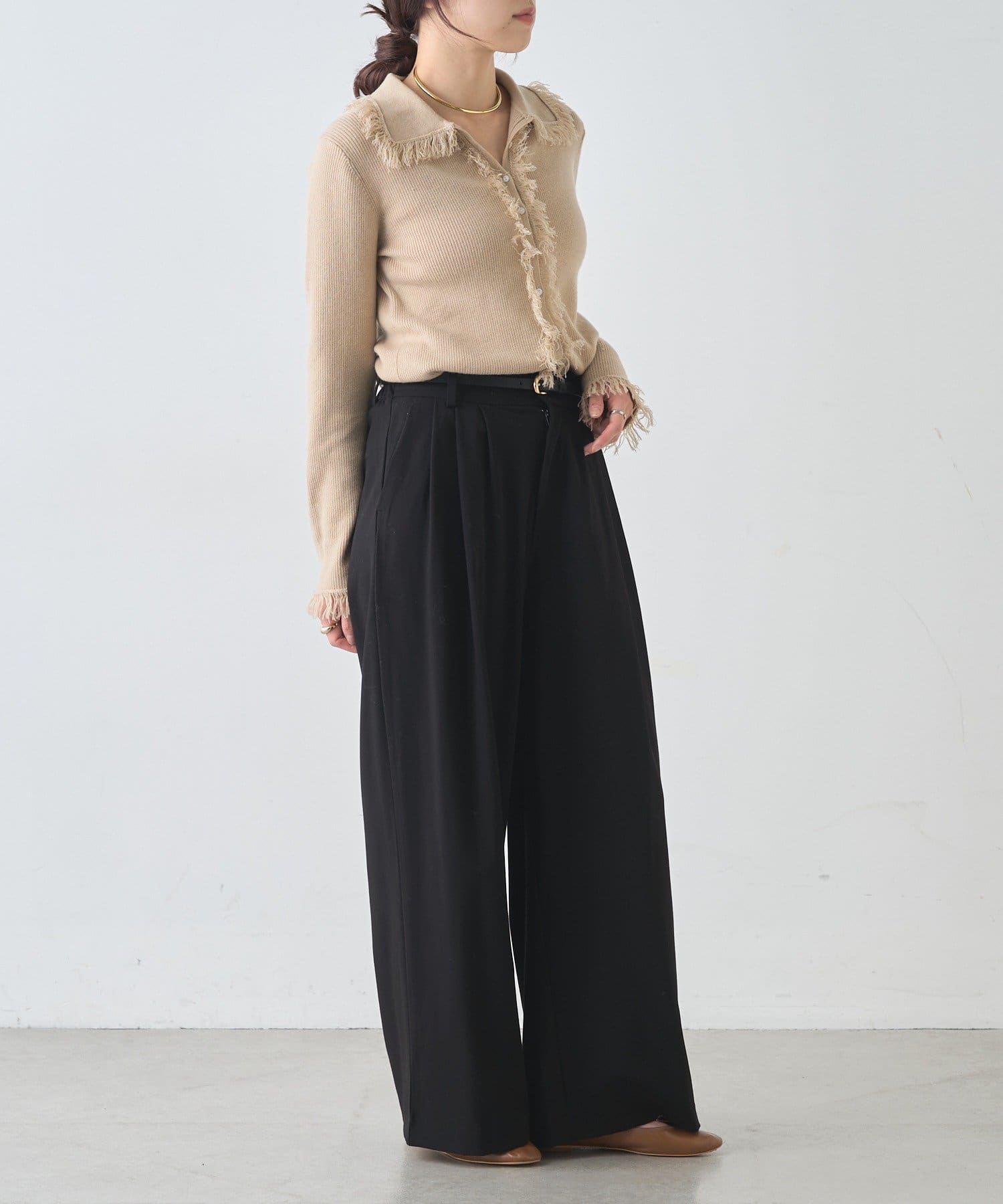 ウエスト部分から入ったタックデザインでスタイルアップが叶うパンツ。