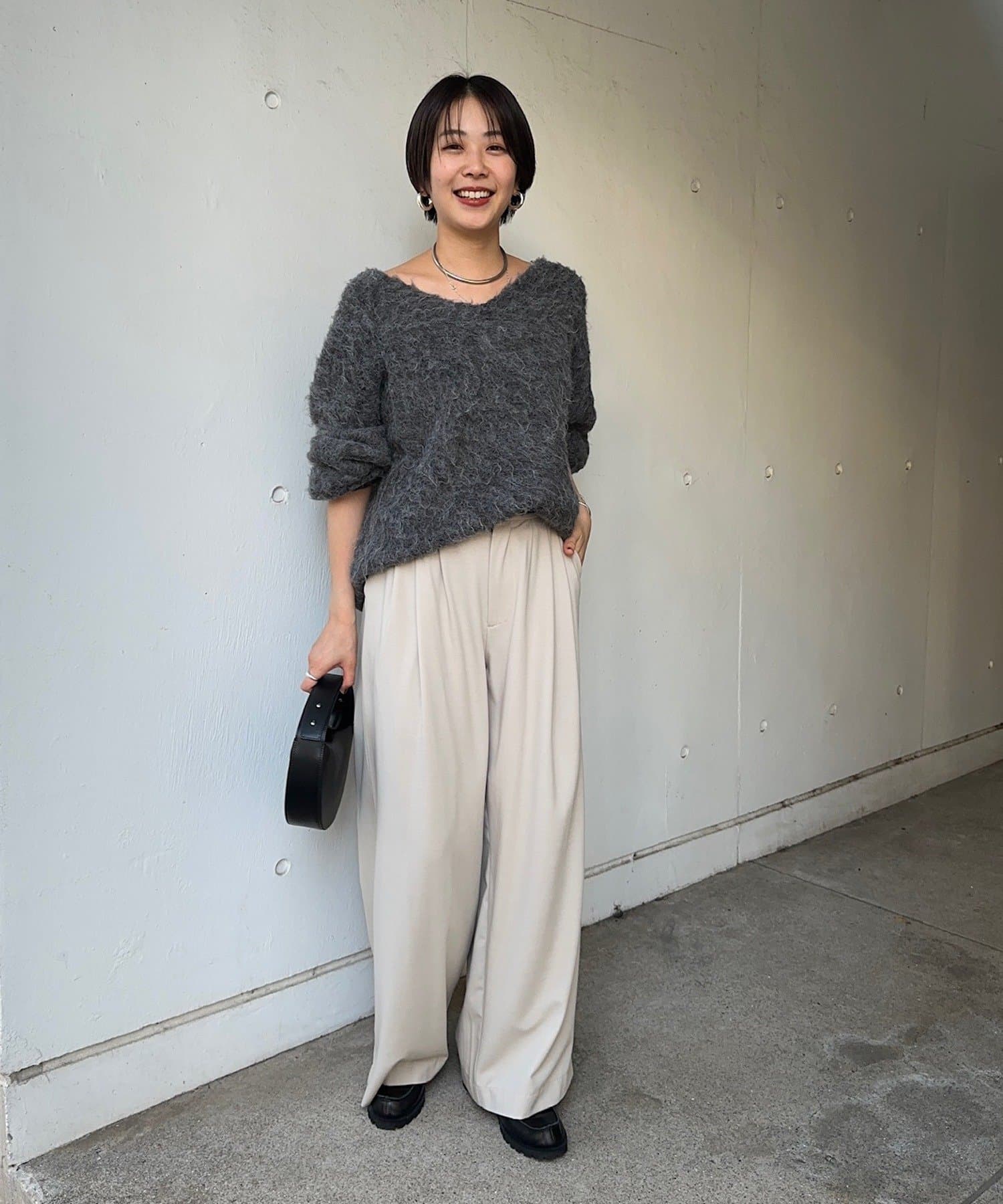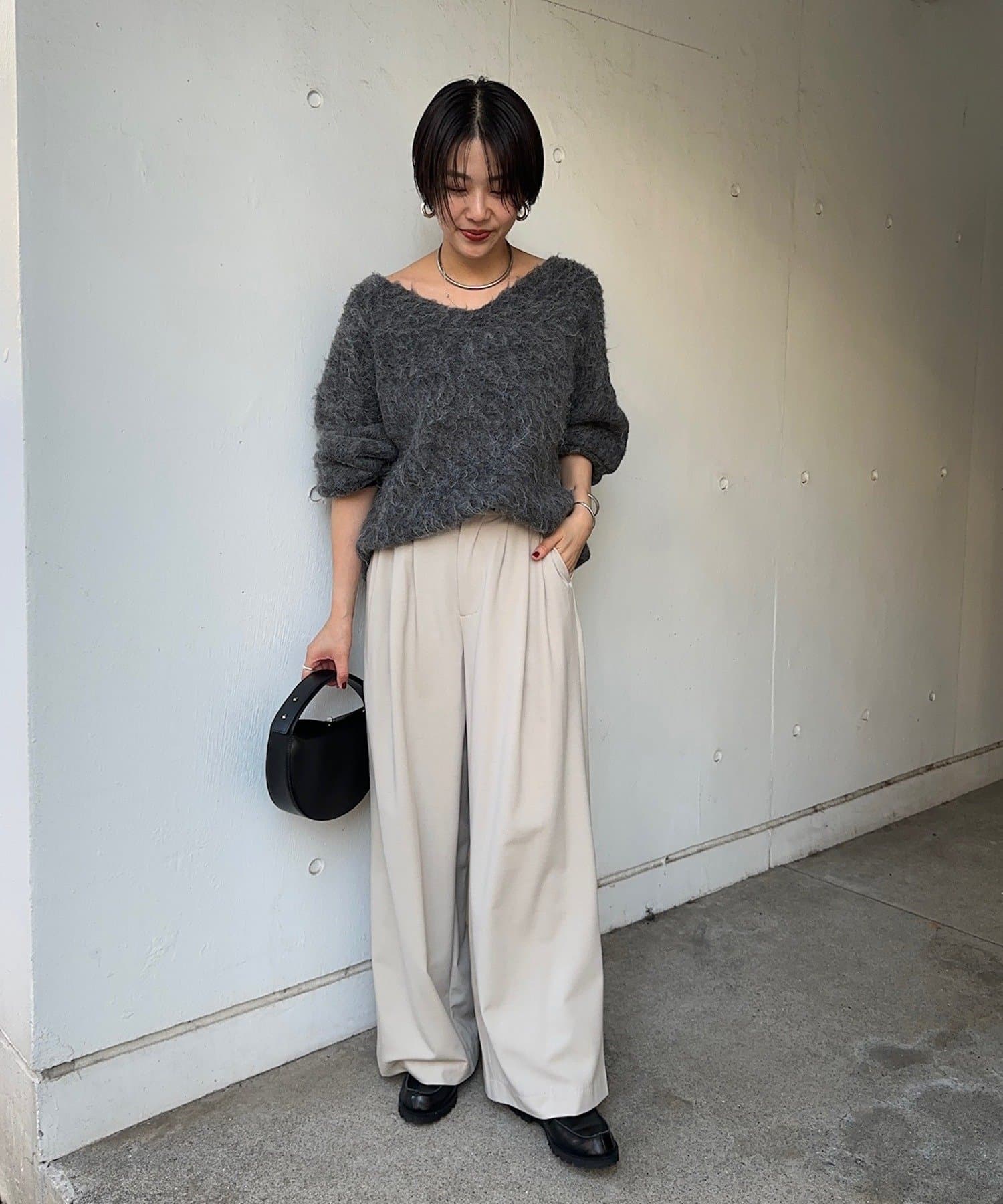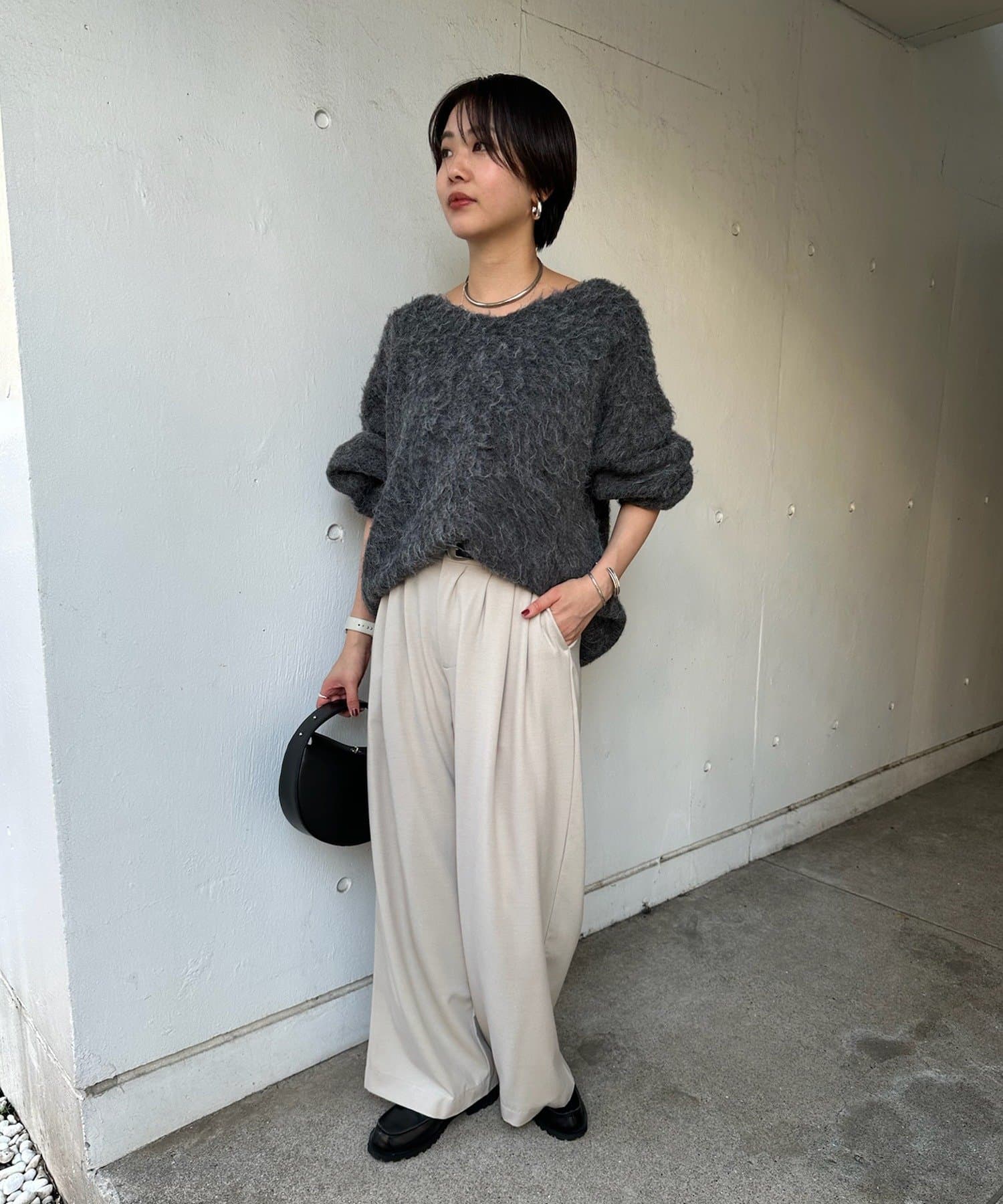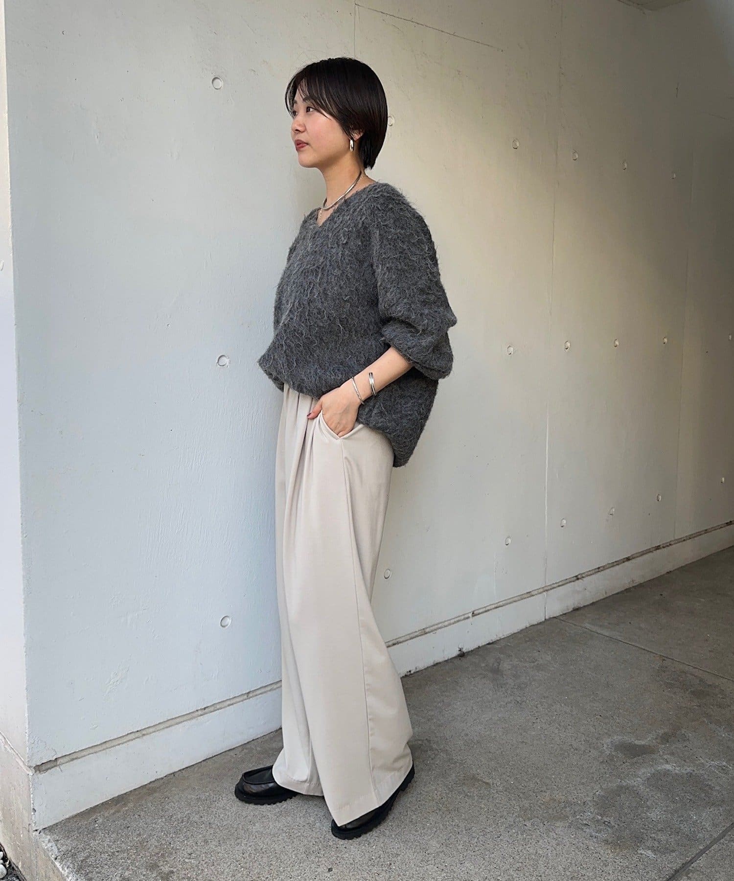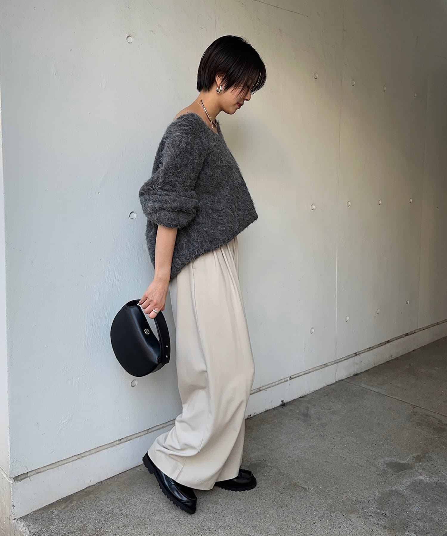 ・上品な落ち感の素材は腰回りをすっきりと、さらに全体のシルエットを綺麗に見せてくれます。