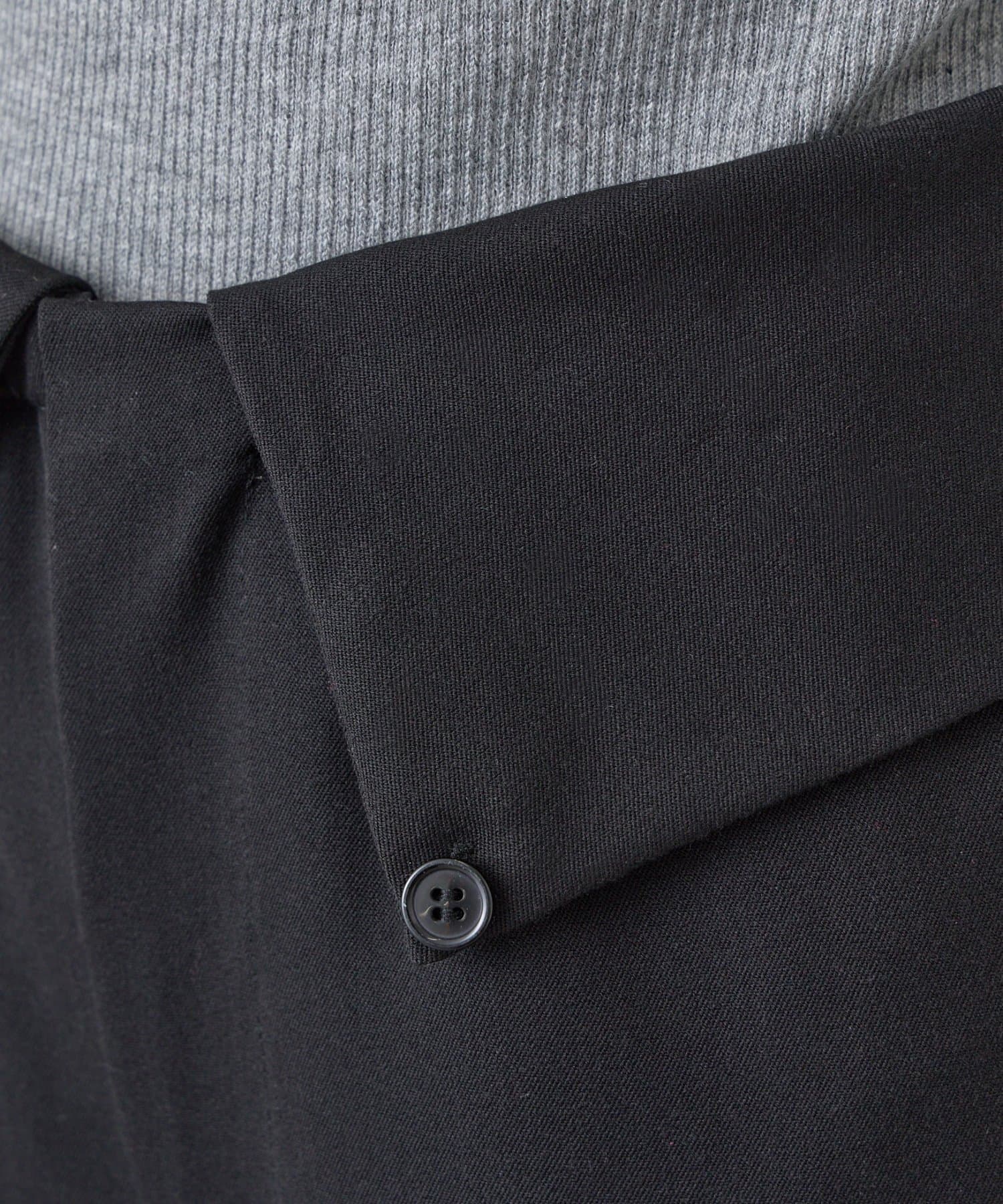 着こなしのポイントになるカバーベルトは、ボタンで取り外しが可能な仕様。