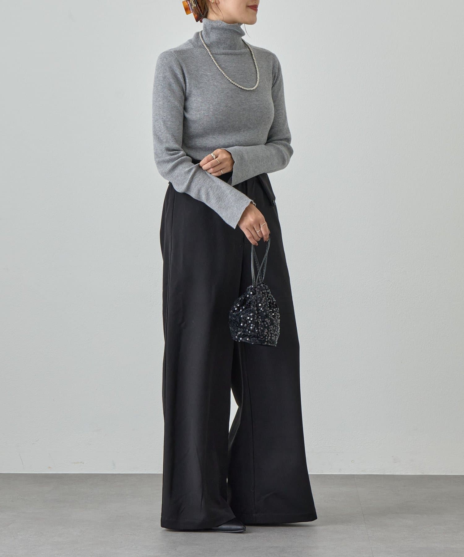 デザイン性のあるパンツなので、トップスはシンプル合わせがおすすめ。