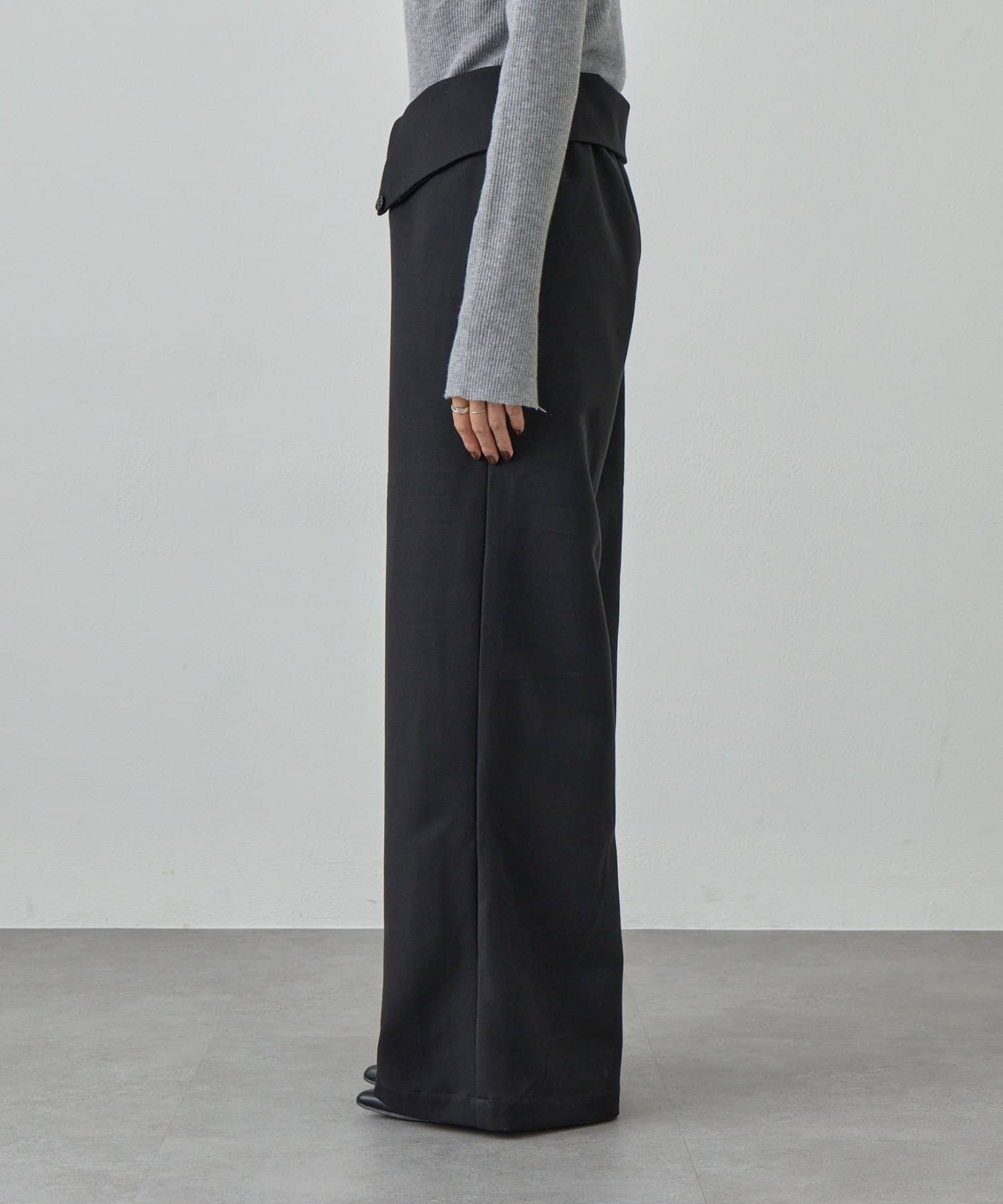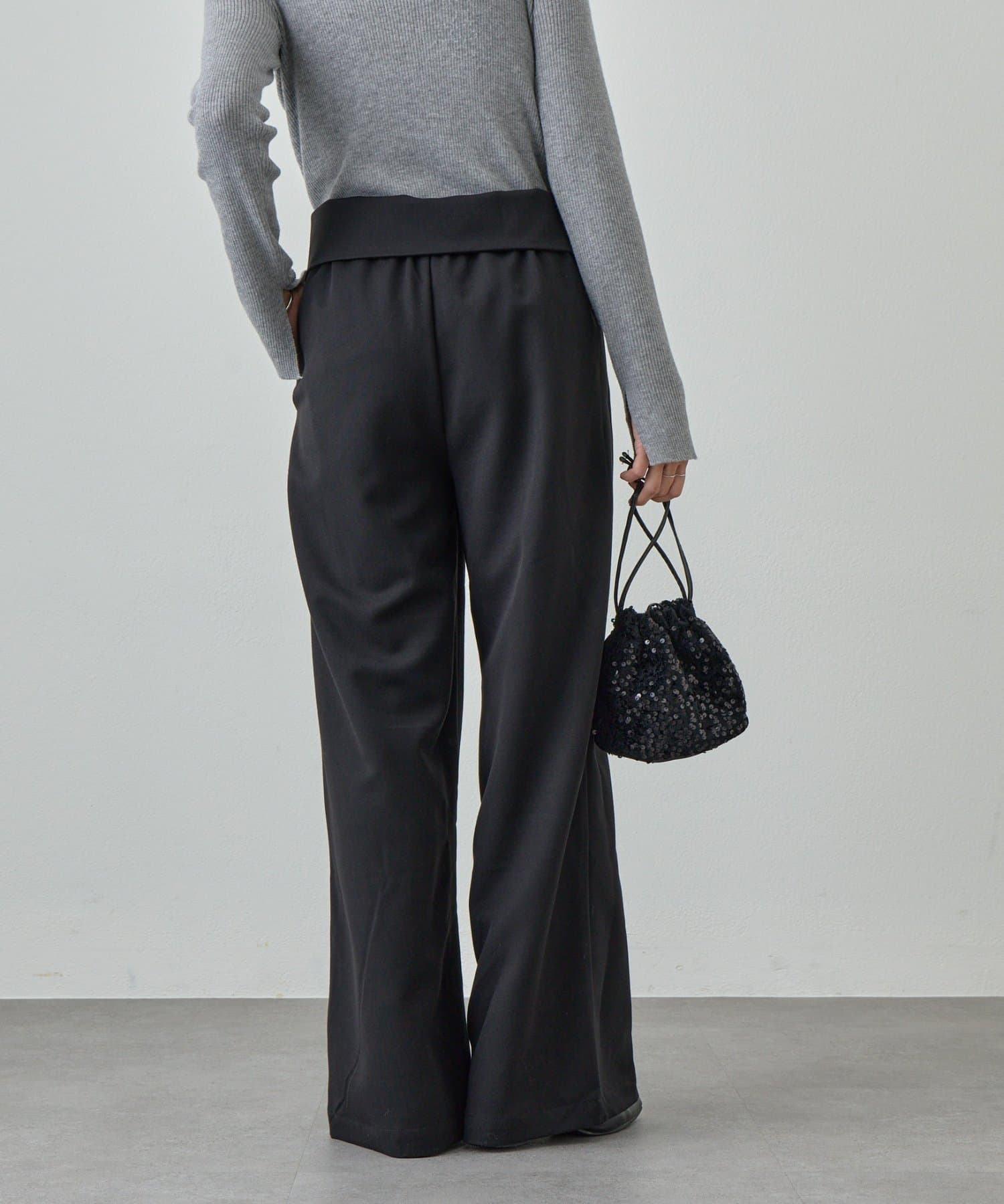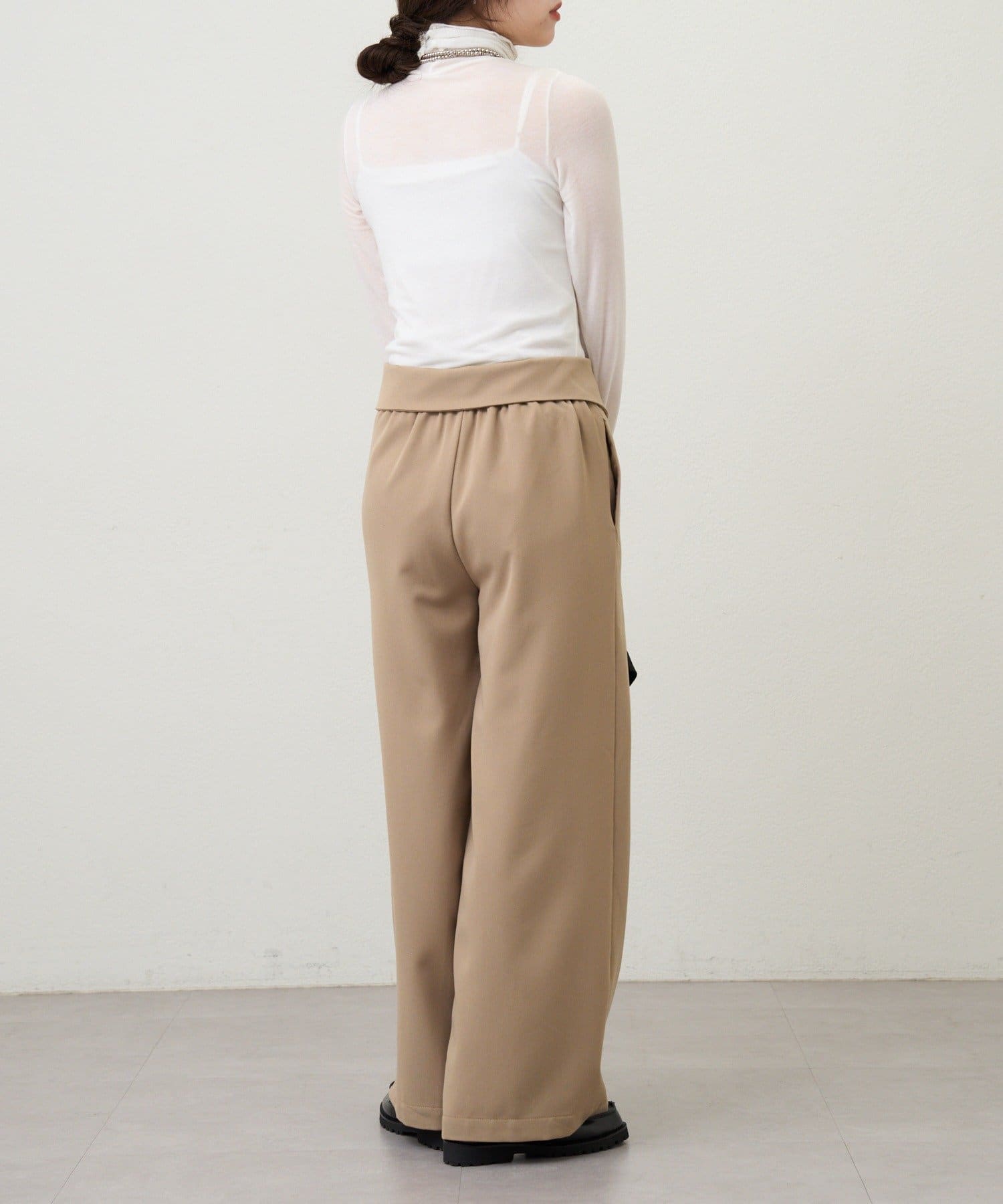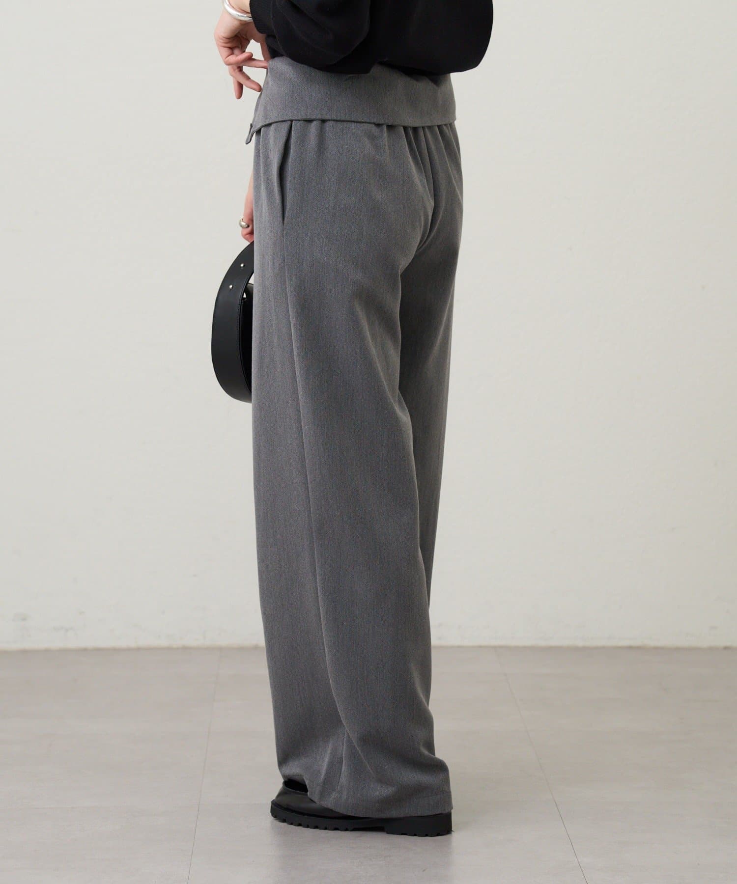 ウエストのデザインが目を惹くパンツ。