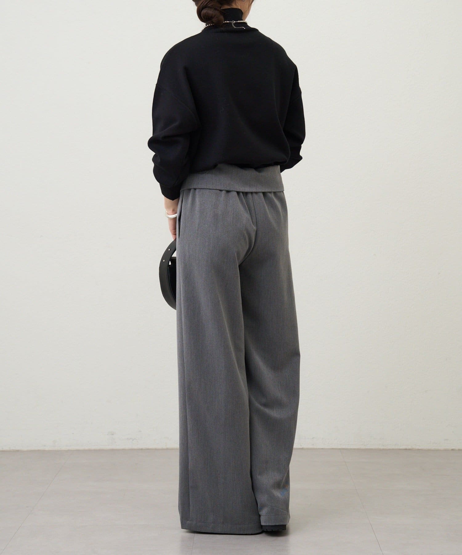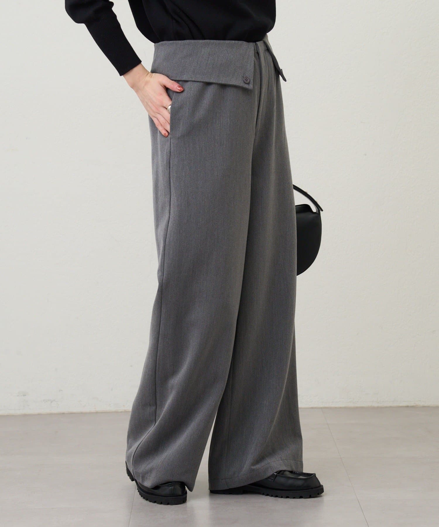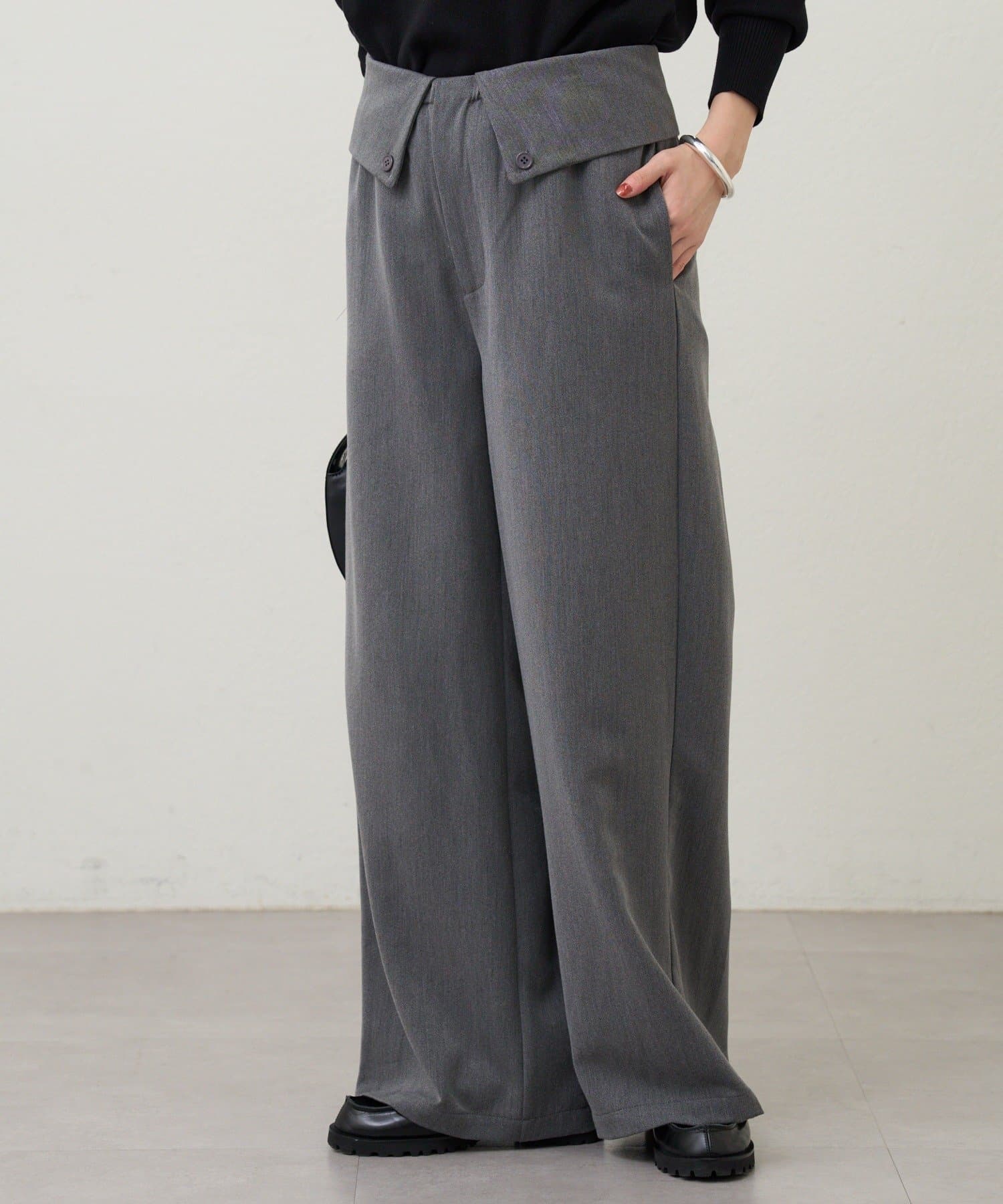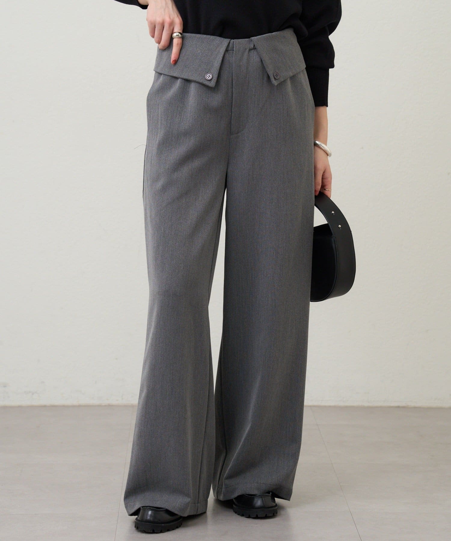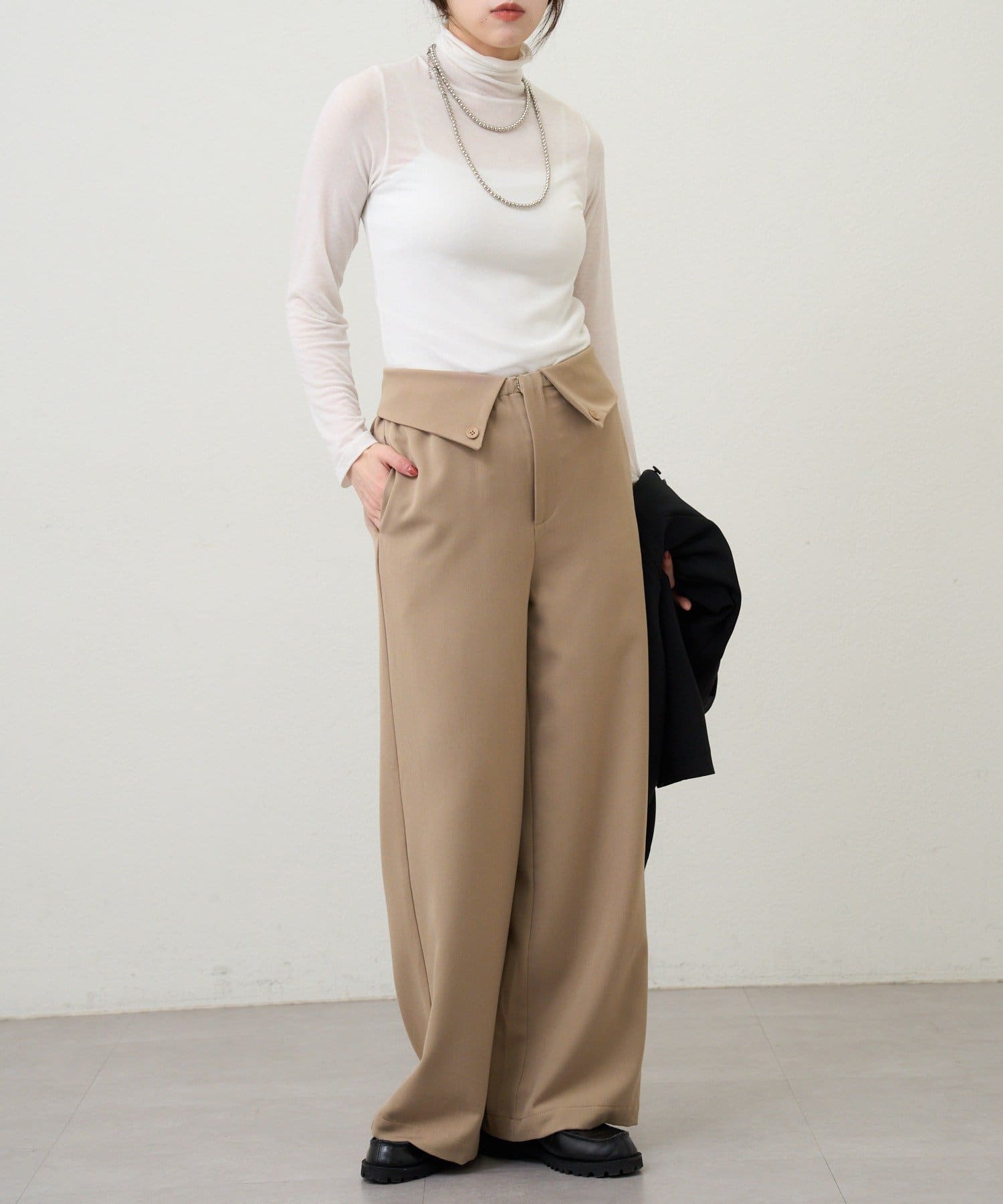 ウエストのデザインが目を惹くパンツ。