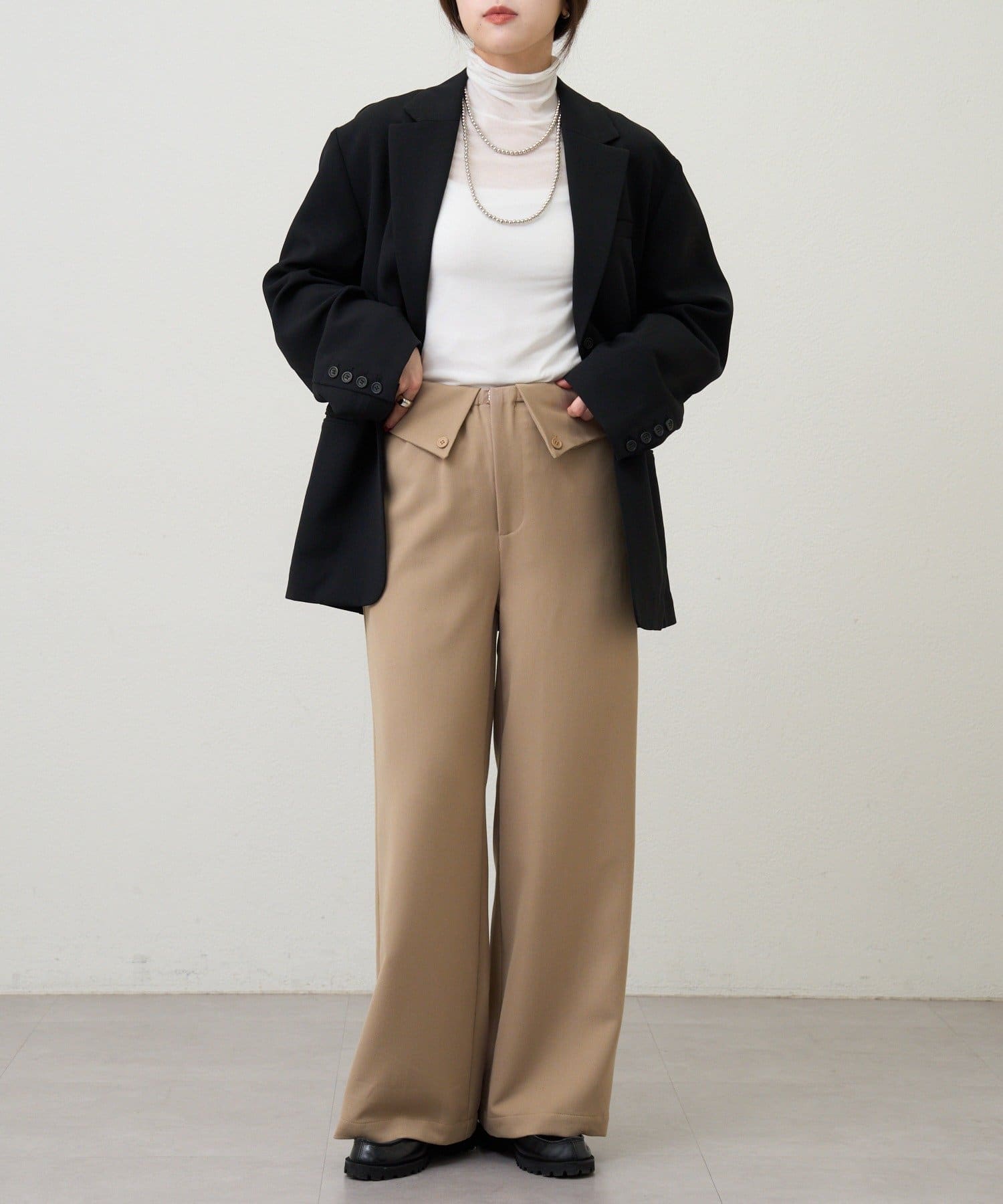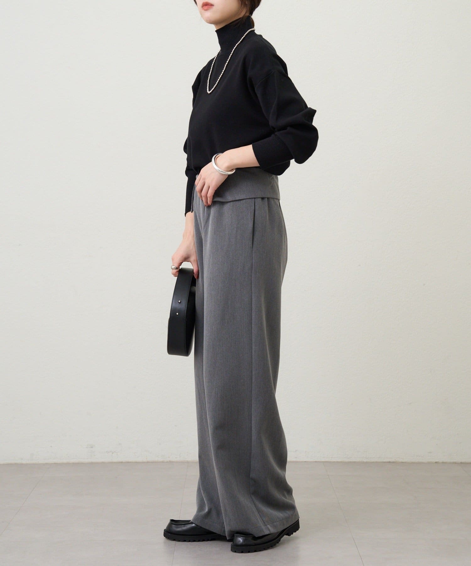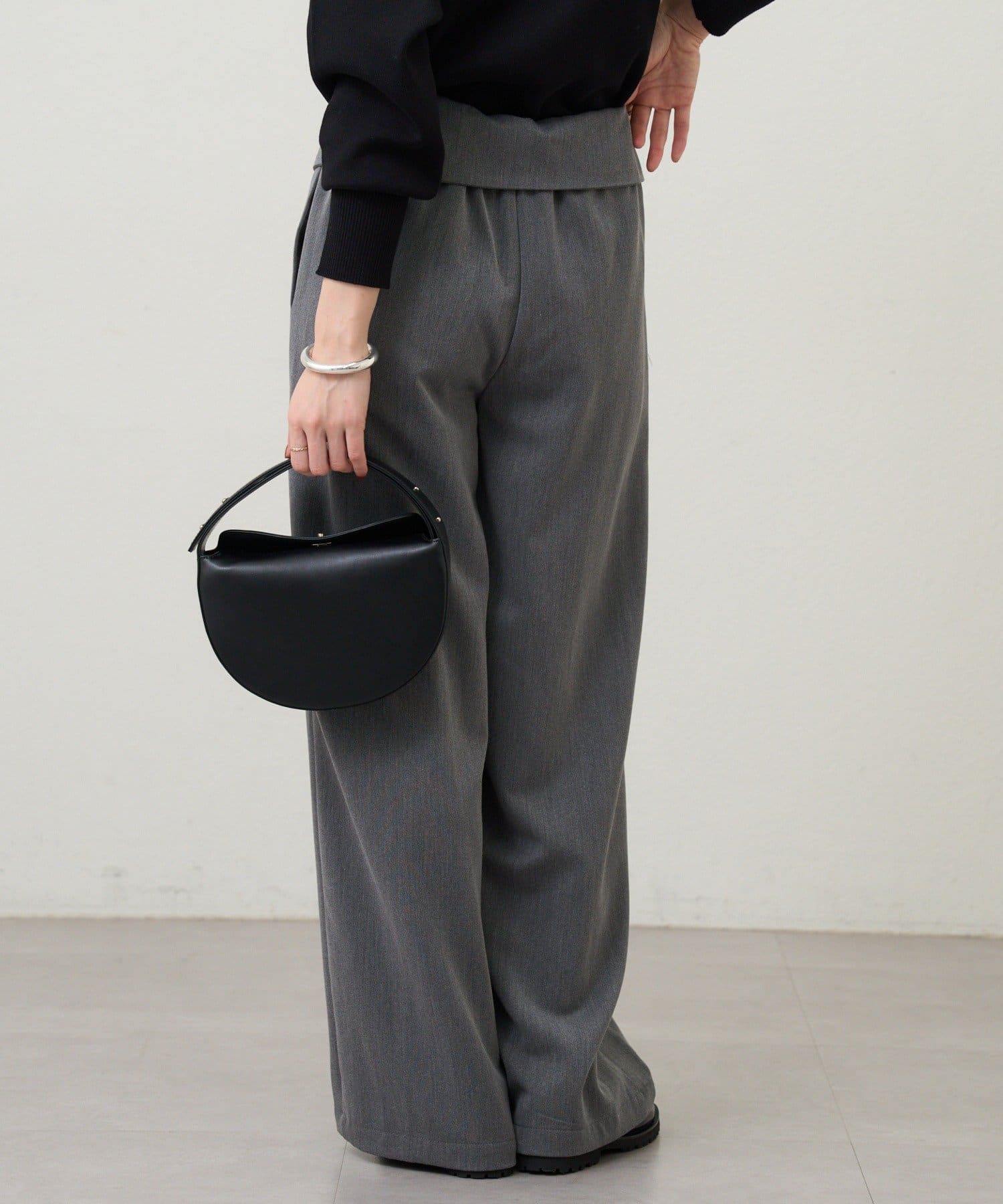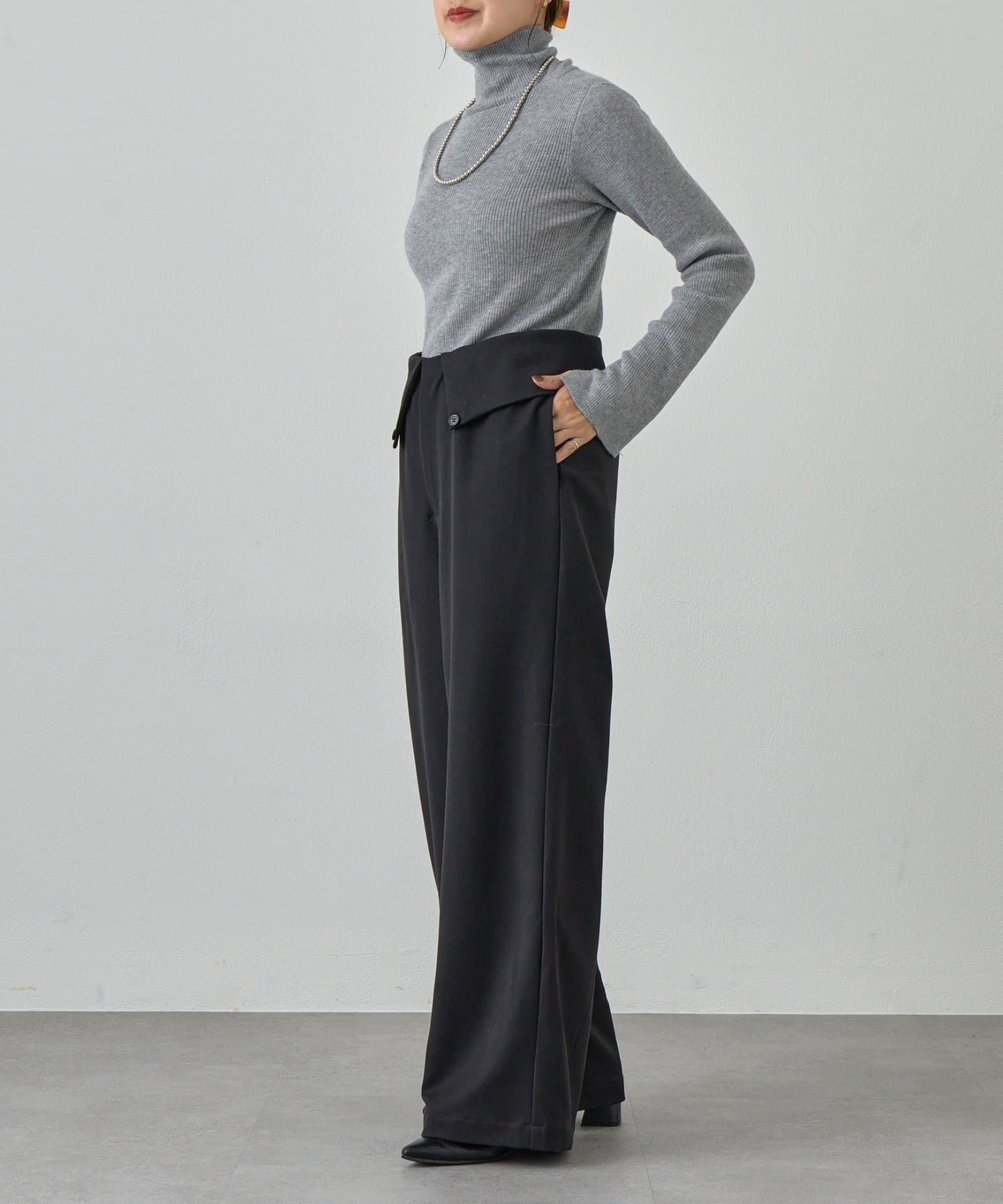 ウエストのデザインが目を惹くパンツ。
