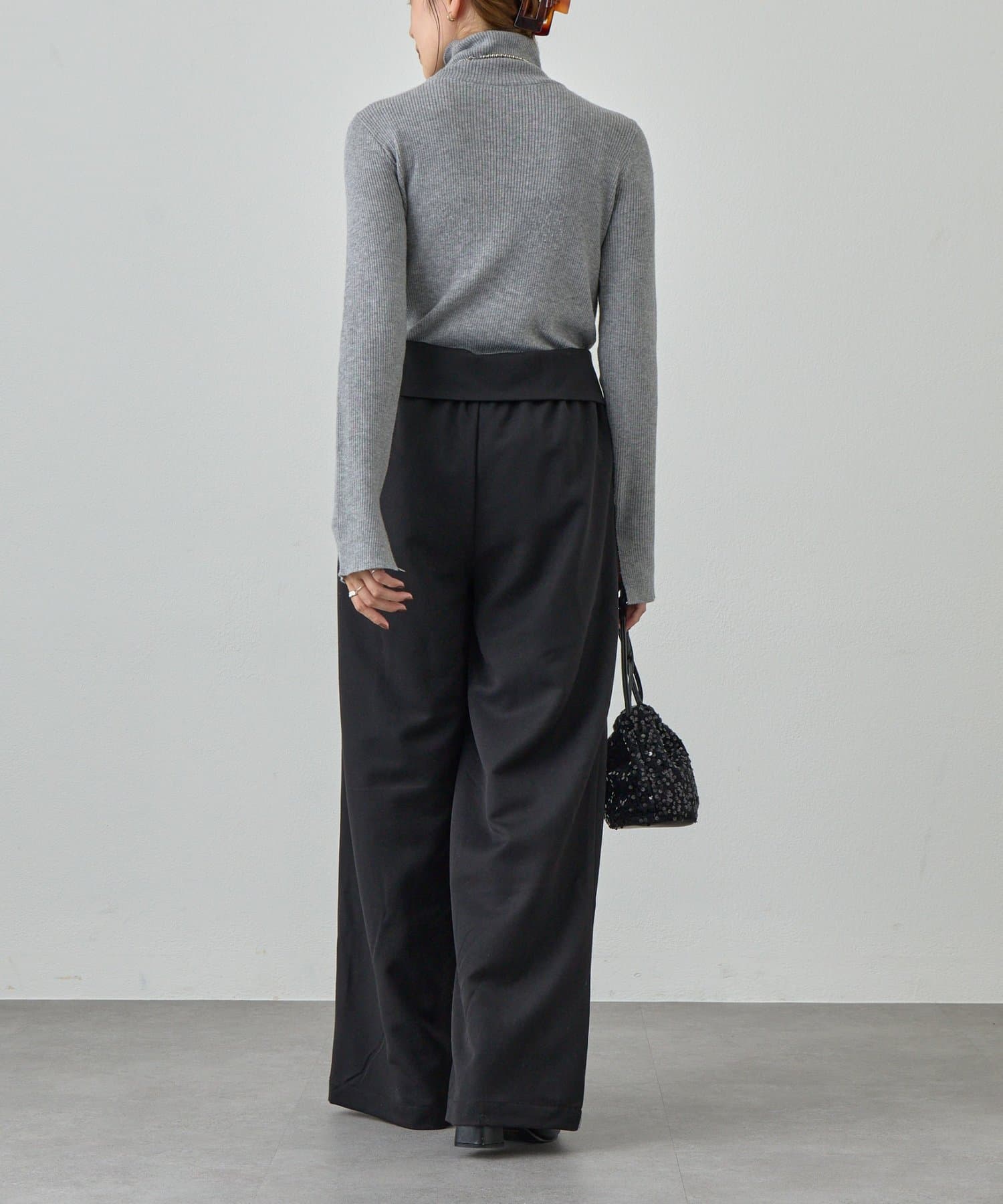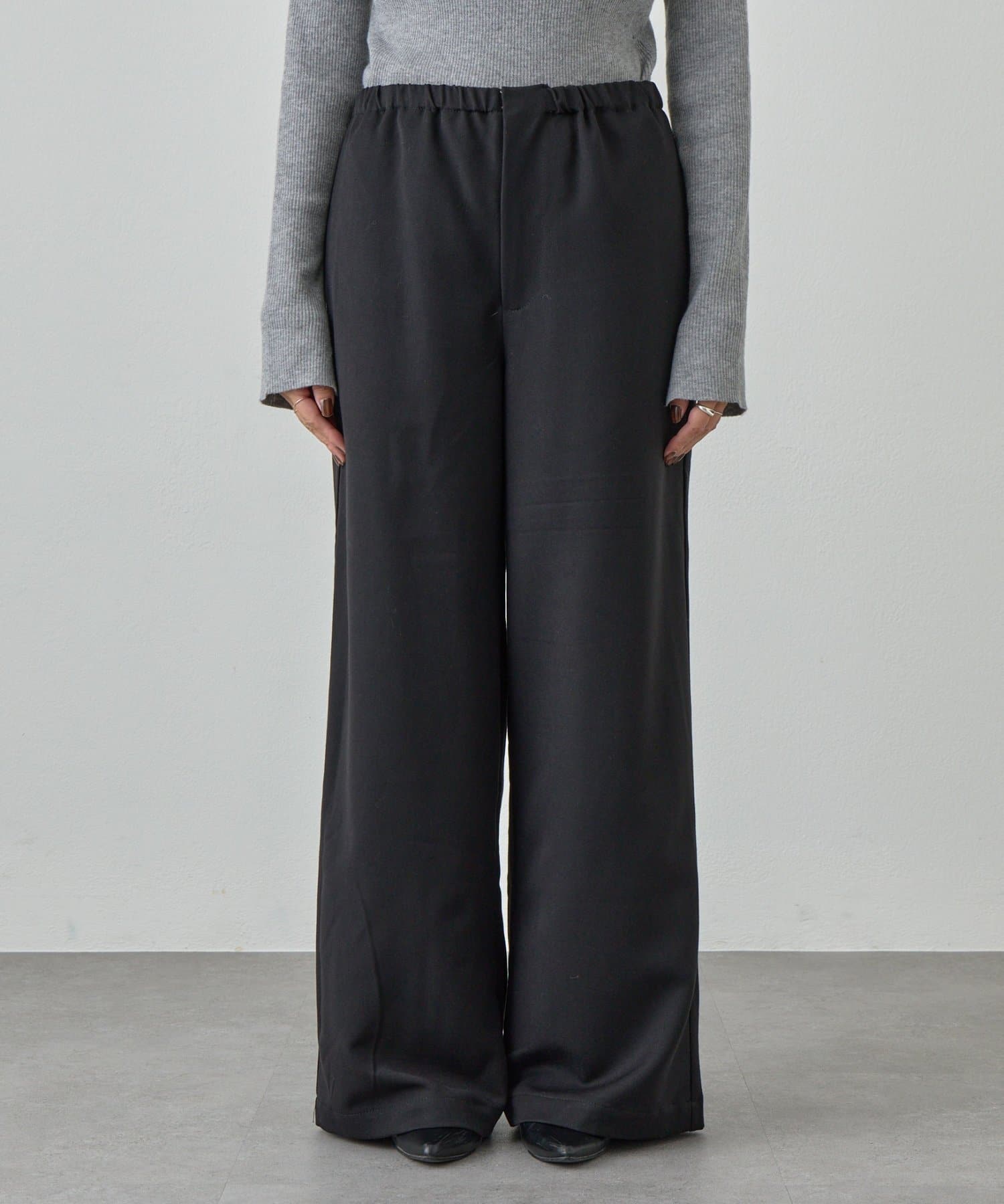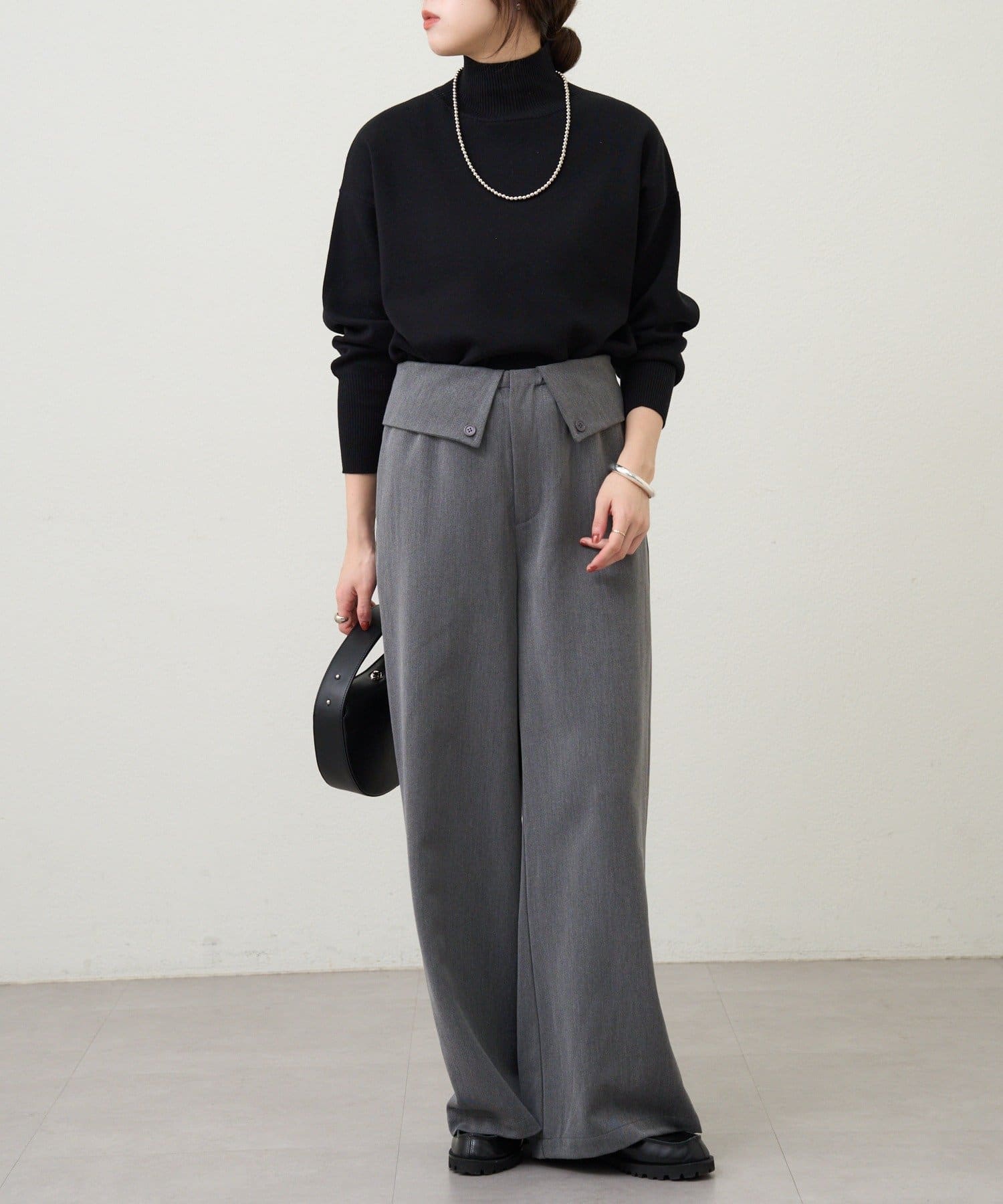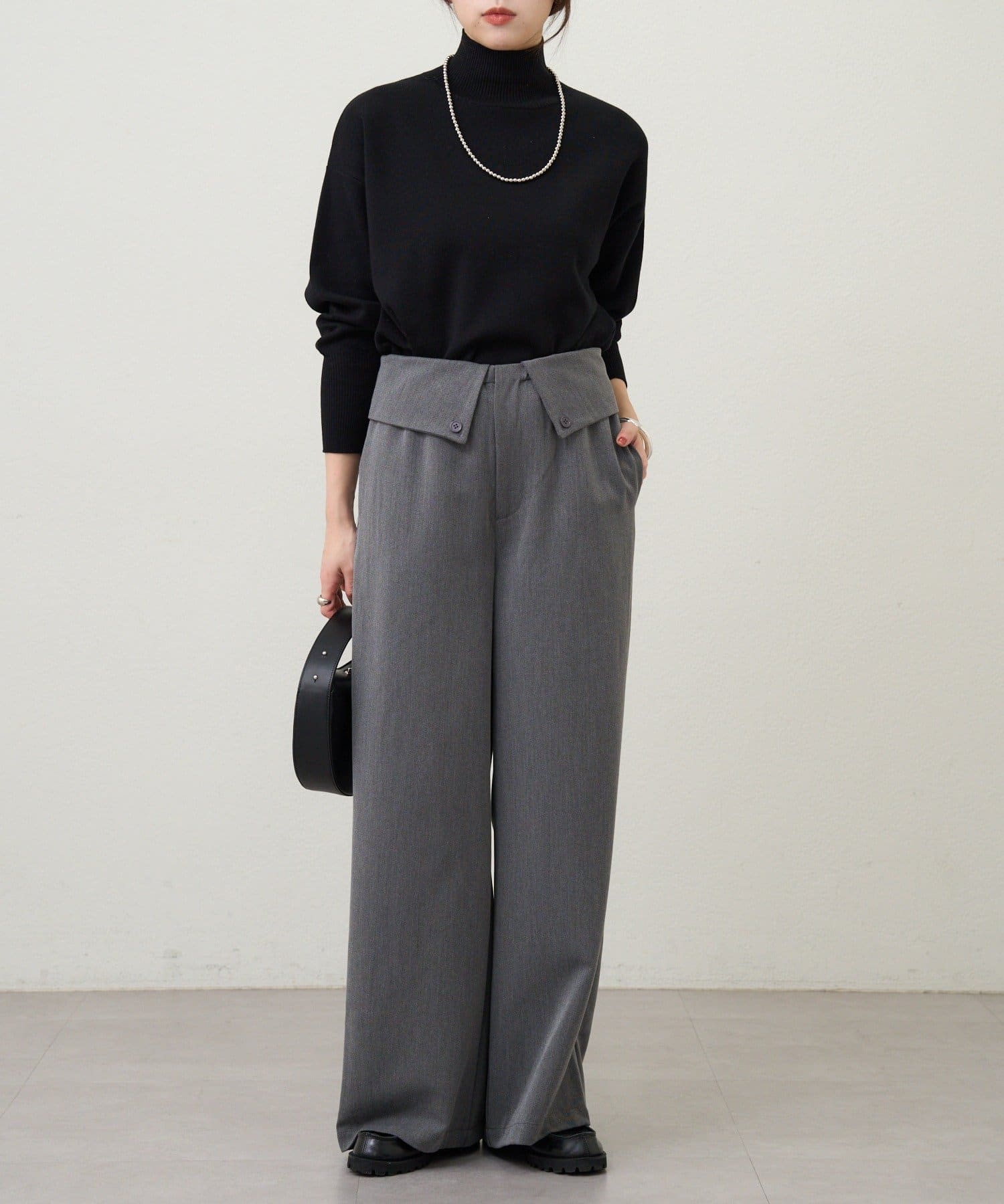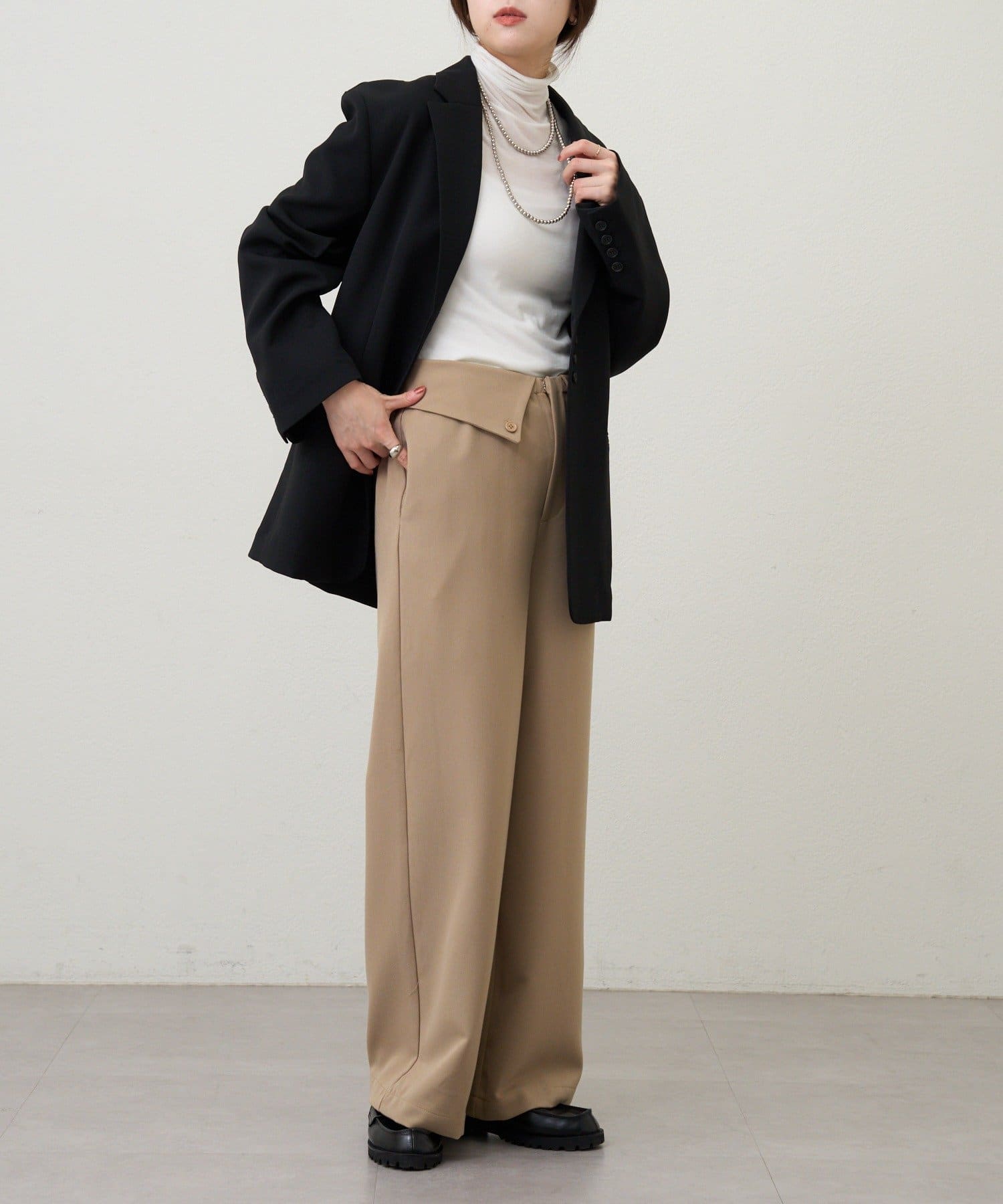 ウエストのデザインが目を惹くパンツ。