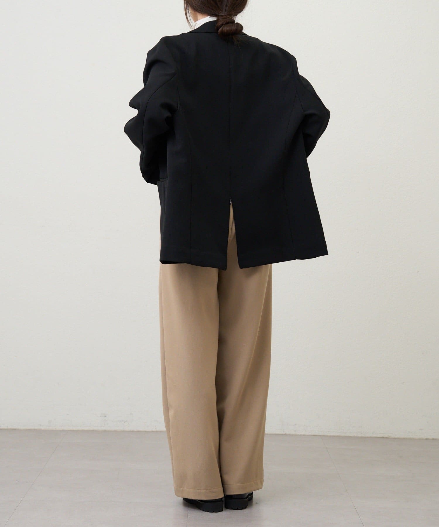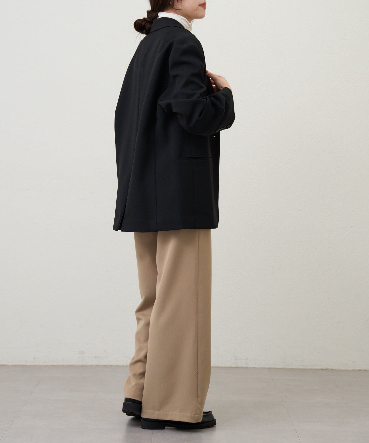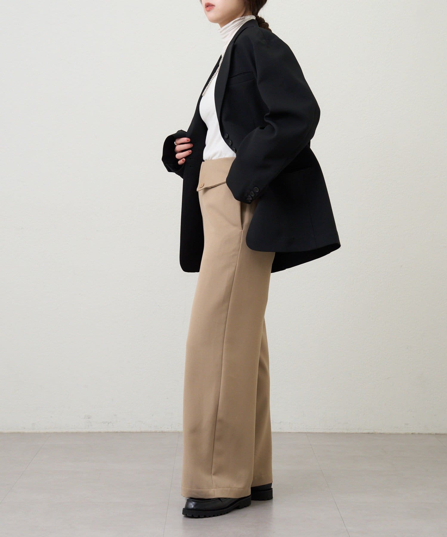 デザイン性のあるパンツなので、トップスはシンプル合わせがおすすめ。