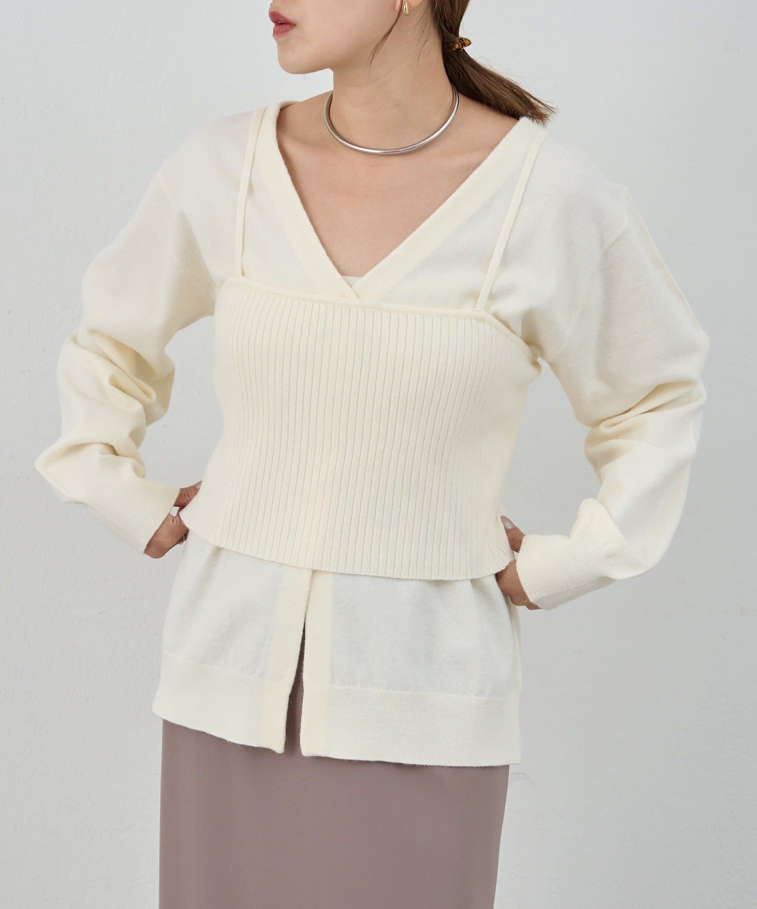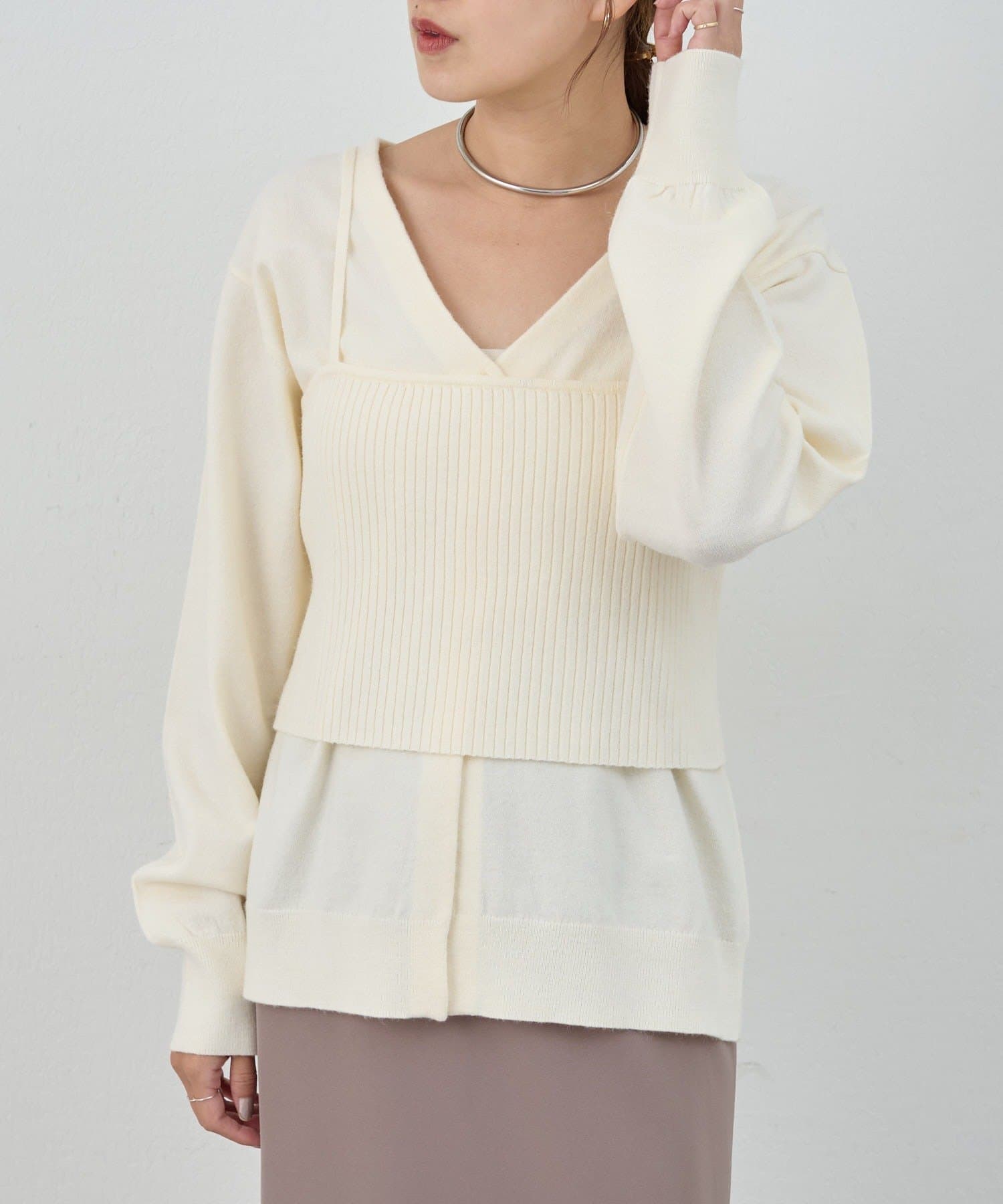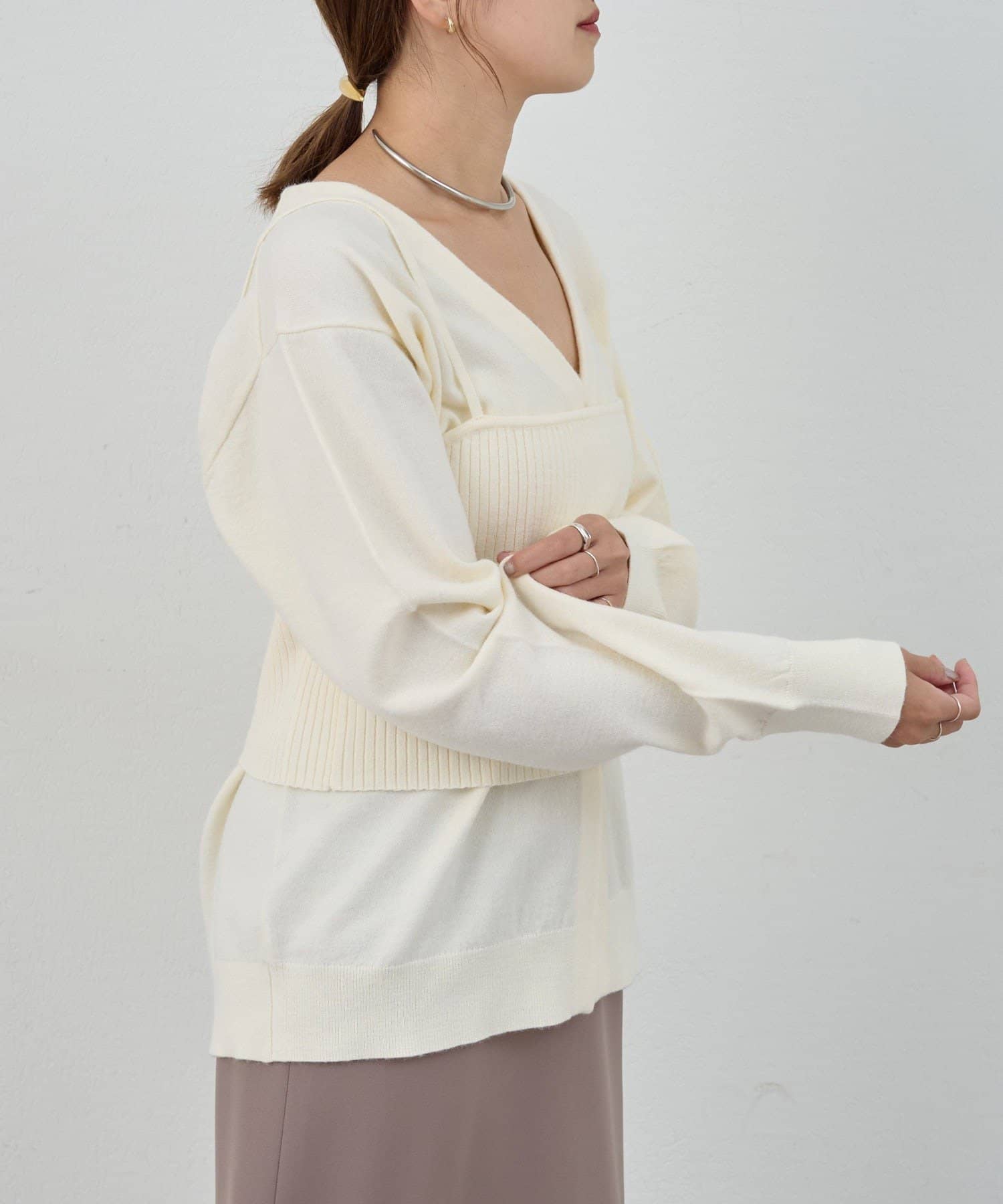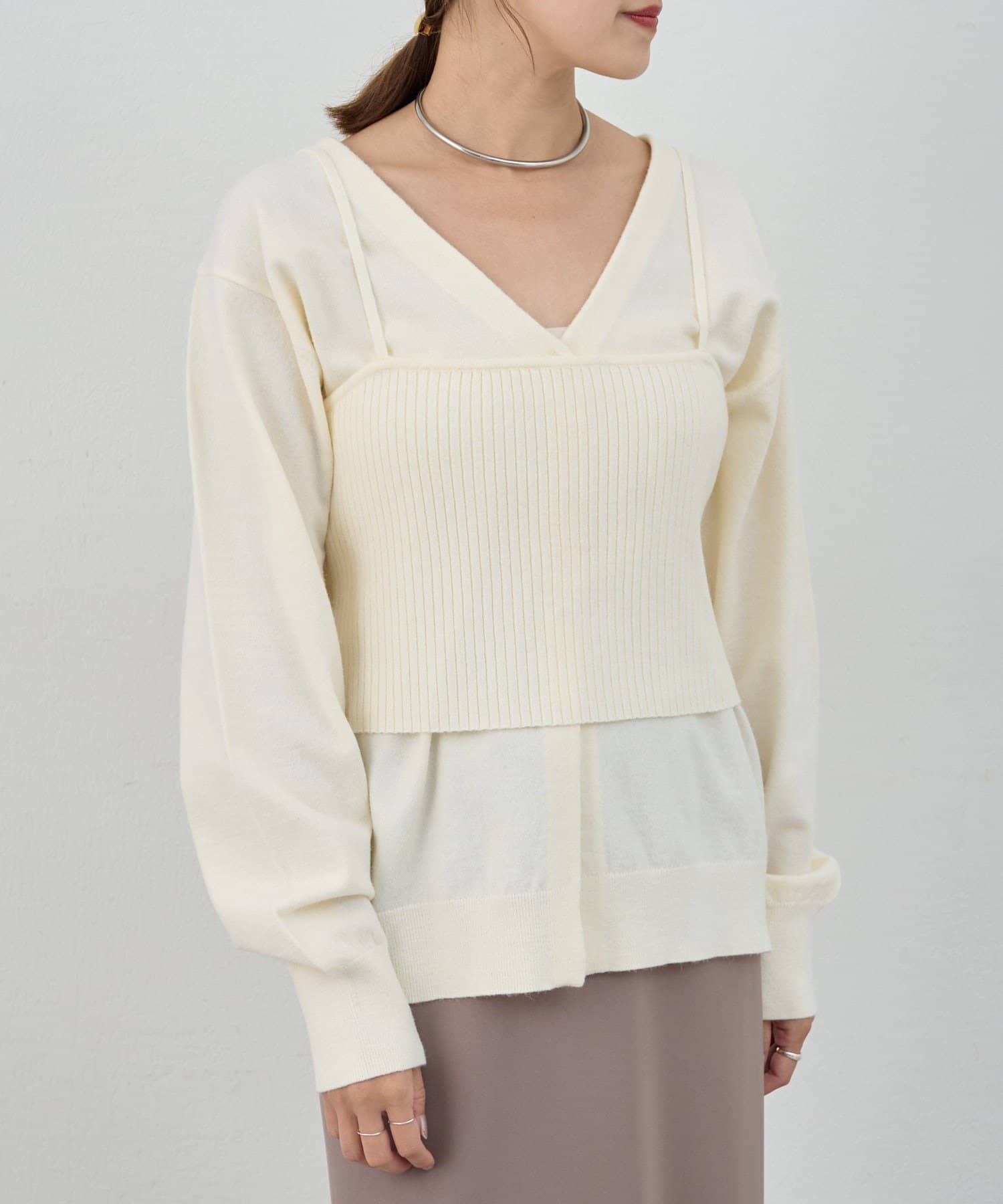 同素材のビスチェがセットになったレイヤードを楽しめるニット。
