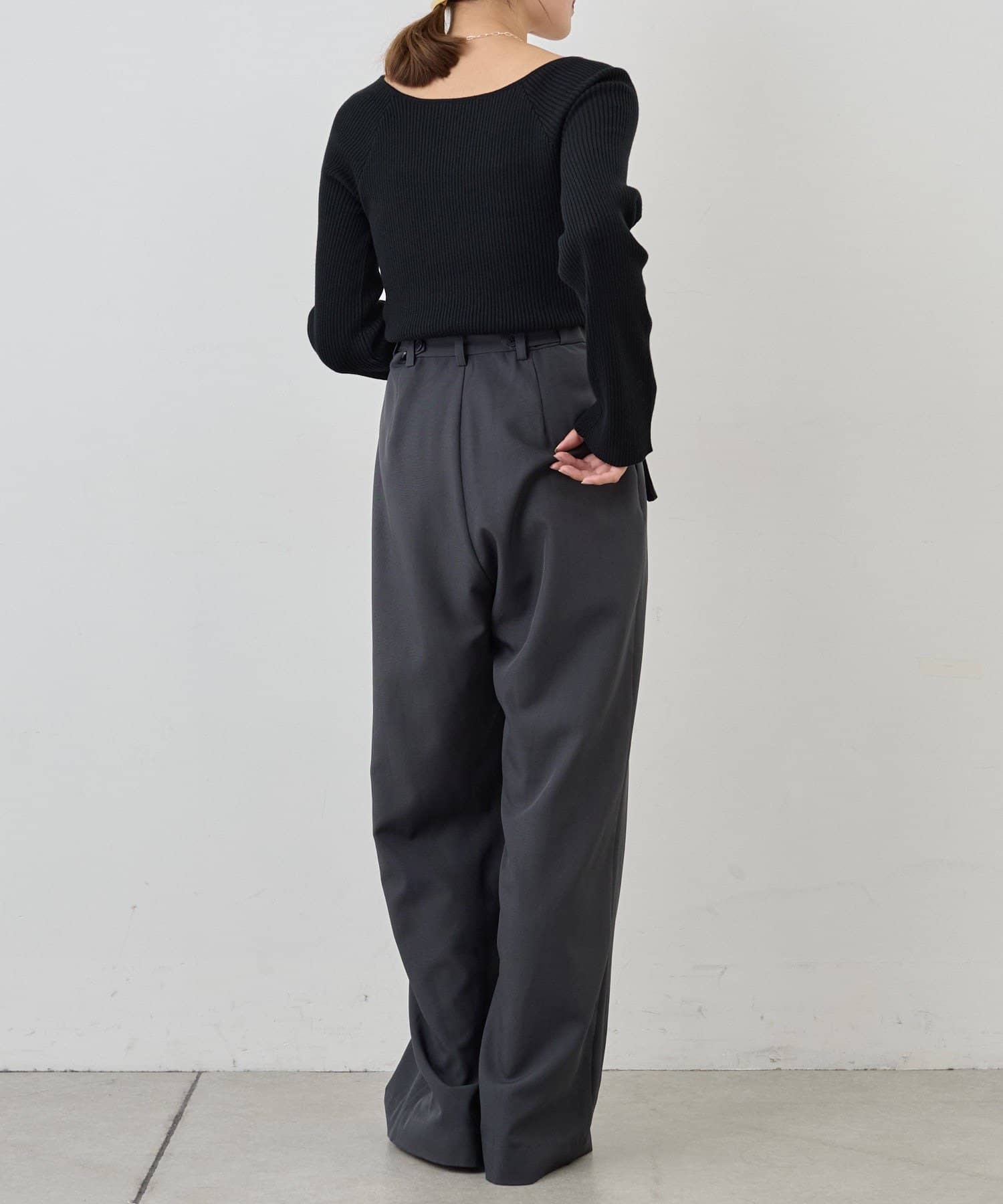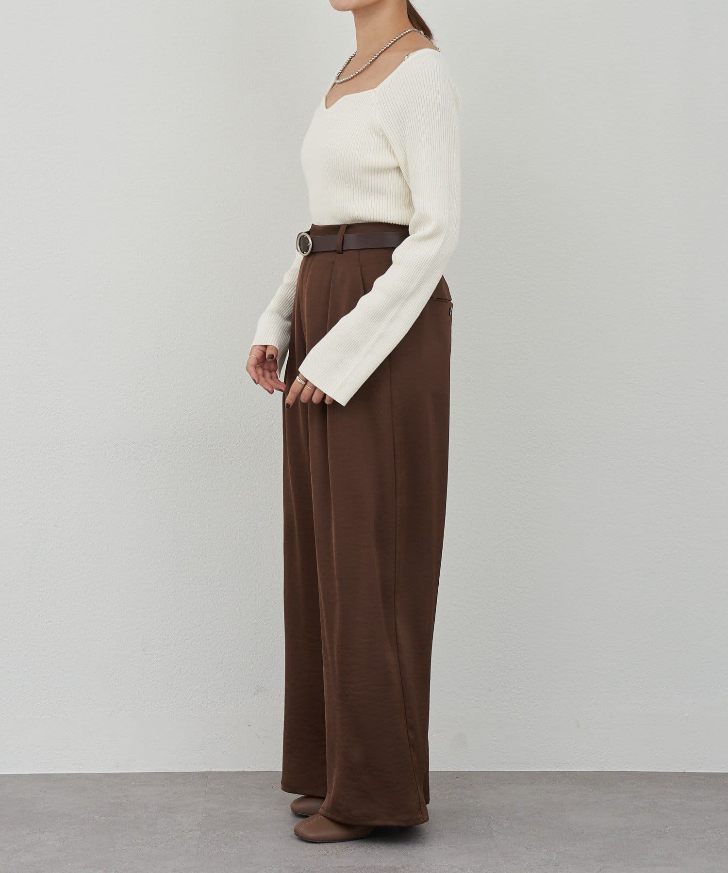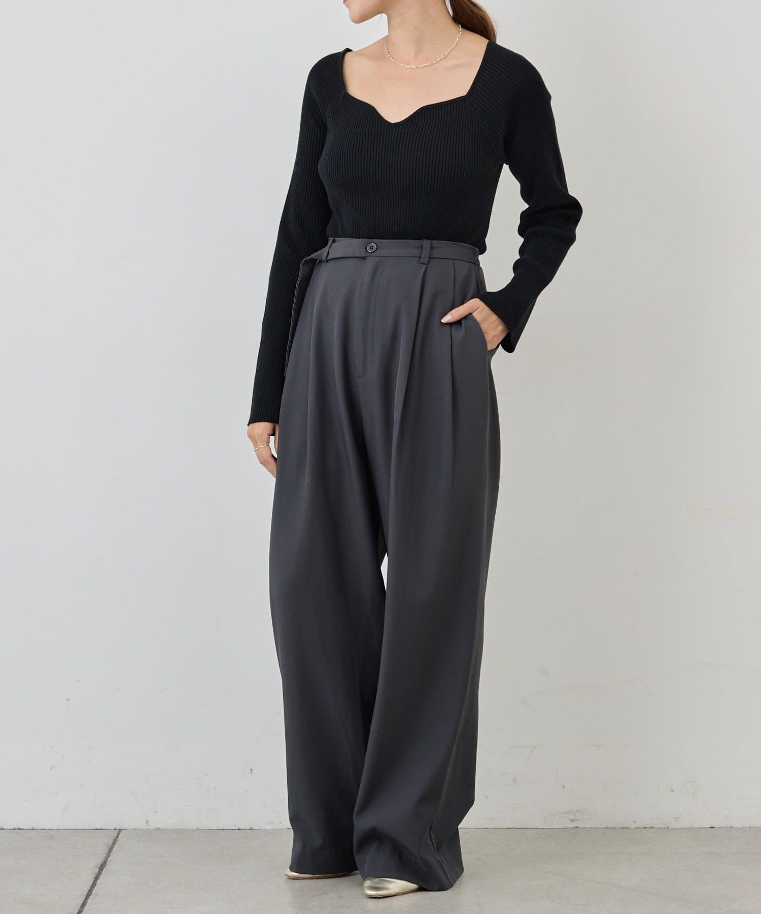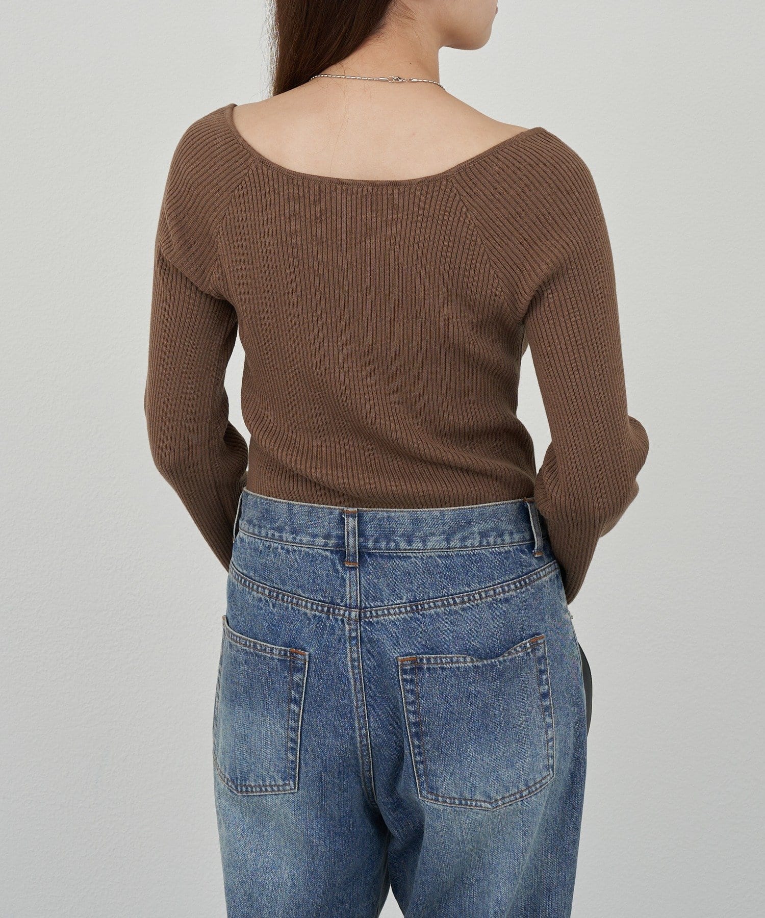 ニュアンスのある首元で、デコルテがきれいに見えるようにこだわったデザインのニット。