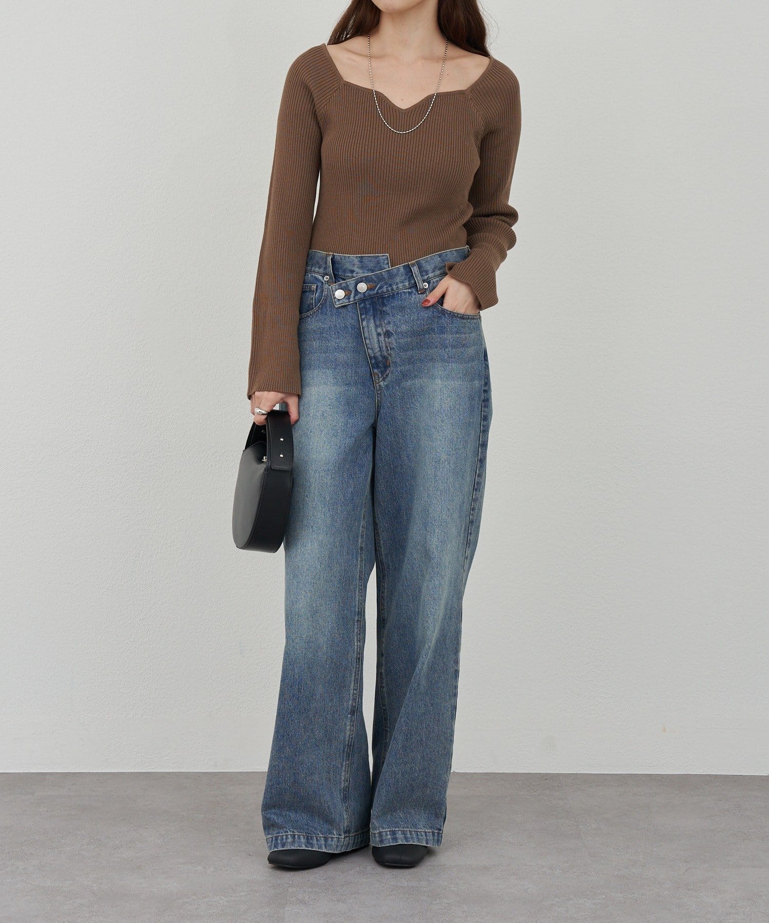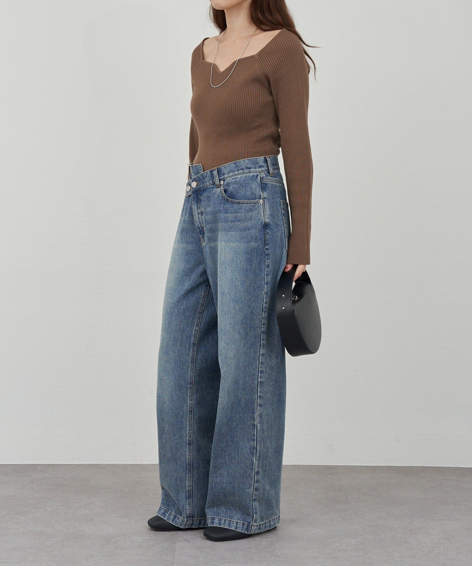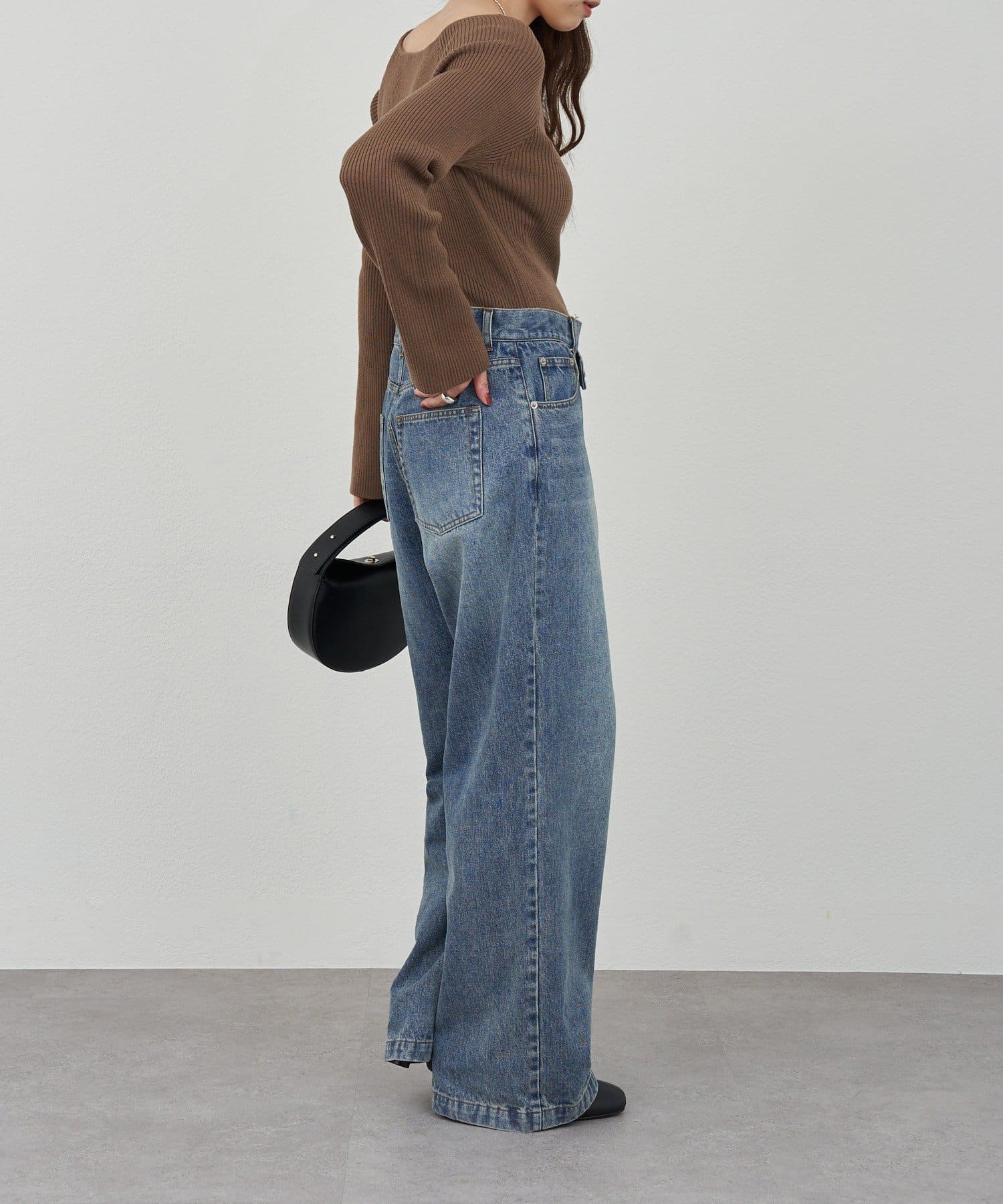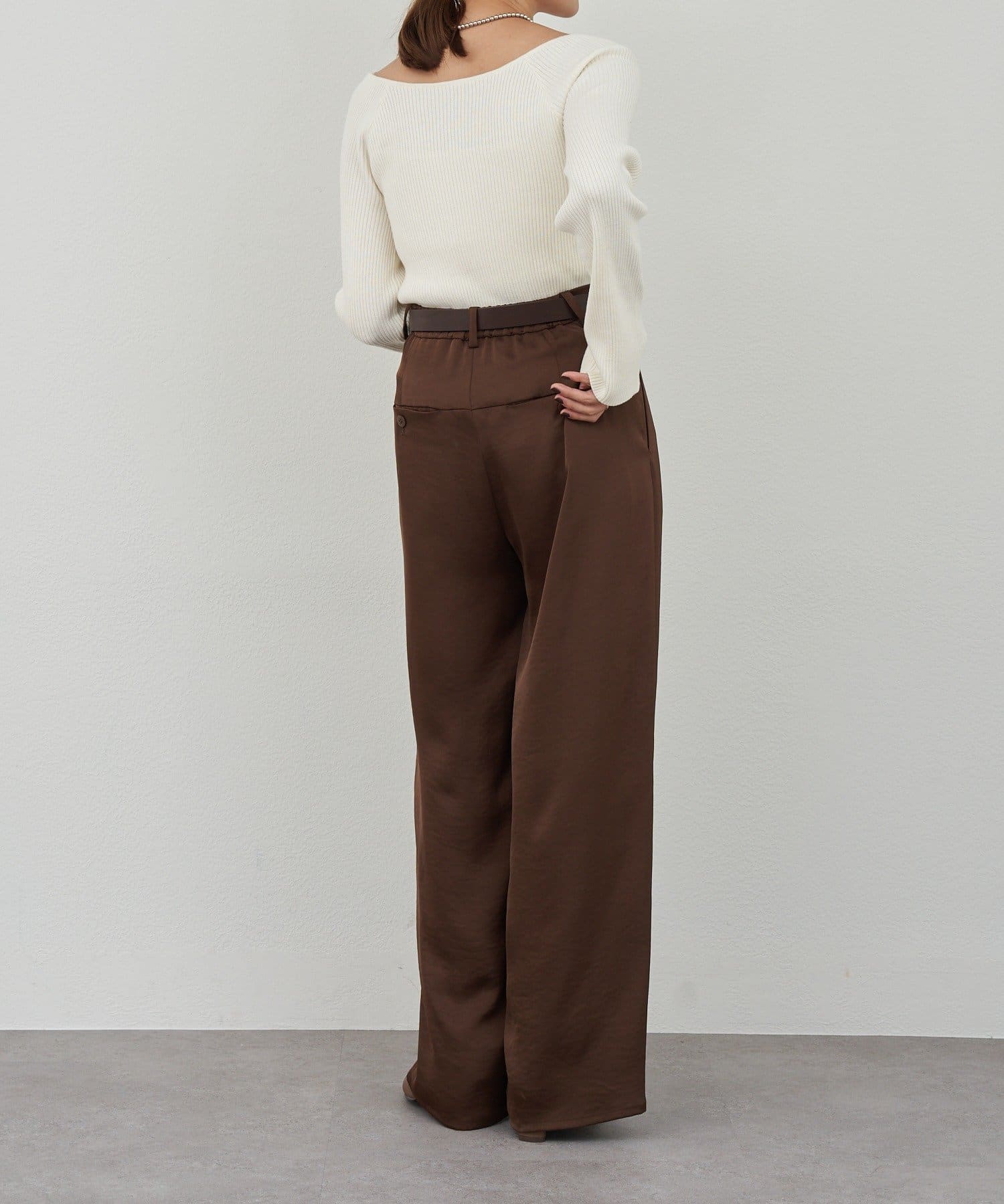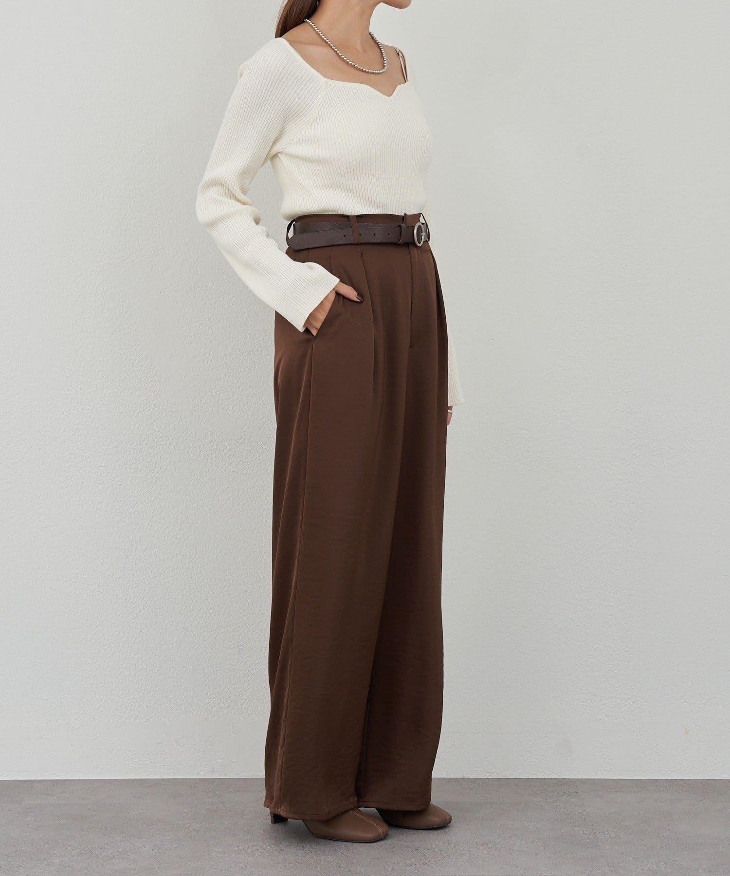 ニュアンスのある首元で、デコルテがきれいに見えるようにこだわったデザインのニット。