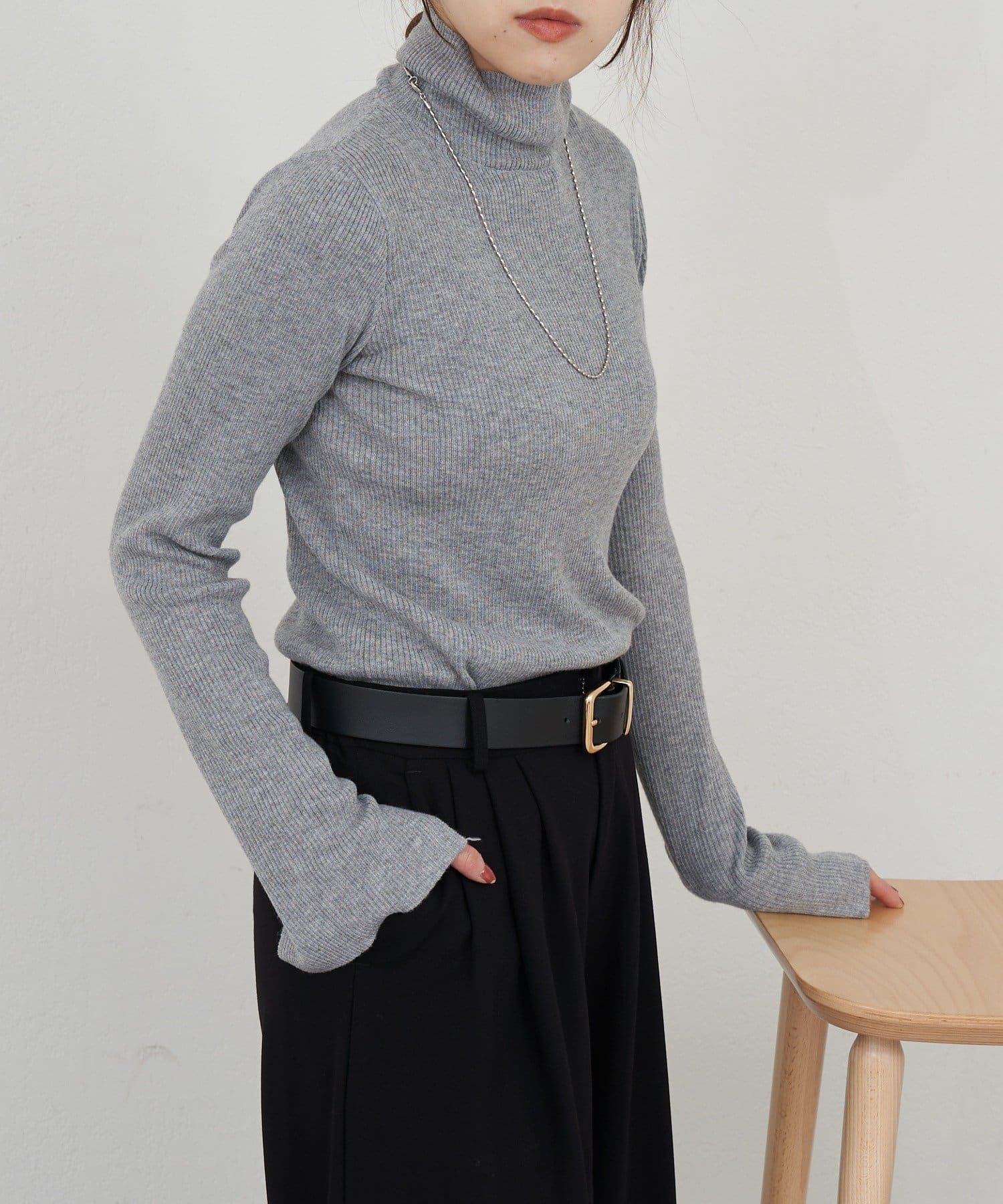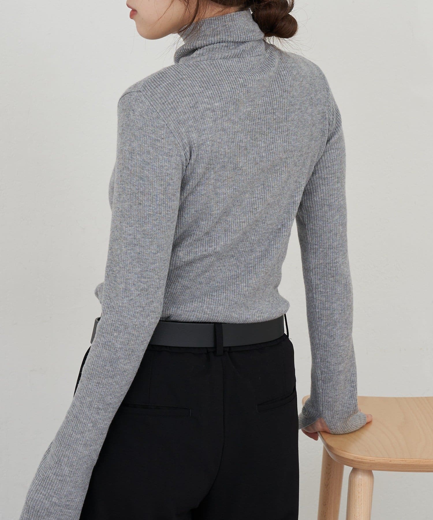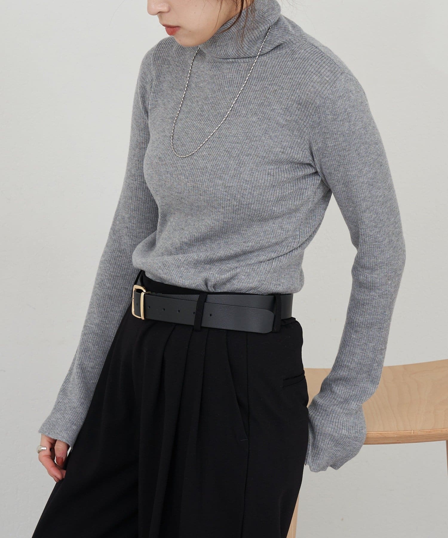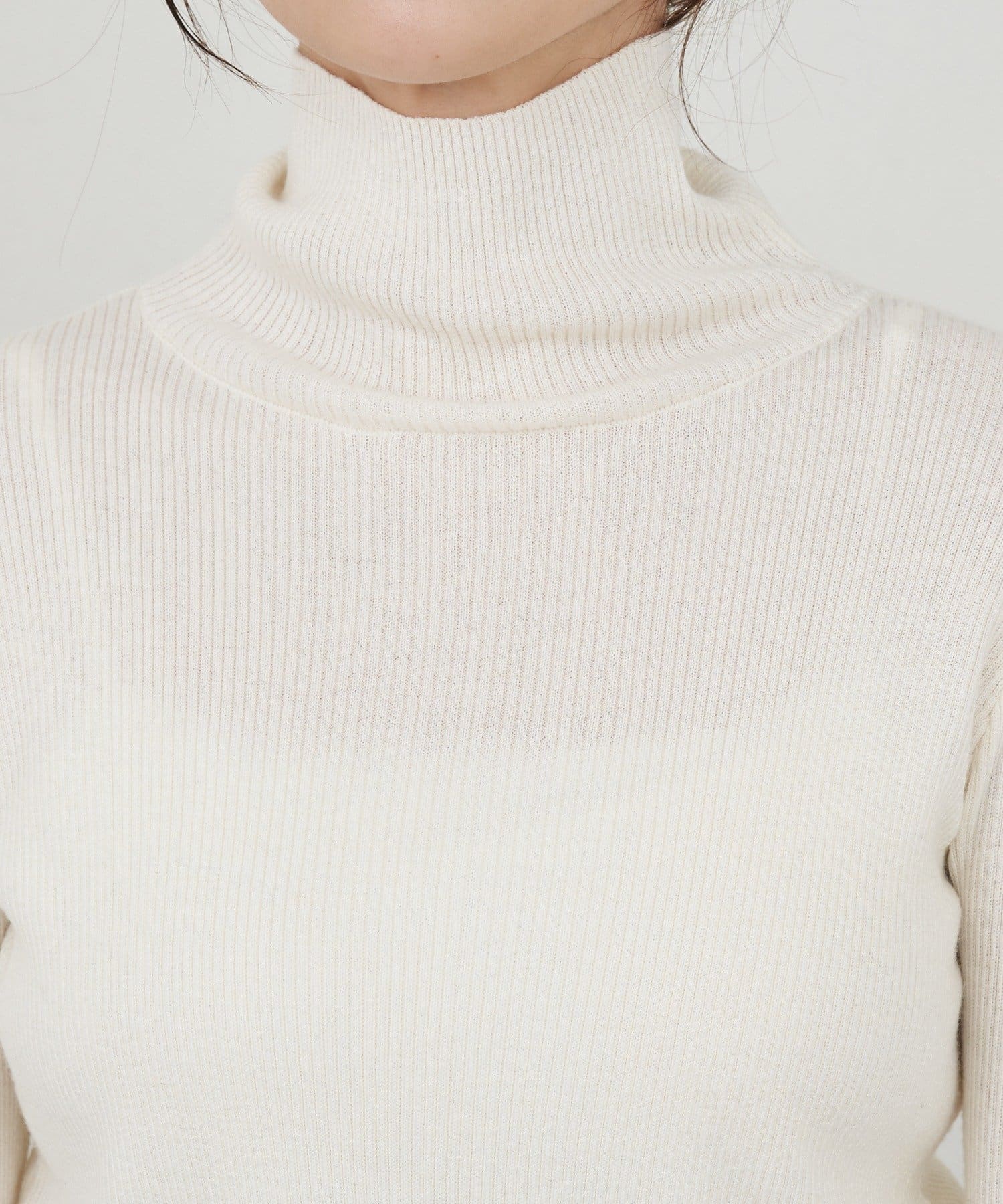 ハイネックリブニット