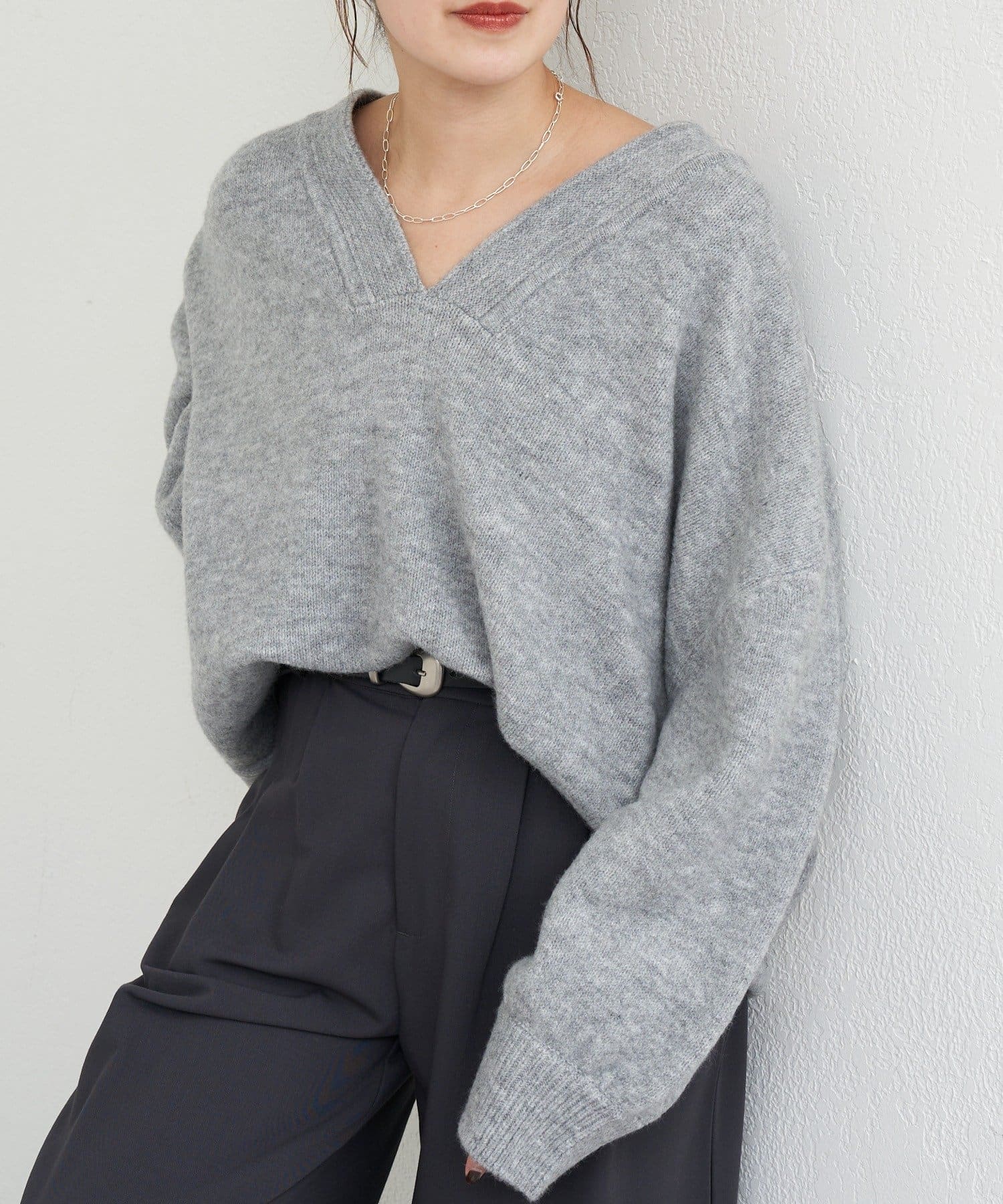 昨年大人気ニットがリバイバル!深めのVネックデザインが女性らしいプルオーバーニット