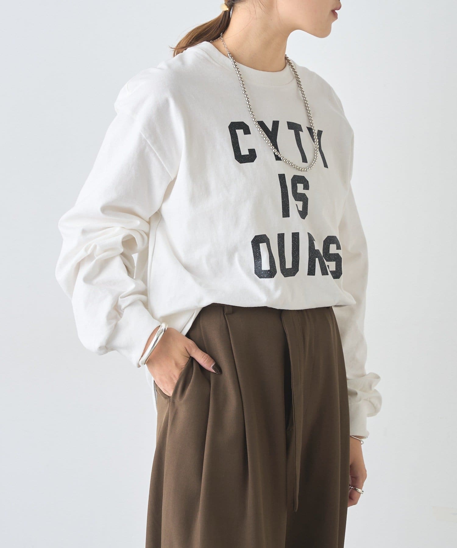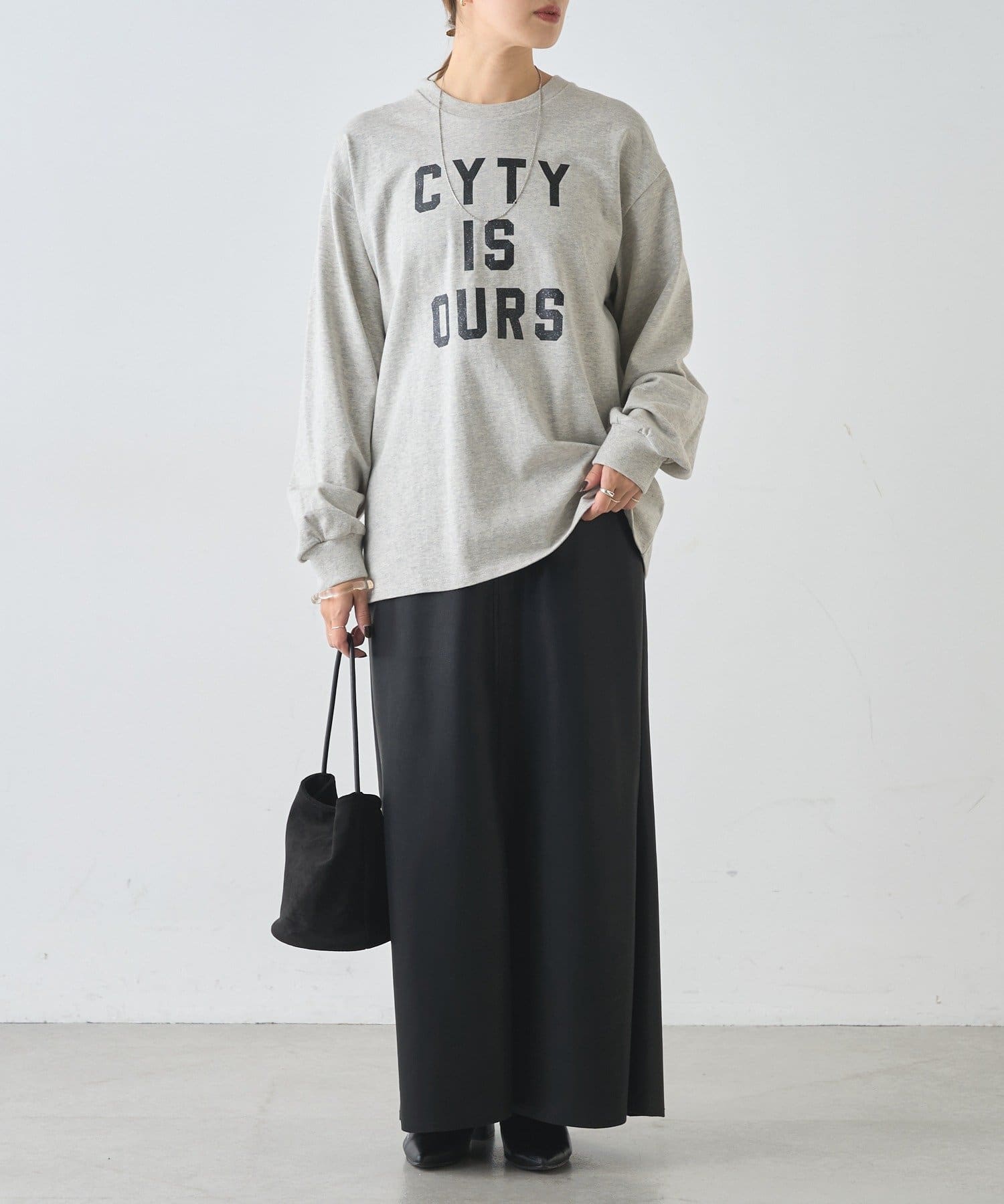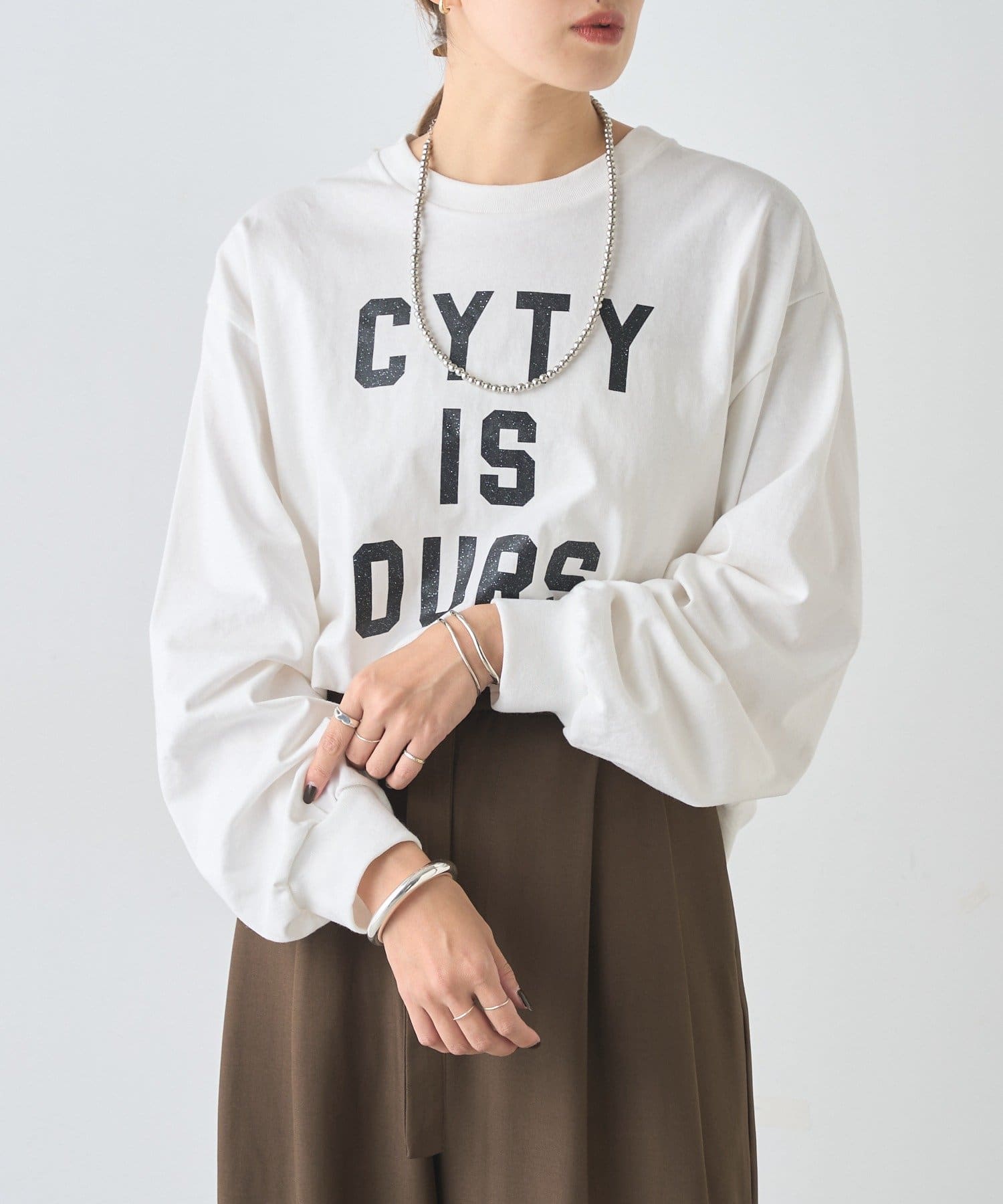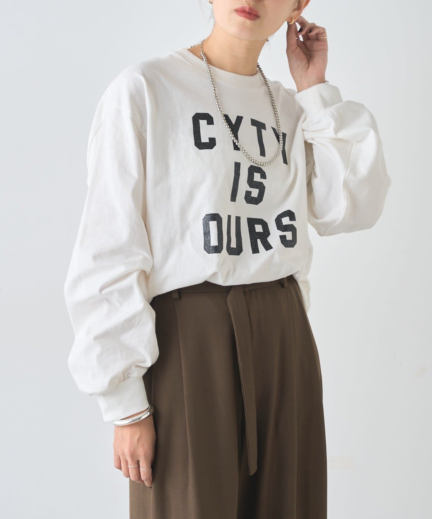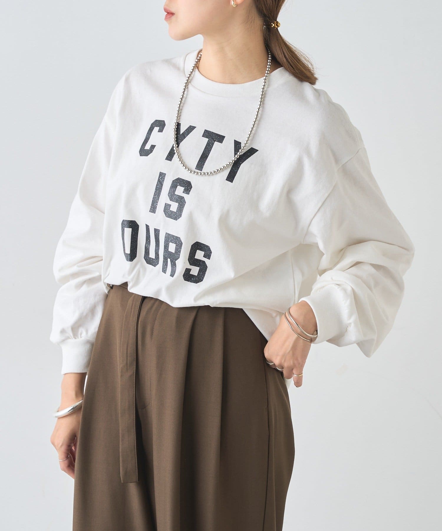 ロゴがアクセントになり、1枚ではもちろんインナー使いもおすすめ◎