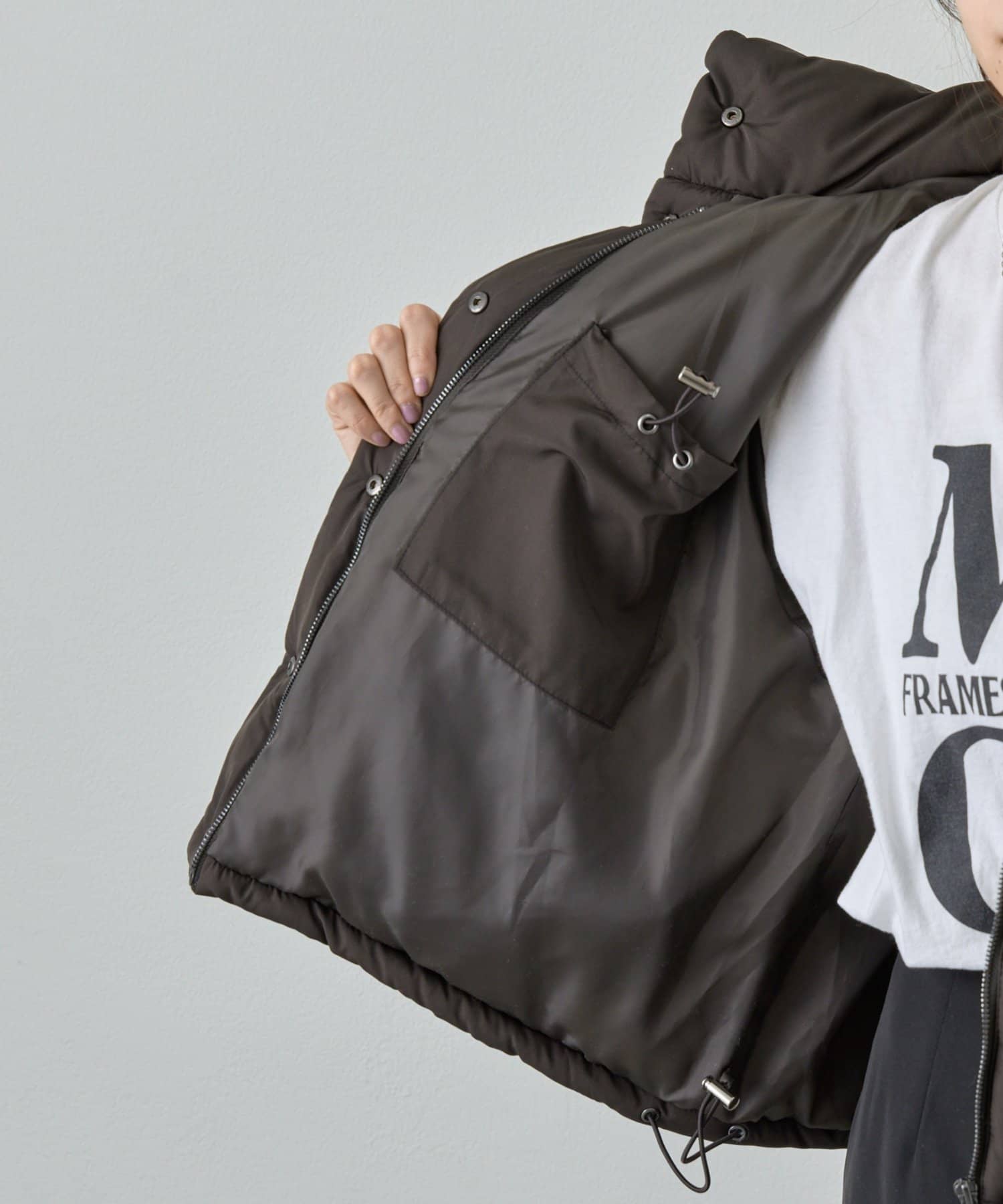 トレンドのショート丈とボリューム感のあるシルエットで仕上げたふんわり暖かい中綿ジャケット。