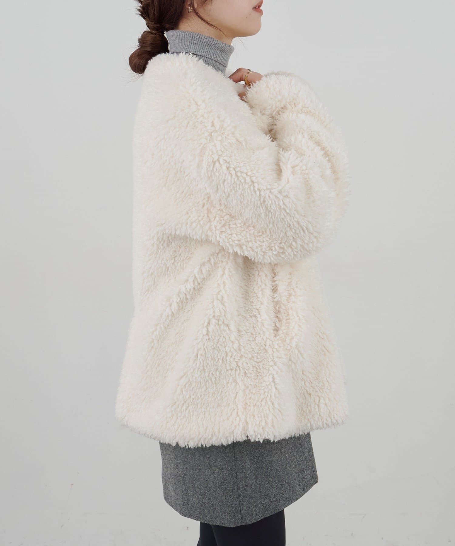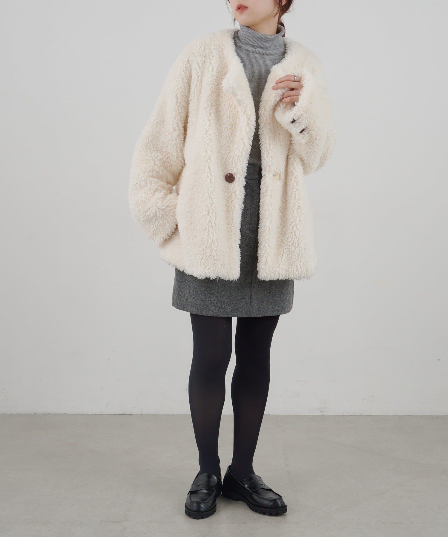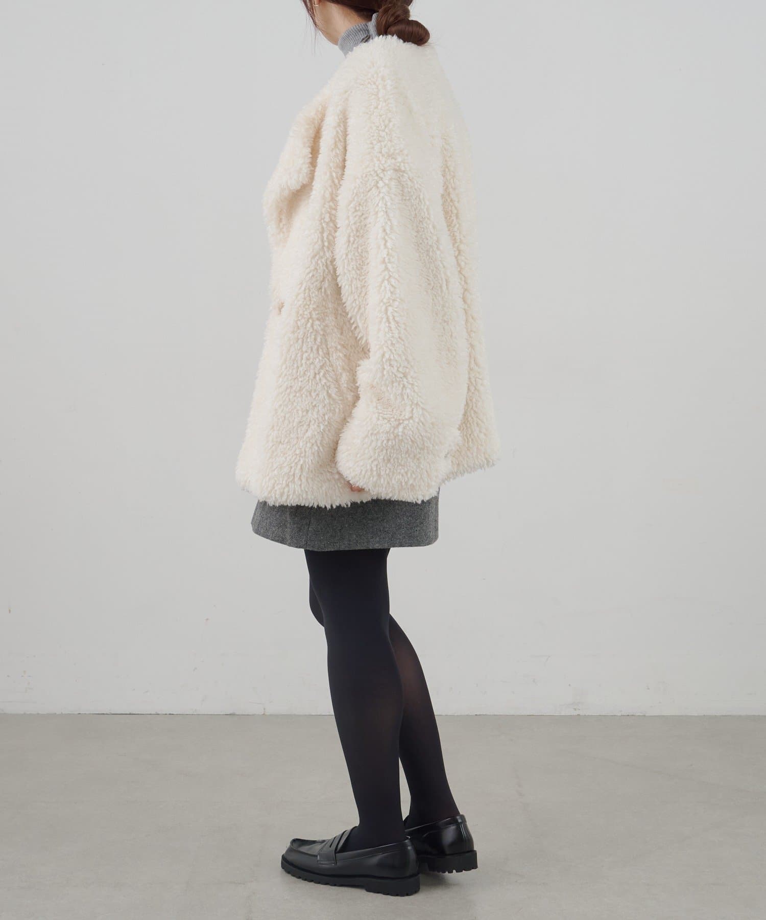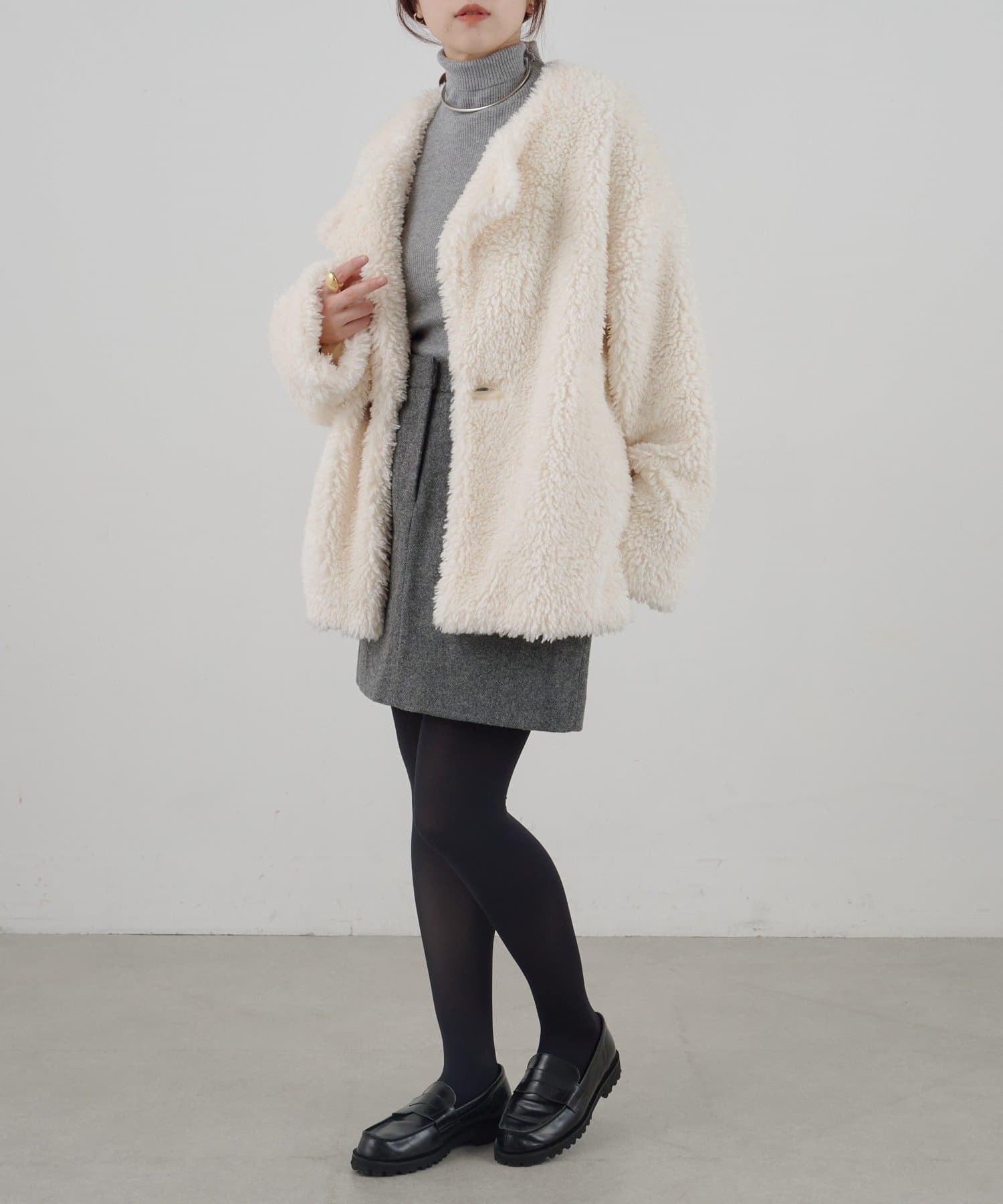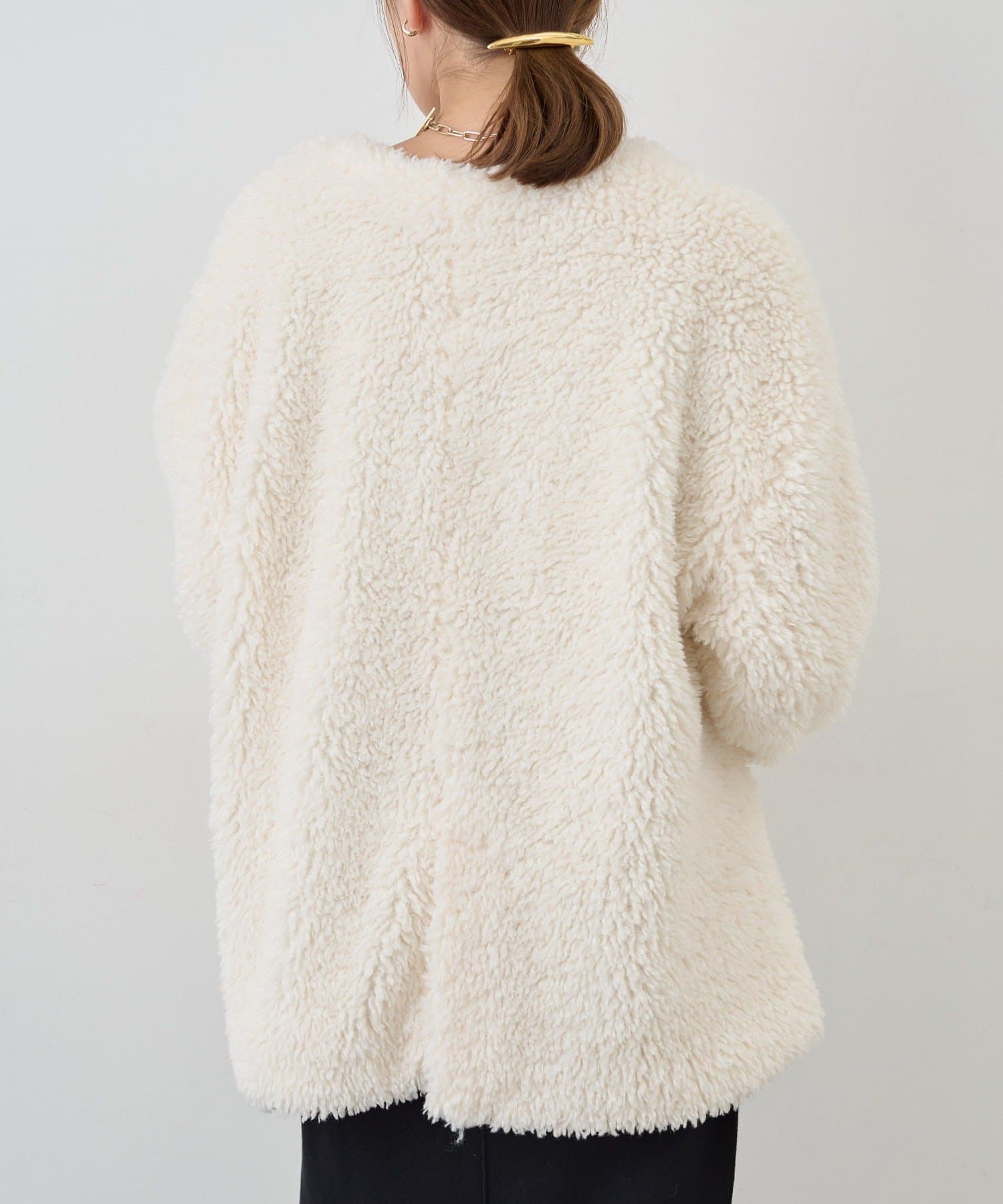 【アウター総選挙対象アイテム】ノーカラーボアコート