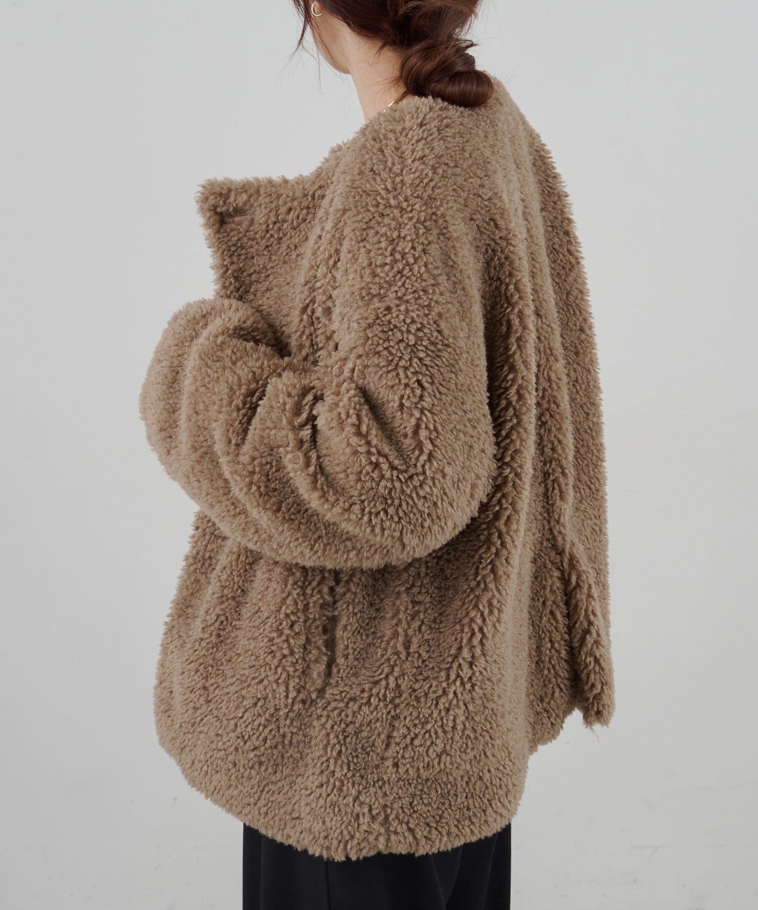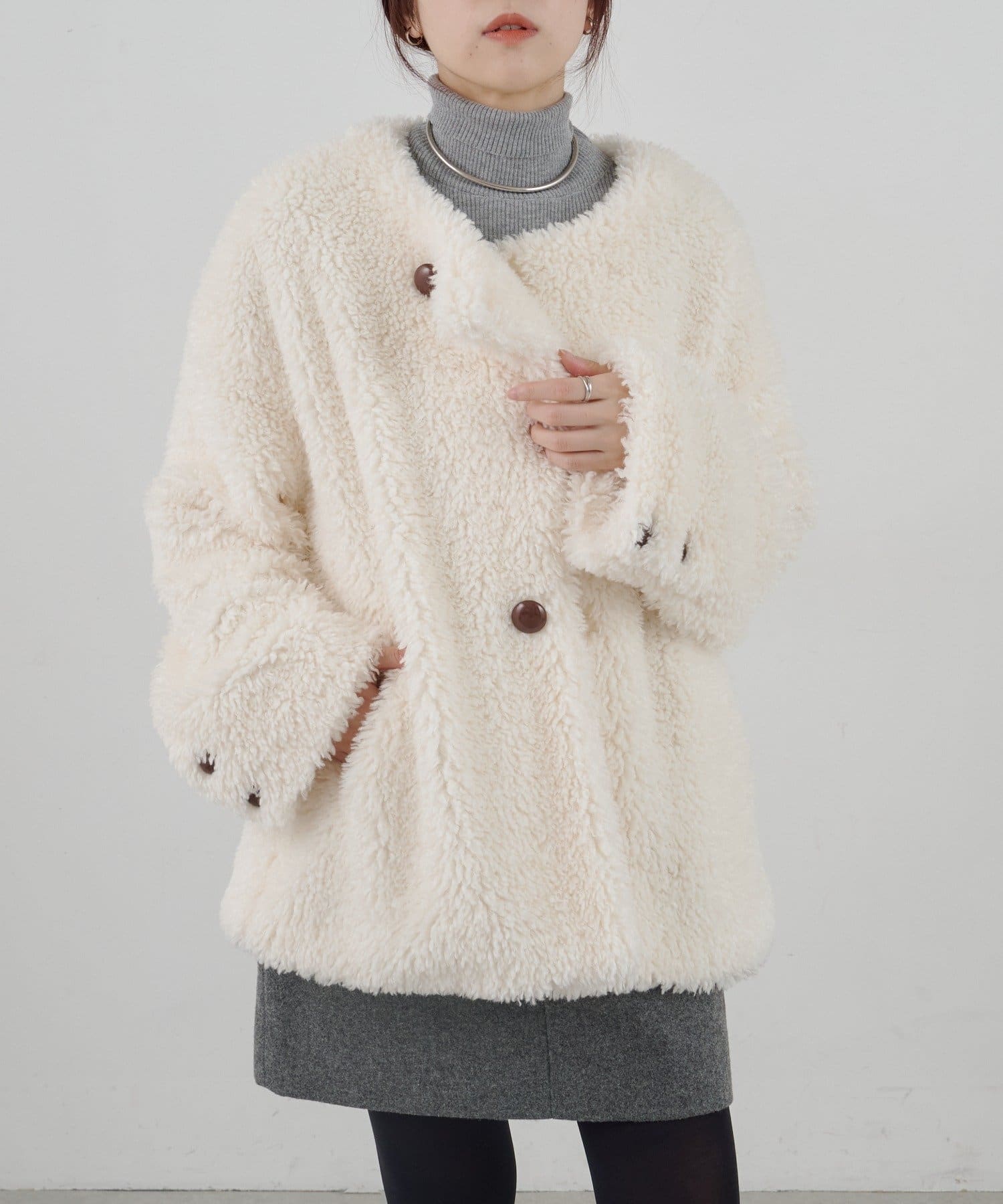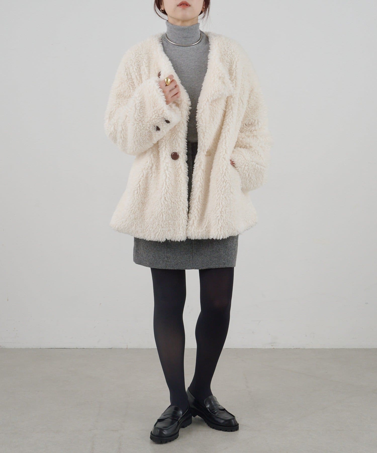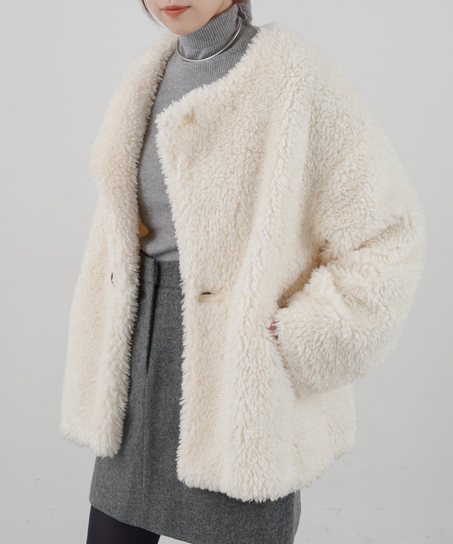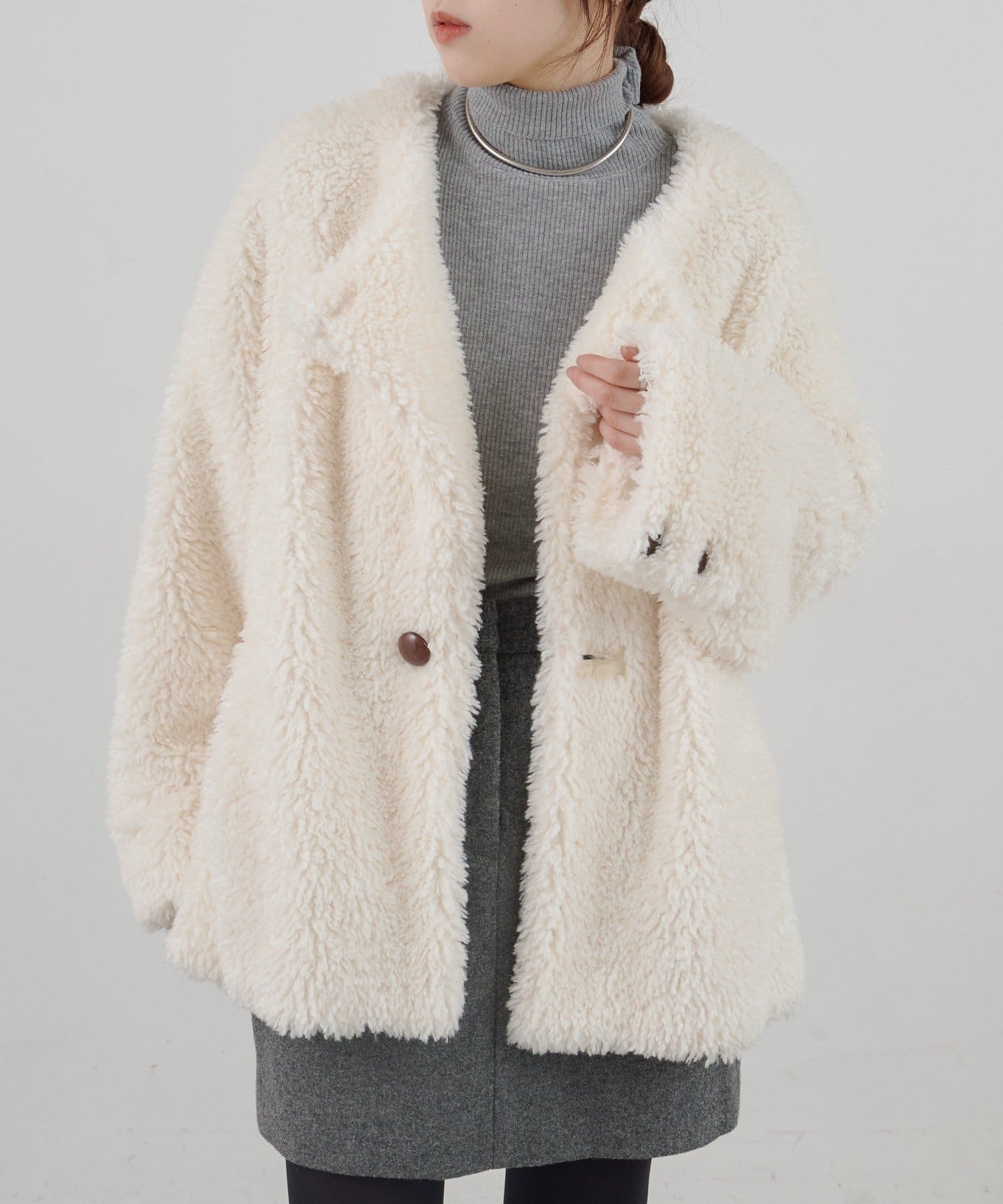 【アウター総選挙対象アイテム】ノーカラーボアコート