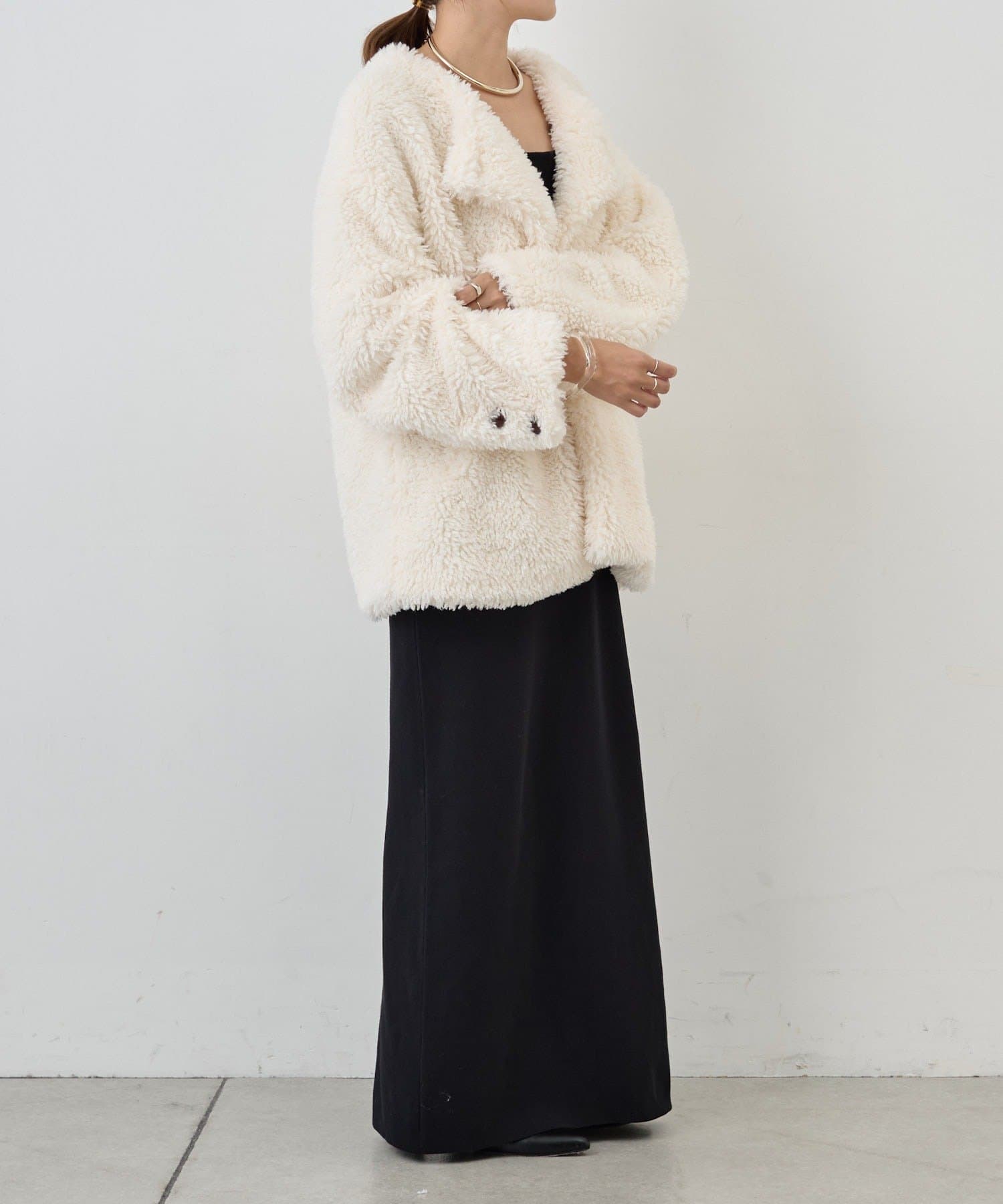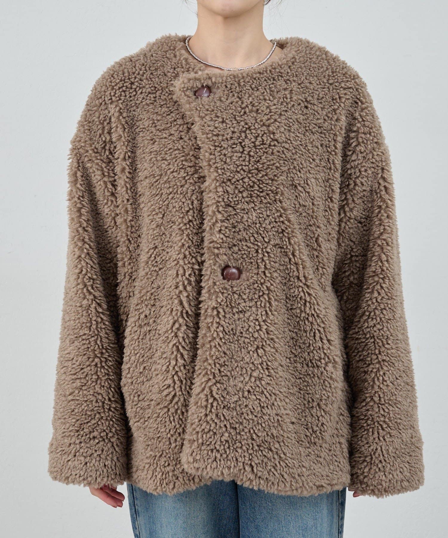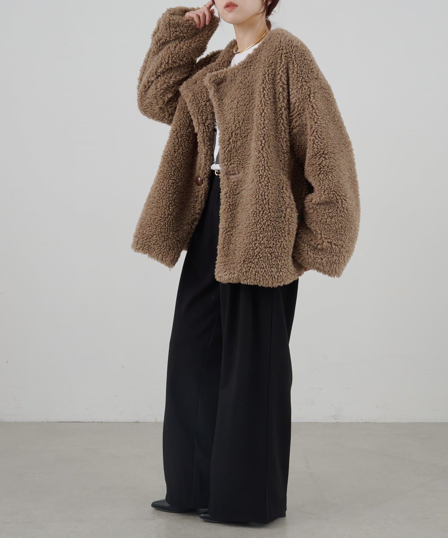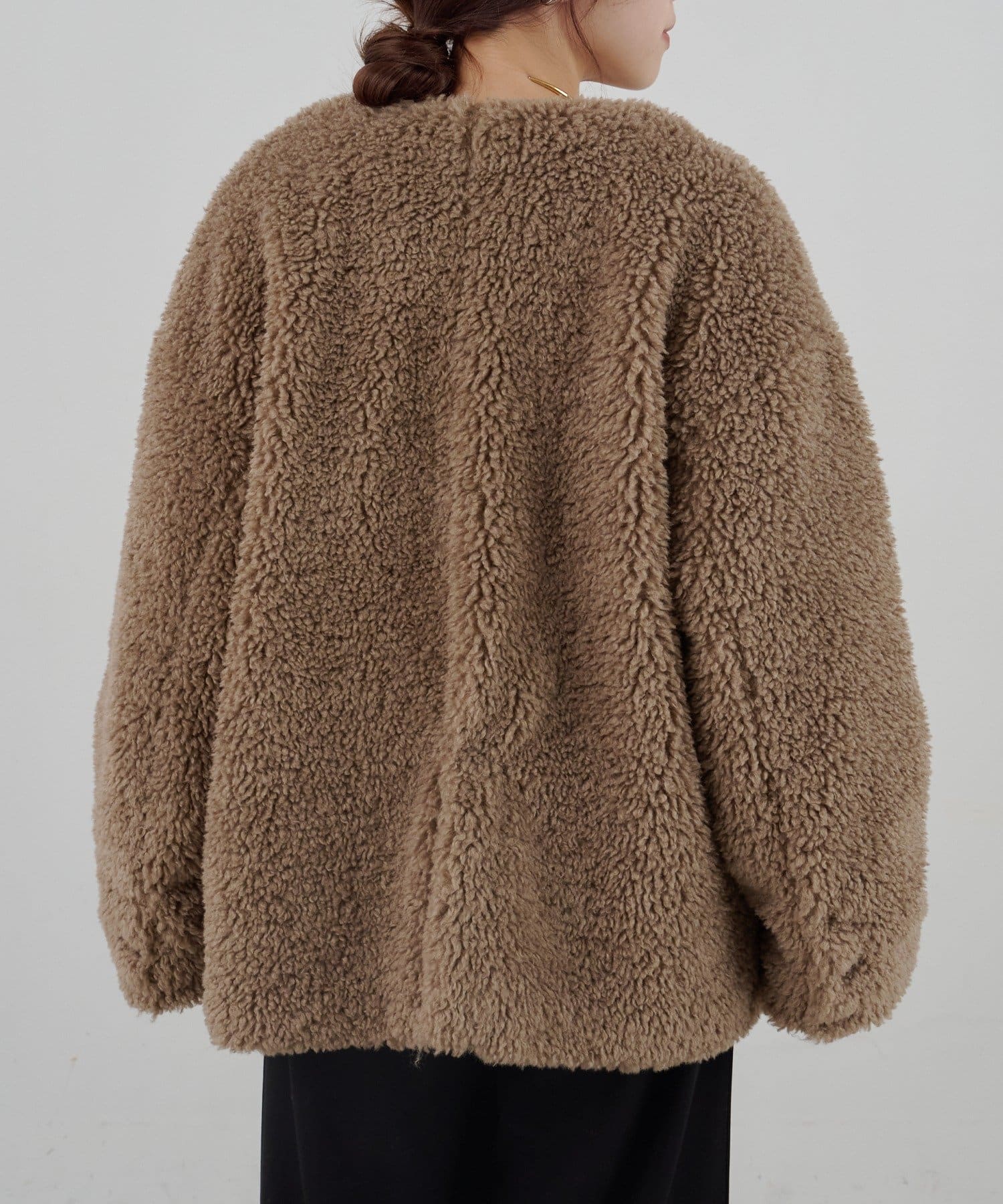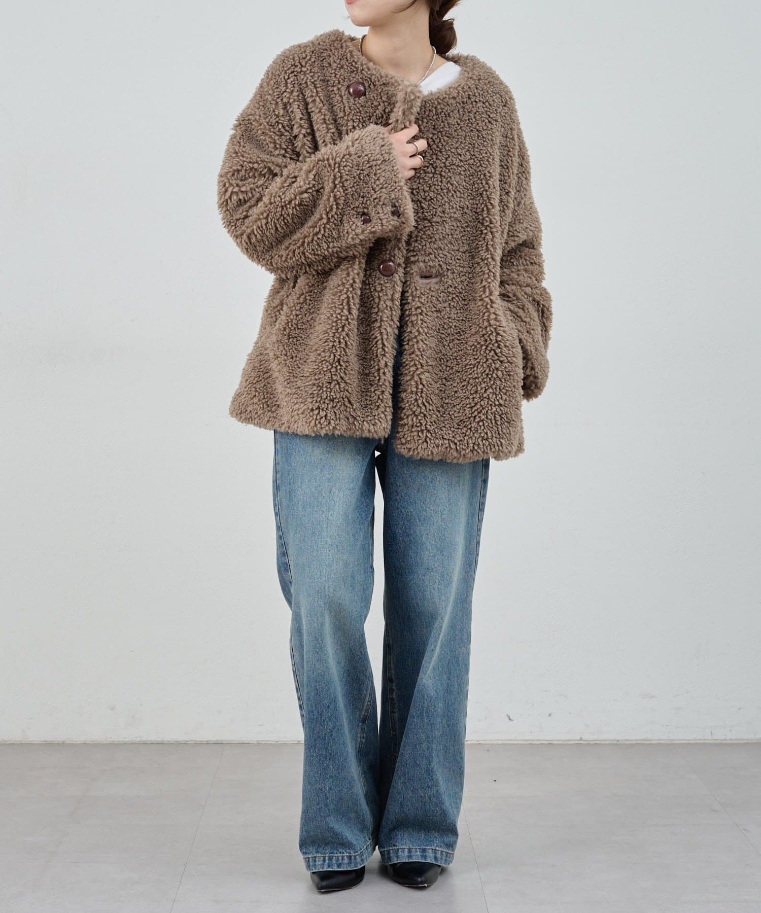 【アウター総選挙対象アイテム】ノーカラーボアコート