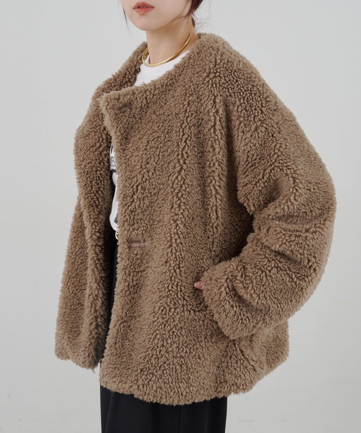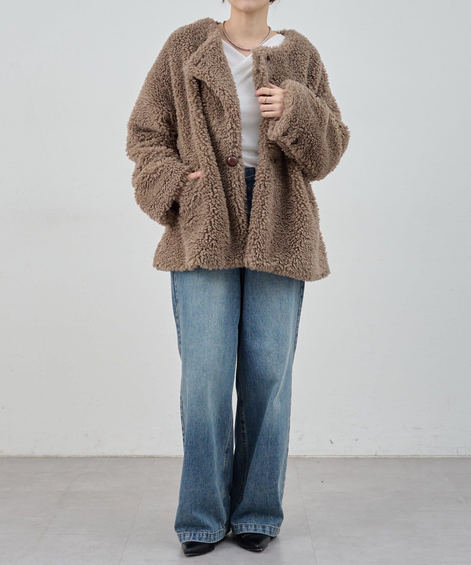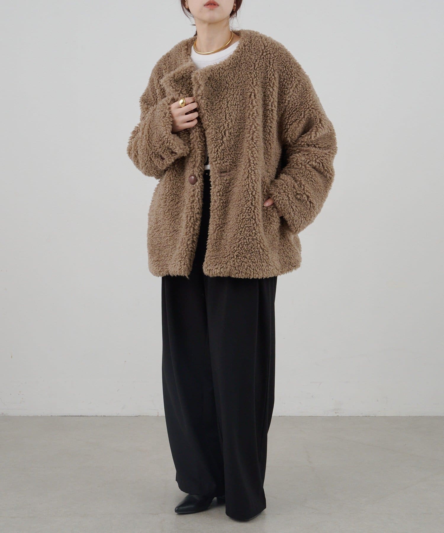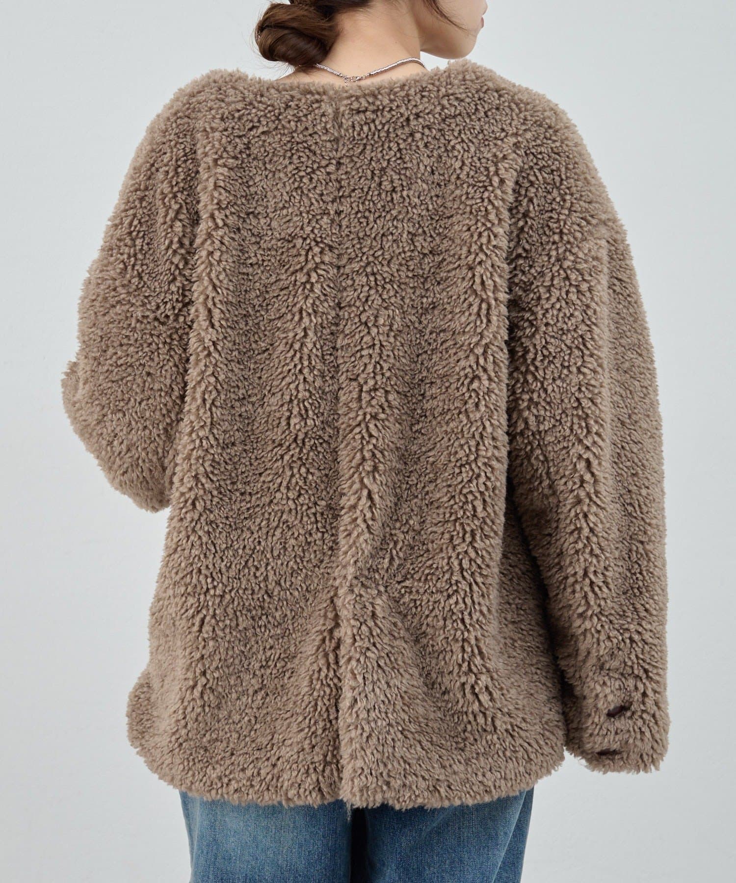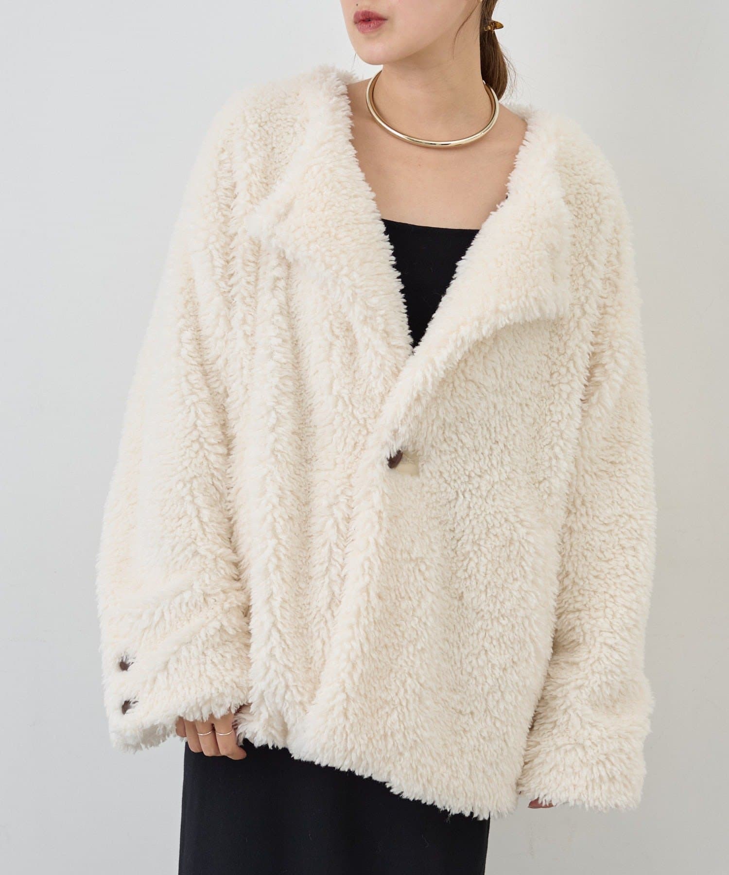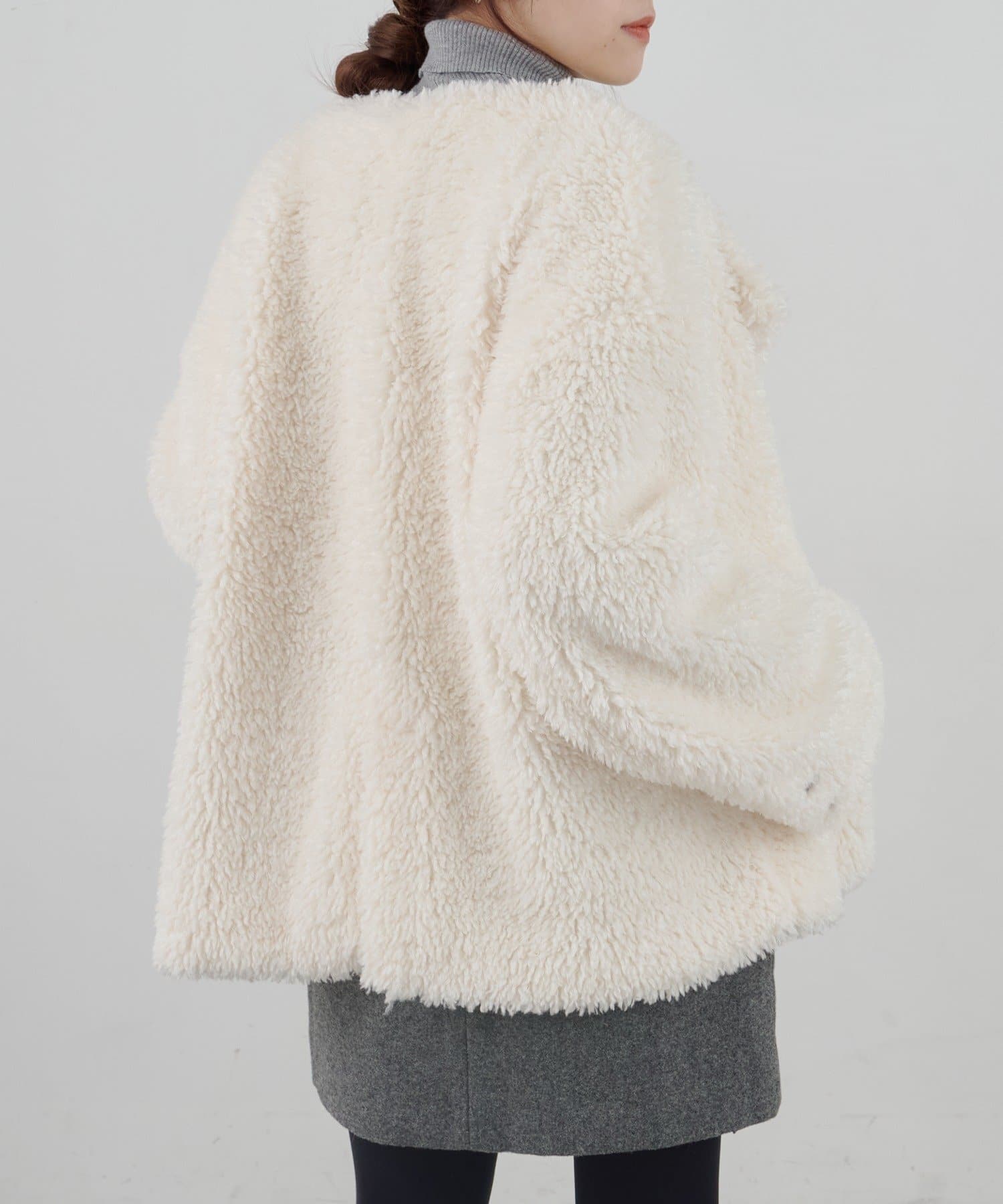 【アウター総選挙対象アイテム】ノーカラーボアコート