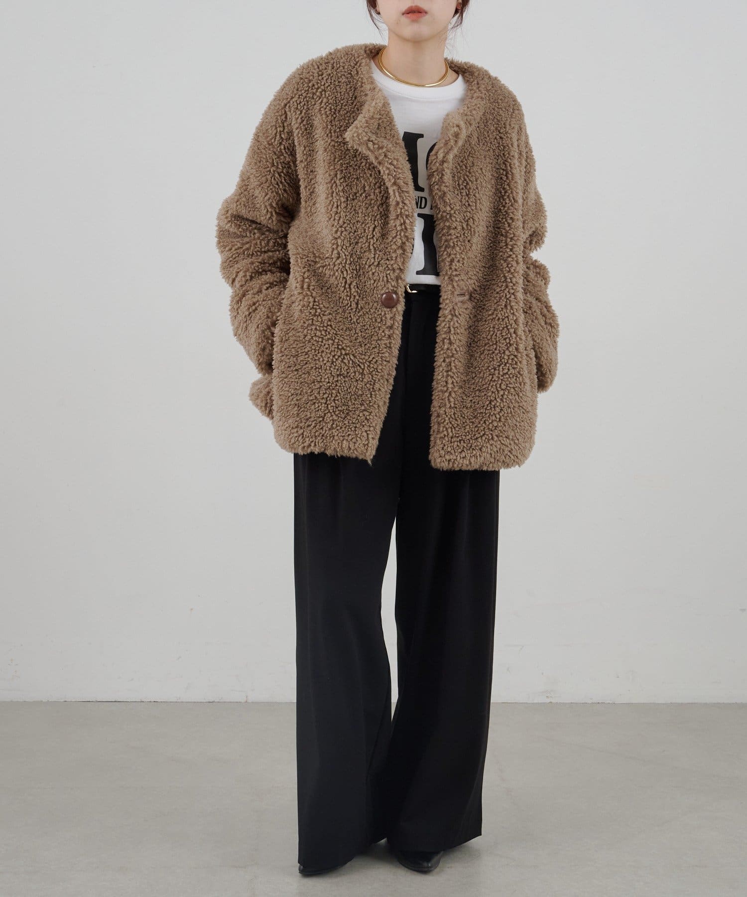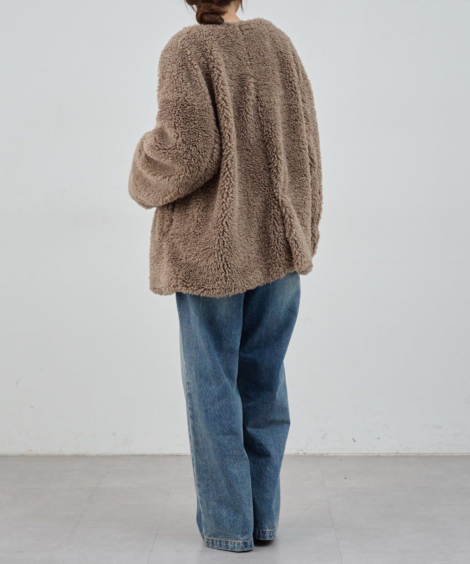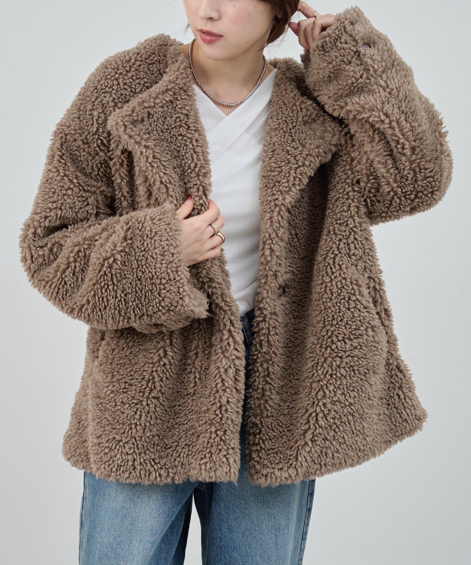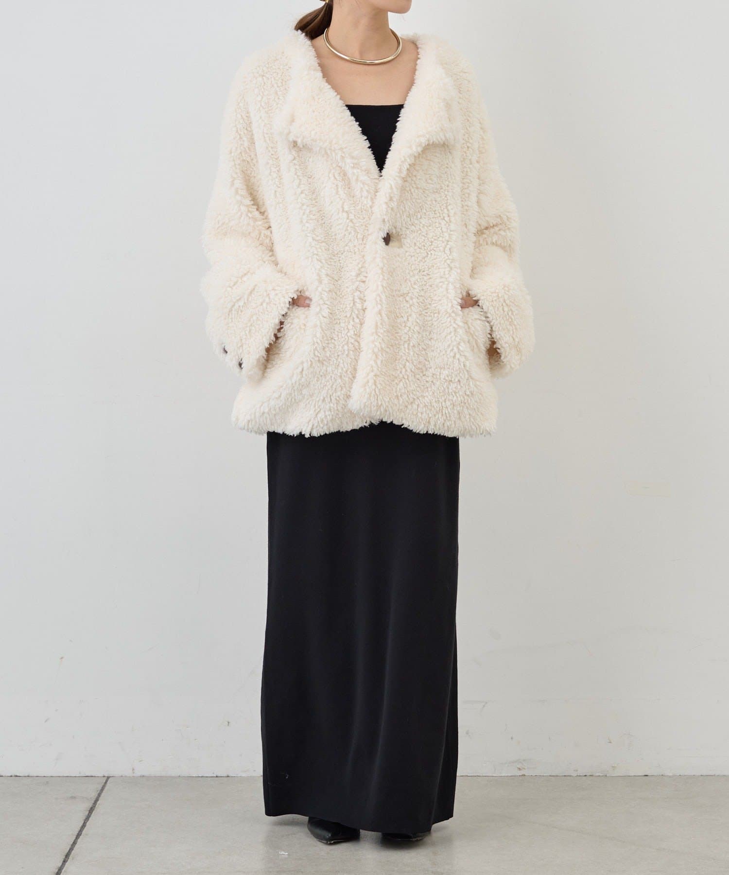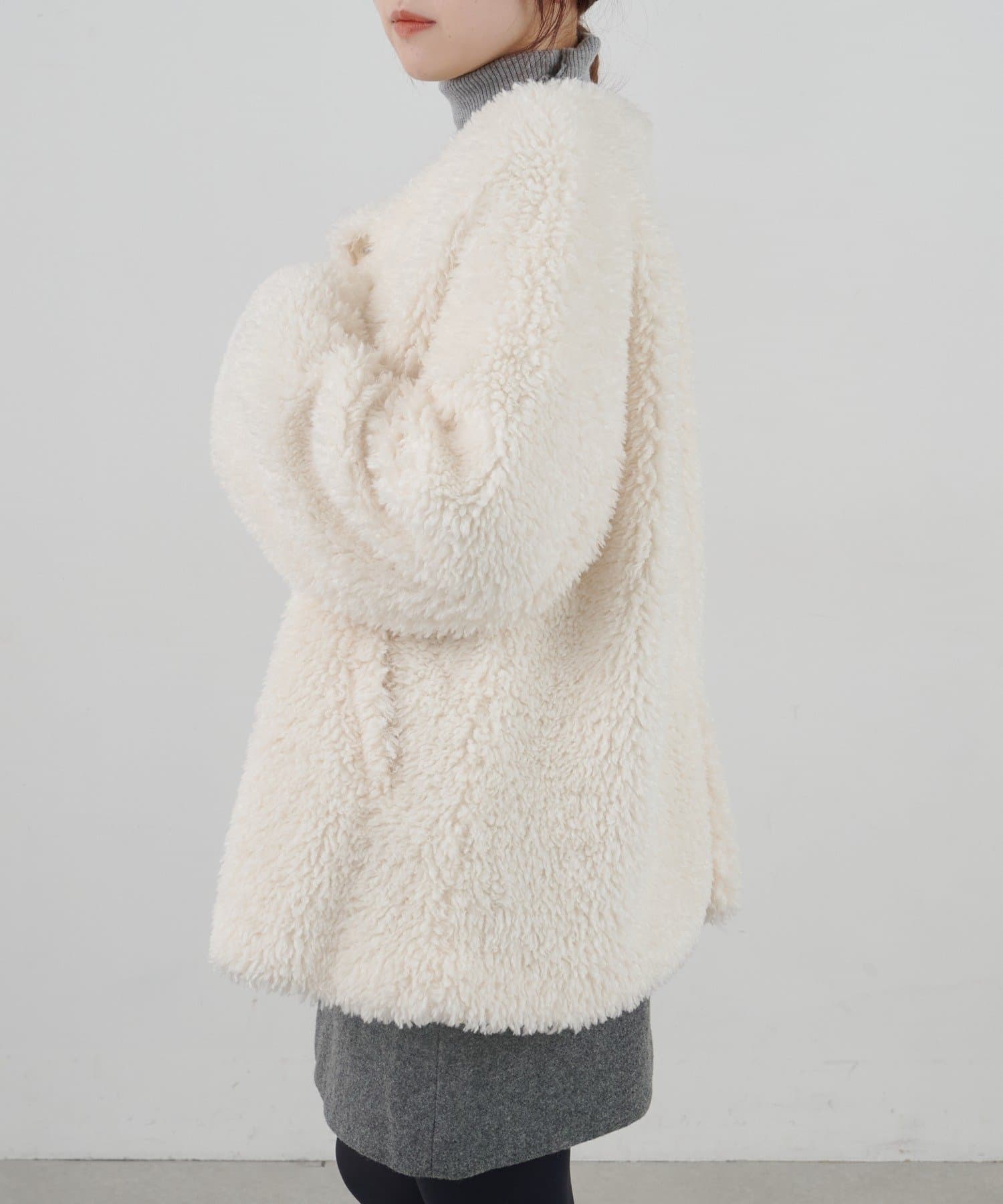 【アウター総選挙対象アイテム】ノーカラーボアコート