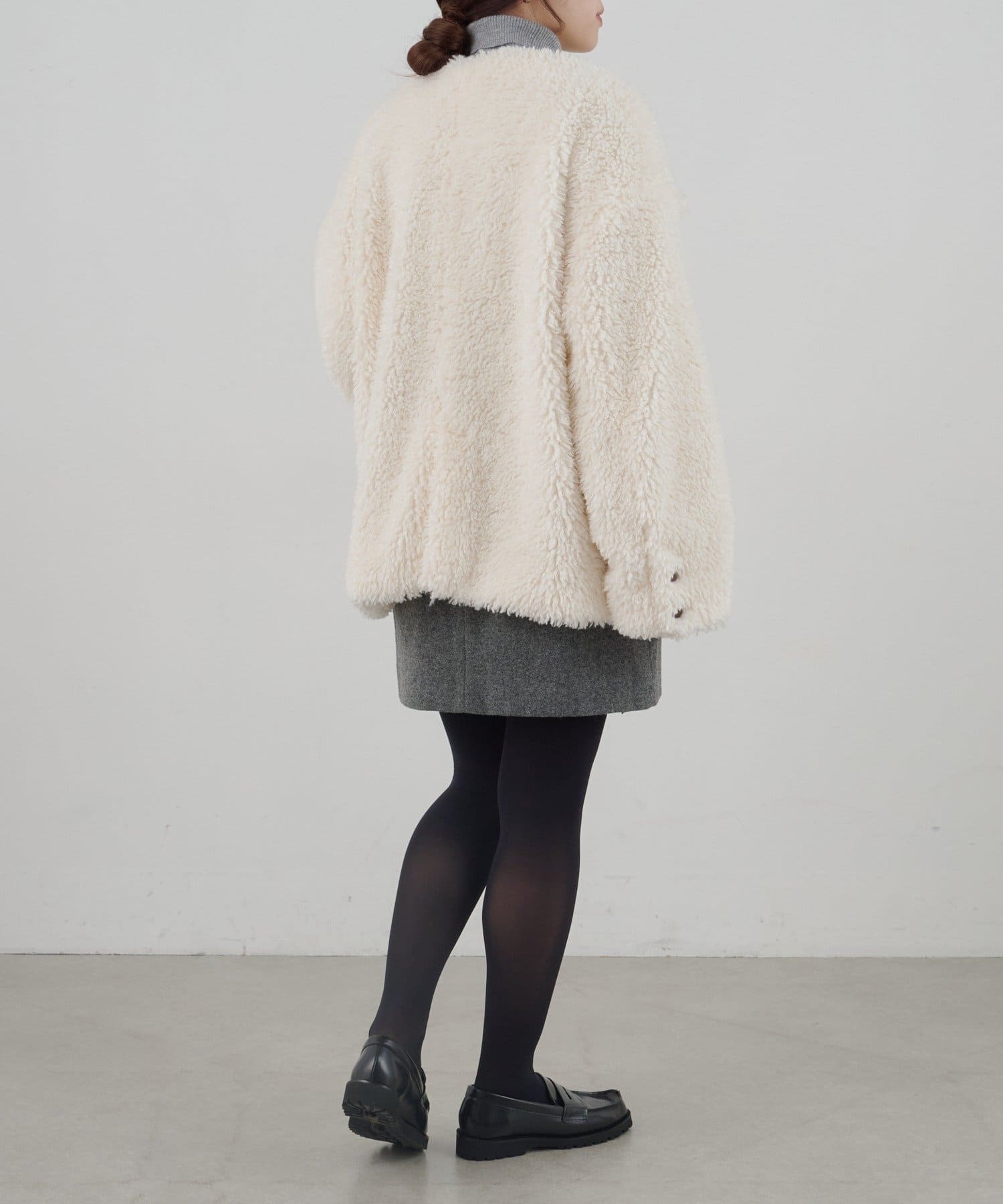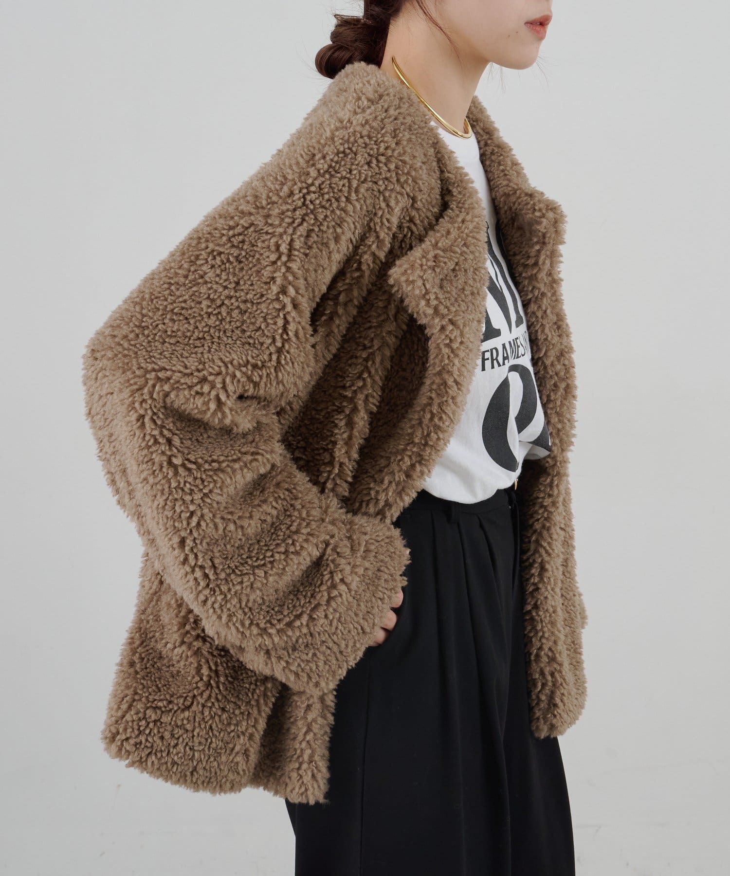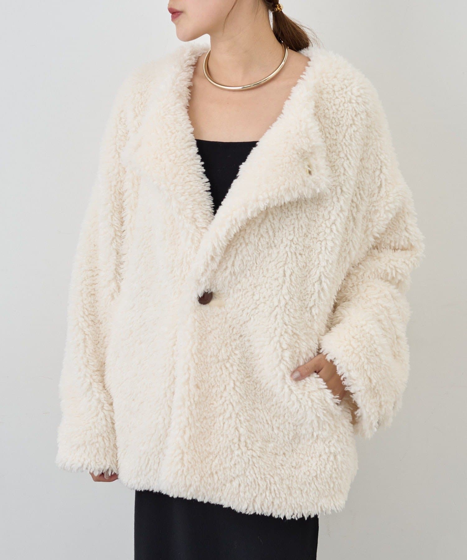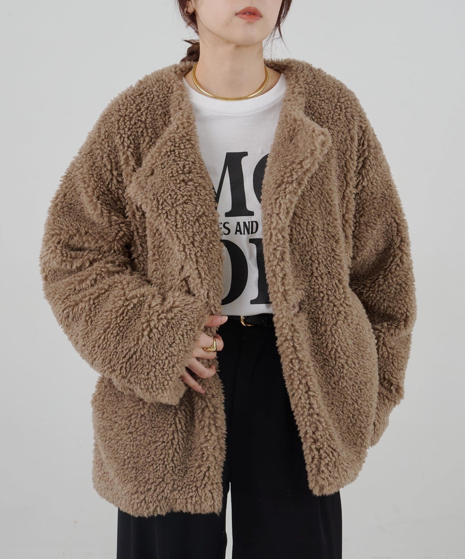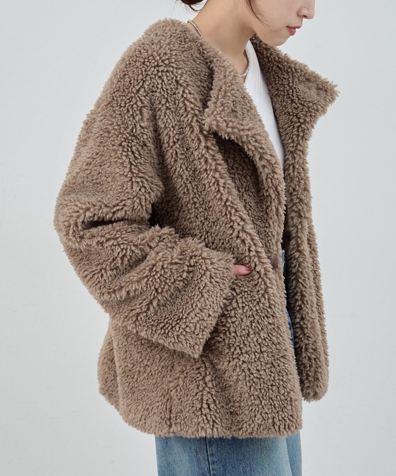 【アウター総選挙対象アイテム】ノーカラーボアコート