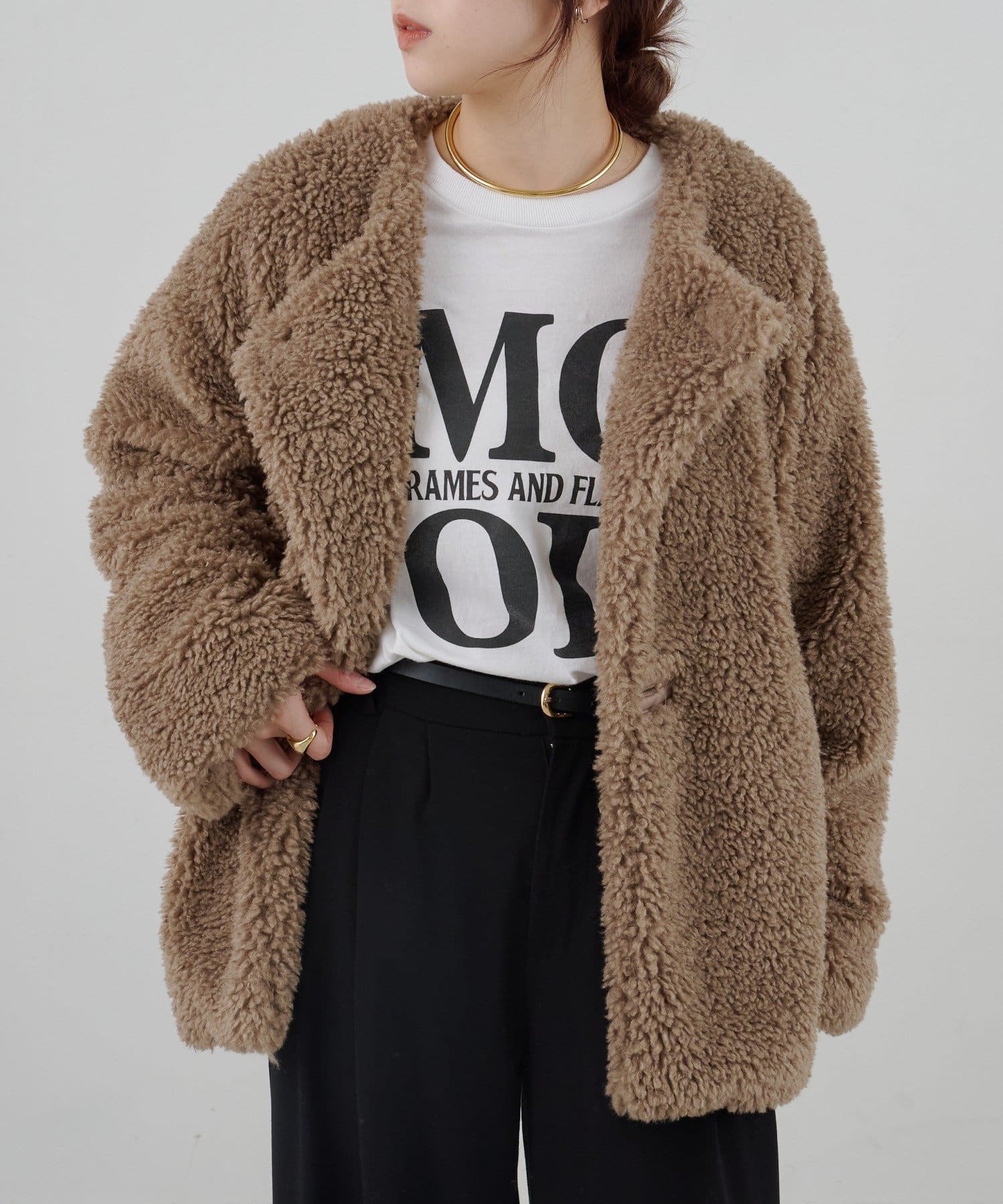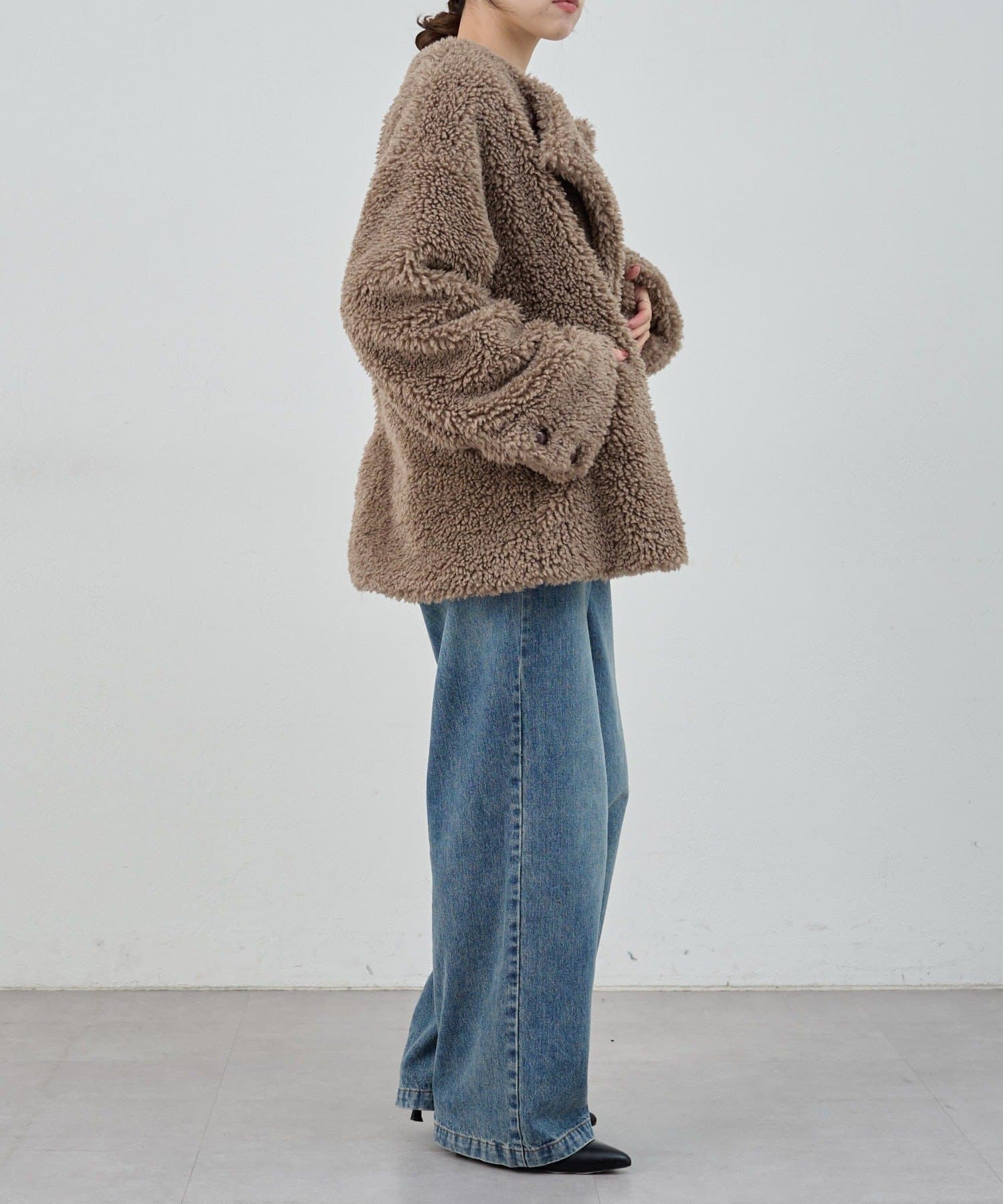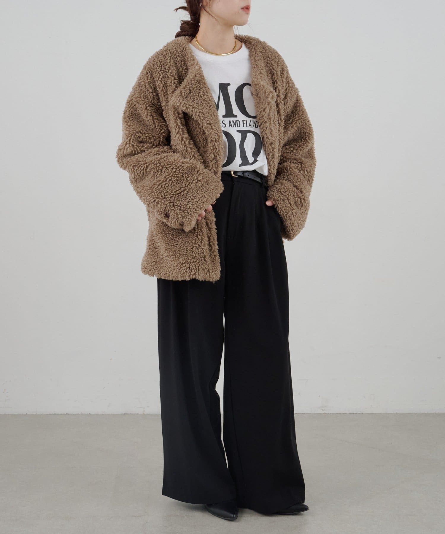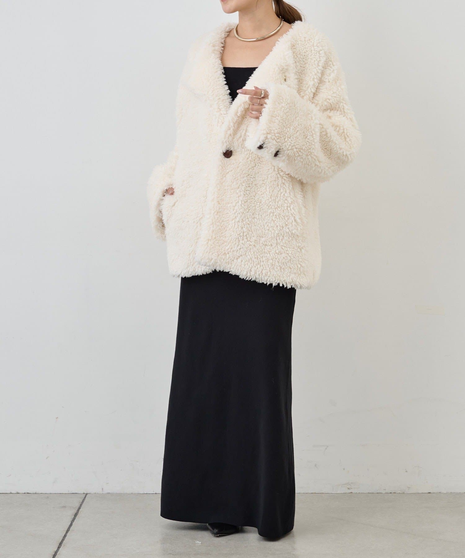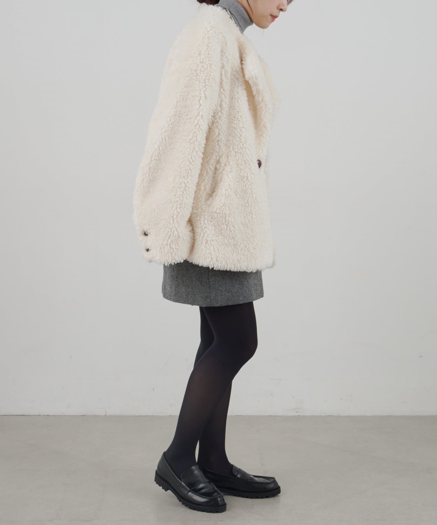 【アウター総選挙対象アイテム】ノーカラーボアコート