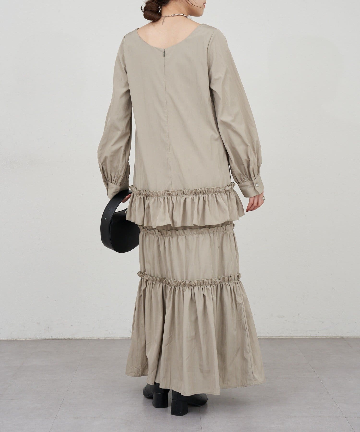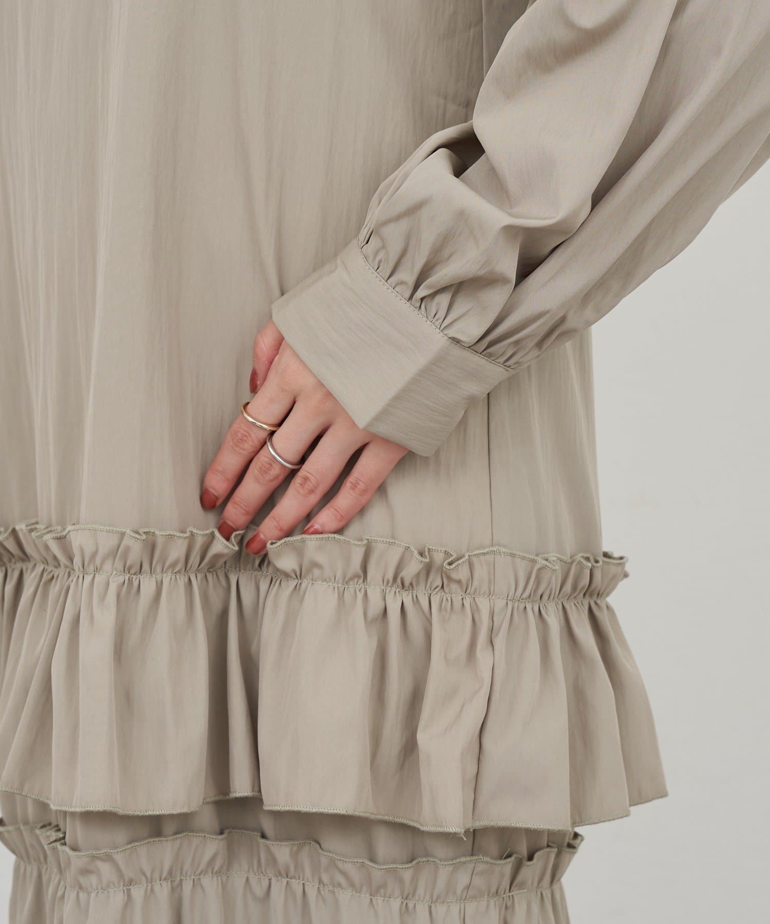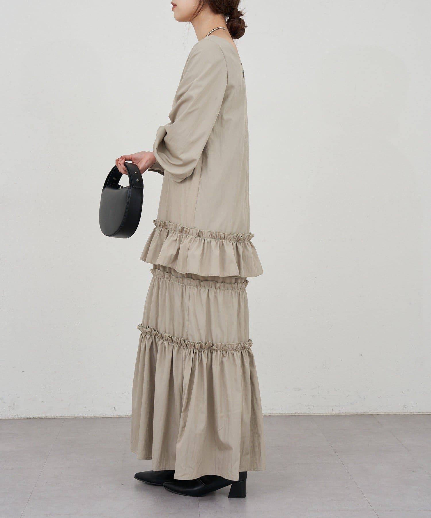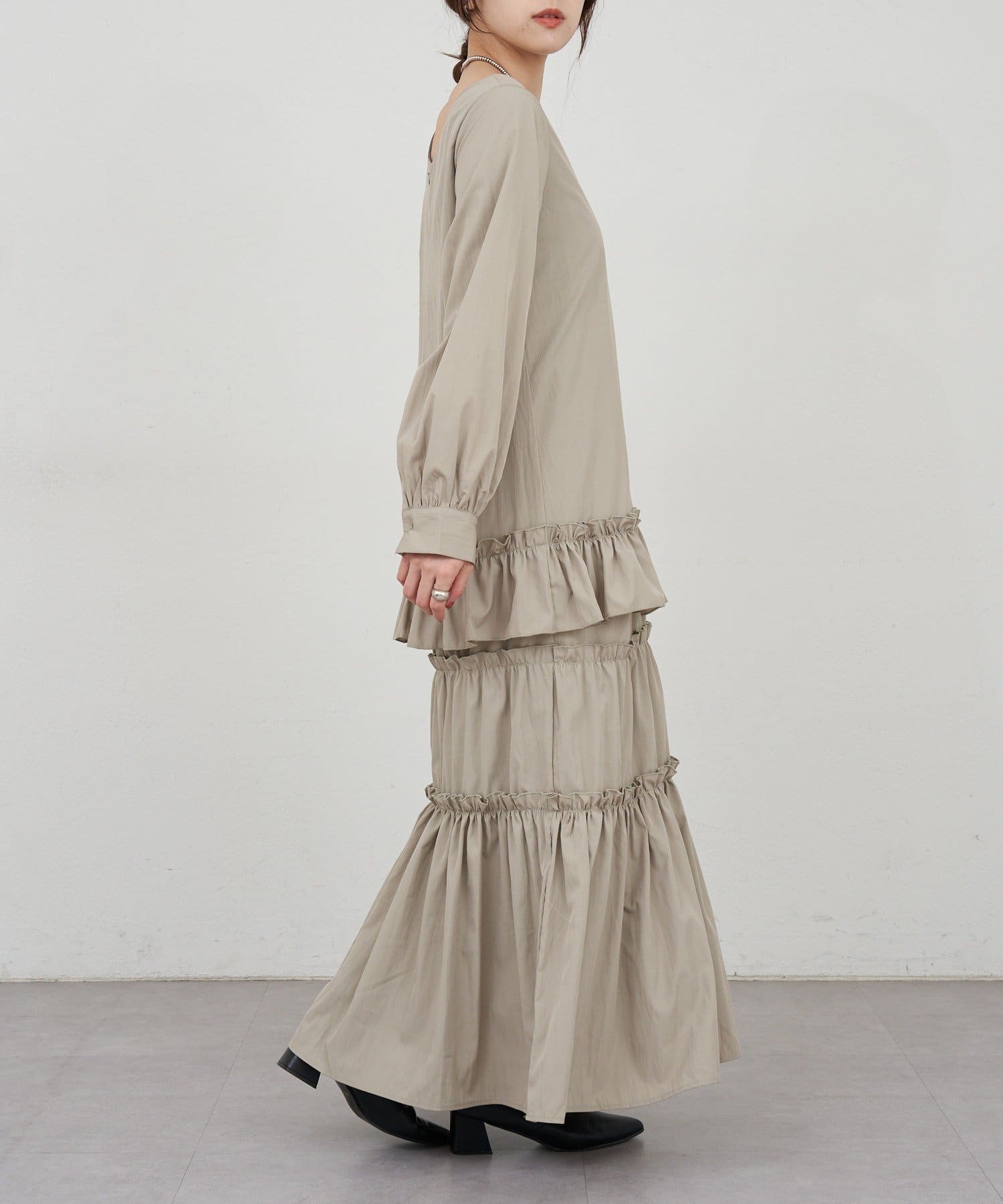 ボリューム感たっぷりのティアードワンピース。