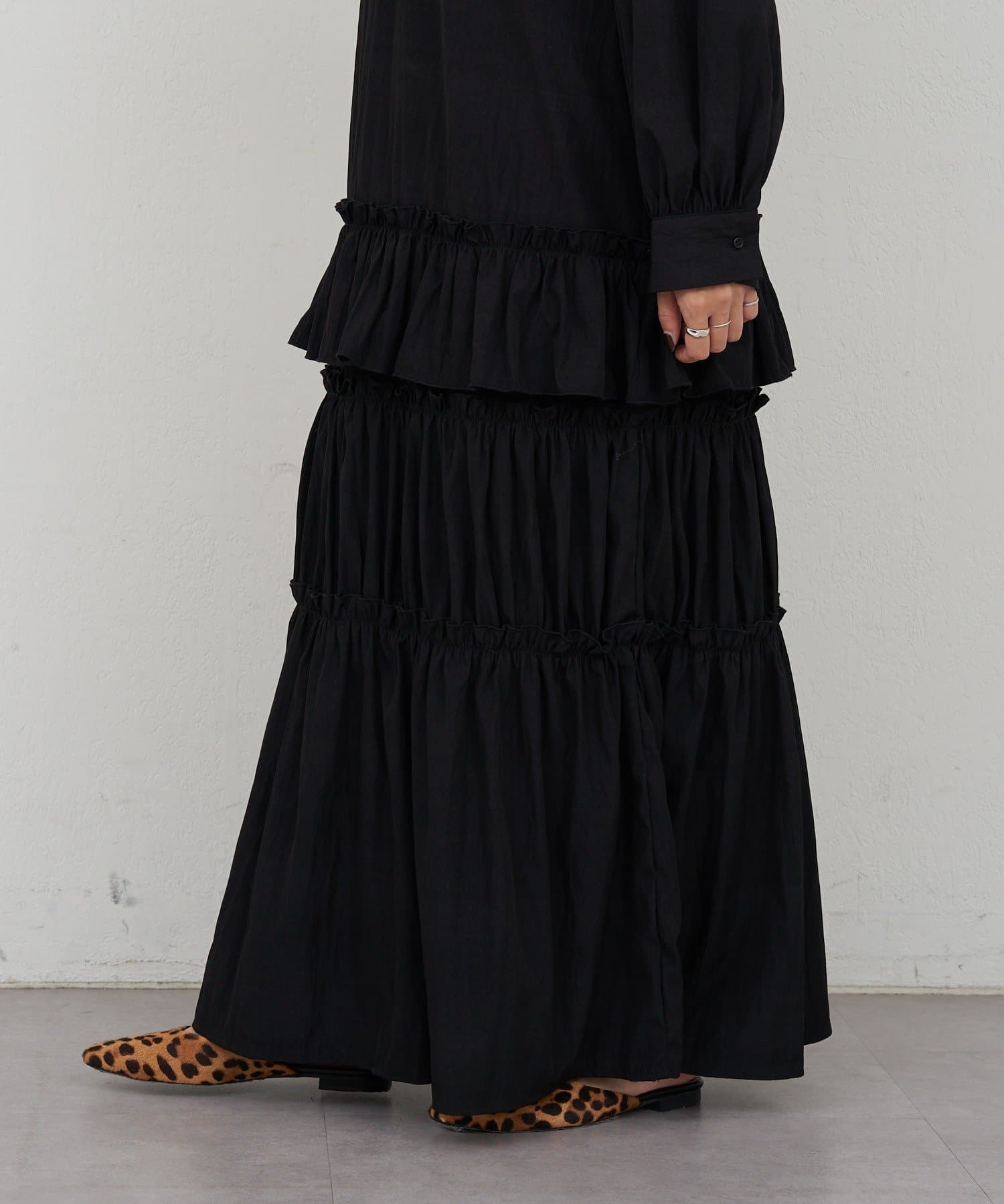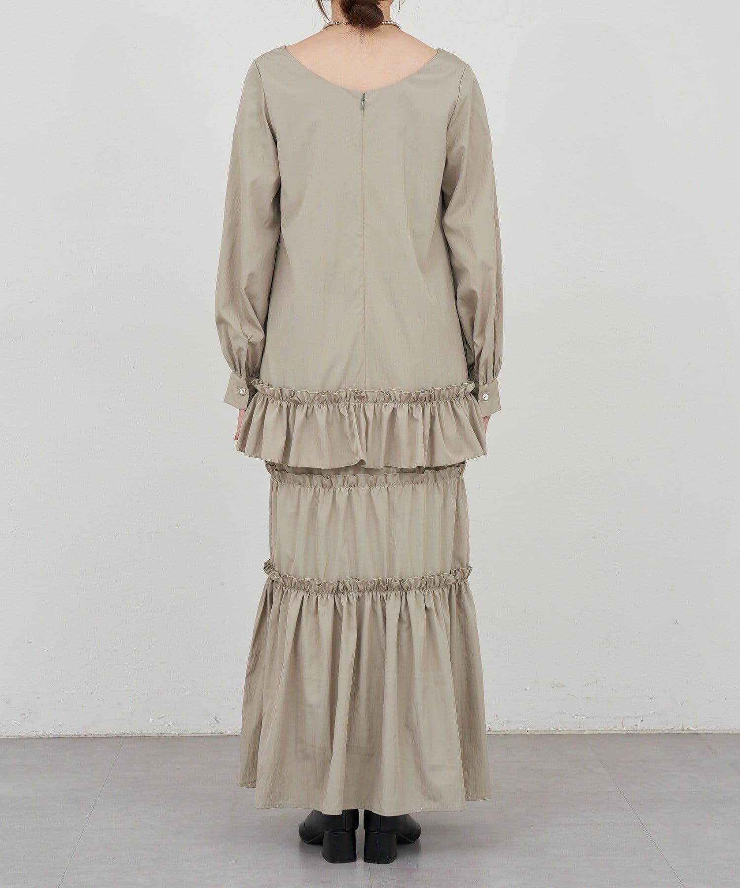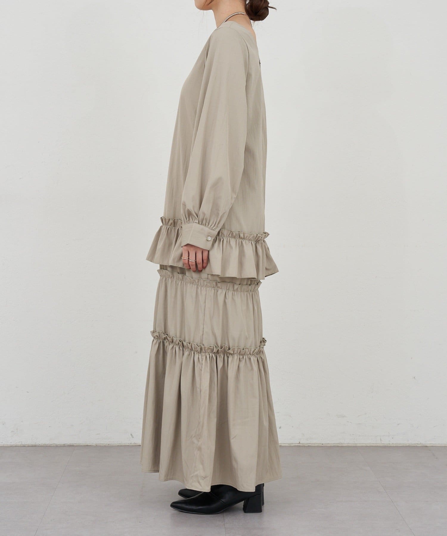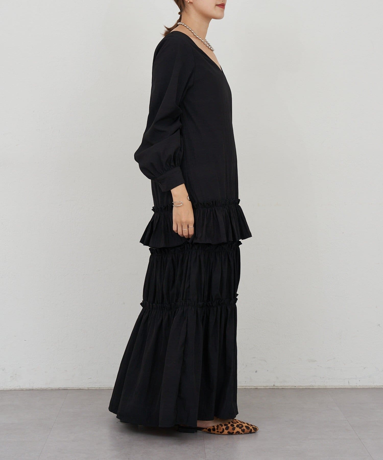 ボリューム感たっぷりのティアードワンピース。
