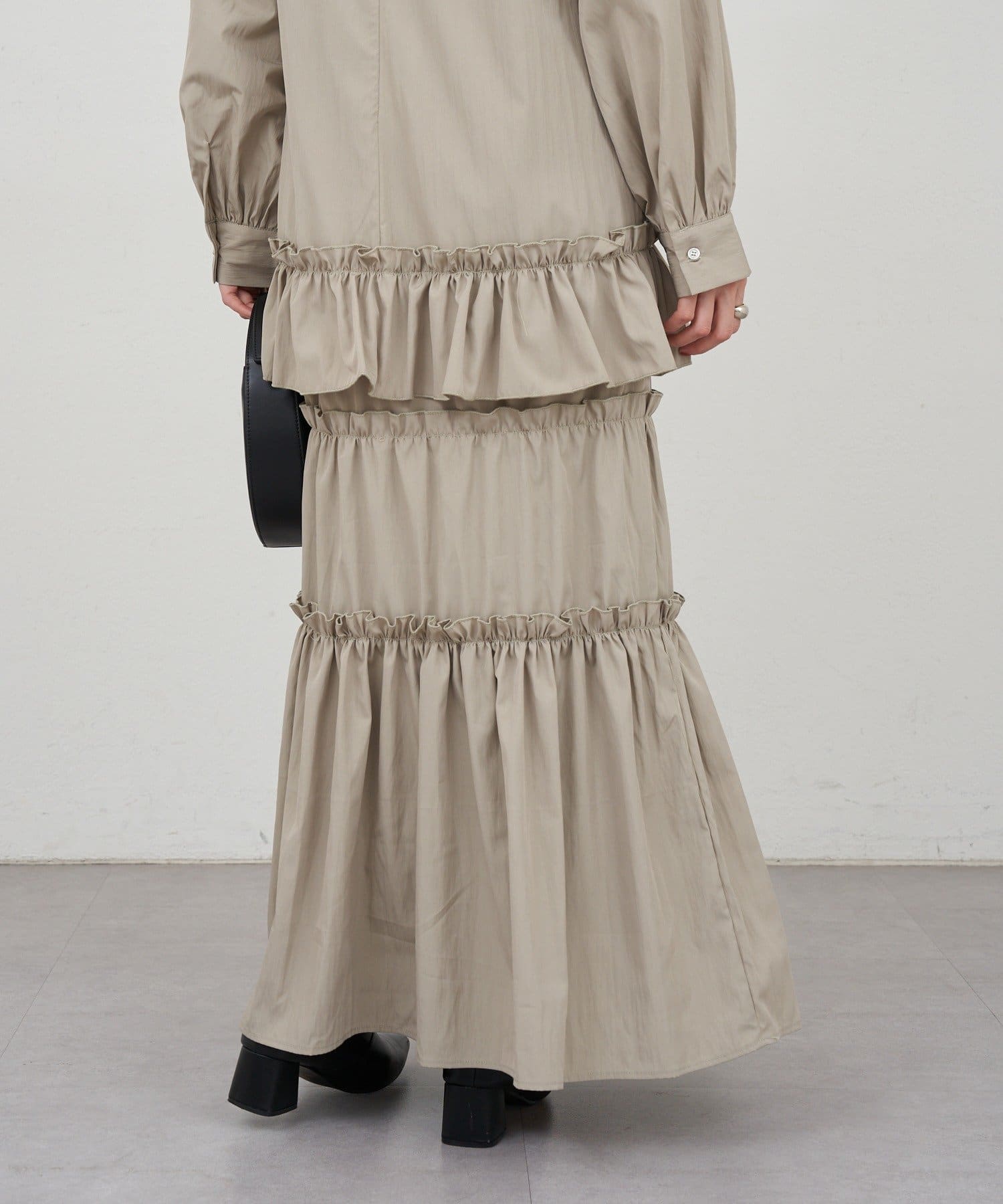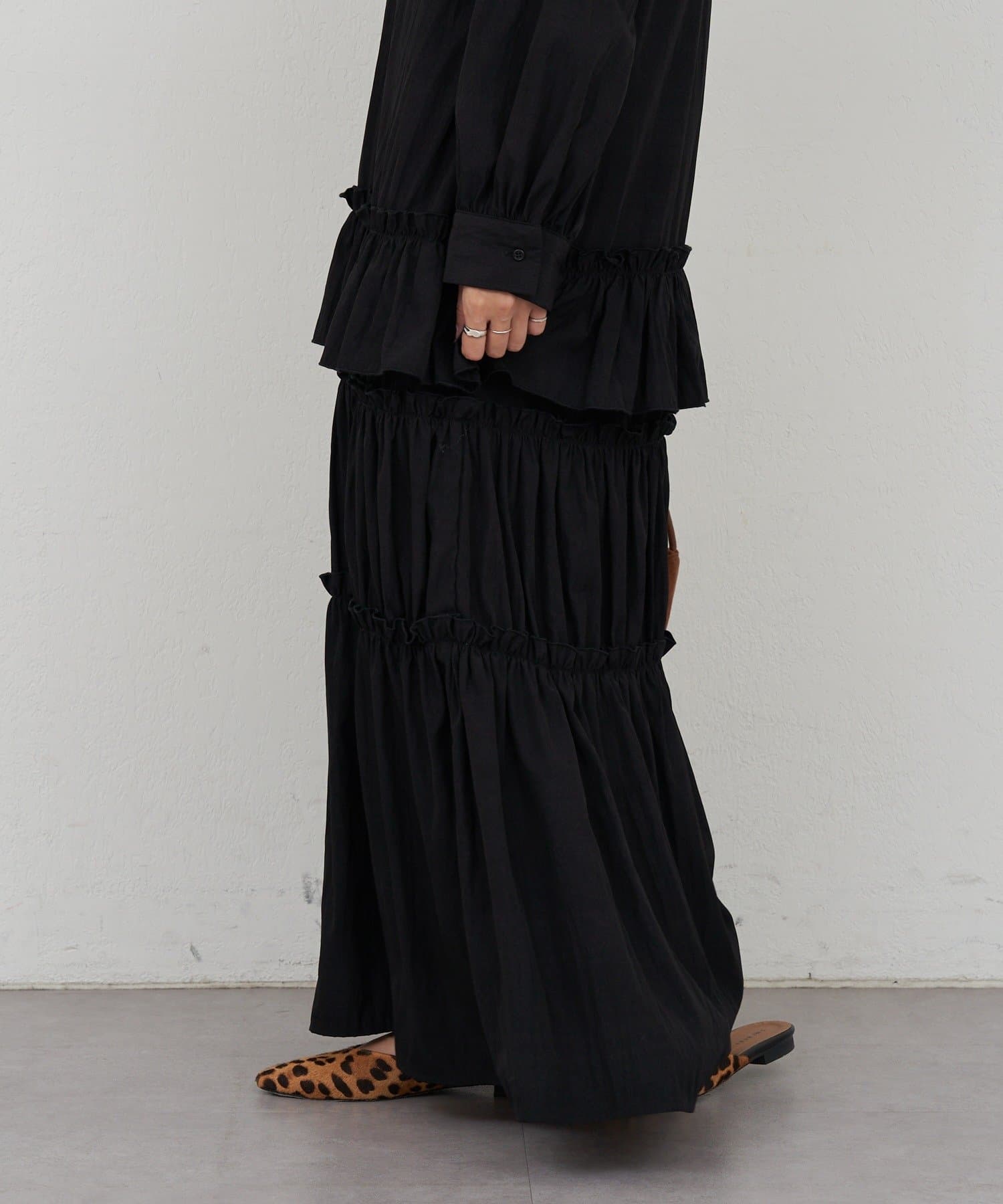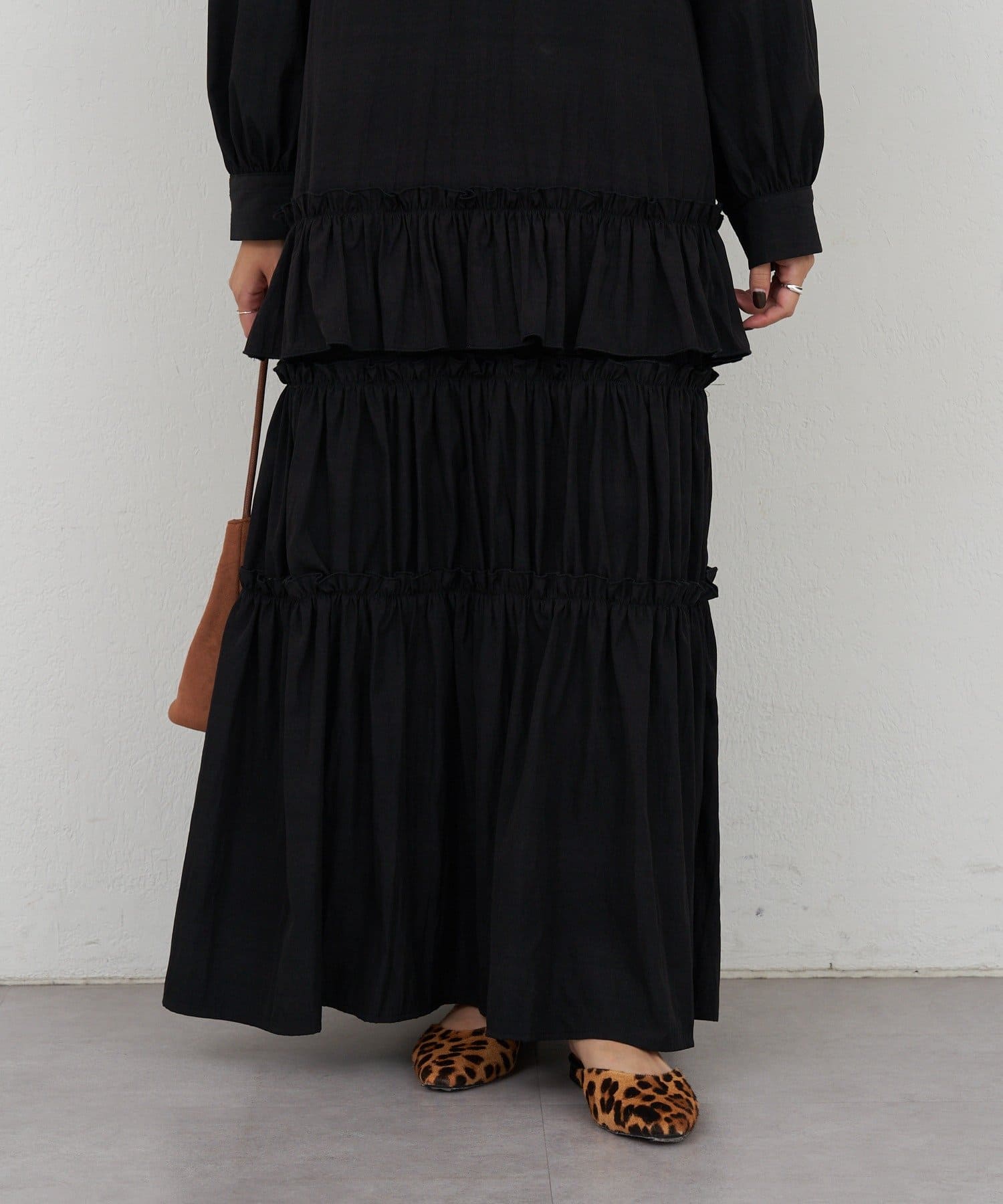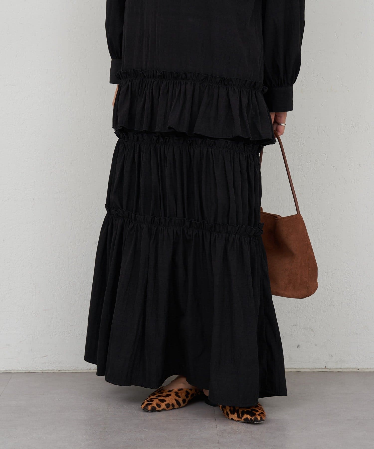 ボリューム感たっぷりのティアードワンピース。