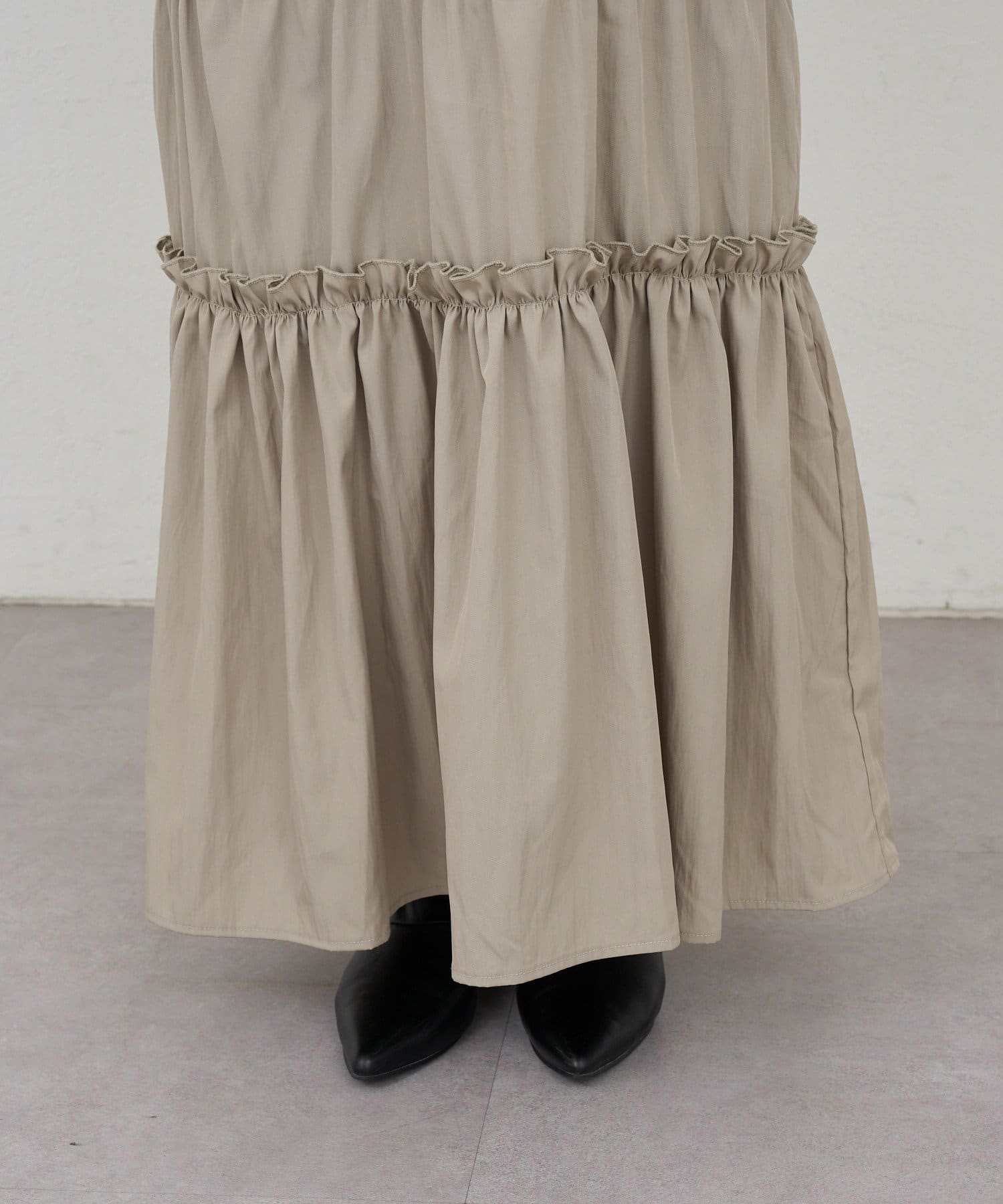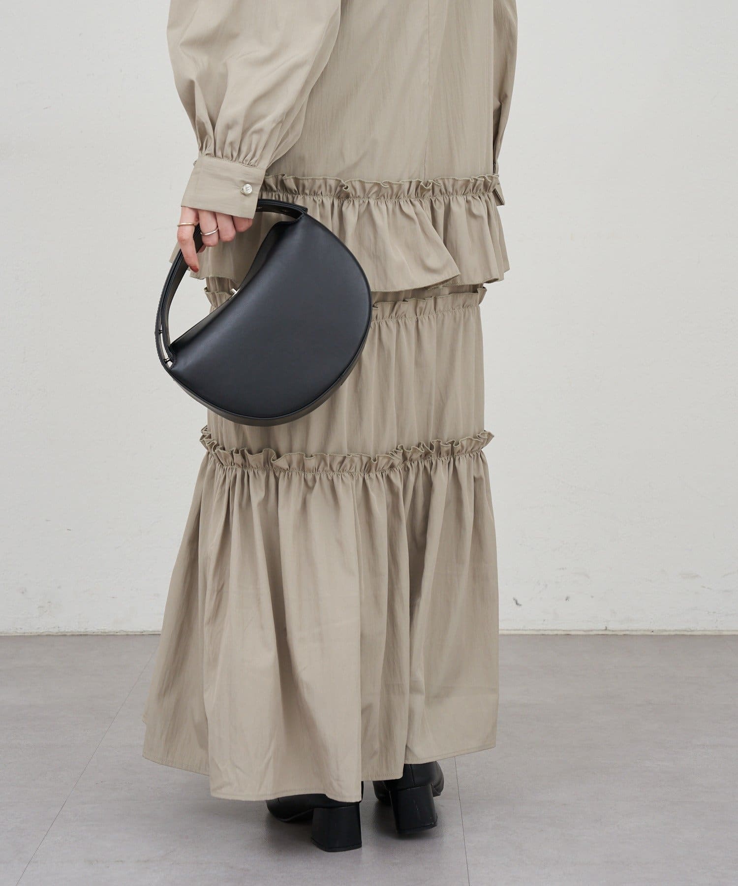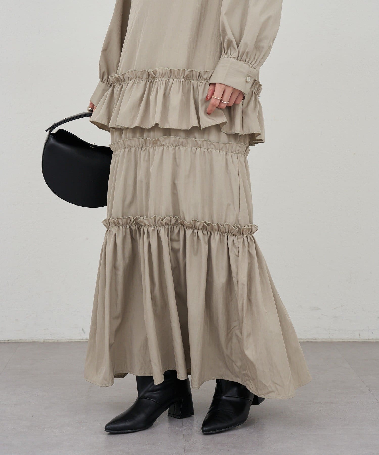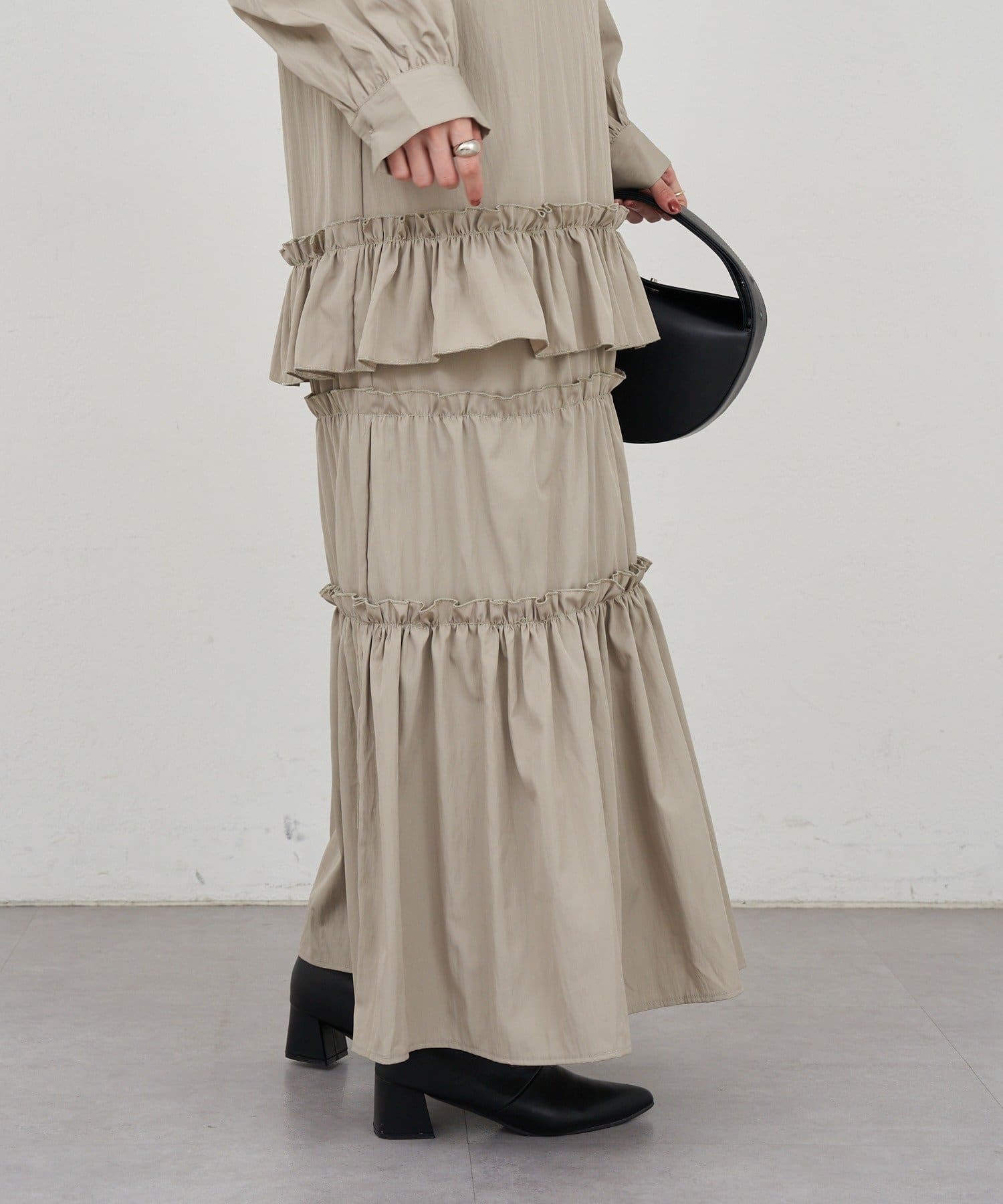 ボリューム感たっぷりのティアードワンピース。