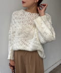 ざっくりとした編み目はシャツやカットソーなど、様々なアイテムとの着こなしを楽めるのが魅力。