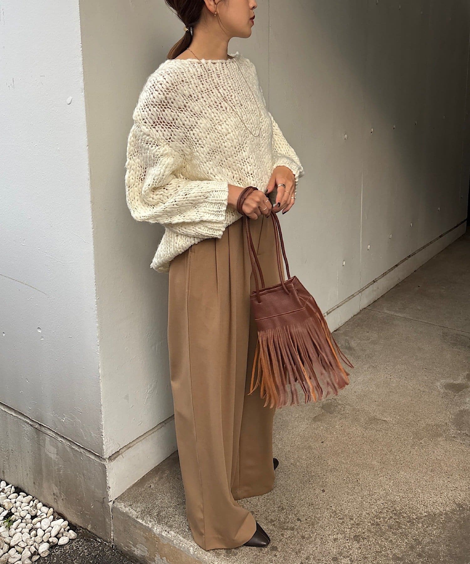 パンツスタイルにもスカートスタイルにもマッチしてくれるので、普段使いしやすく、取り入れるだけで旬なスタイリングが完成します。
