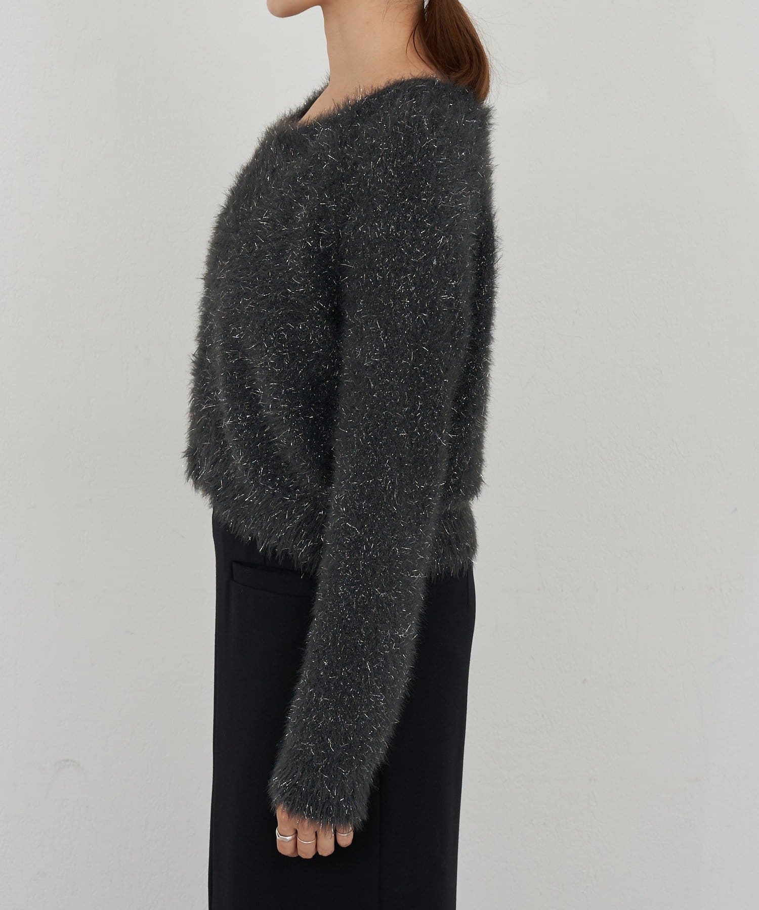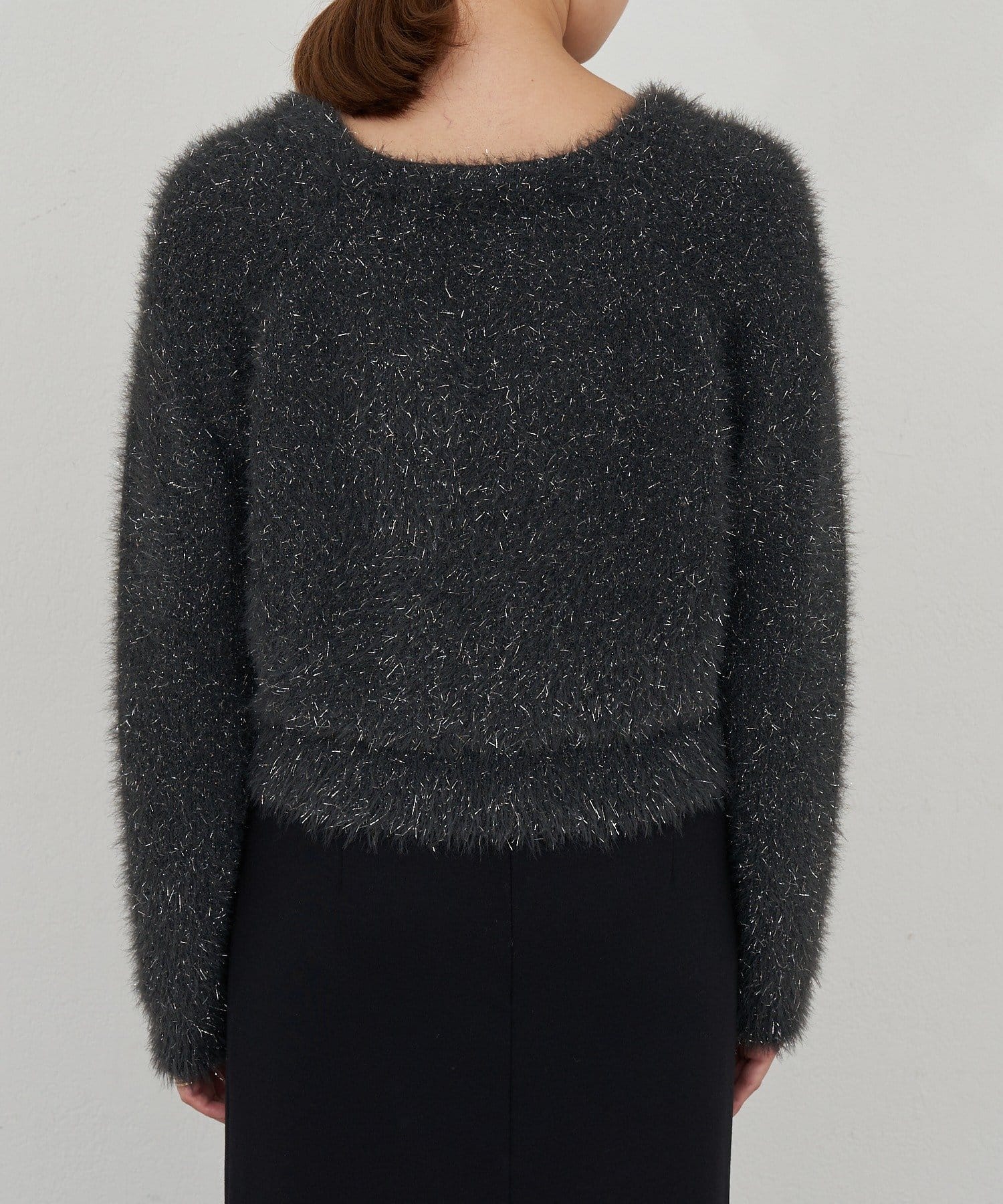 光沢感のあるラメ糸をMIXしたニットトップス。