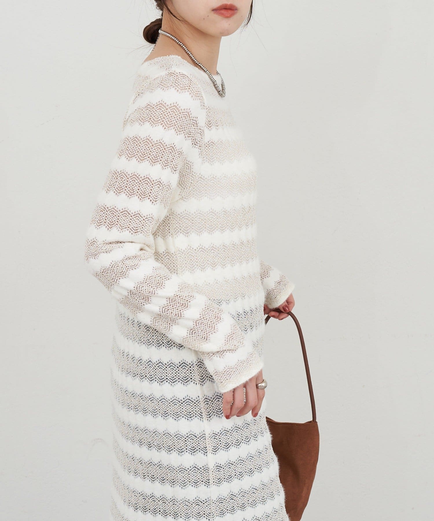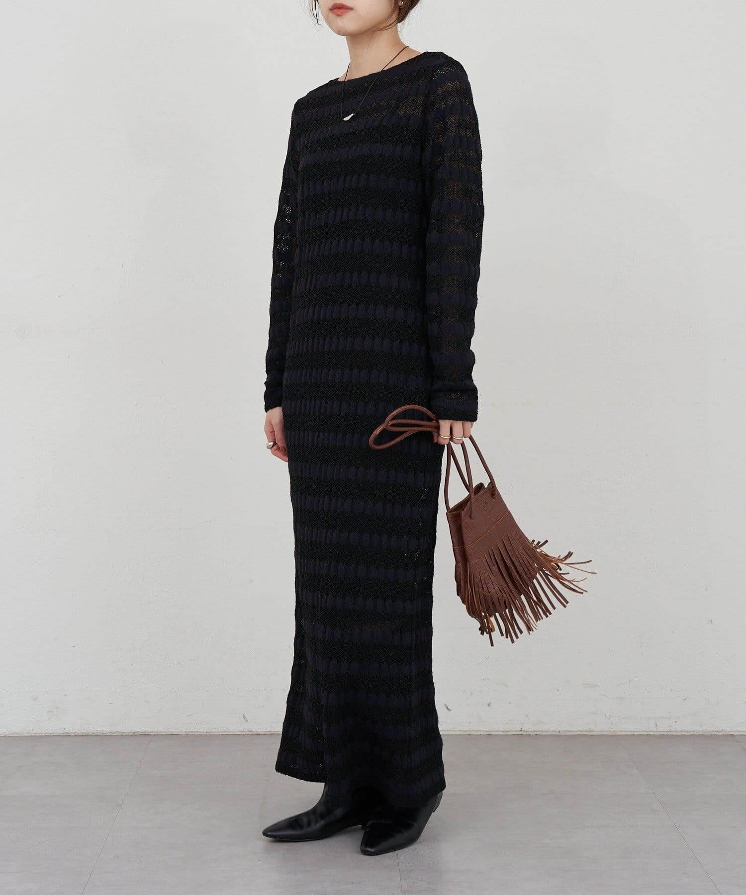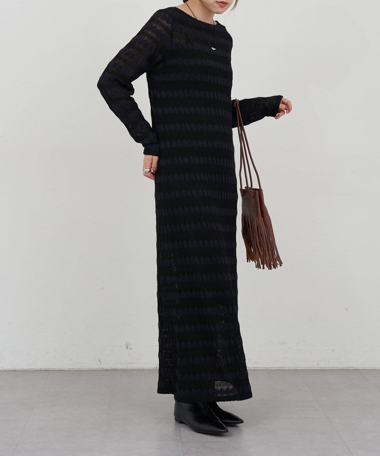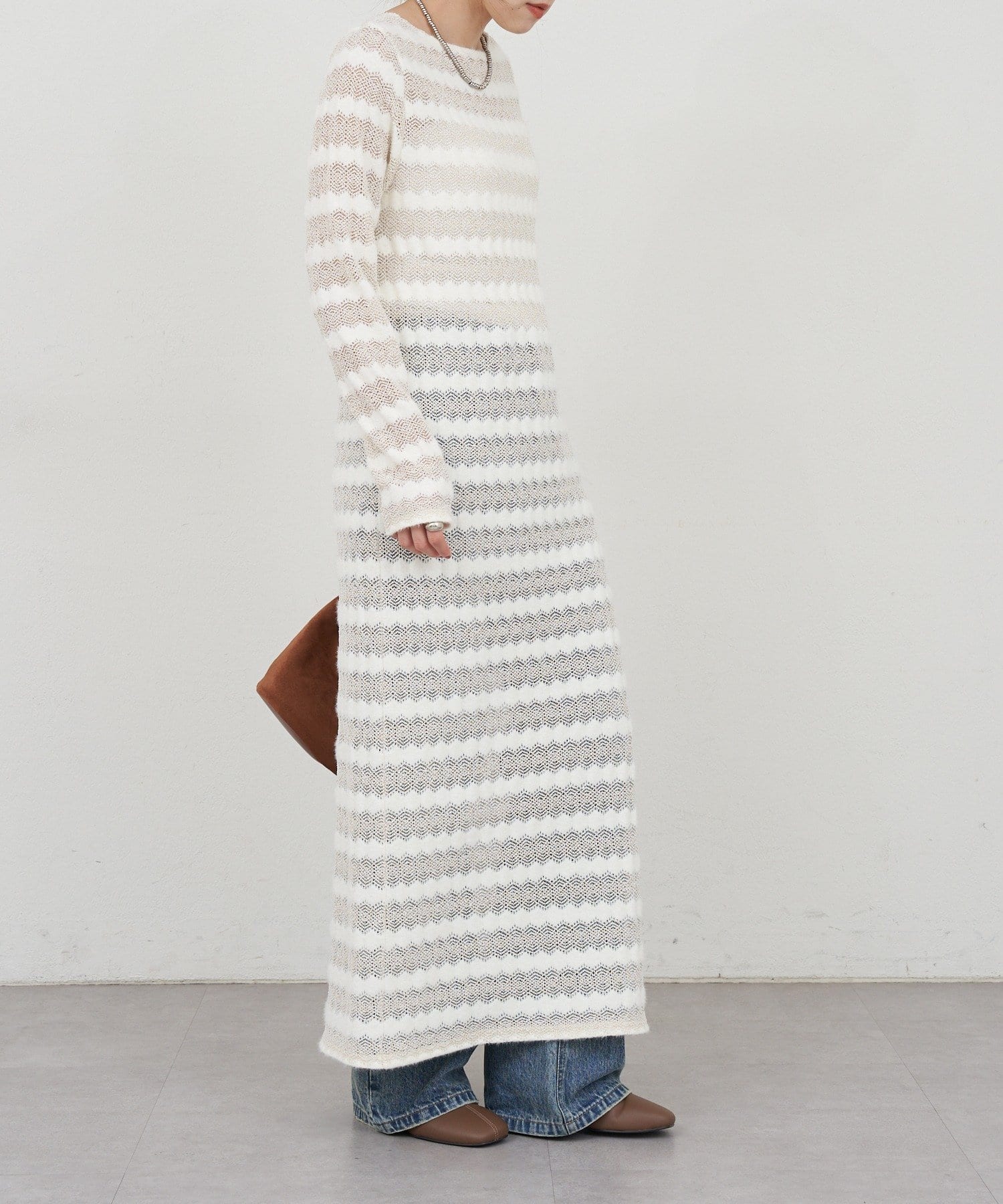程よい透け感のニットが大人っぽい雰囲気のワンピース。