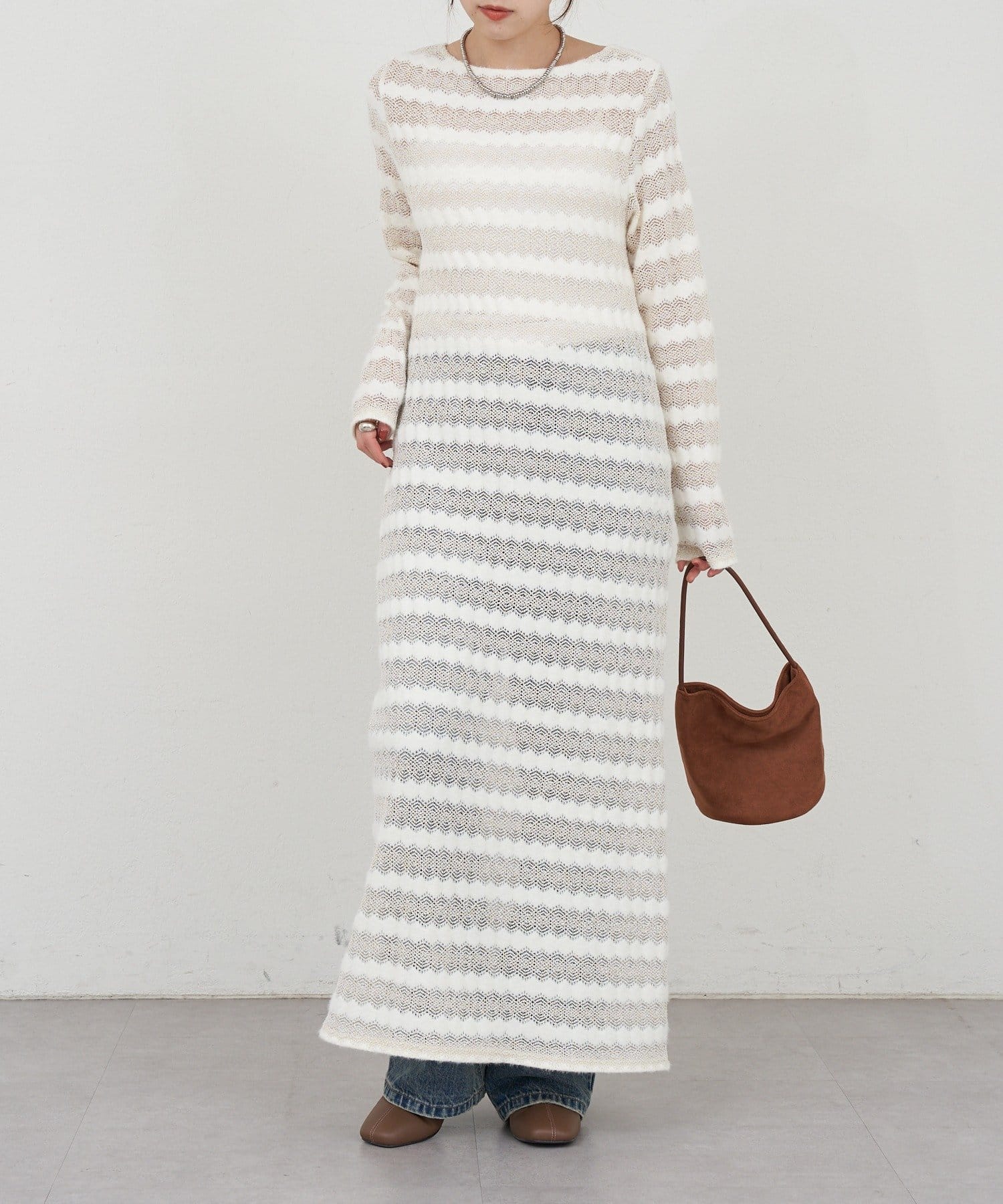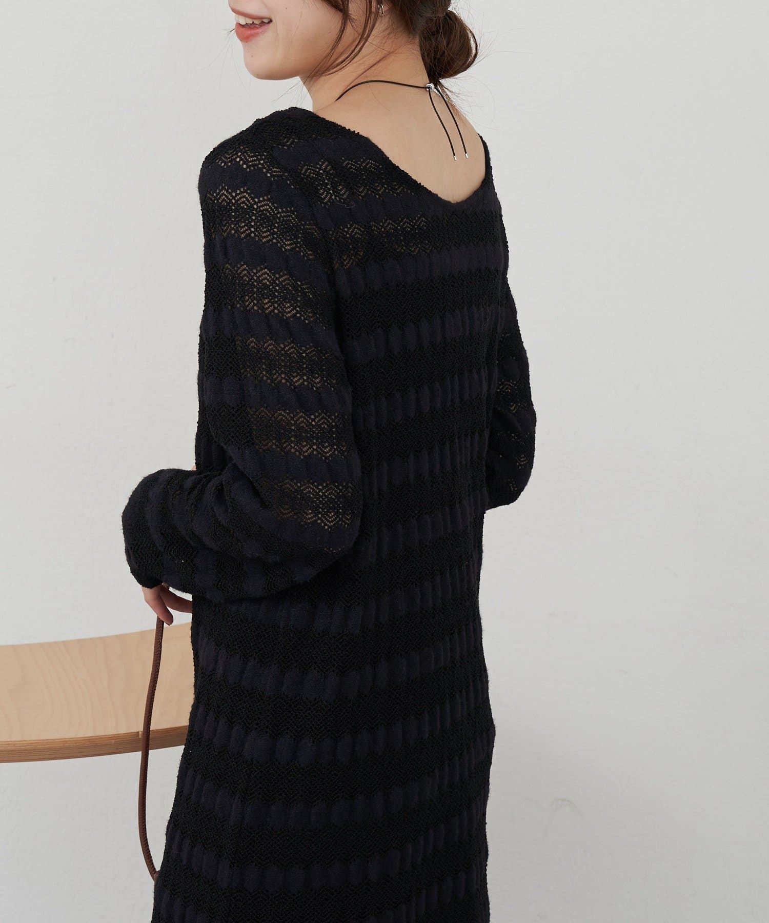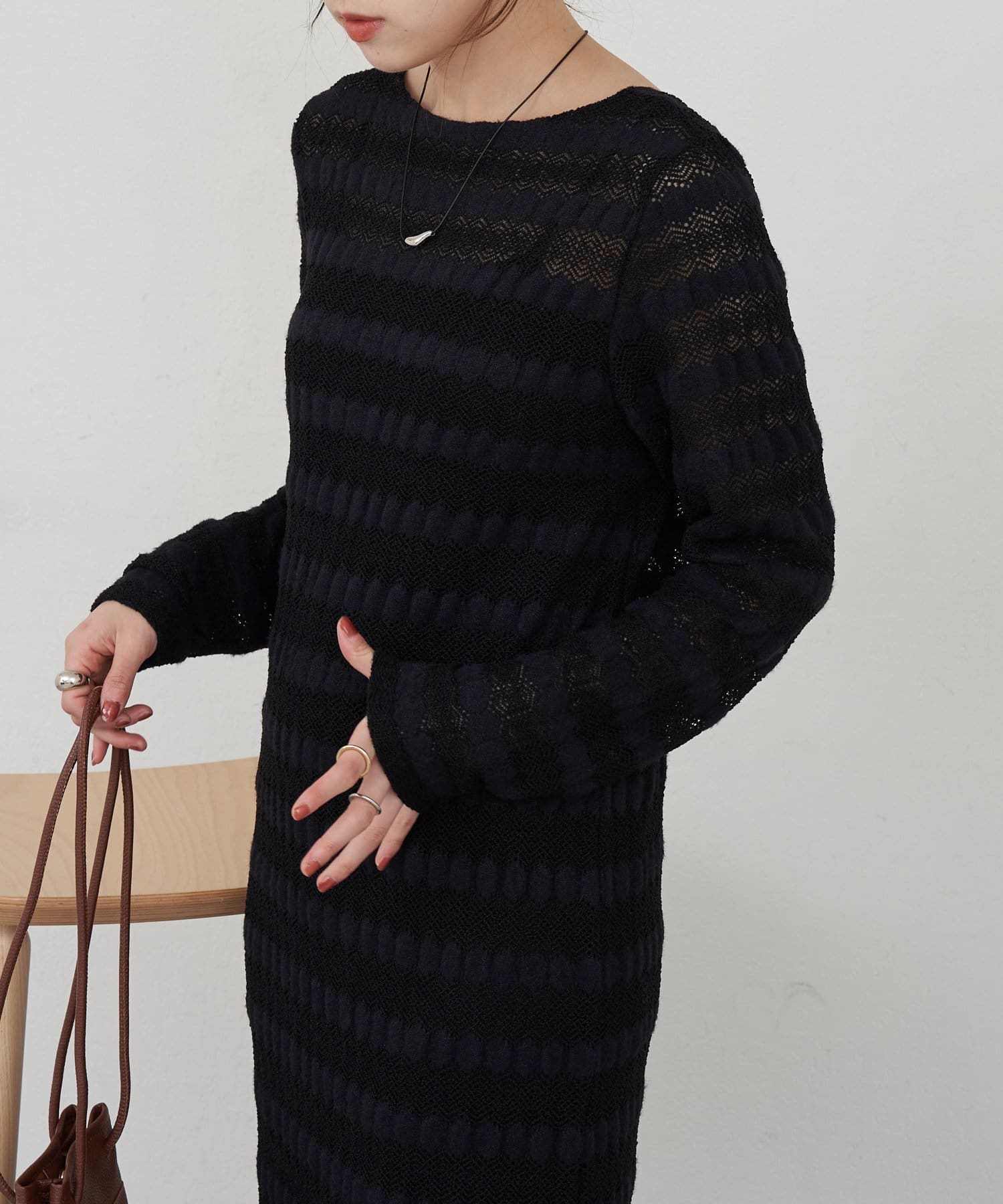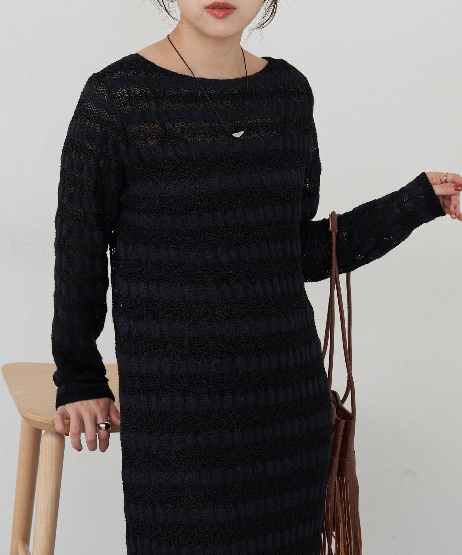 程よい透け感のニットが大人っぽい雰囲気のワンピース。