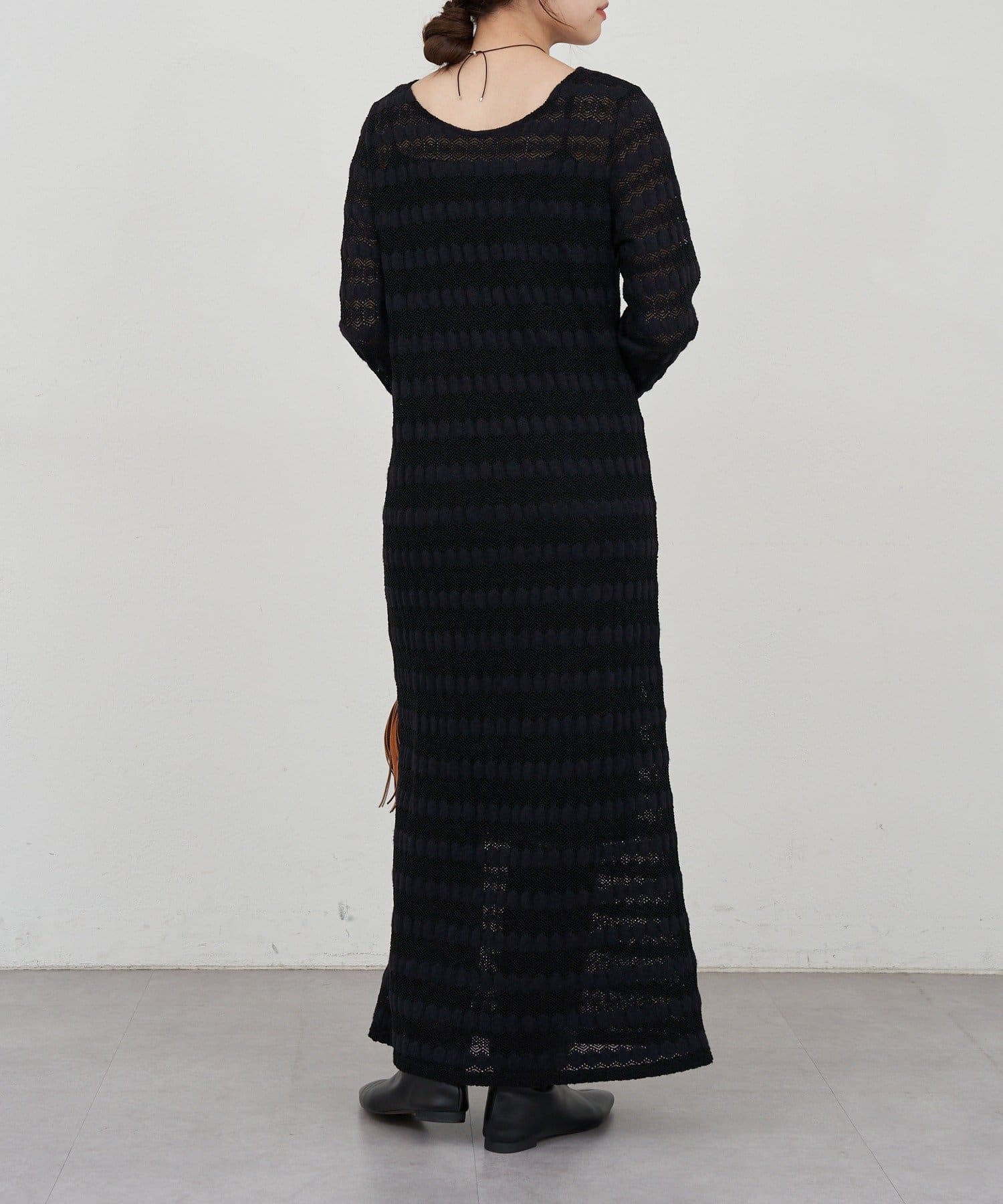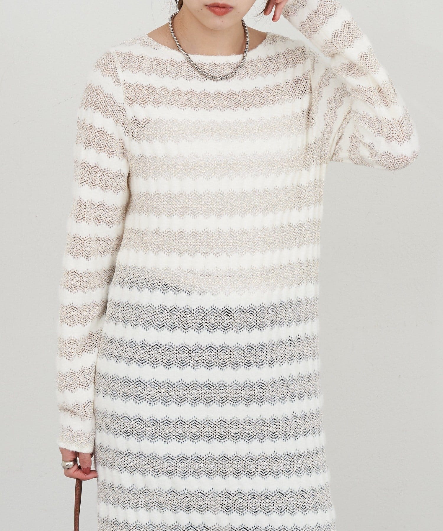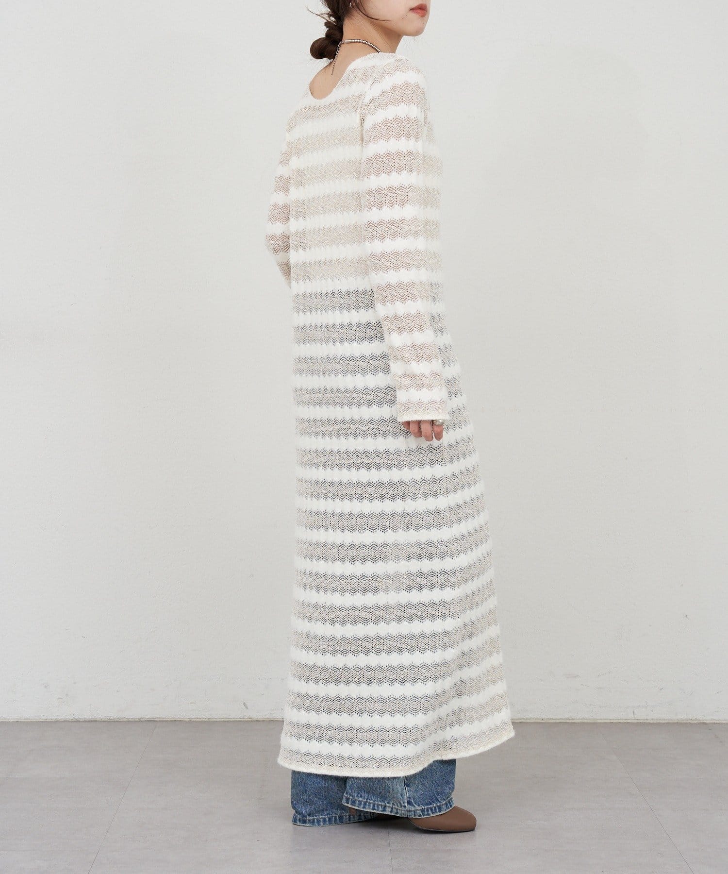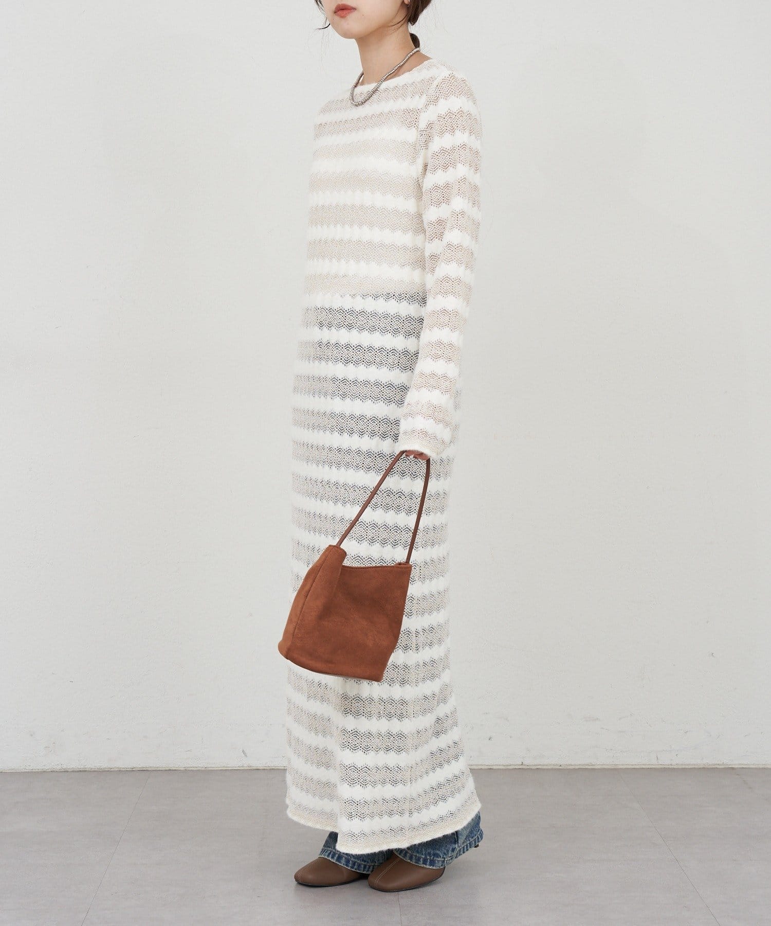 程よい透け感のニットが大人っぽい雰囲気のワンピース。