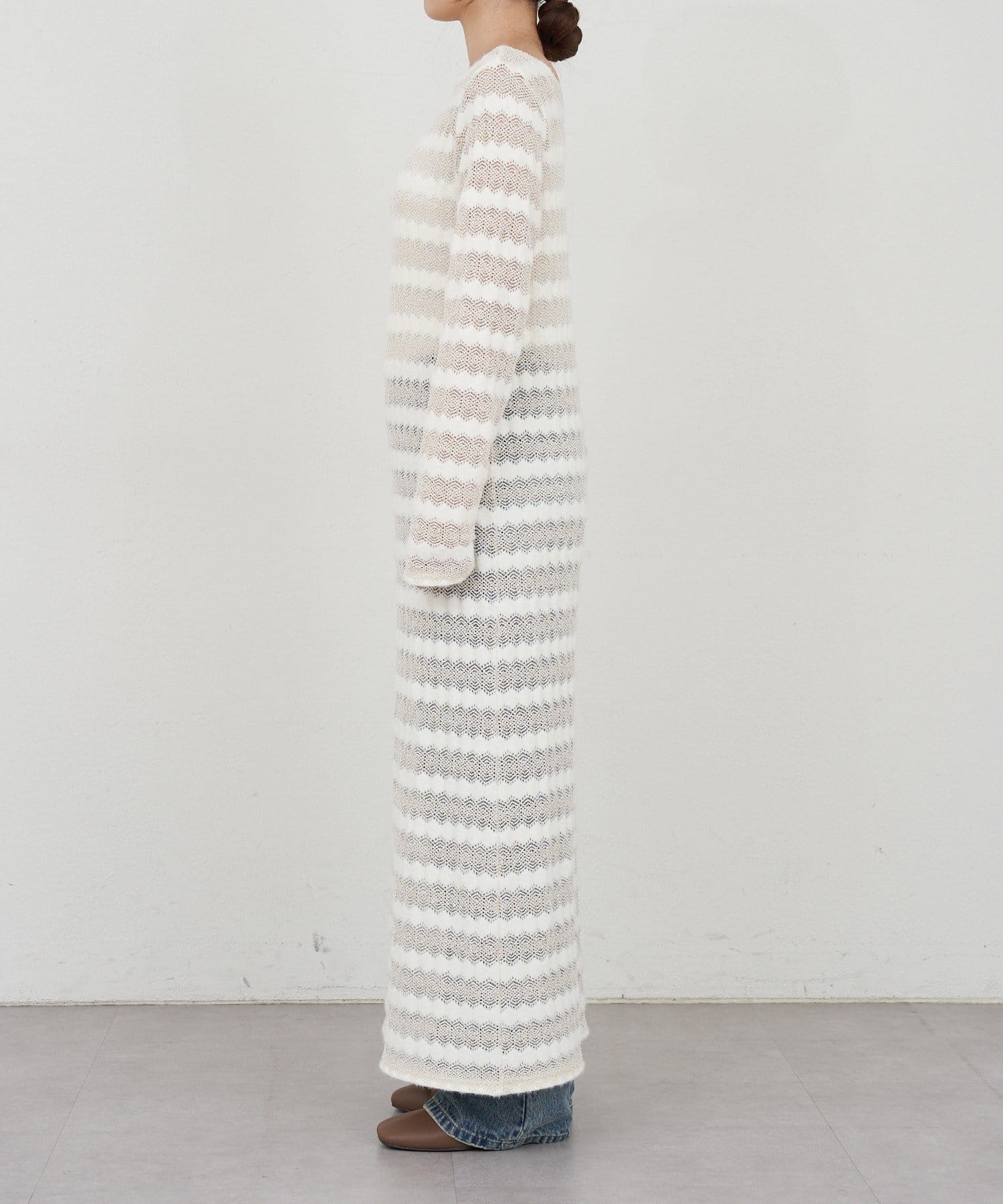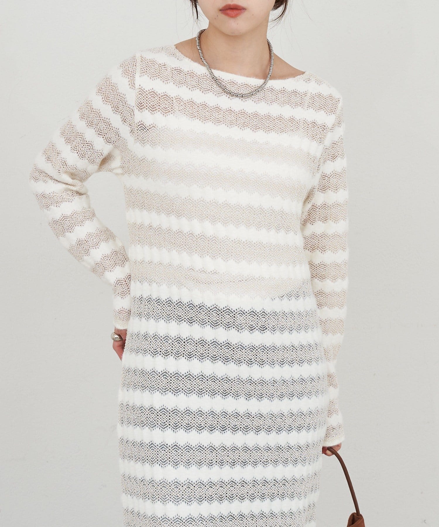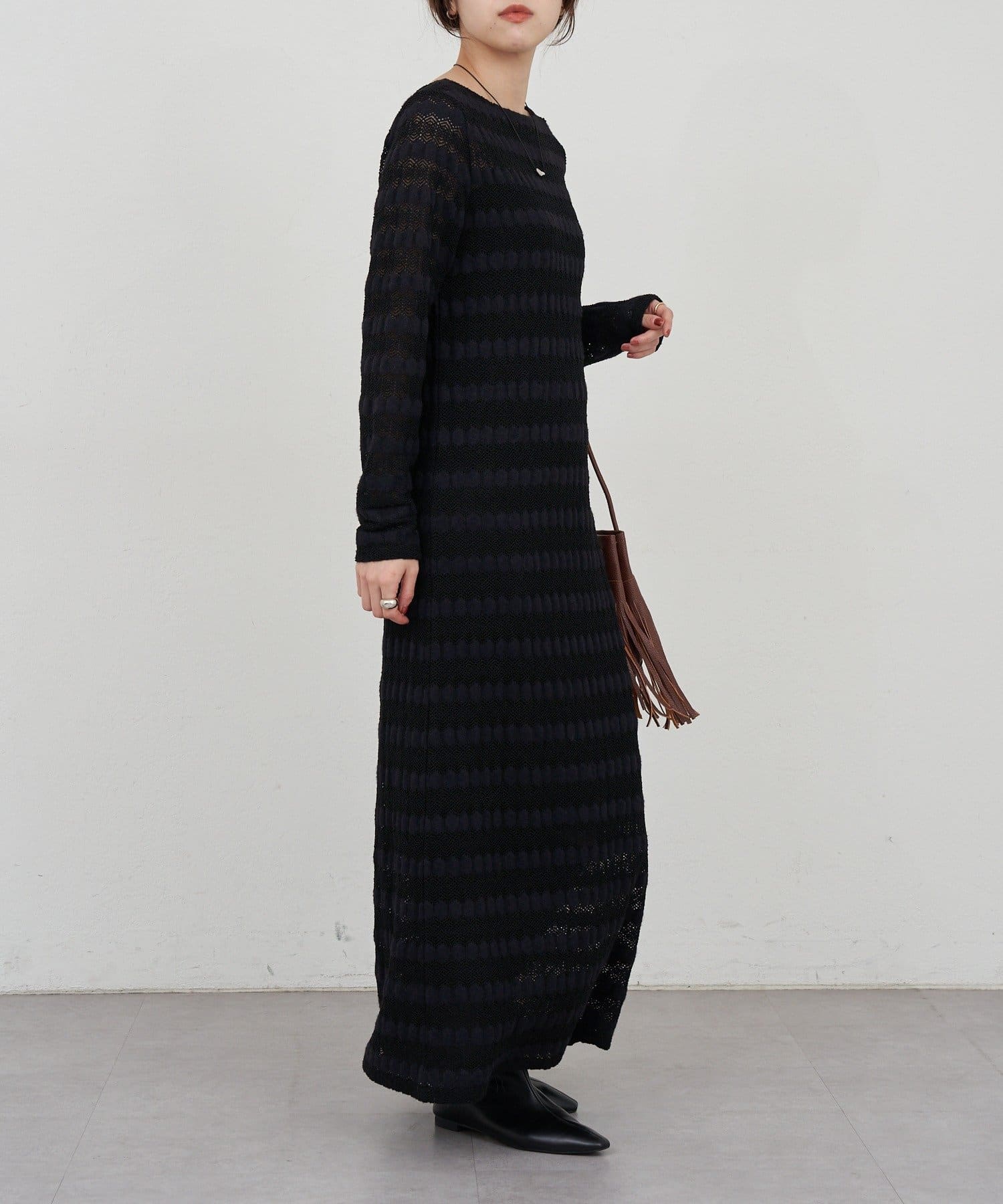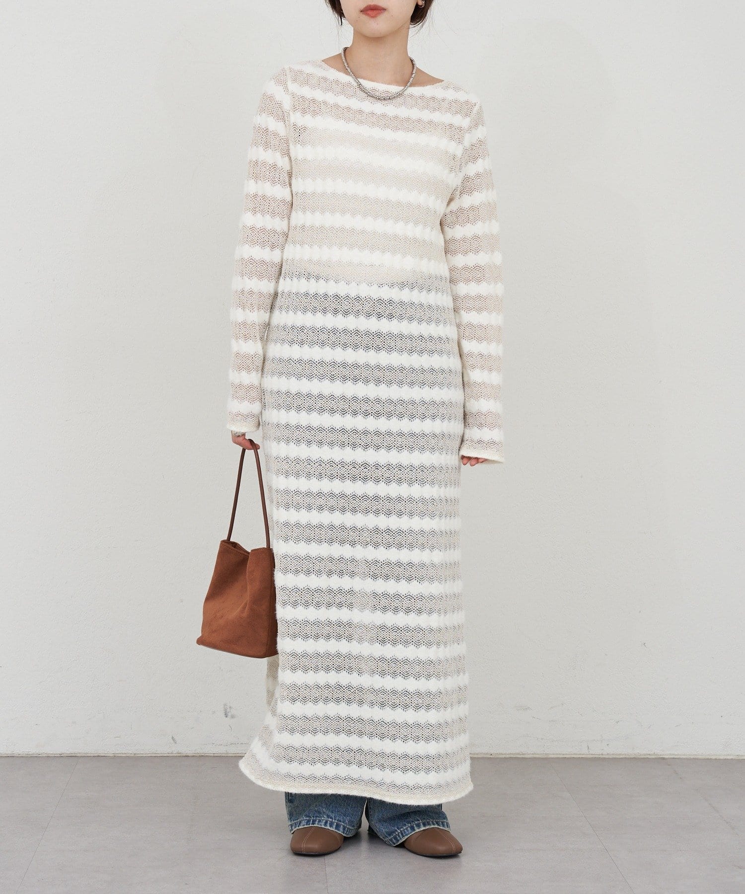 程よい透け感のニットが大人っぽい雰囲気のワンピース。