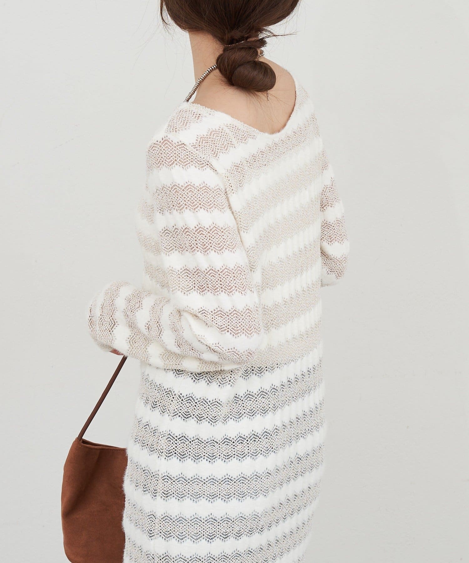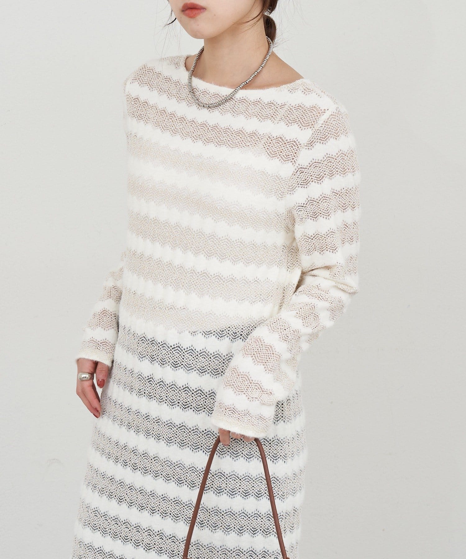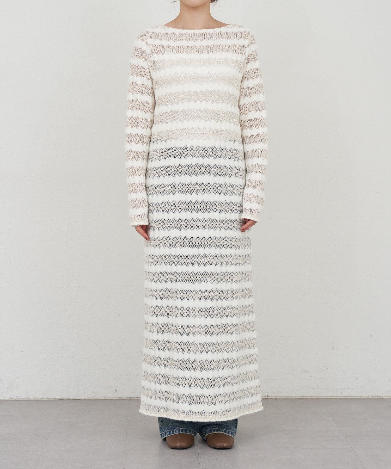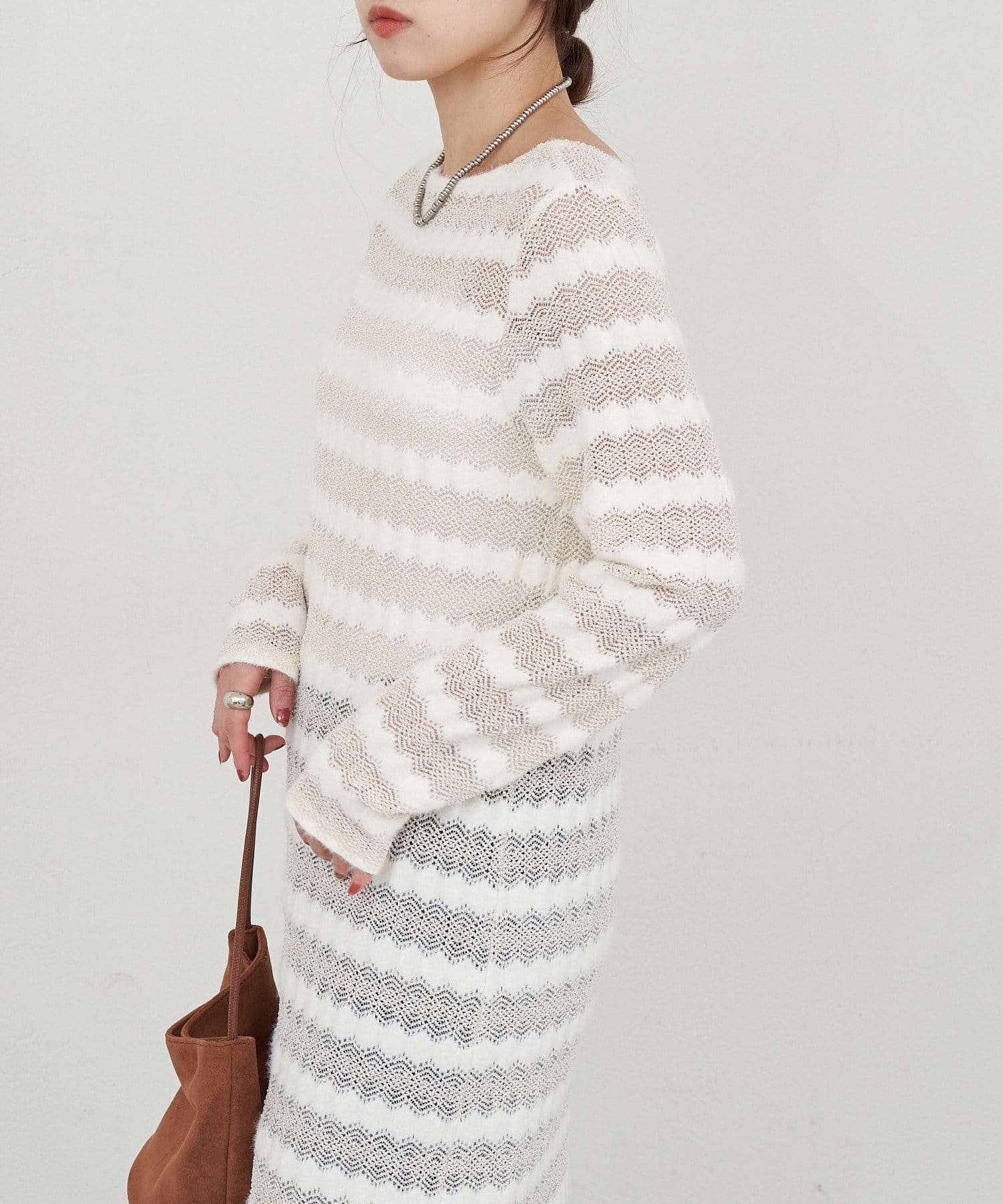 程よい透け感のニットが大人っぽい雰囲気のワンピース。