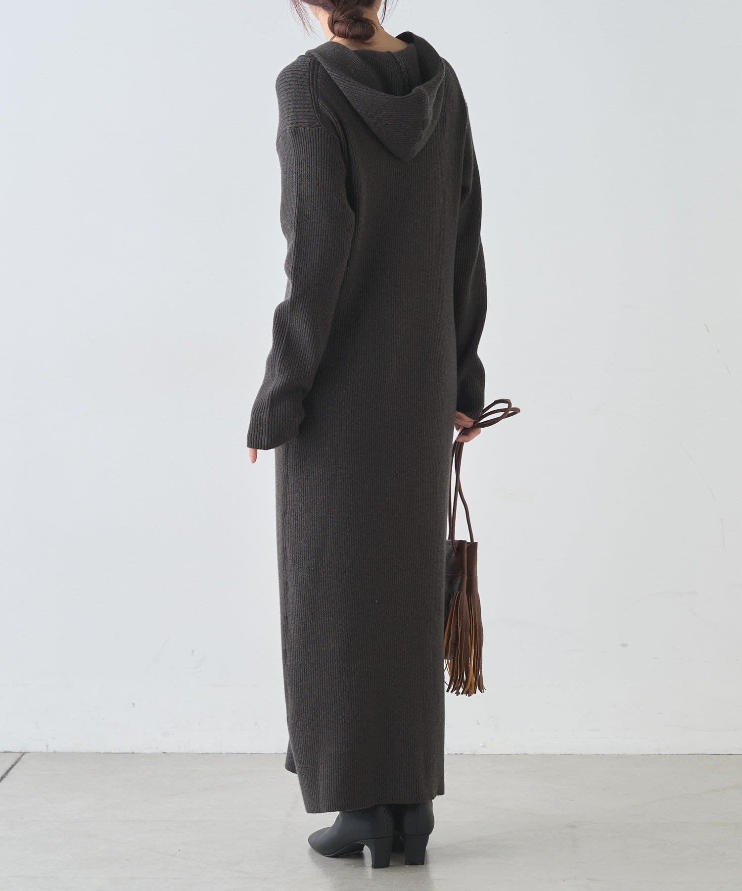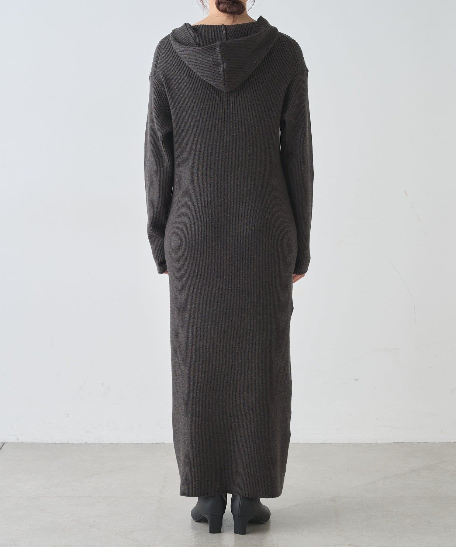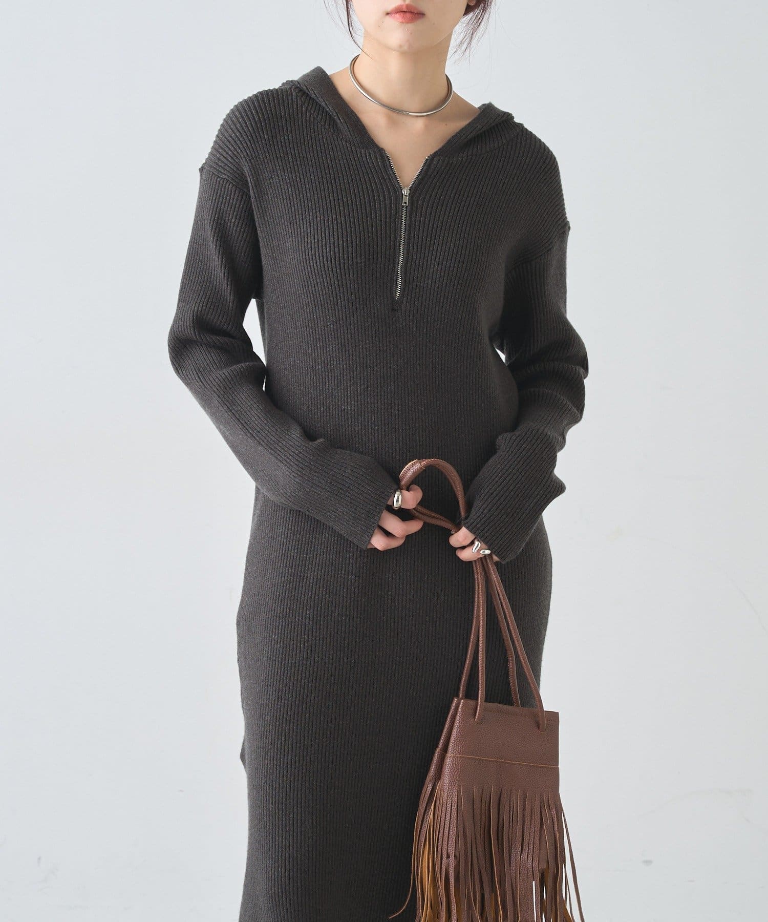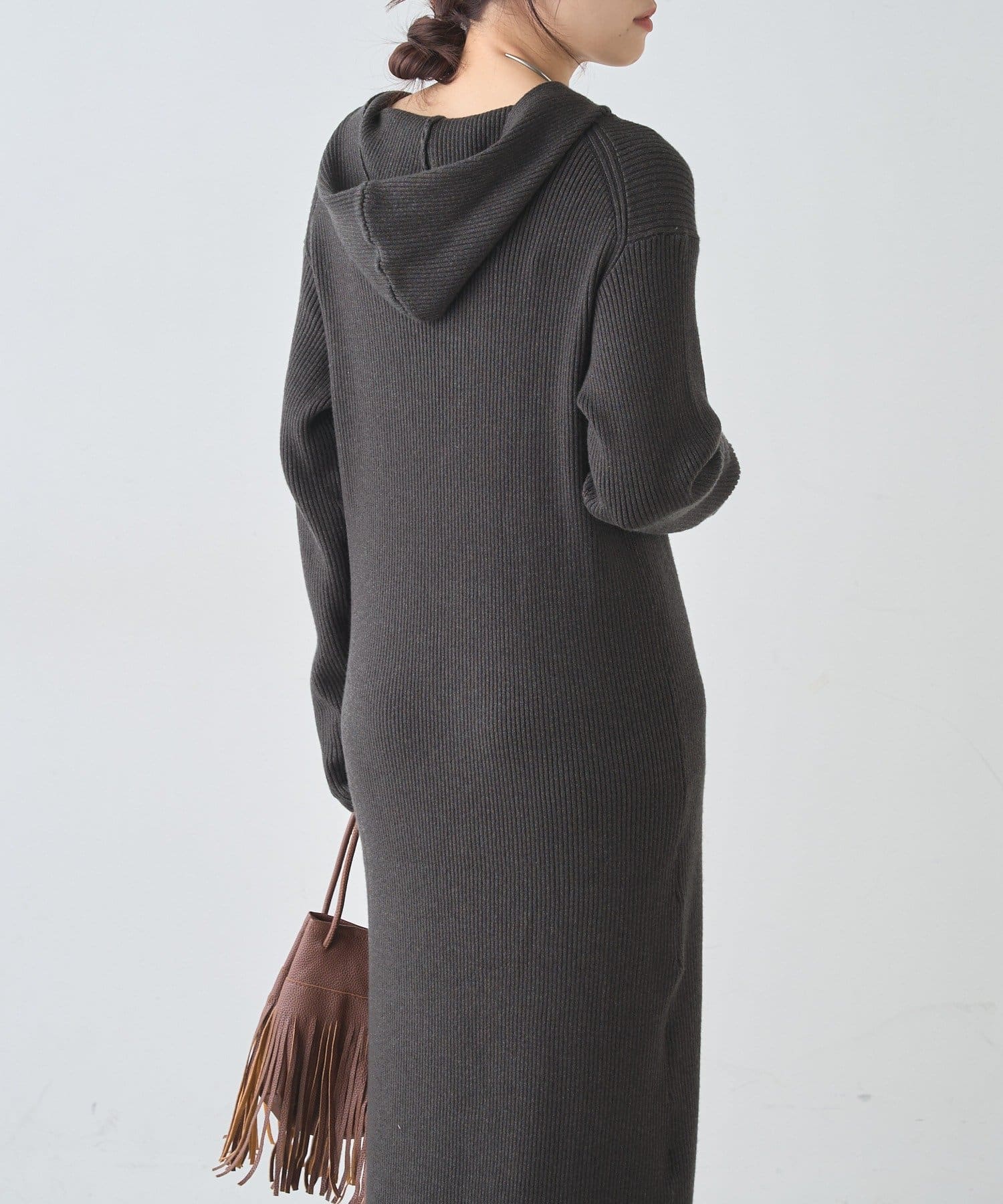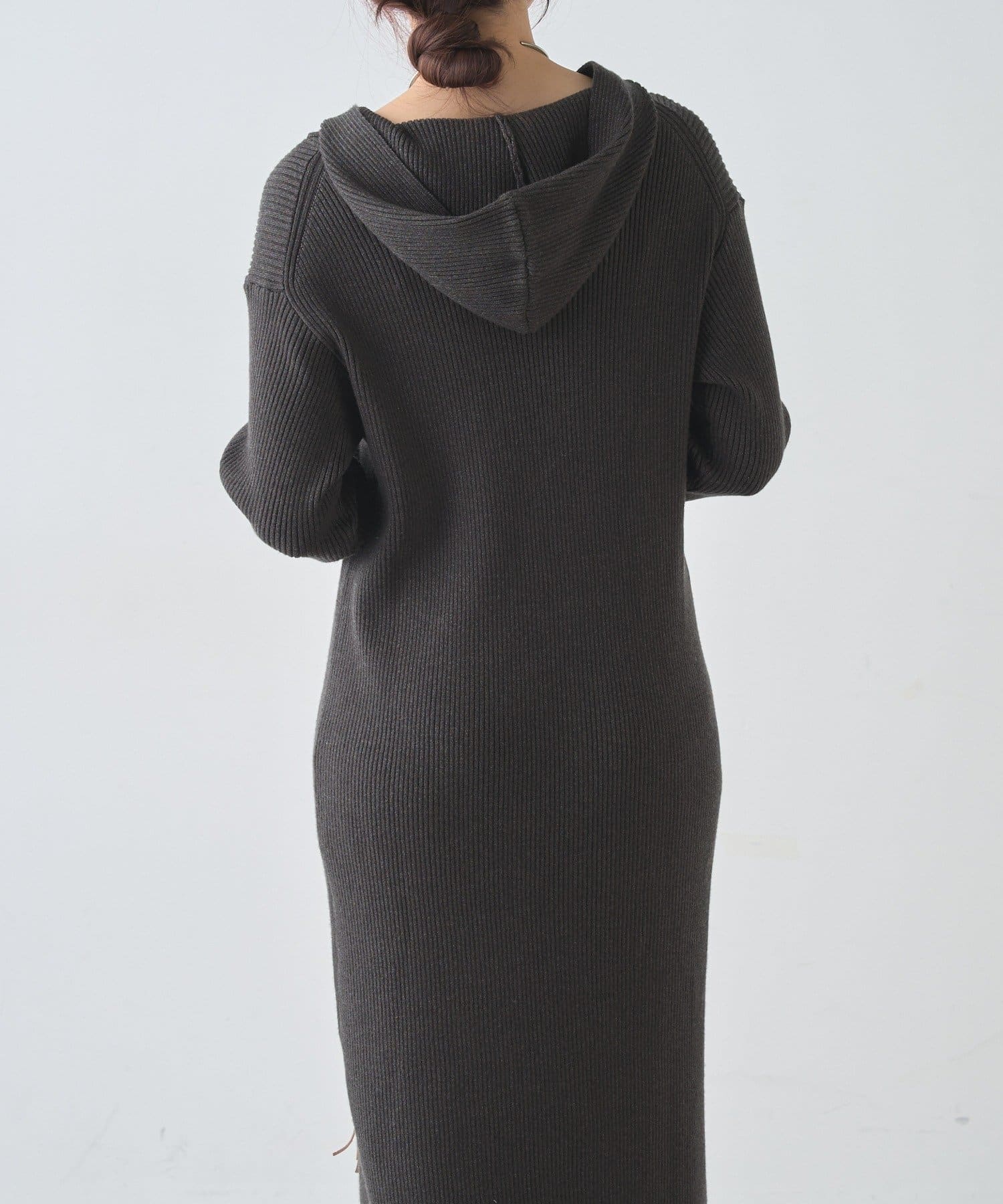 カジュアルコーデにもピッタリ!フード付きリブニットワンピース