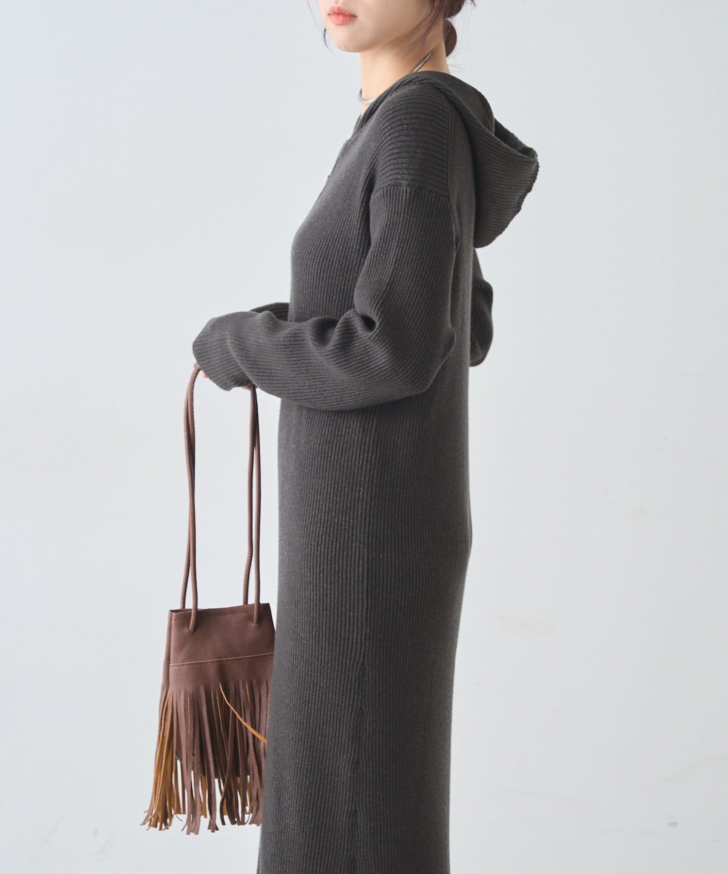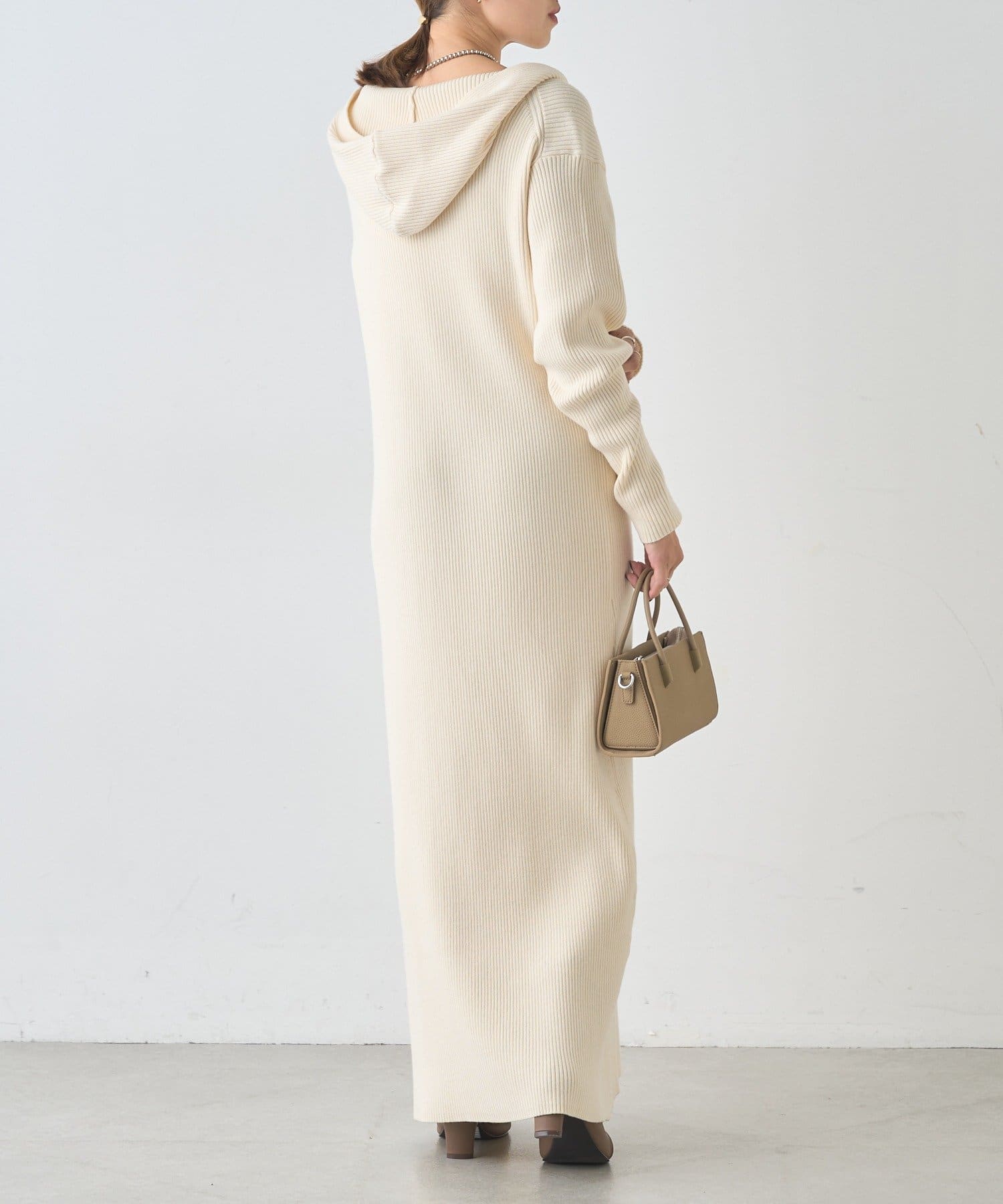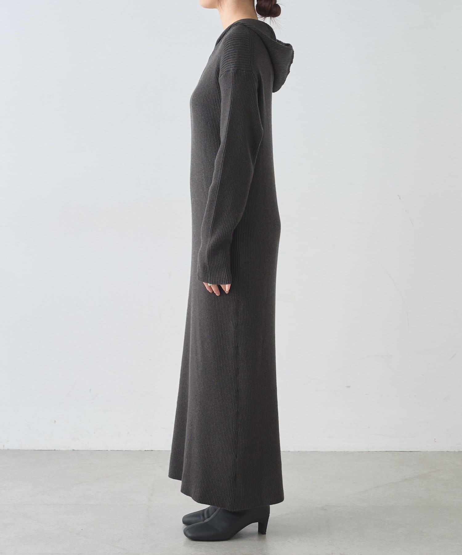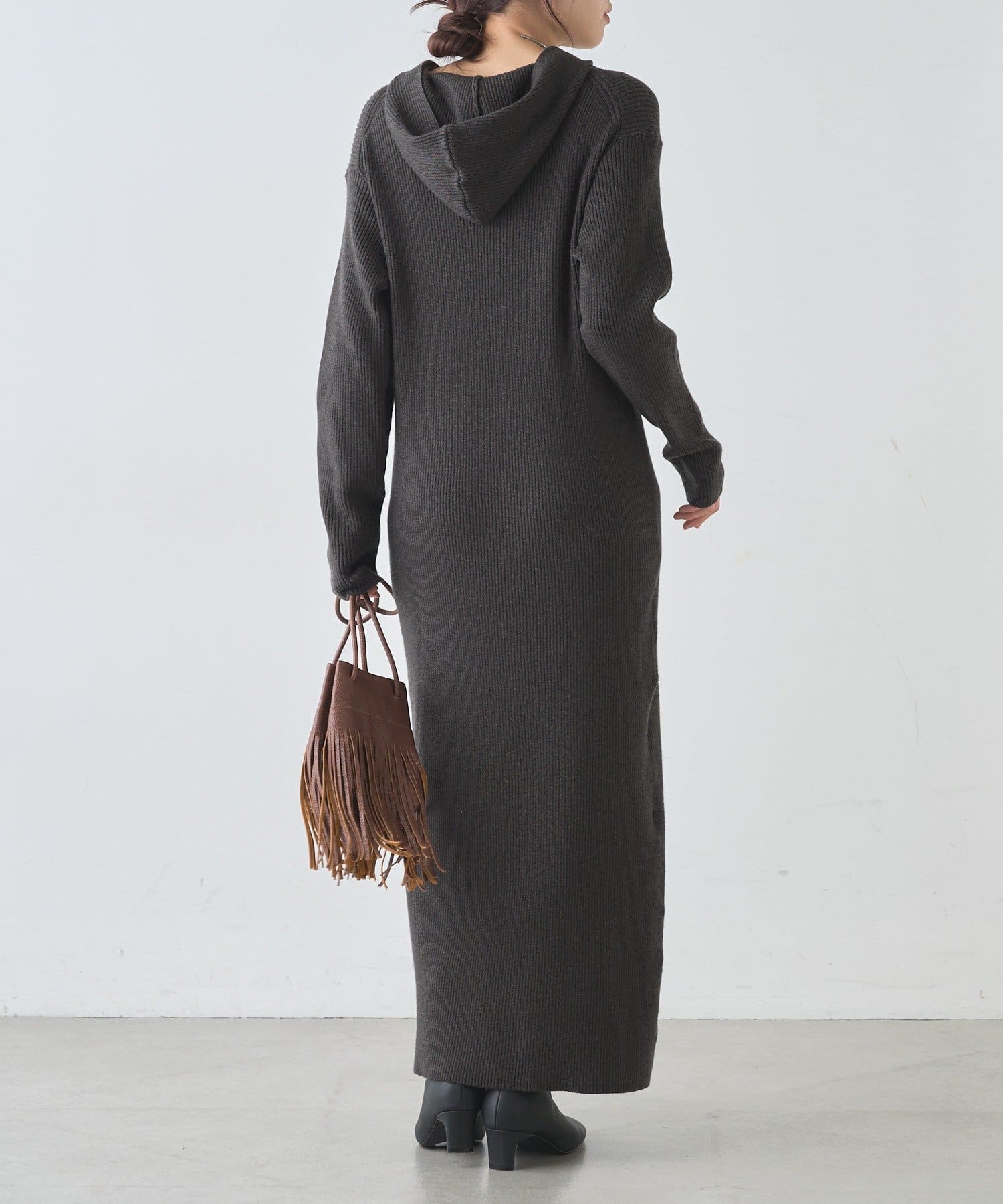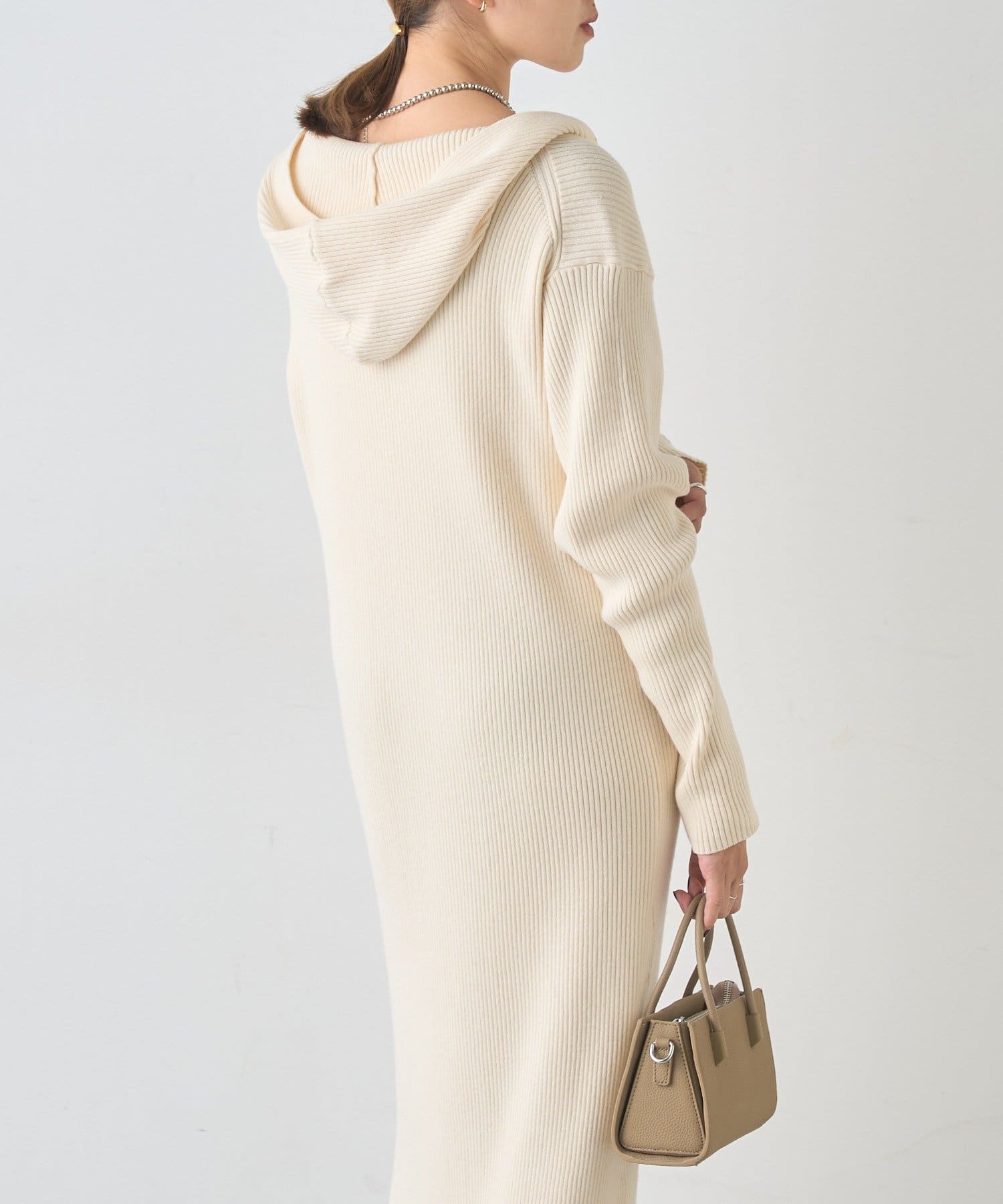 カジュアルコーデにもピッタリ!フード付きリブニットワンピース