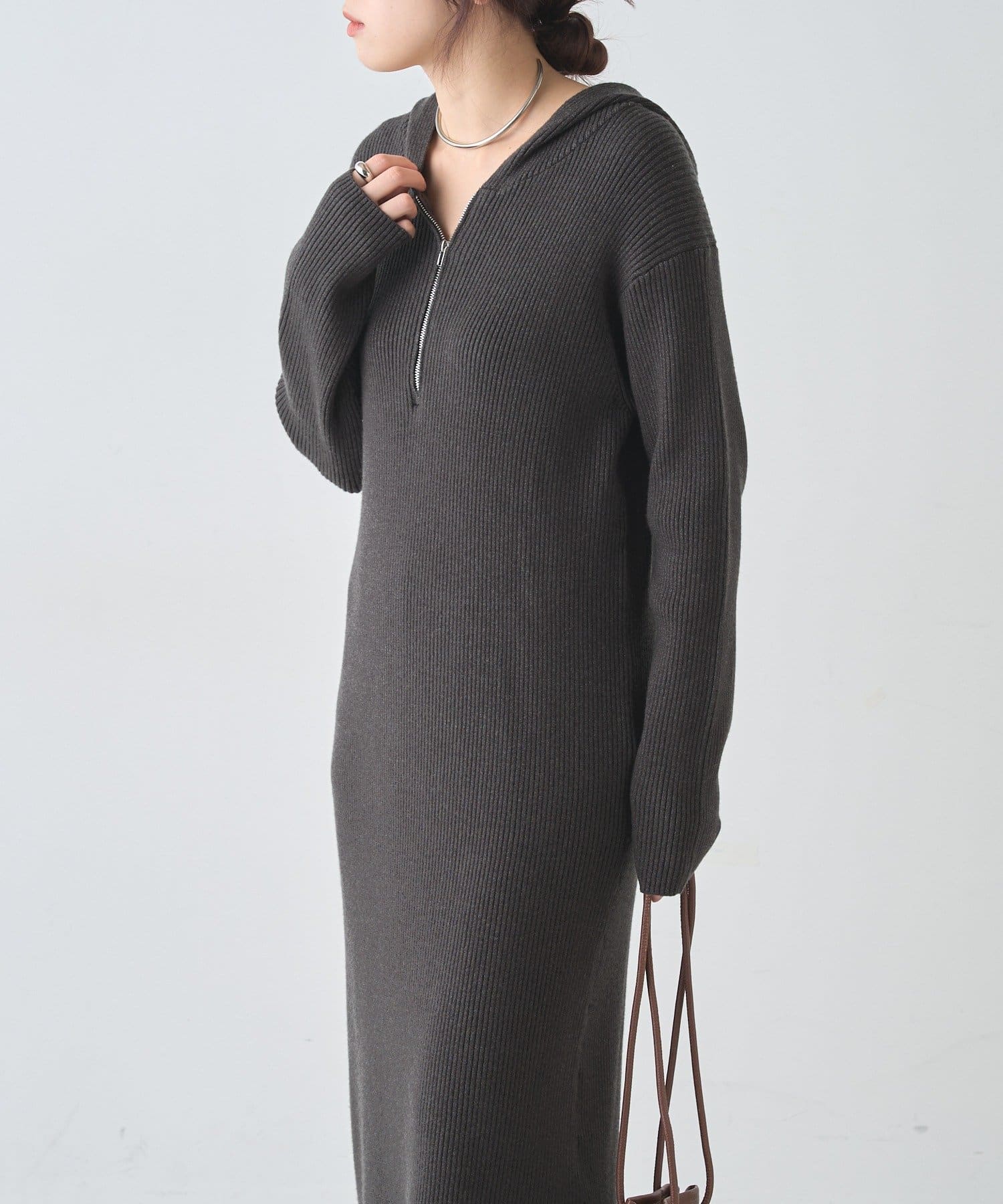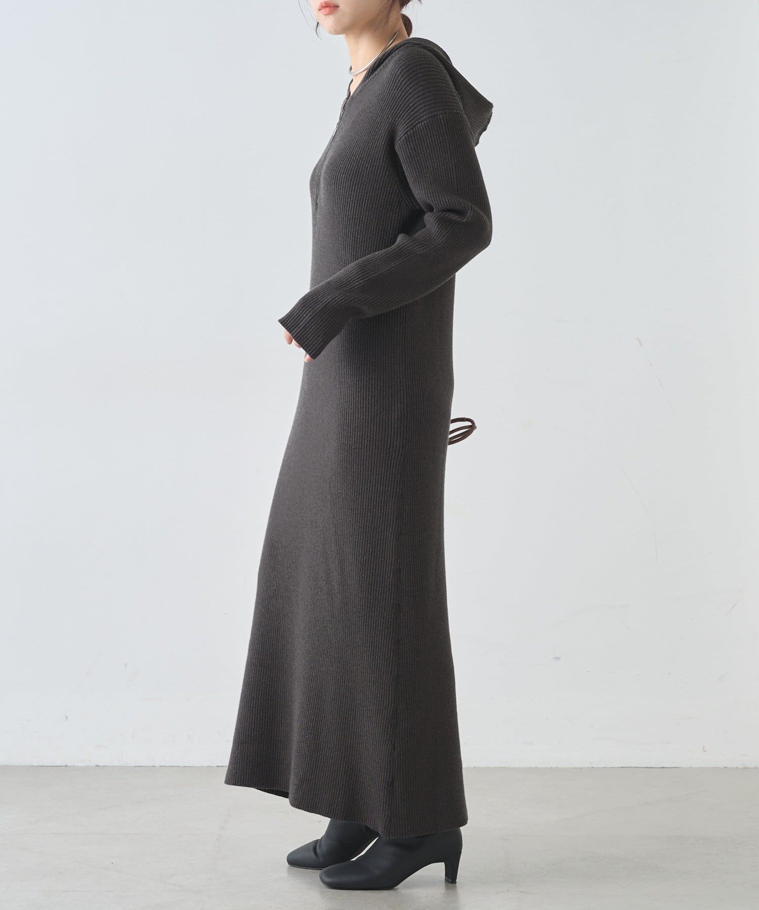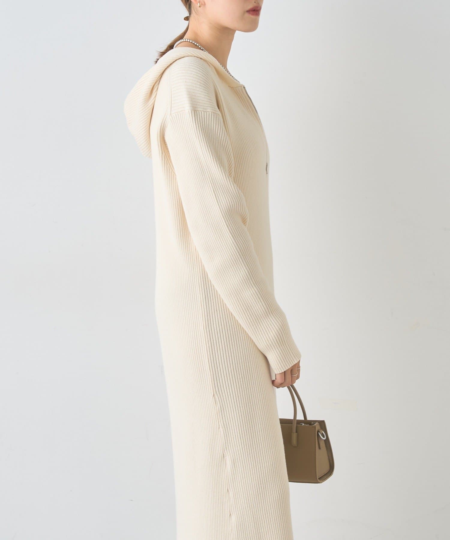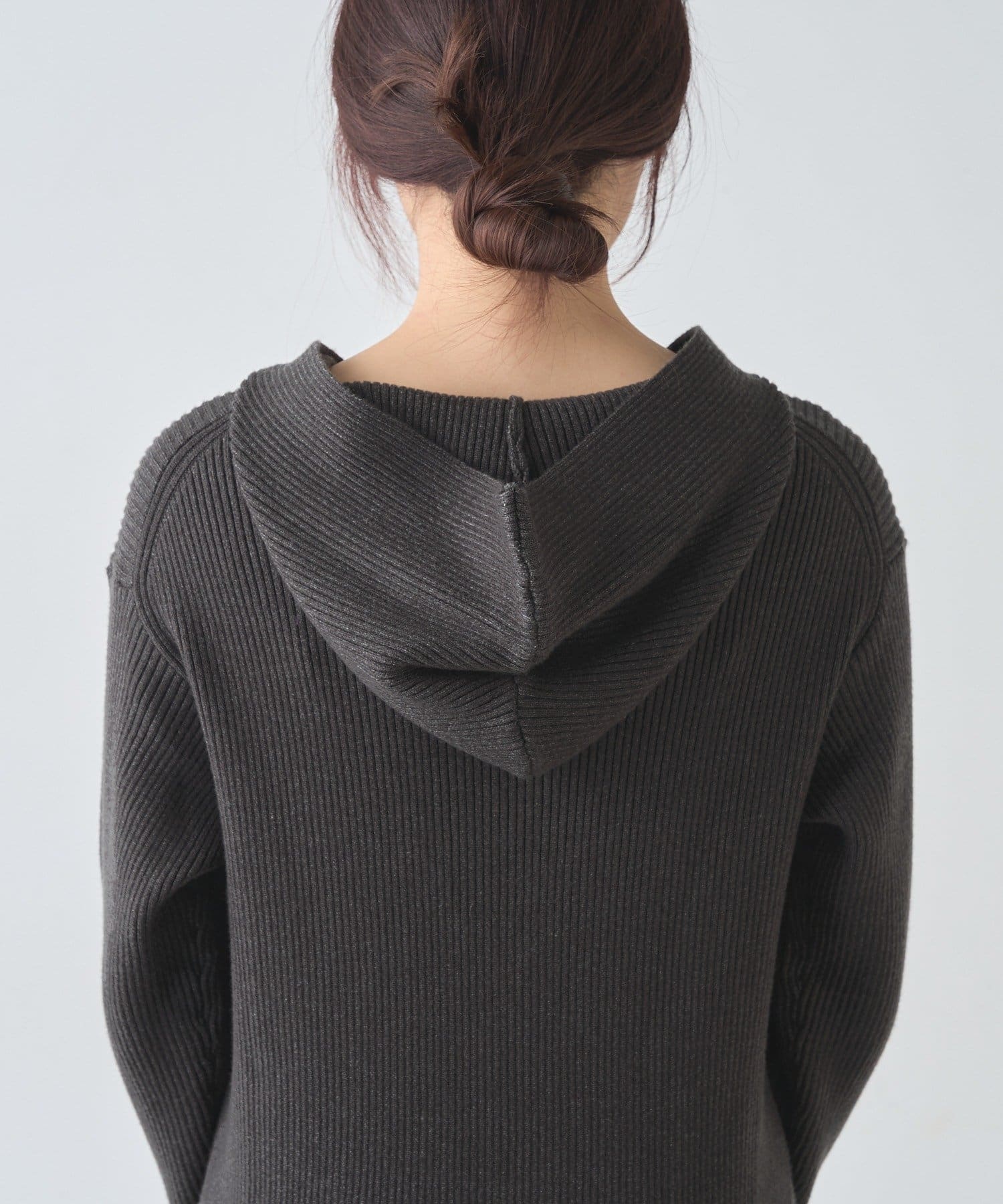 カジュアルコーデにもピッタリ!フード付きリブニットワンピース