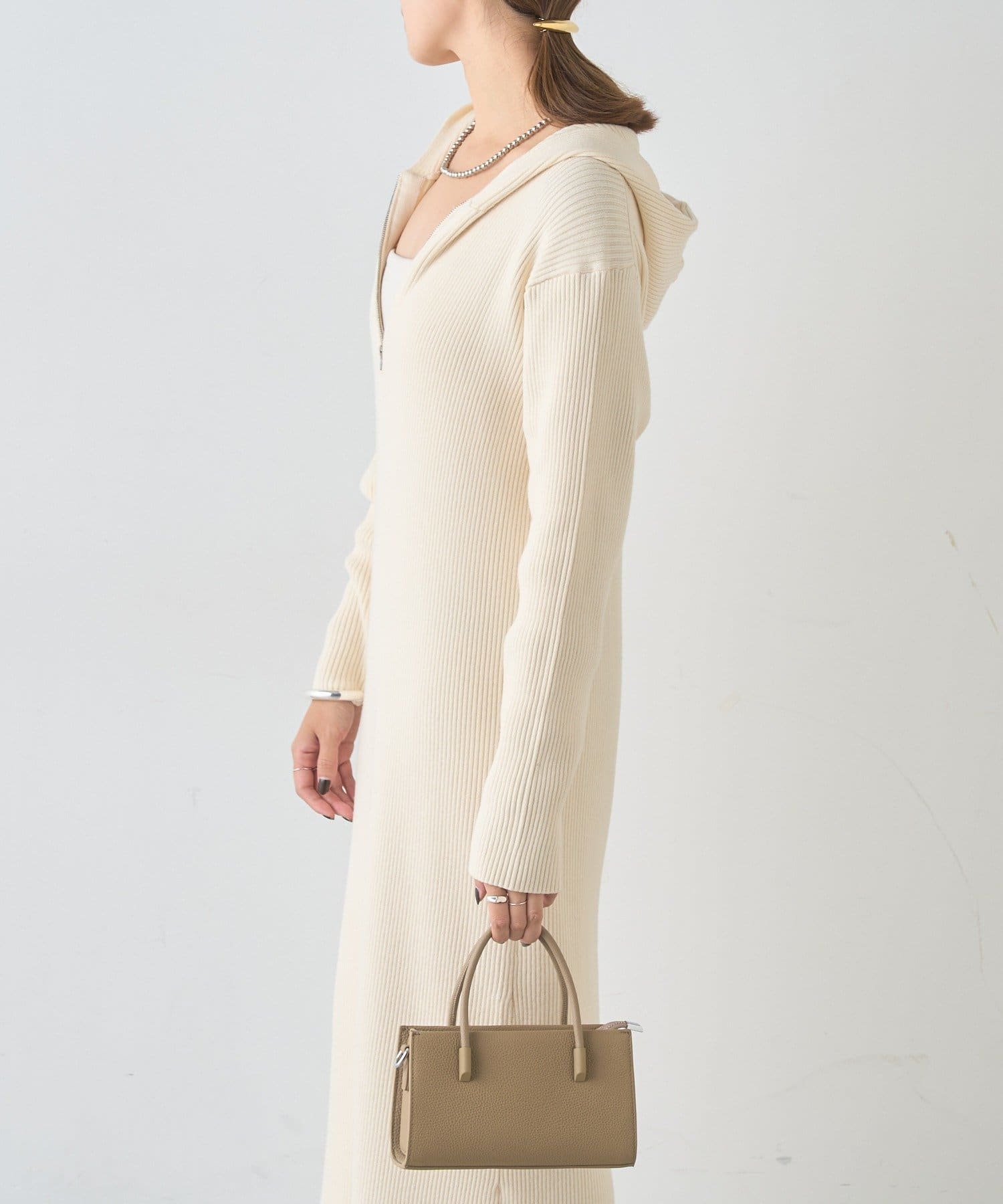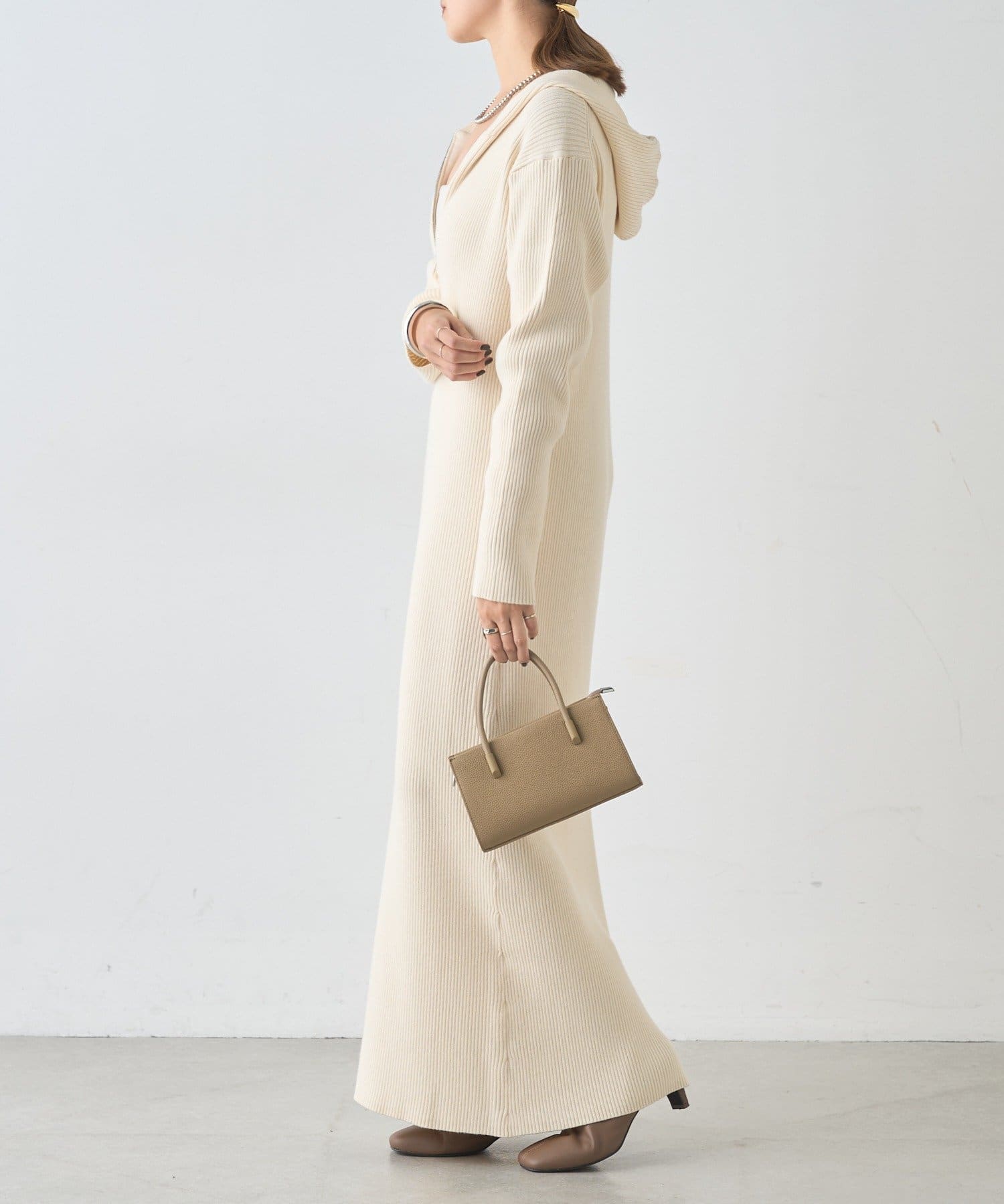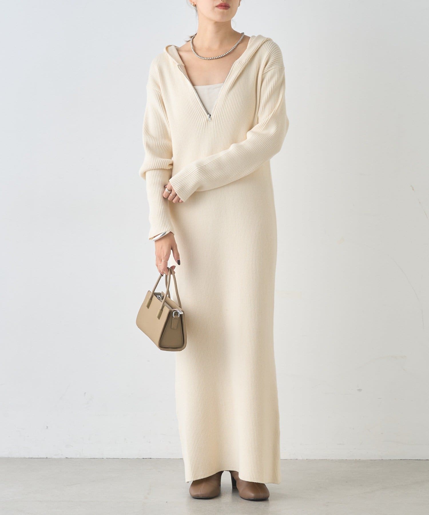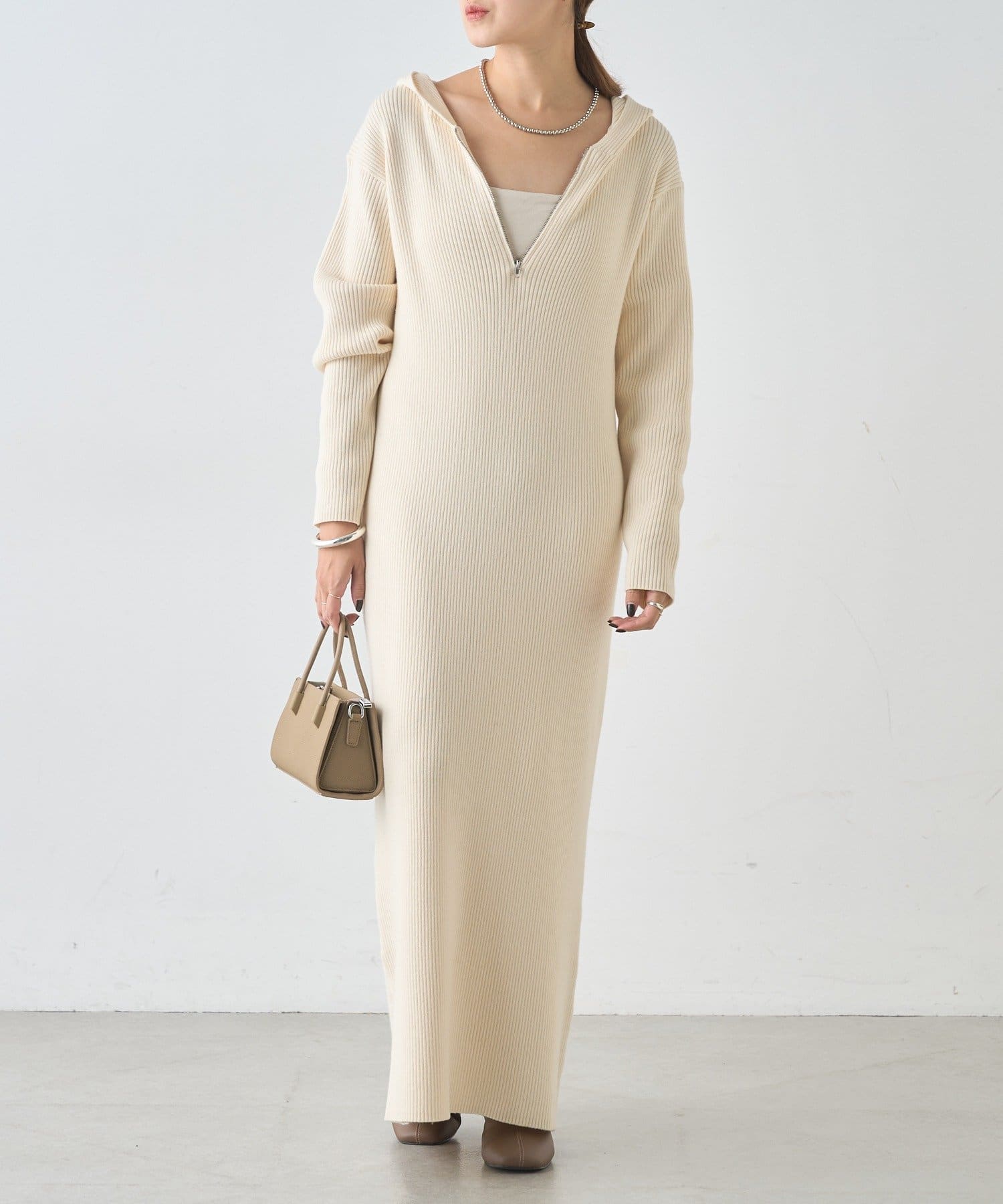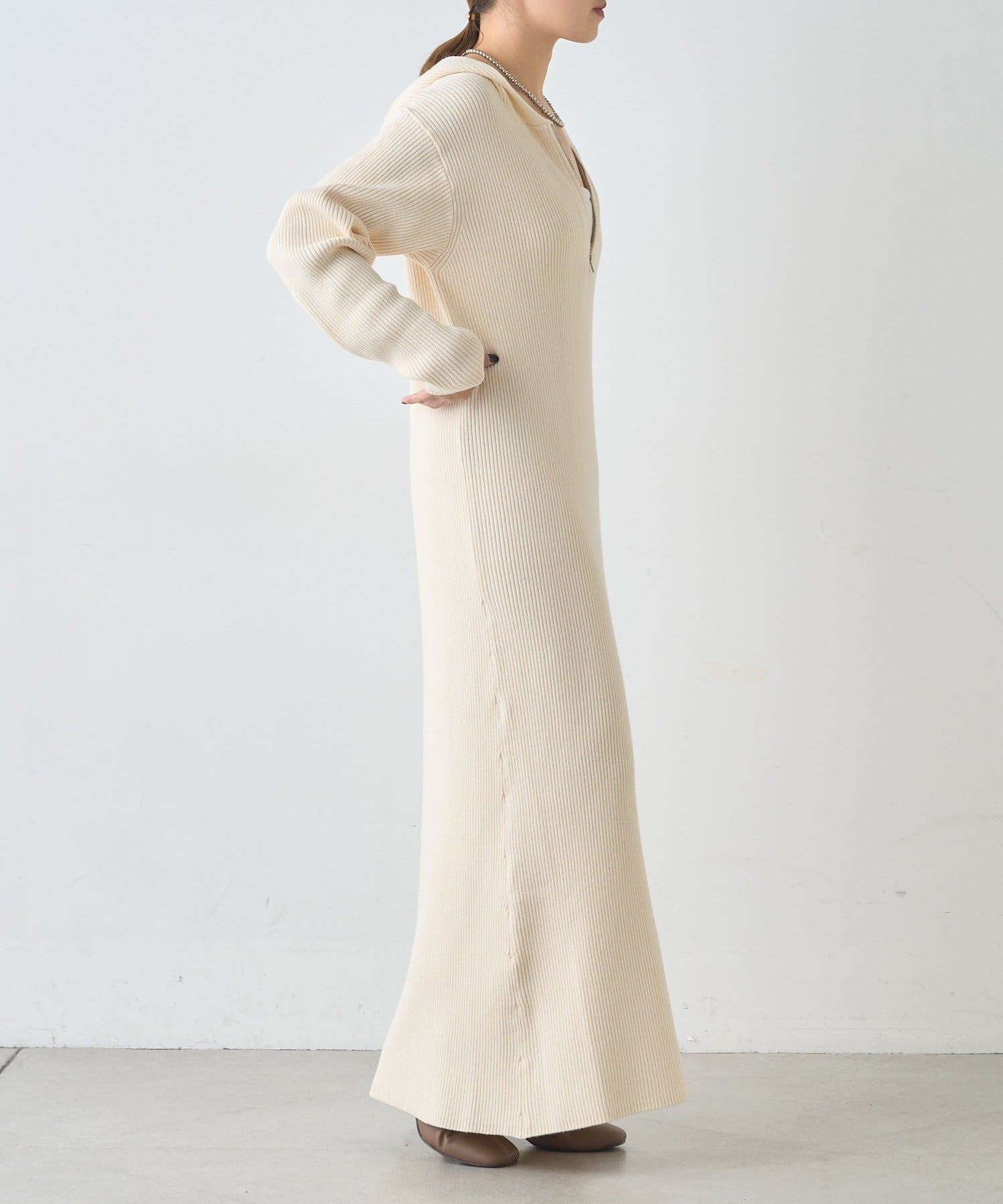 カジュアルコーデにもピッタリ!フード付きリブニットワンピース