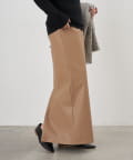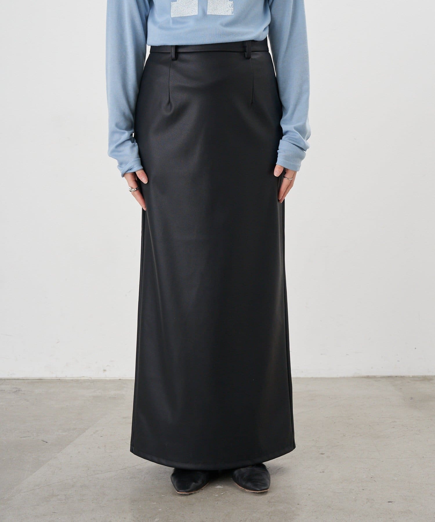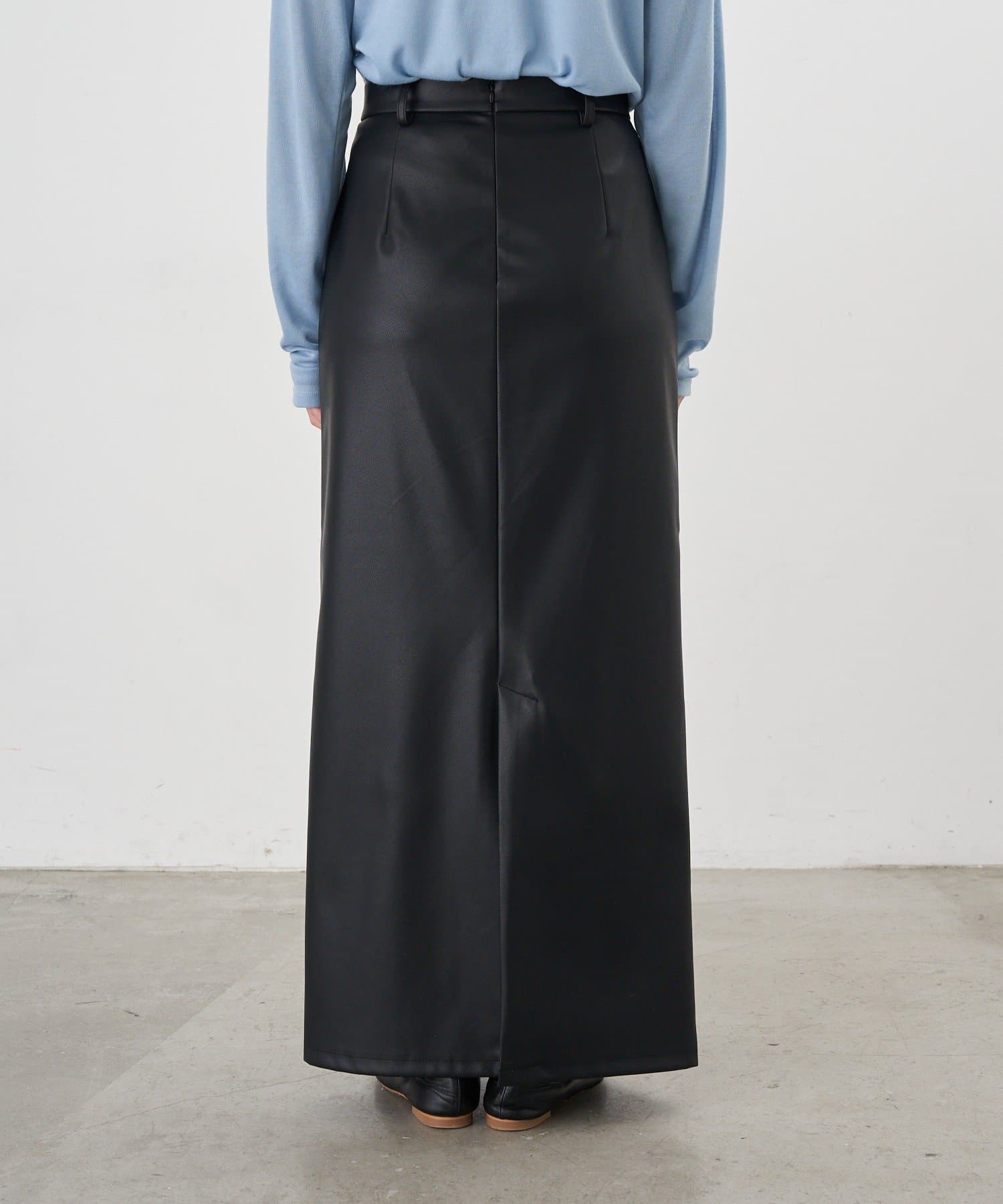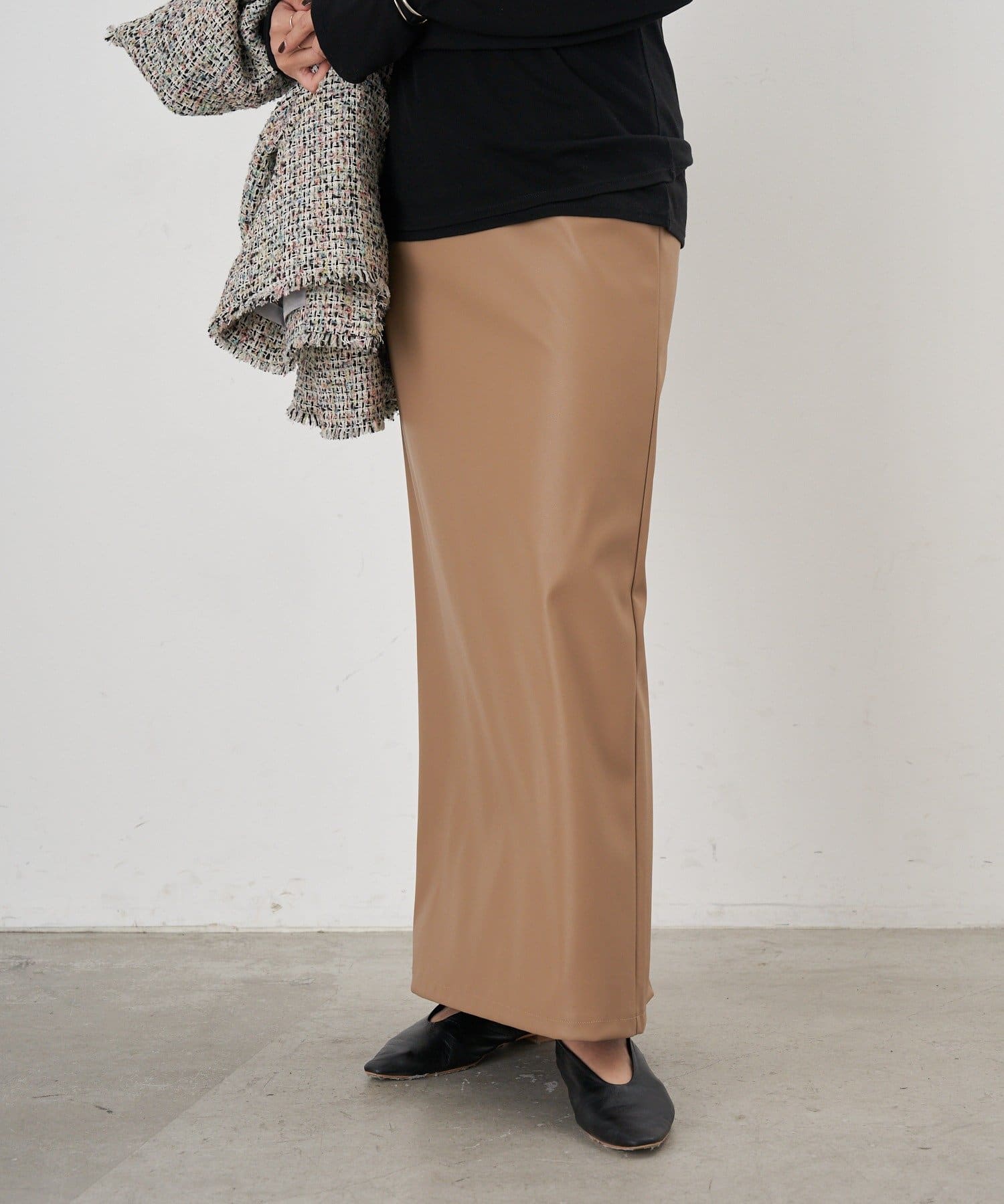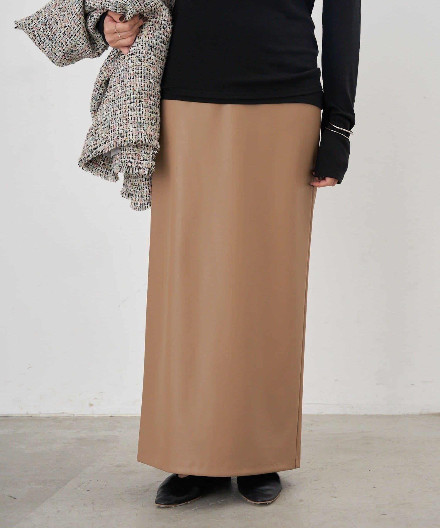 軽く柔らかなフェイクレザーで仕立てたマキシ丈のスカート。