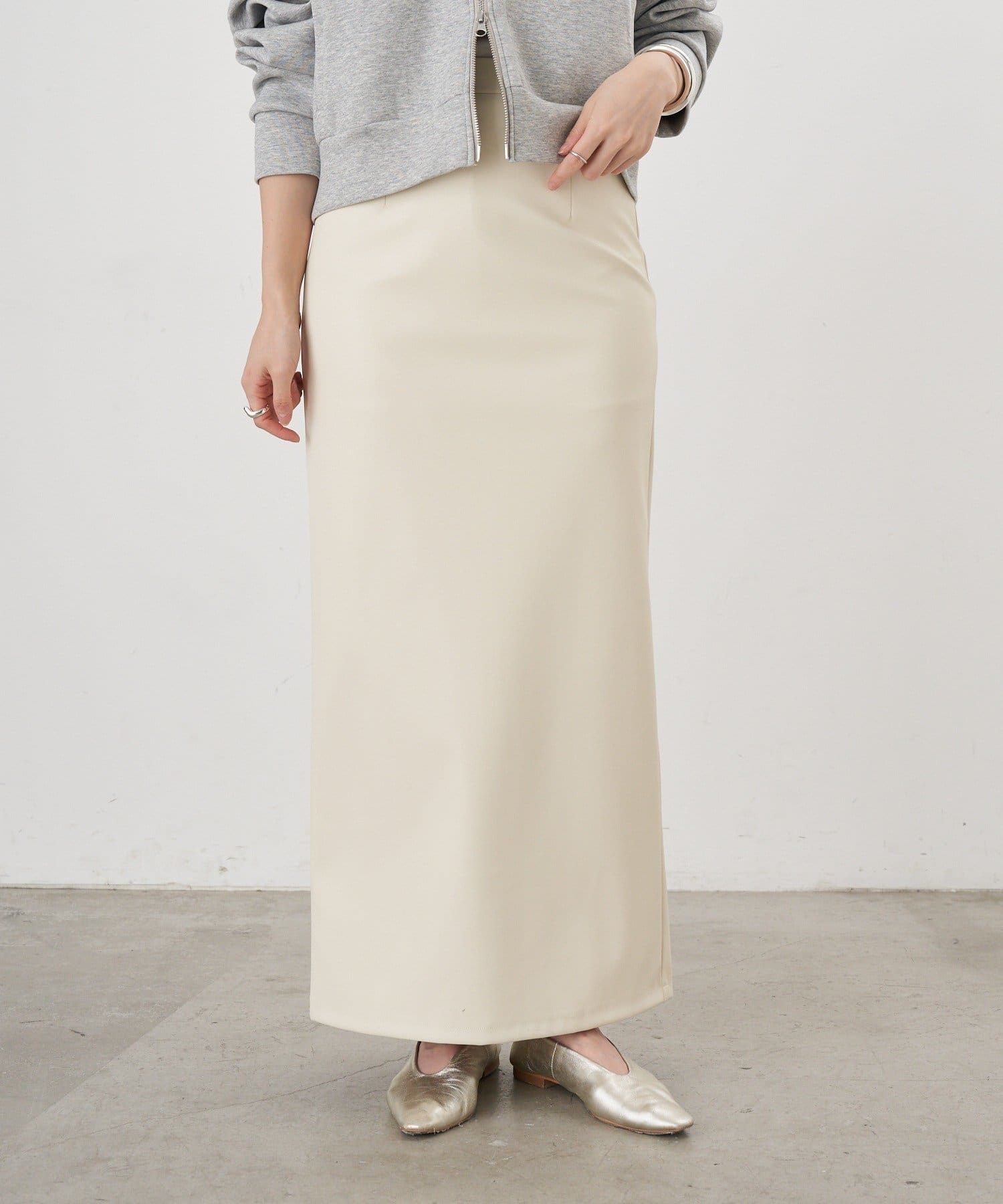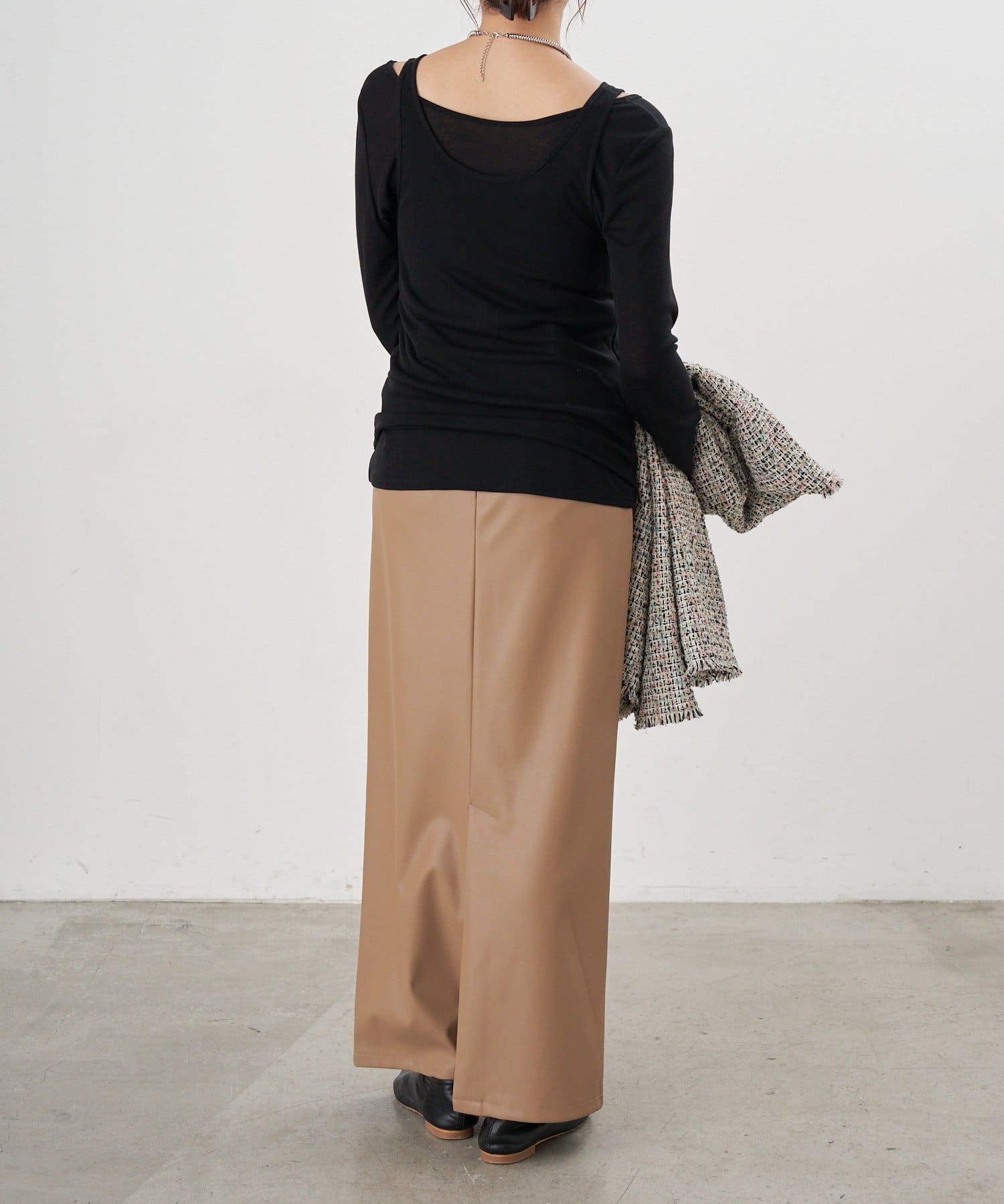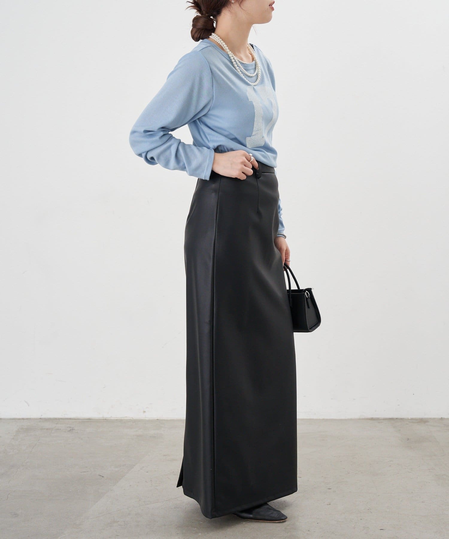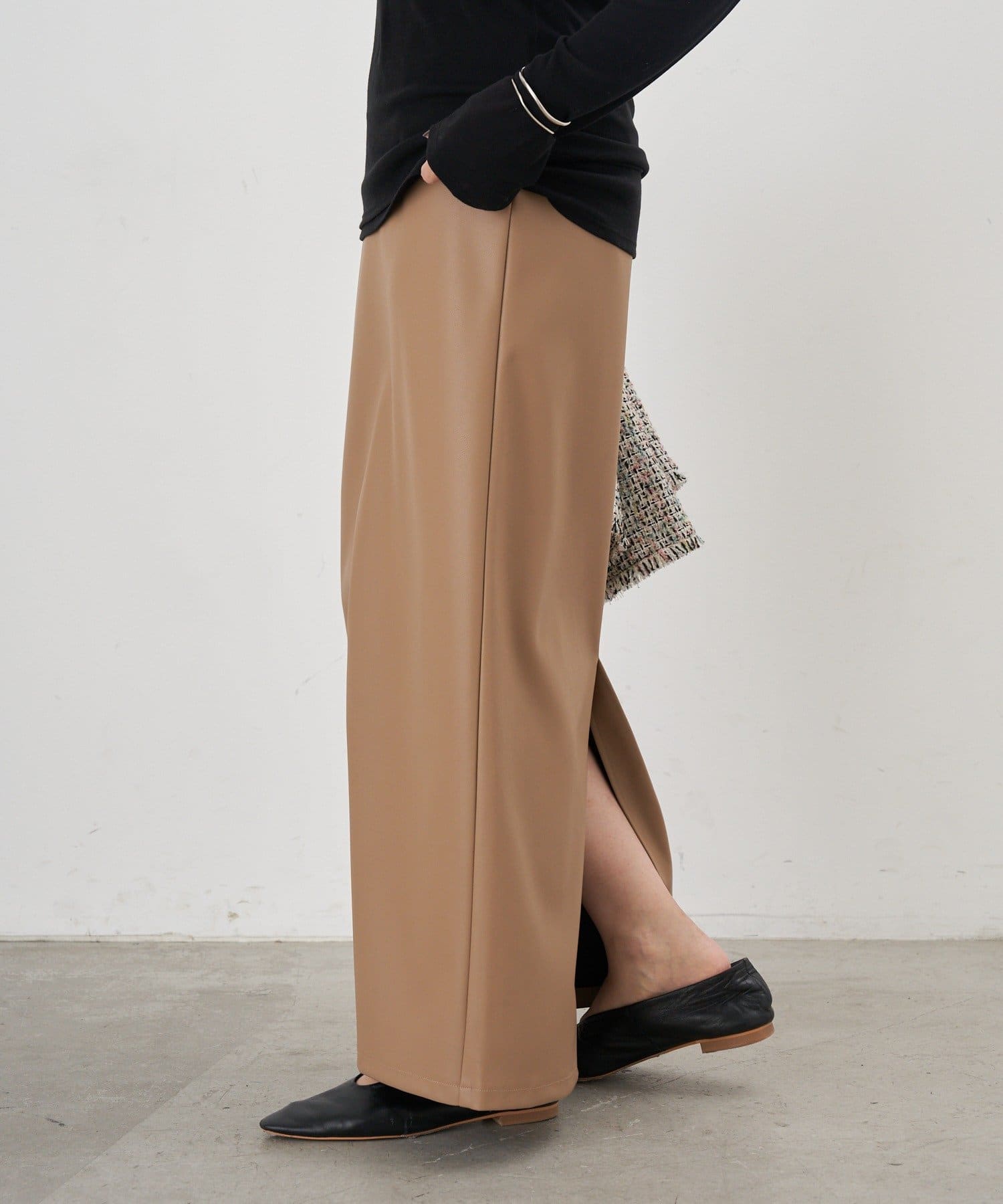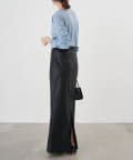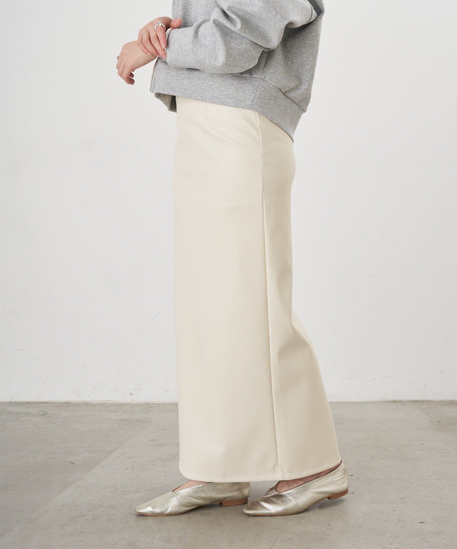 軽く柔らかなフェイクレザーで仕立てたマキシ丈のスカート。