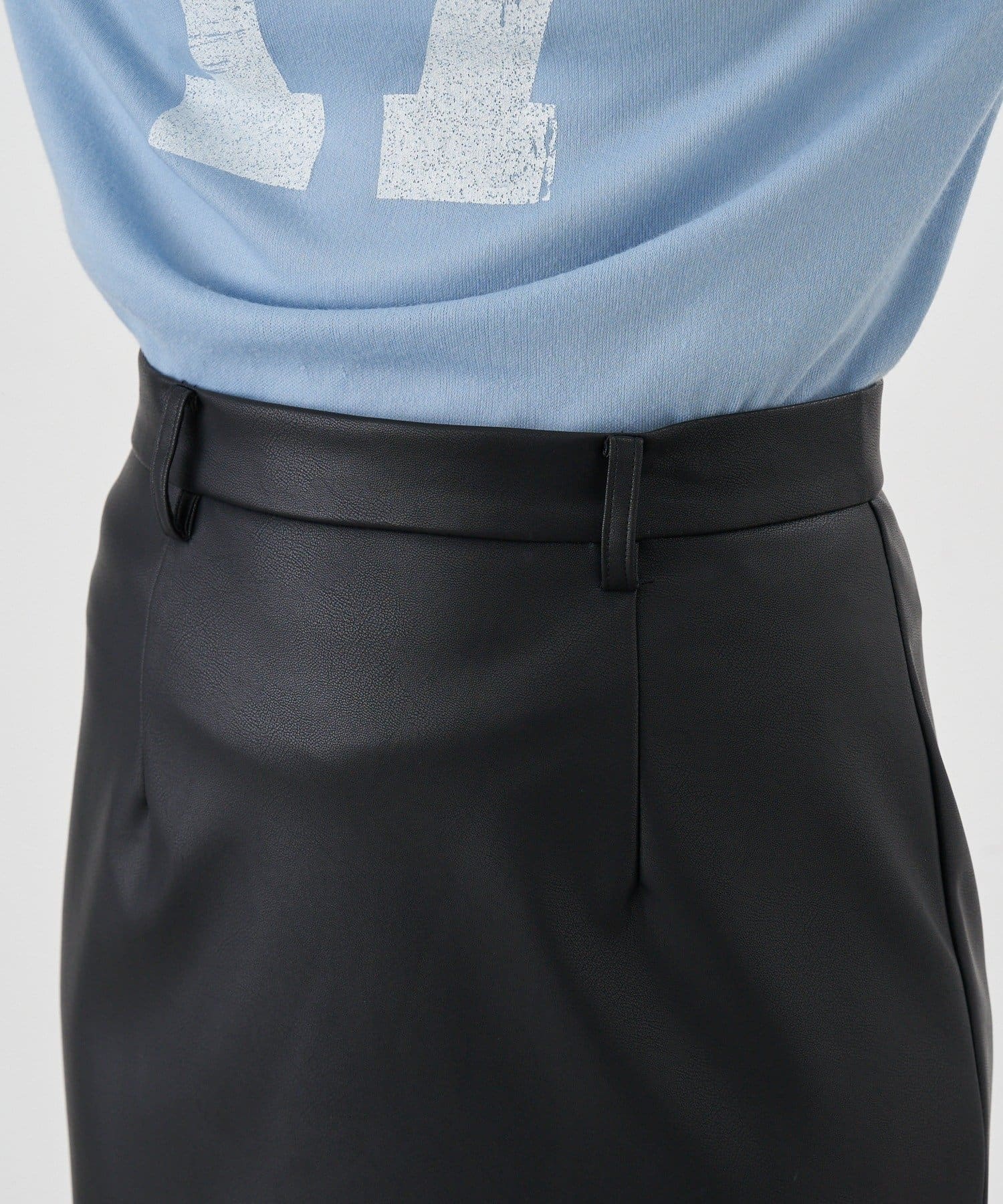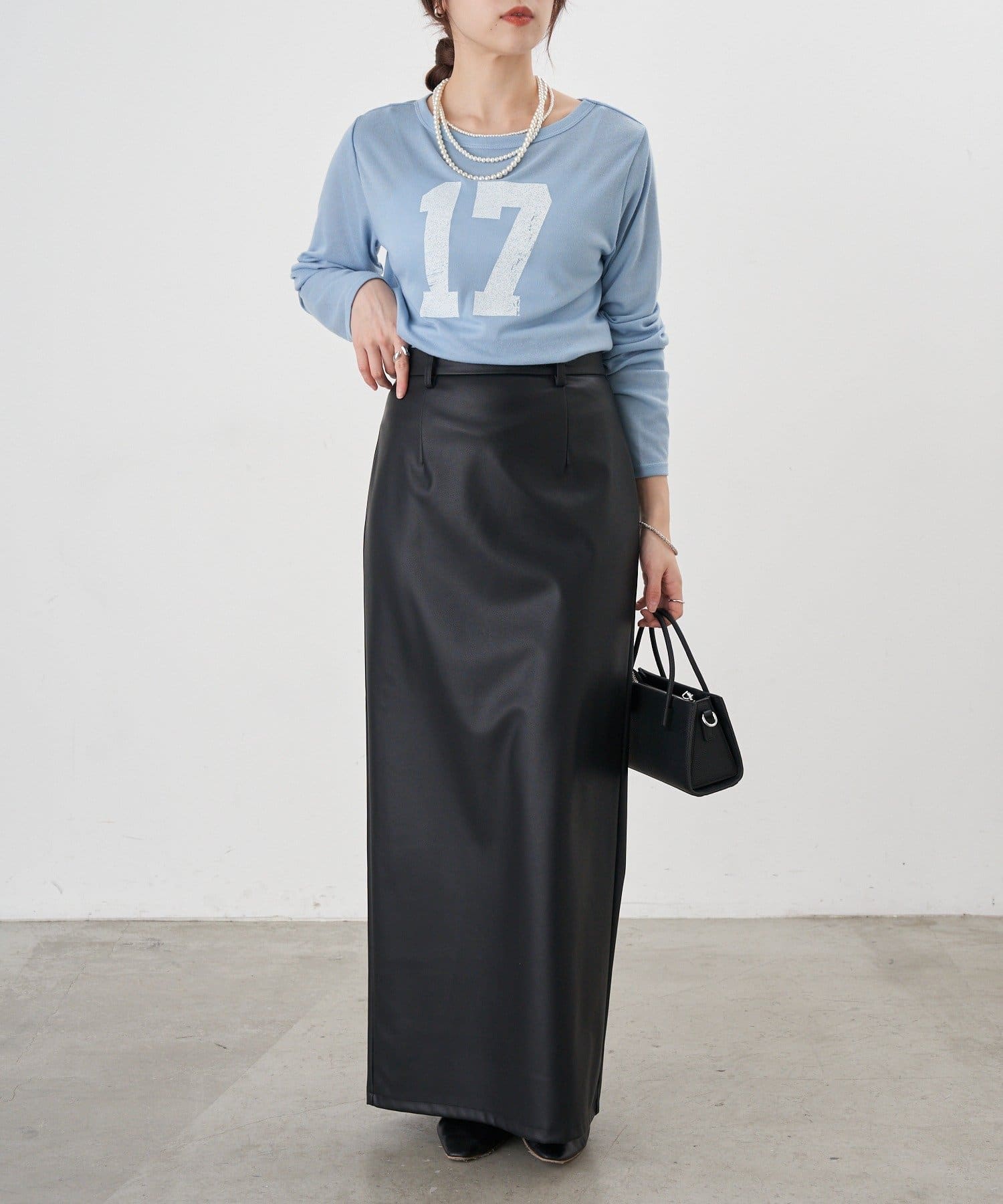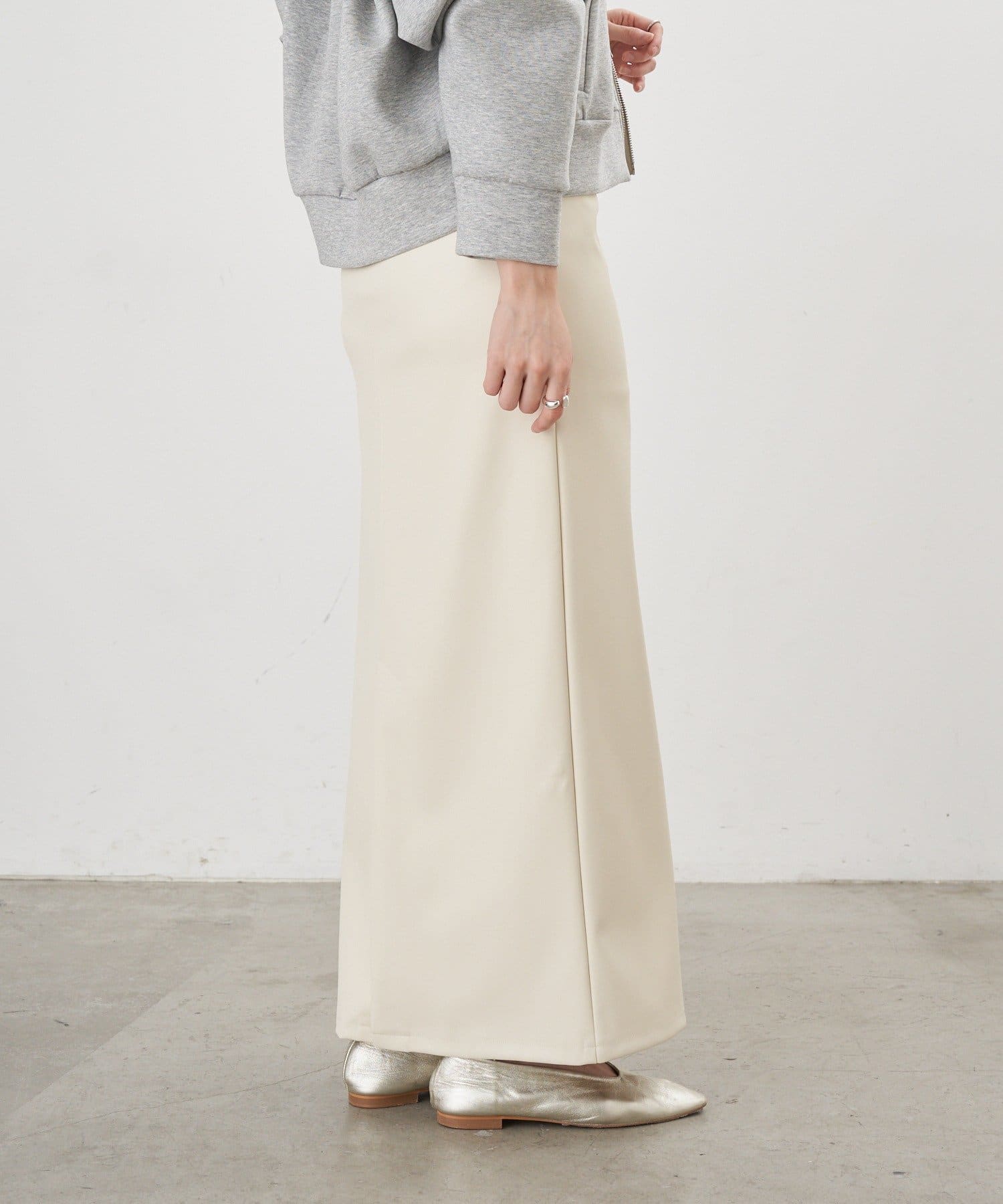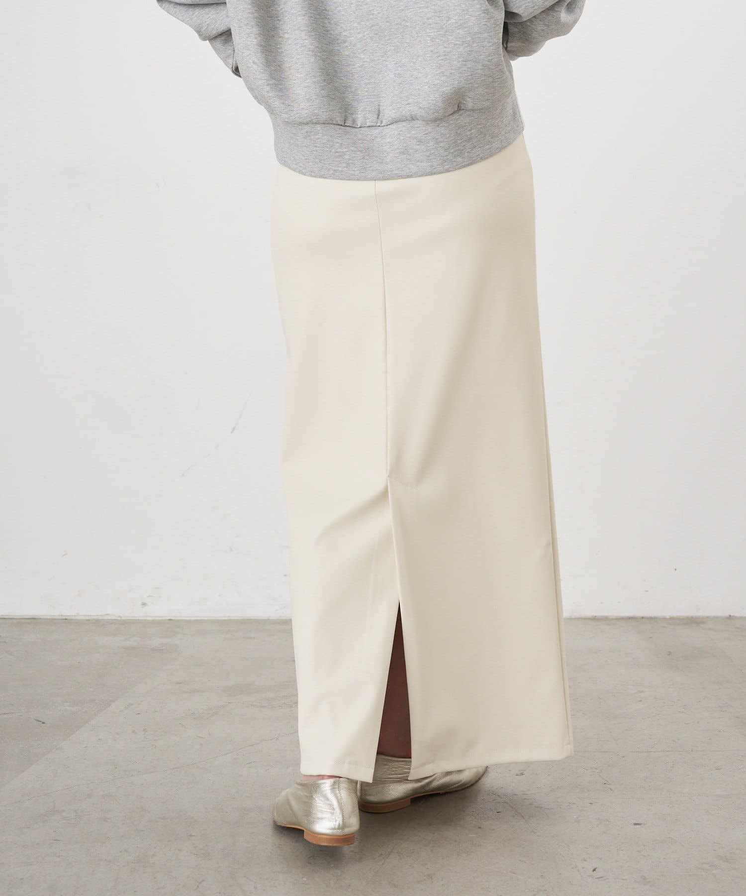 軽く柔らかなフェイクレザーで仕立てたマキシ丈のスカート。